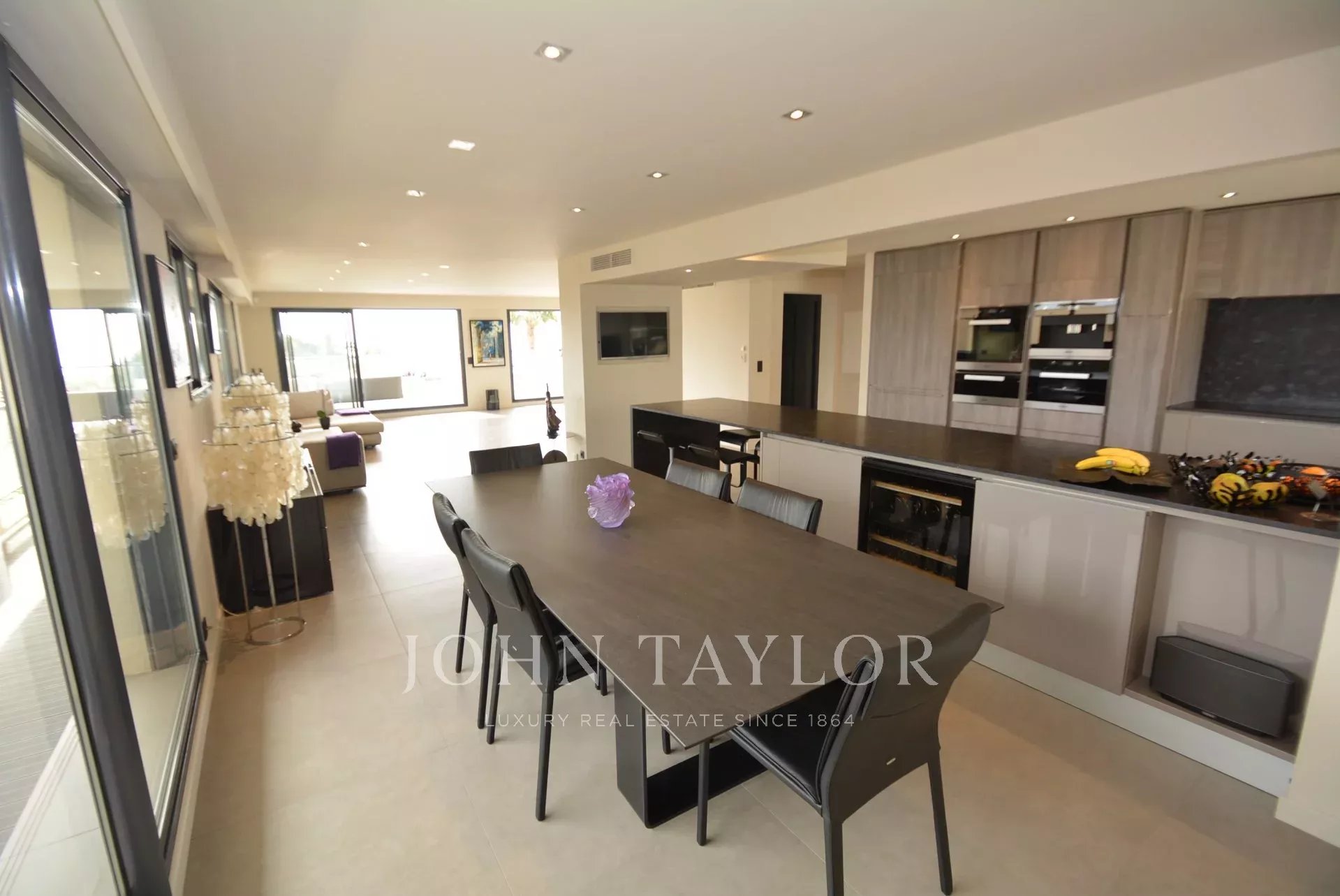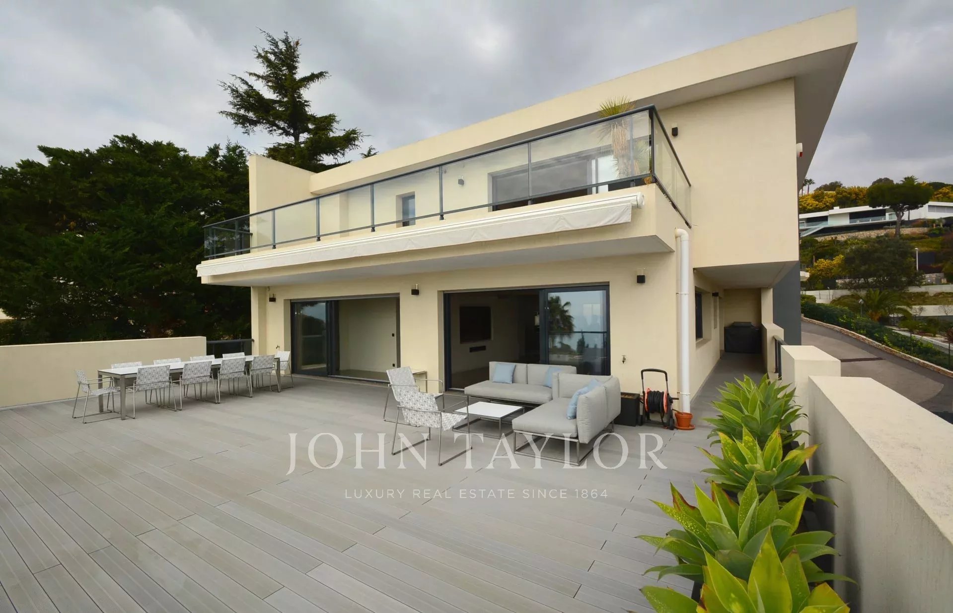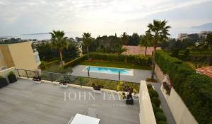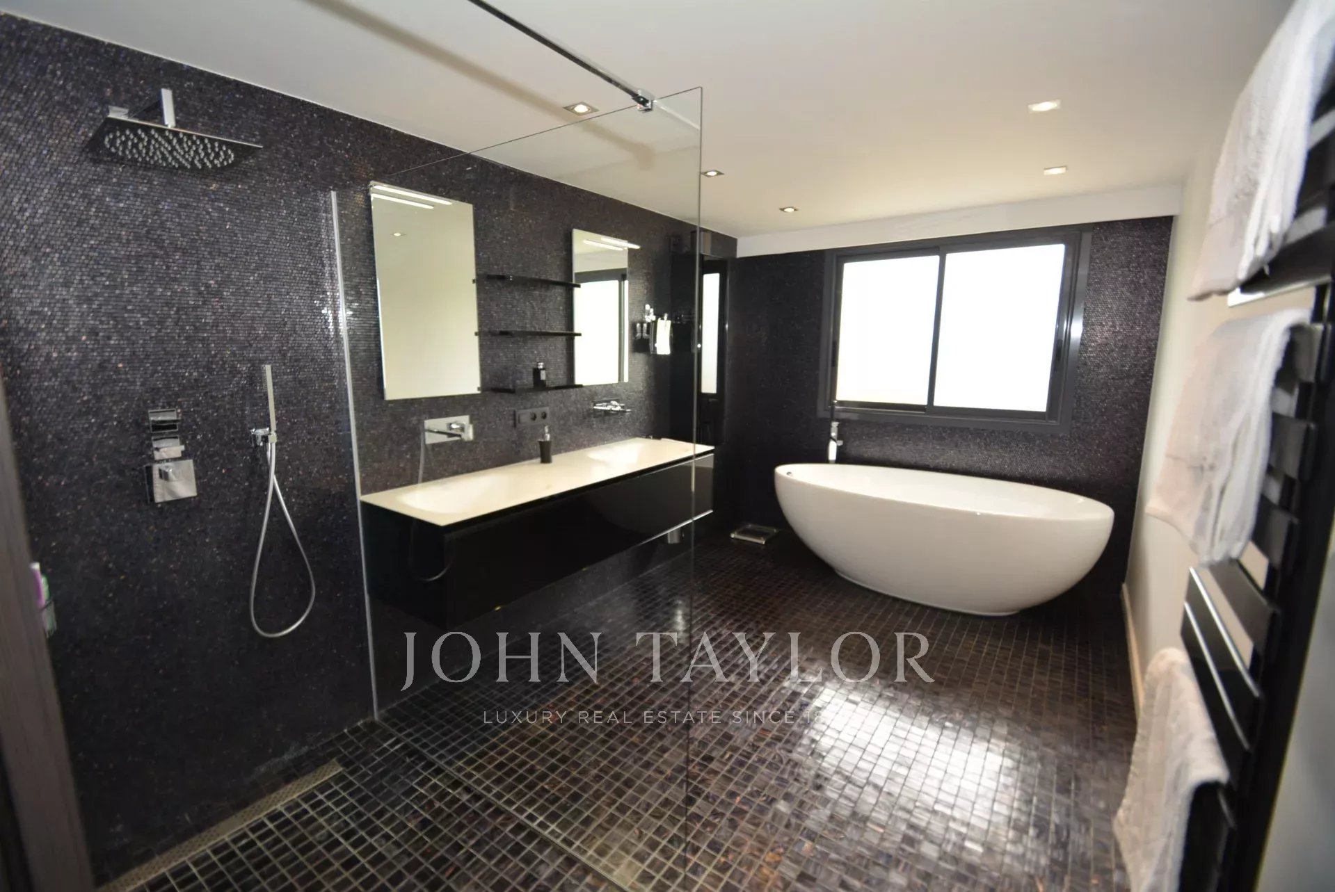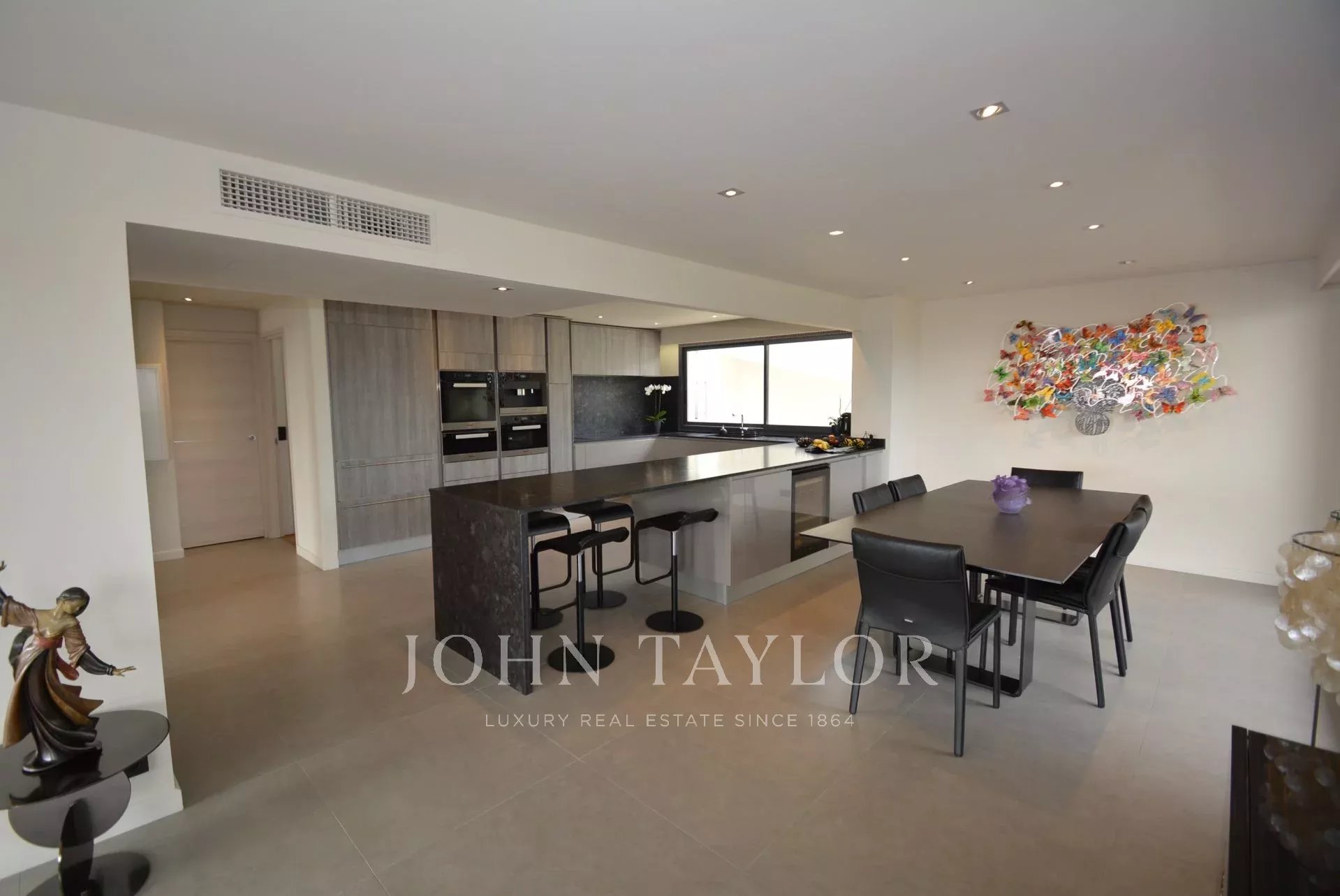 Barrio "CROIX DES GARDES", a diez minutos del centro de Cannes y del Palacio de Festivales, con una magnífica vista sobre la bahía de Cannes, las islas Lérins y el Estérel, piso totalmente climatizado en el último piso de una residencia de 3 pisos con jardín y piscina climatizada.