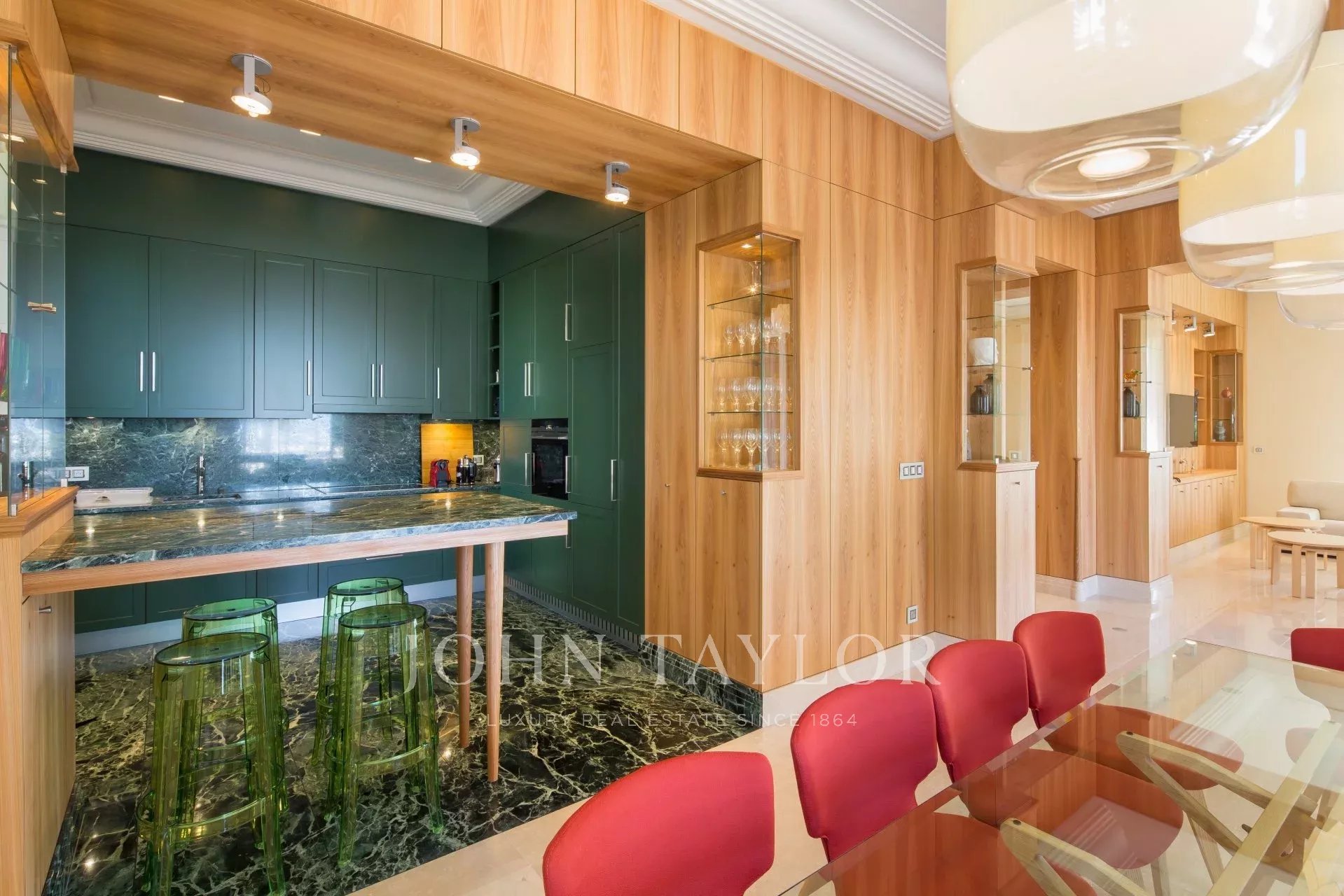 Frente a Port Canto, en un lujoso edificio burgués de los años 50, bonito piso de 150 m2 totalmente reformado y climatizado, con una terraza principal de 60 m2 y una terraza adicional que puede utilizarse para recepciones.