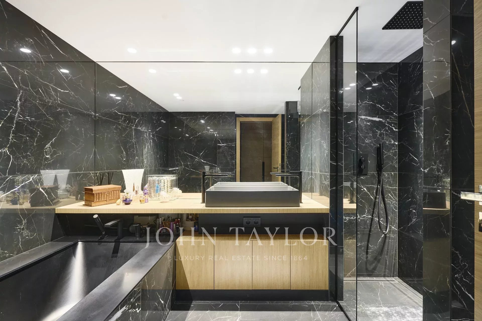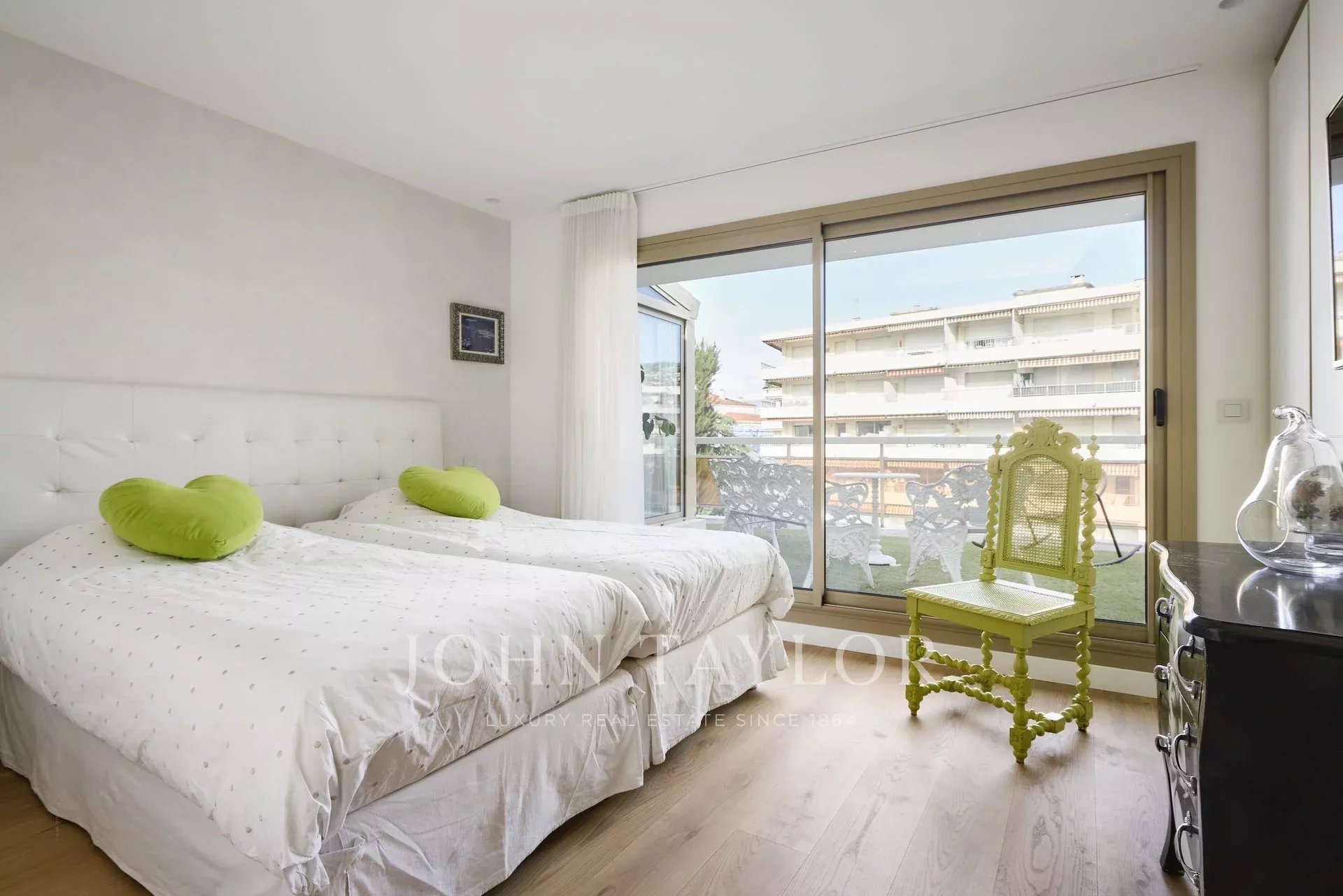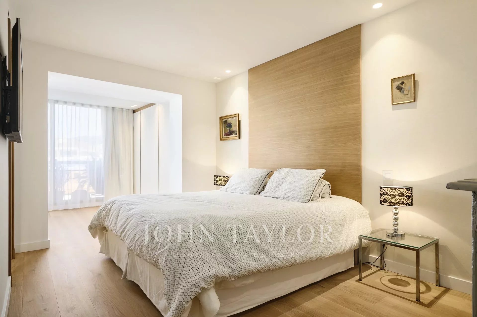 Piso contemporáneo de 165 m2 con aire acondicionado, orientado al sur, situado en el último piso (5º) de una residencia del centro de la ciudad, a pocos minutos a pie de las playas y del Palacio de Festivales.