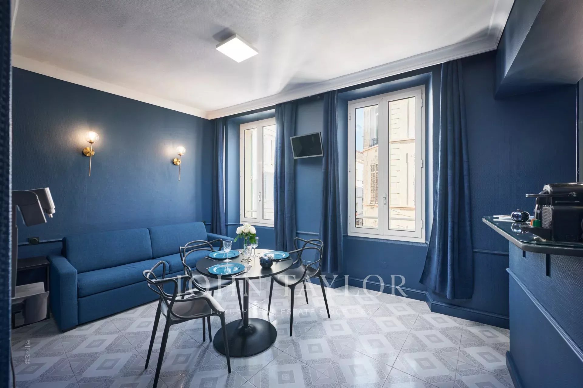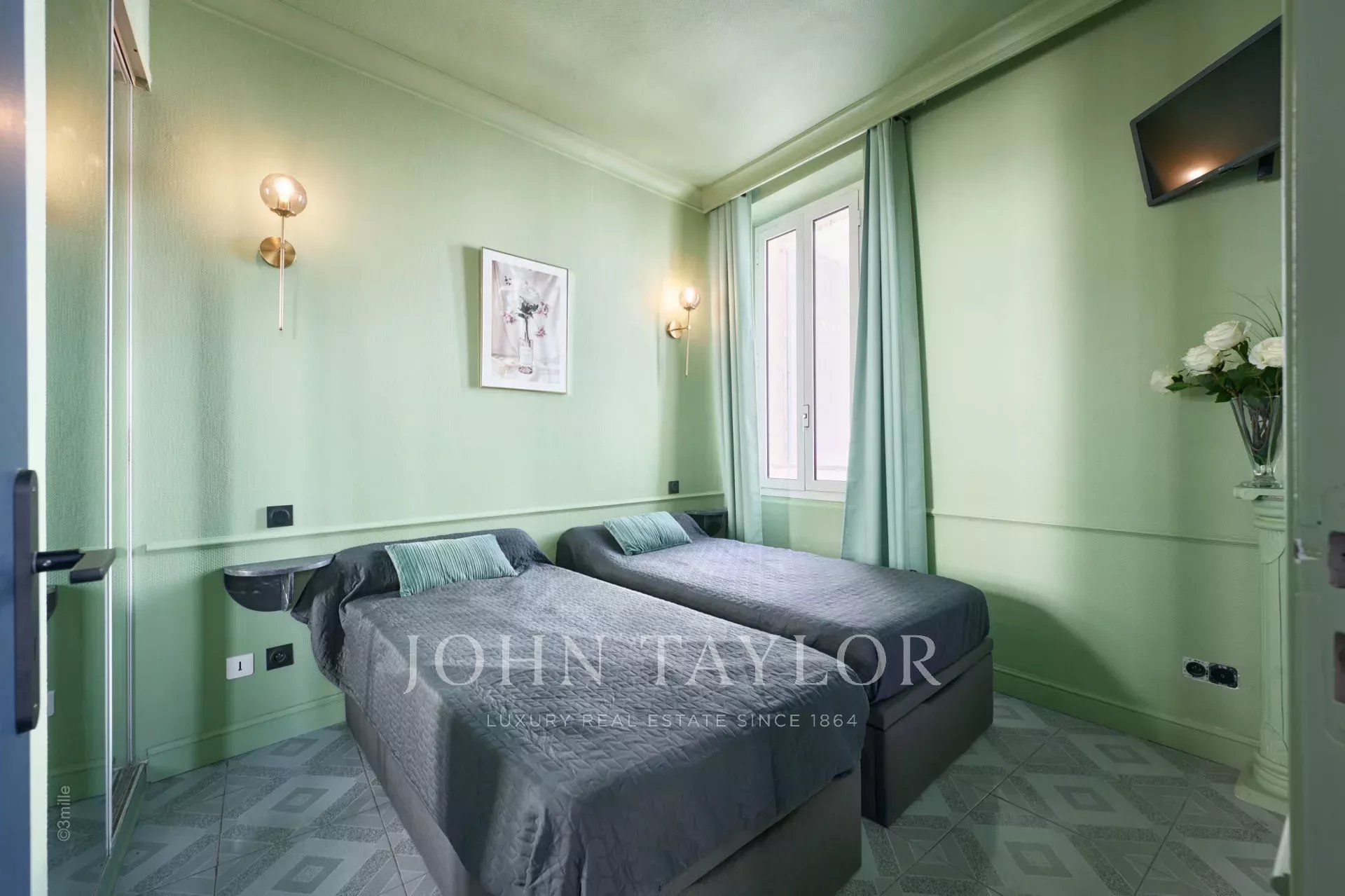 En la 2ª planta de un edificio de clase media, idealmente situado a dos pasos del Boulevard de la Croisette, sus playas y el Palais des Festivals, este encantador piso de 30 m2 con aire acondicionado ha sido completa y bellamente renovado.