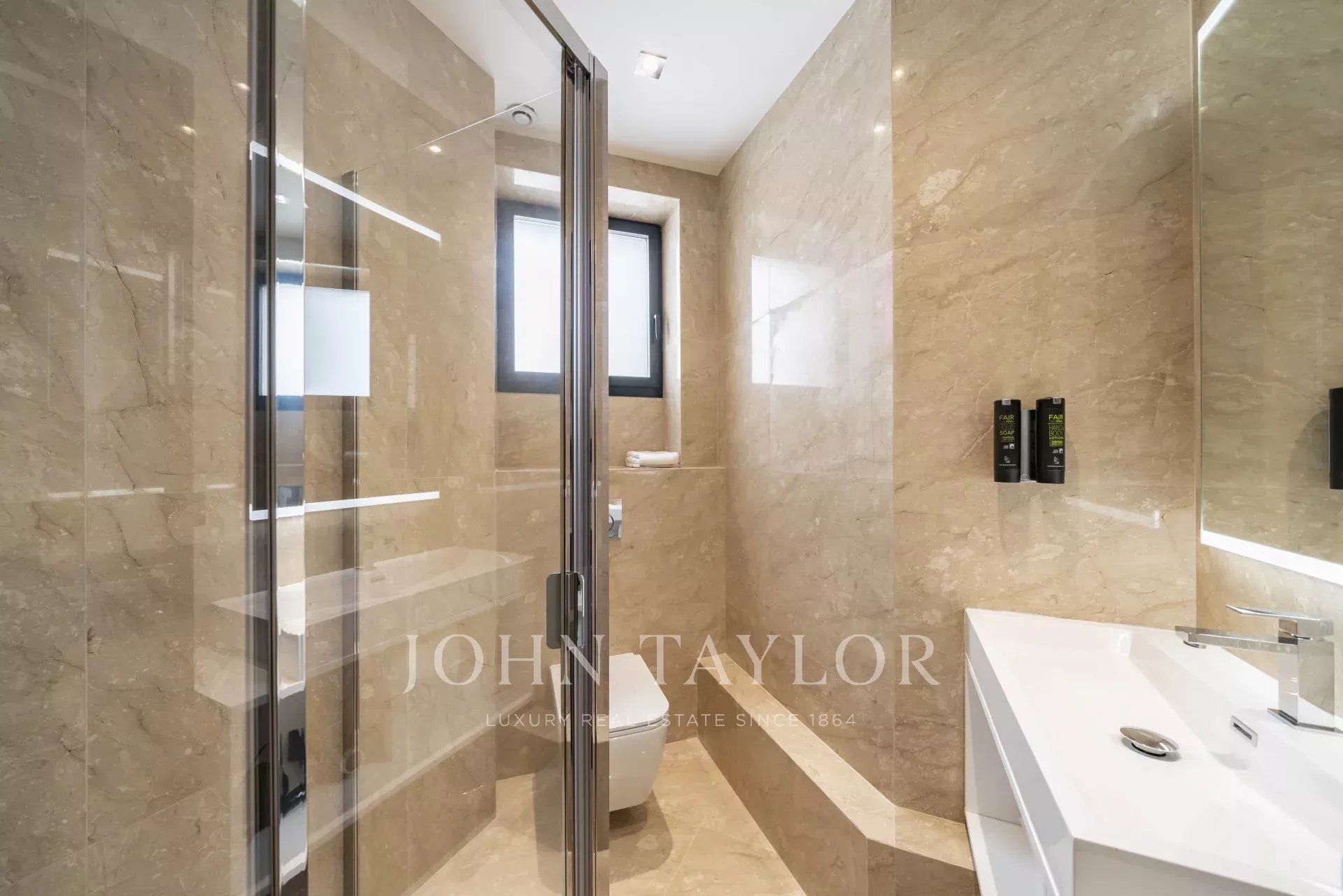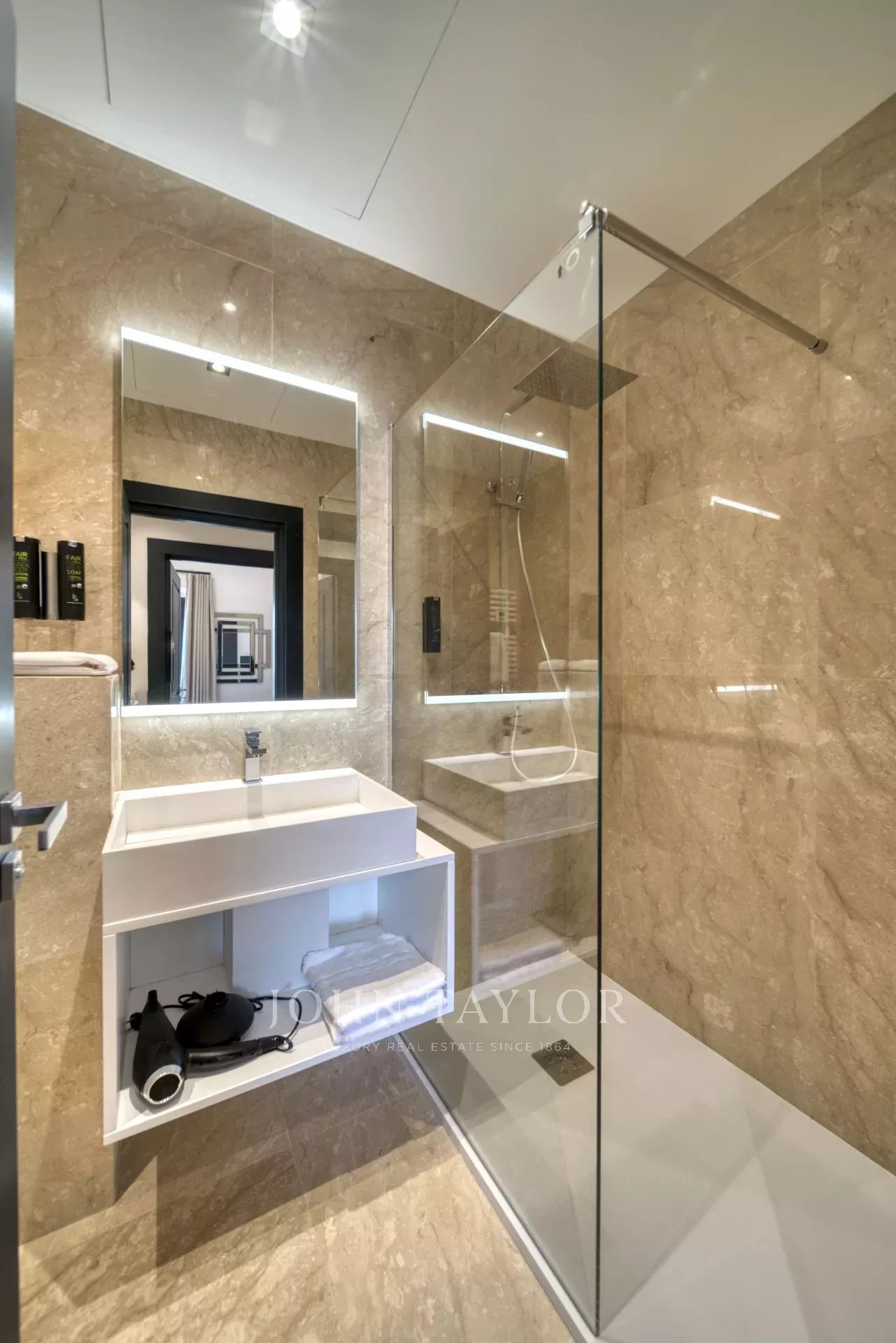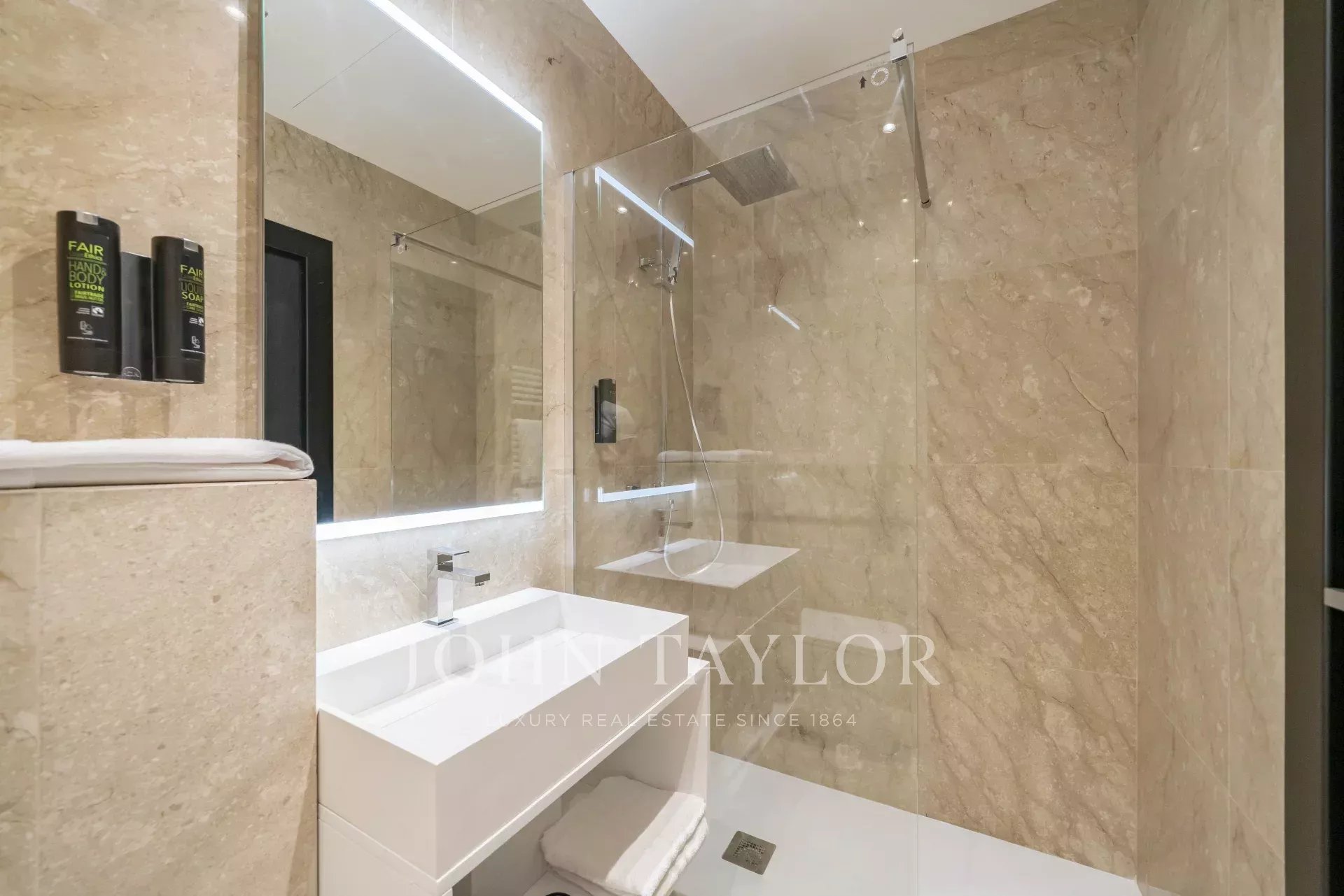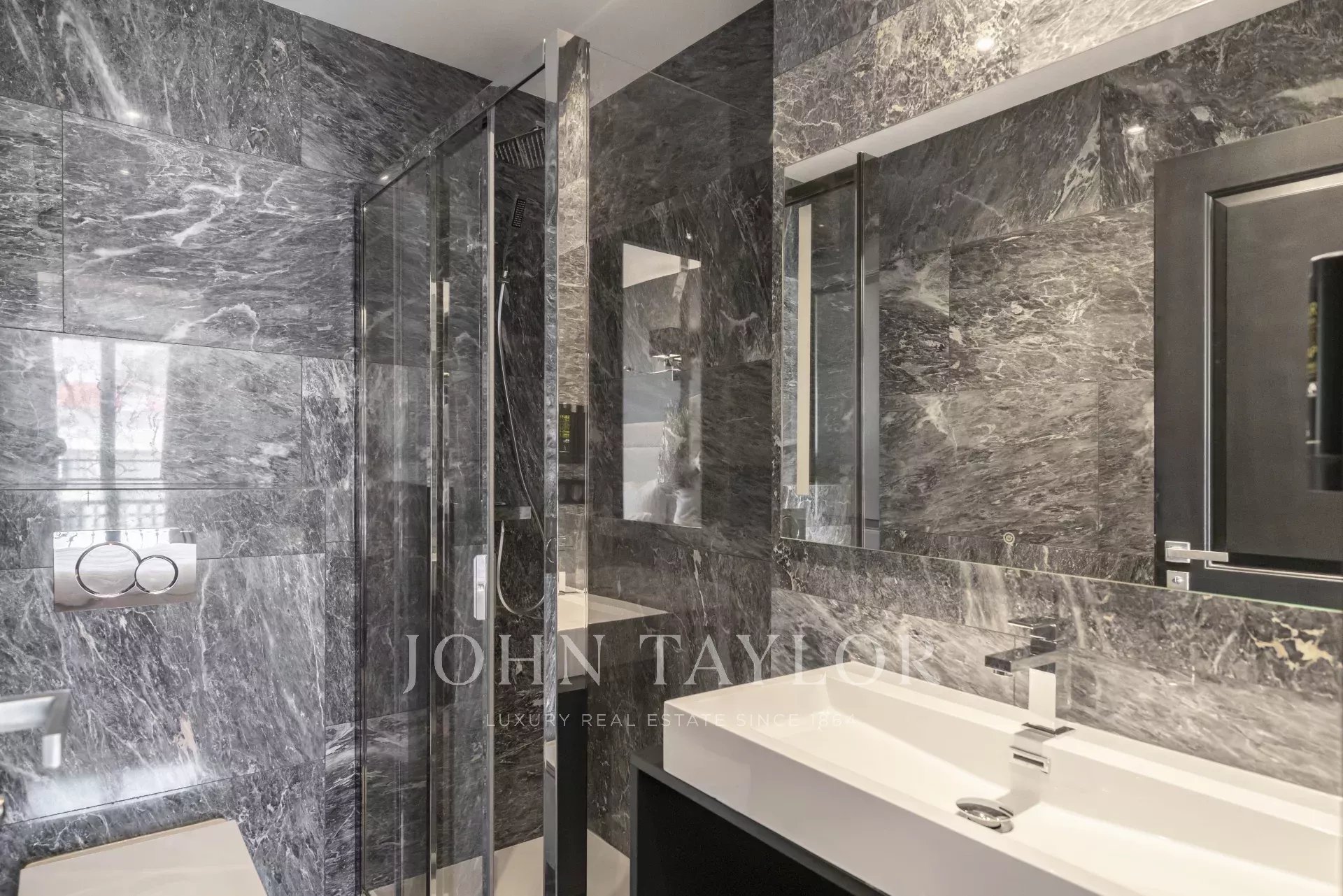 En la 3ª planta de un edificio de clase media, frente al Palais des Festivals y las playas de la Croisette, a 1 minuto de la rue d'Antibes, piso contemporáneo totalmente renovado con aire acondicionado y 195 m2 de superficie habitable: