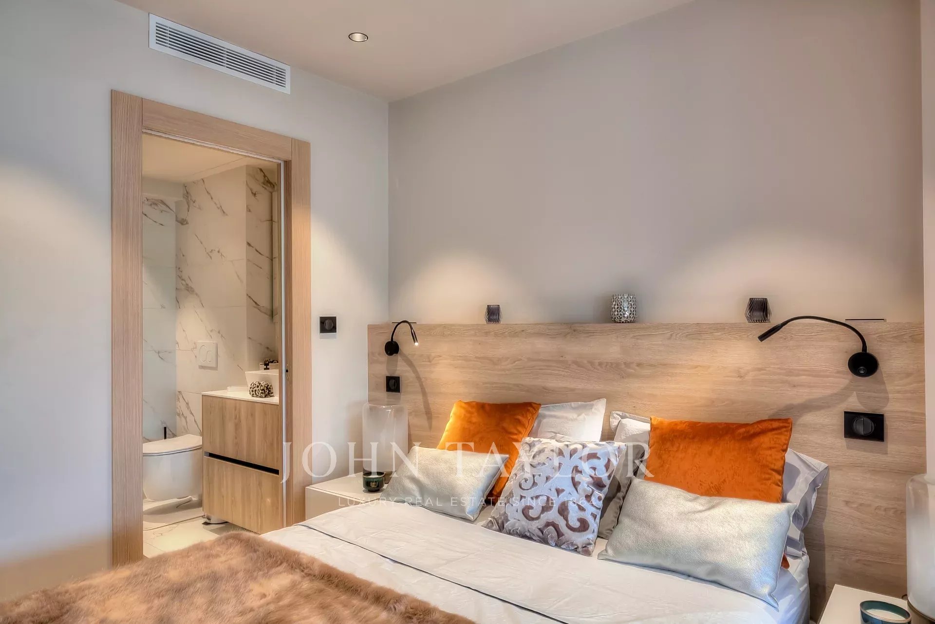 En una residencia de lujo, 2ª fila de la Croisette, magnífico piso contemporáneo de 100 m2 con azotea de 176 m2 con piscina privada (5,5m x 3m), tumbonas, salón, comedor y cocina de verano con barbacoa.
