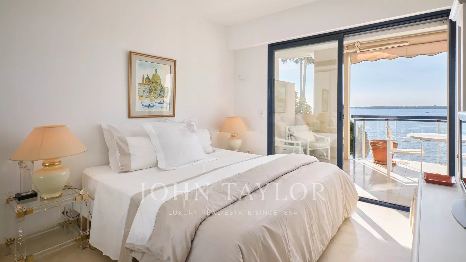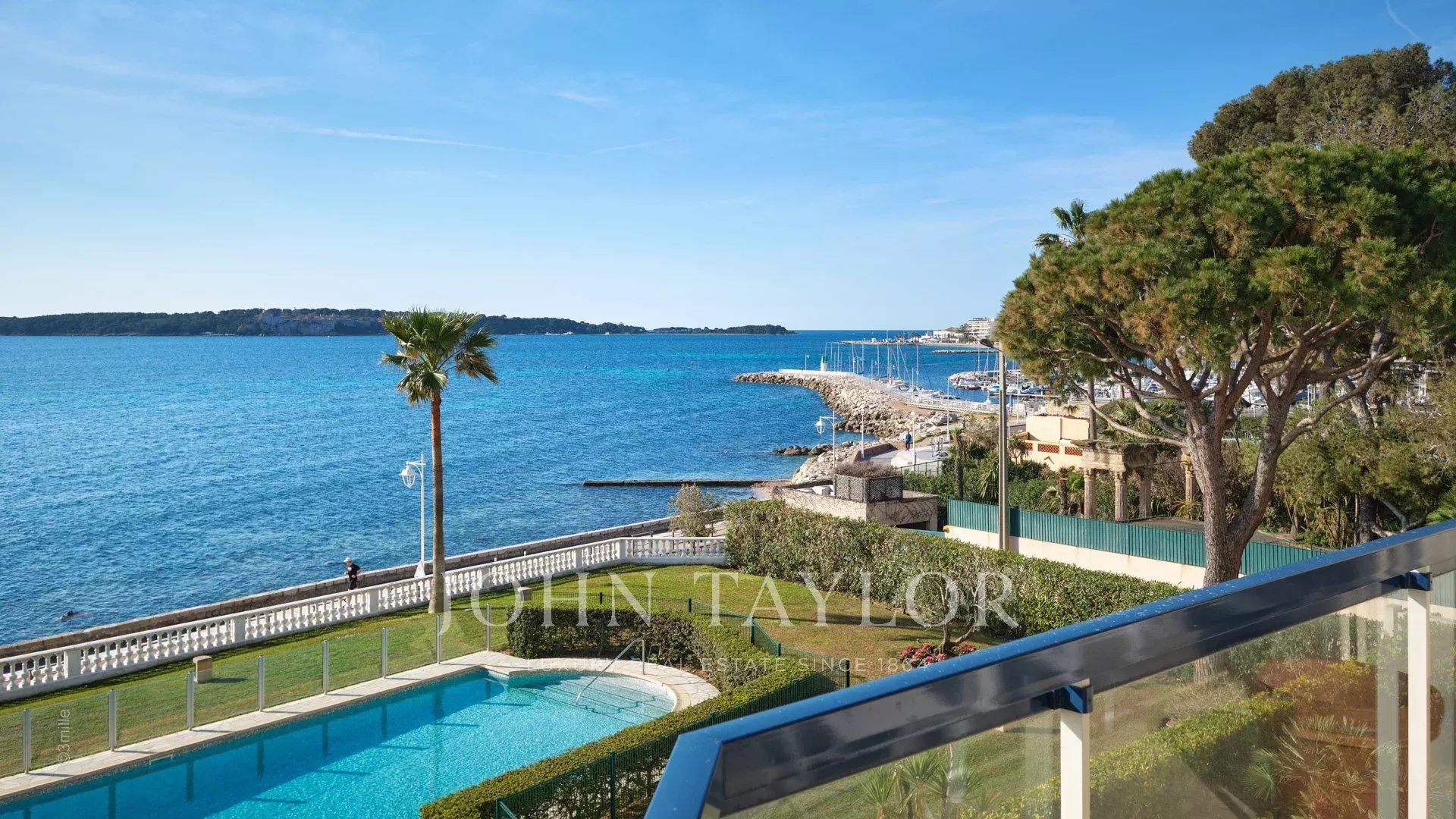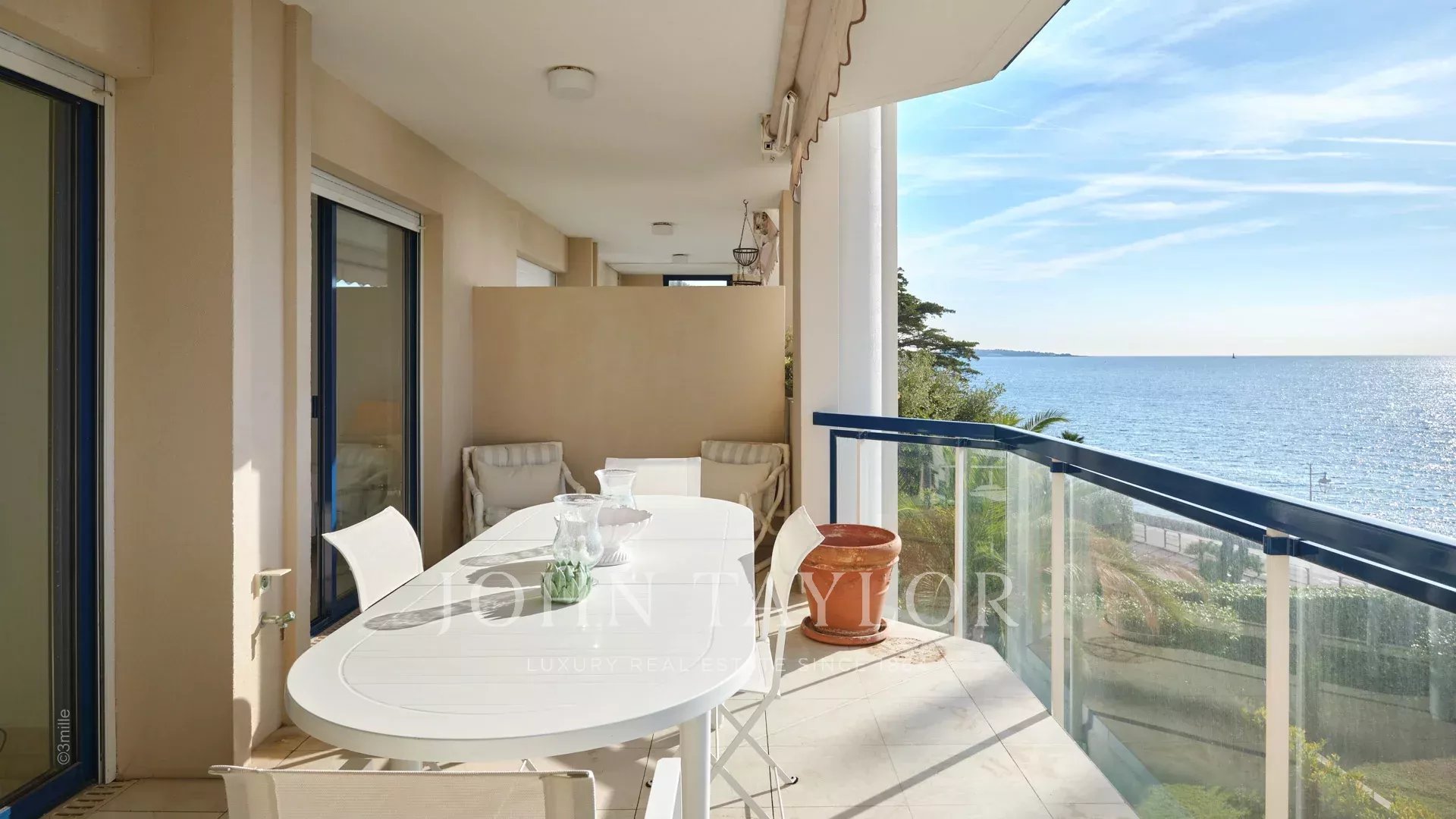 Precioso piso climatizado de 120 m² con dos grandes terrazas y magníficas vistas al mar y a las islas Lérins en una residencia vigilada de lujo en Palm Beach.