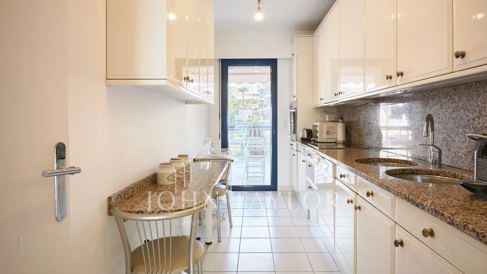 Cocina equipada (sin secadora) con salida a la terraza trasera (lado aparcamiento)