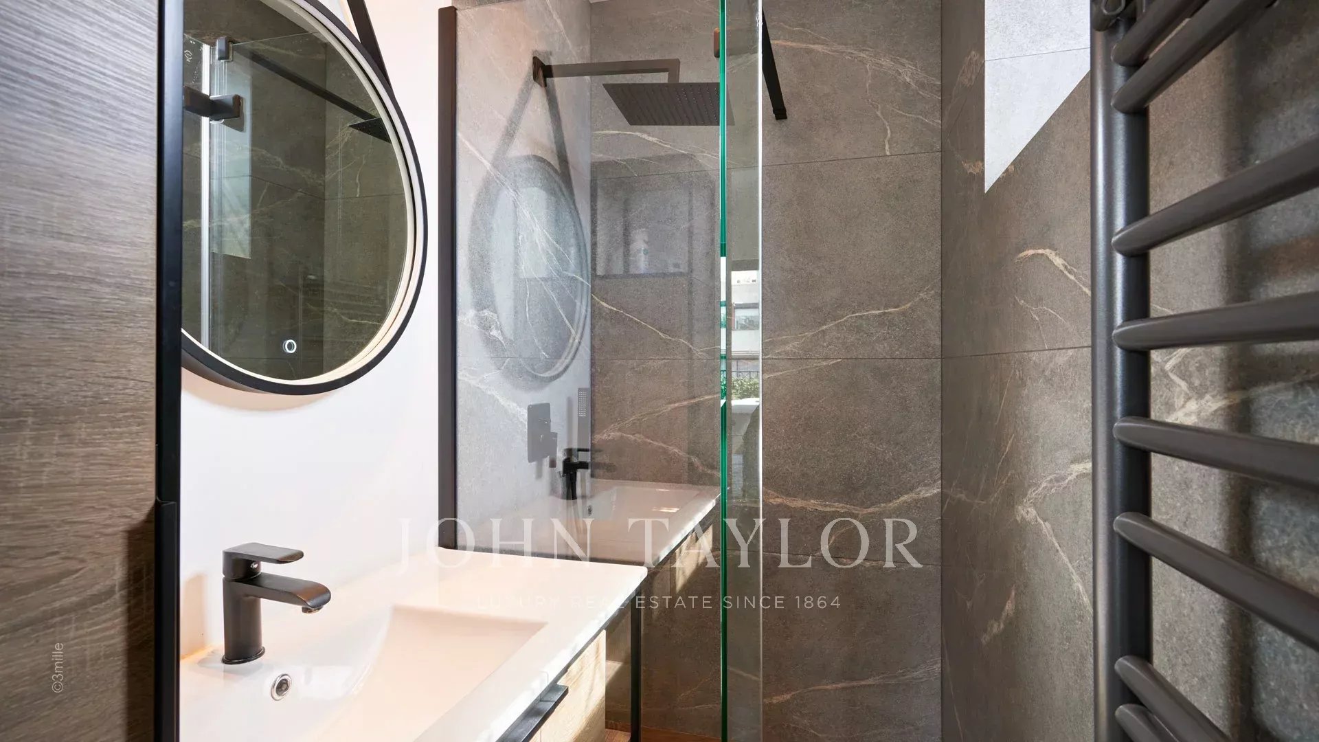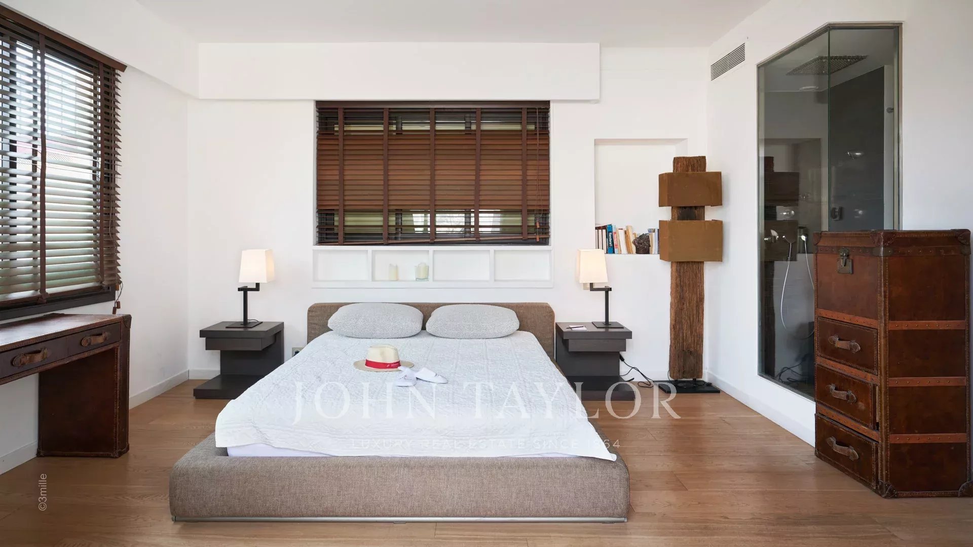 Dormitorio principal (cama de 180 cm - armarios empotrados) que da a una terraza de 50 m² con cuarto de ducha en suite.