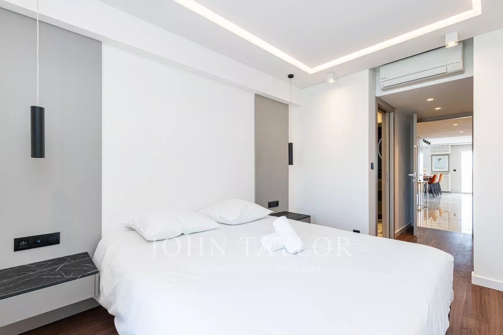 Idealmente situado en pleno centro de Cannes, detrás de la rue de d'Antibes y a dos pasos de la Croisette, este espacioso piso de estilo contemporáneo de 4 habitaciones (aprox. 150 m²) ha sido totalmente renovado y amueblado con un alto nivel, con terraza.