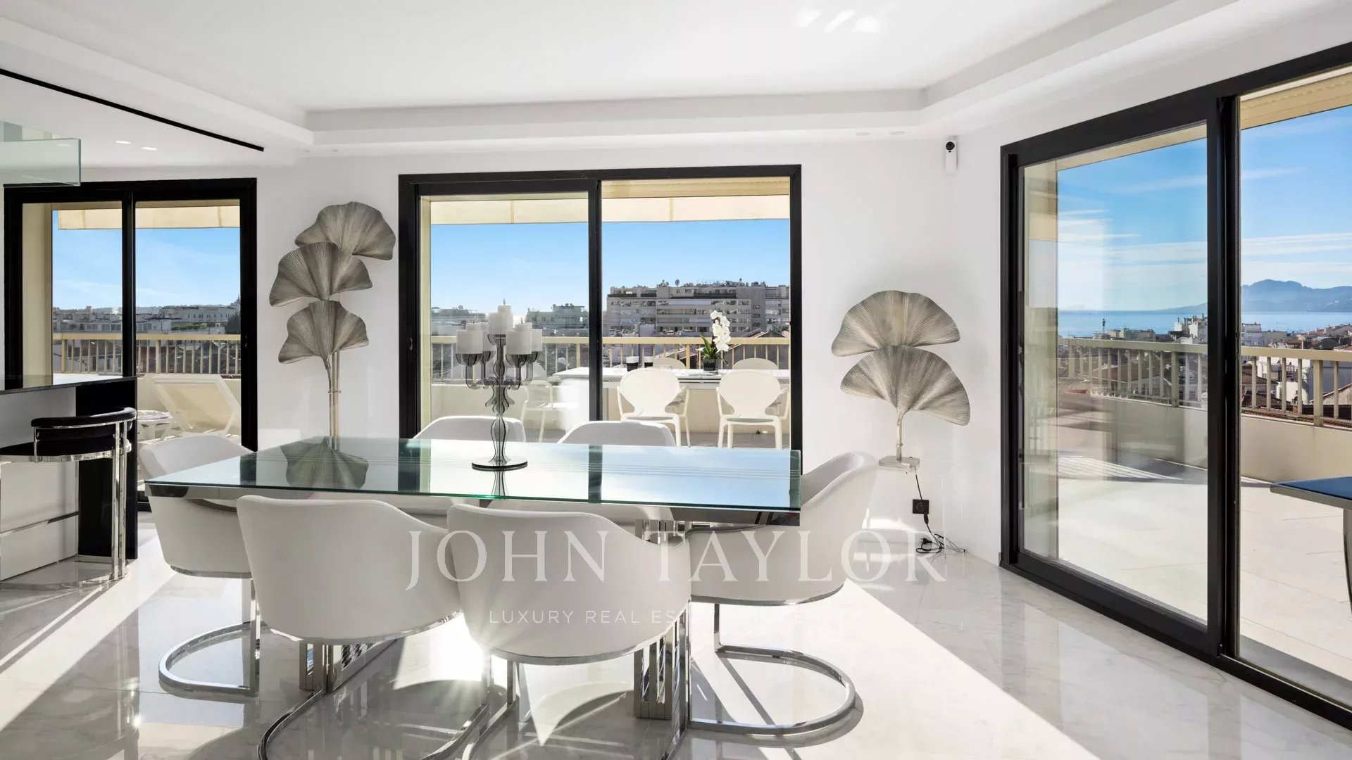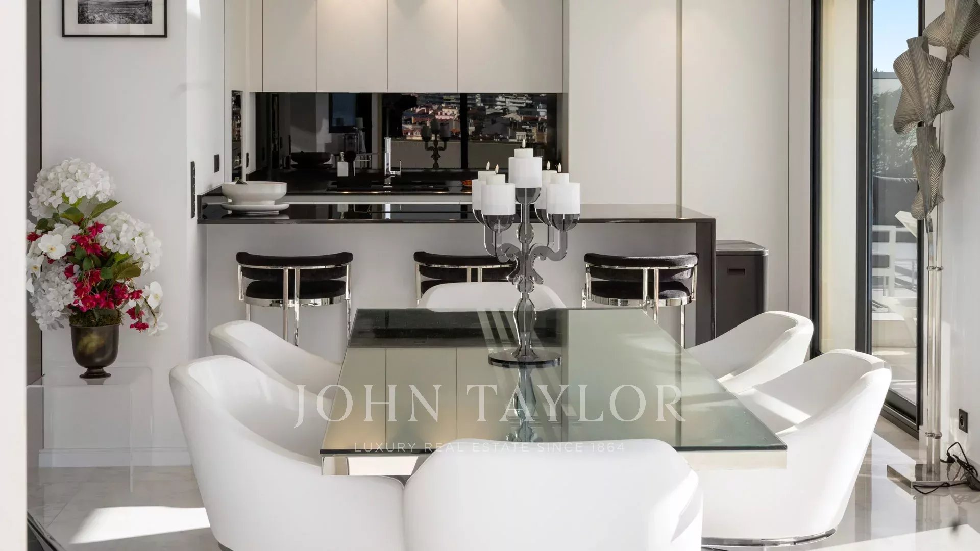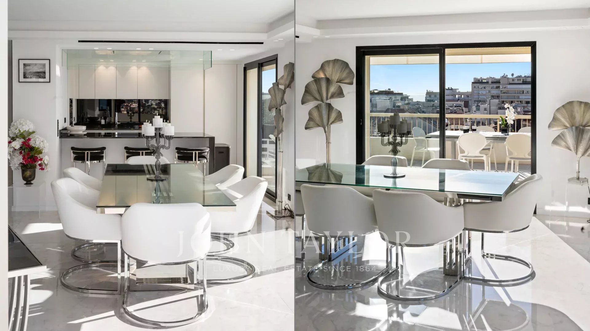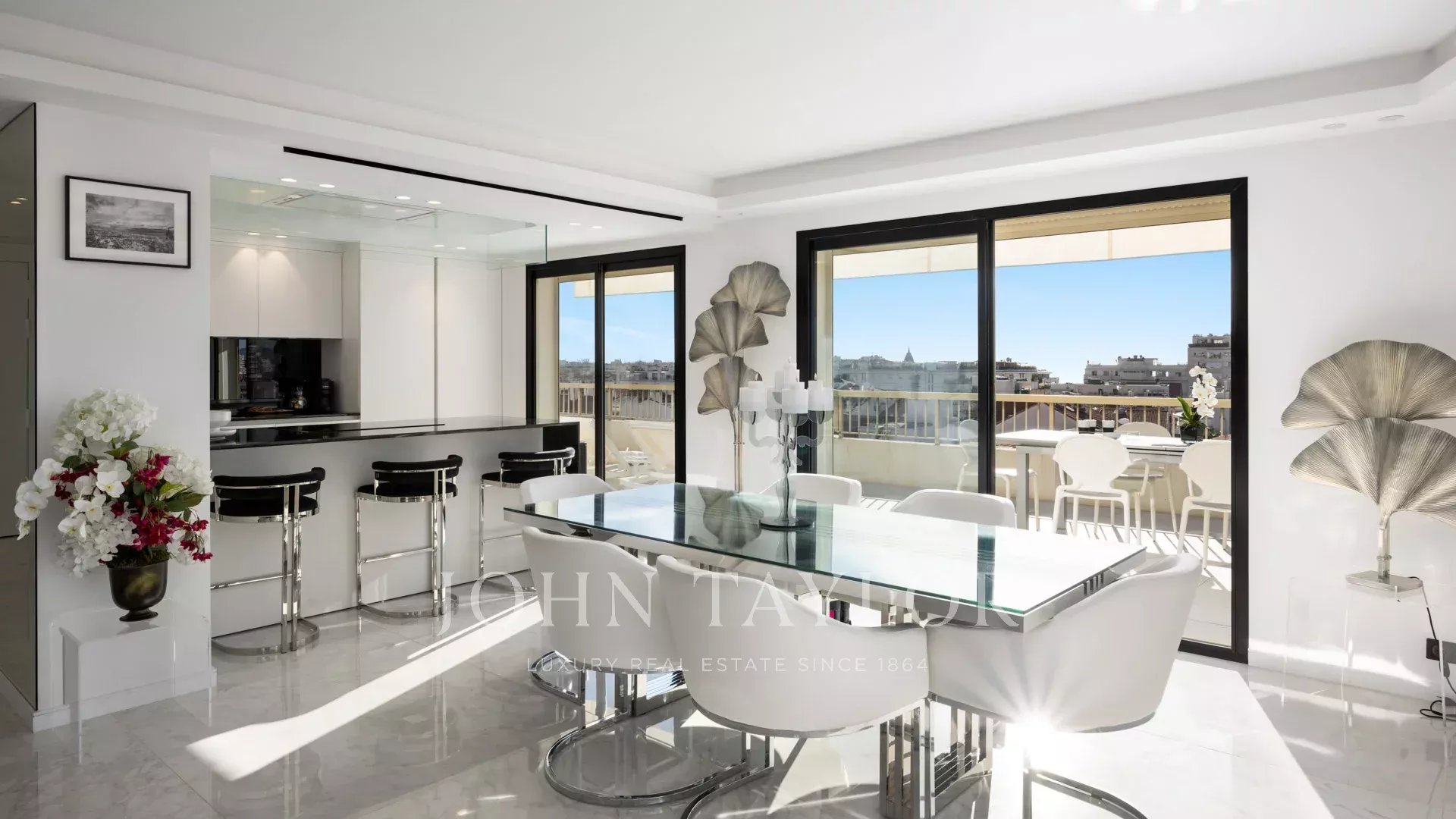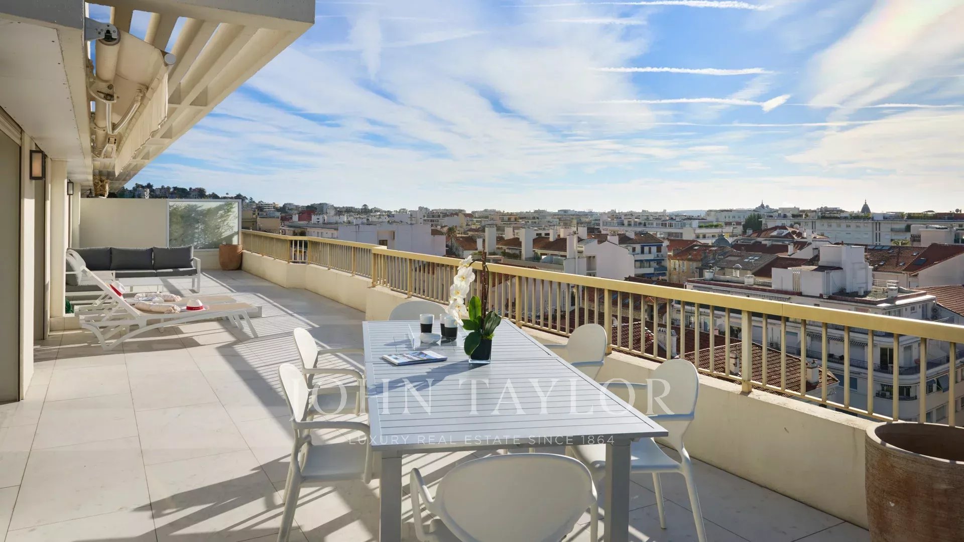 En una residencia del centro de Cannes, a pocos minutos a pie de las playas y del Palais des Festivals, este magnífico piso le conquistará por su decoración, sus prestaciones y su terraza panorámica de 180 m2 con vistas al mar.