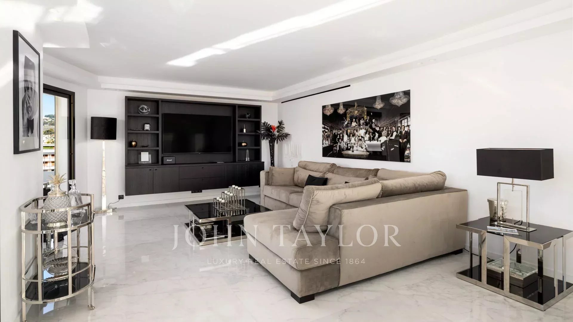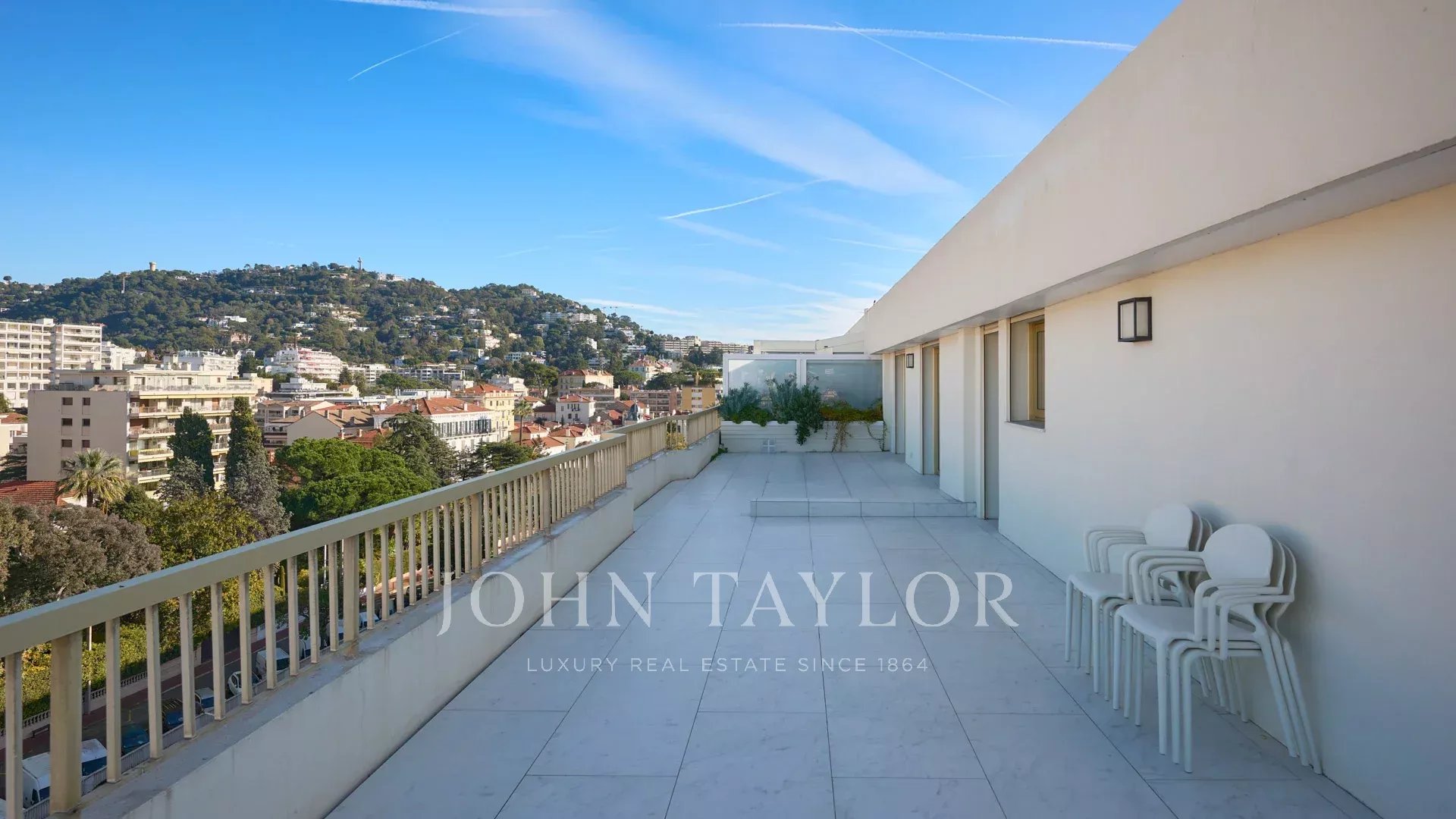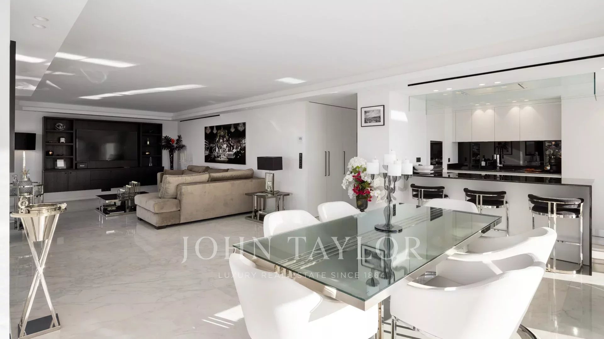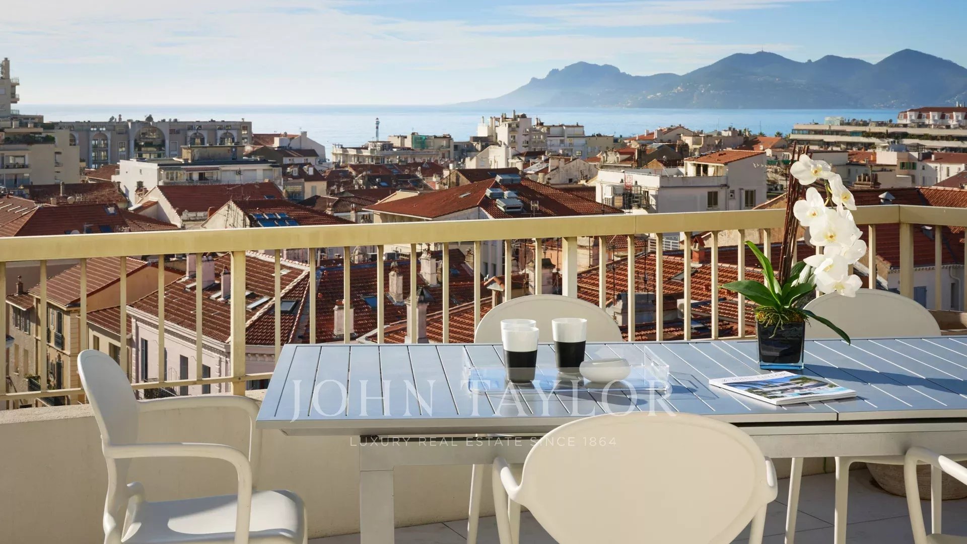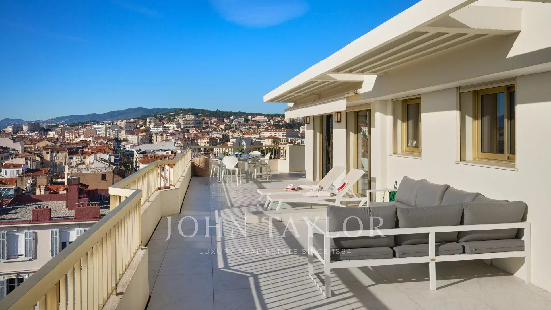 En una residencia del centro de Cannes, a pocos minutos a pie de las playas y del Palais des Festivals, este magnífico piso le conquistará por su decoración, sus prestaciones y su terraza panorámica de 180 m2 con vistas al mar.