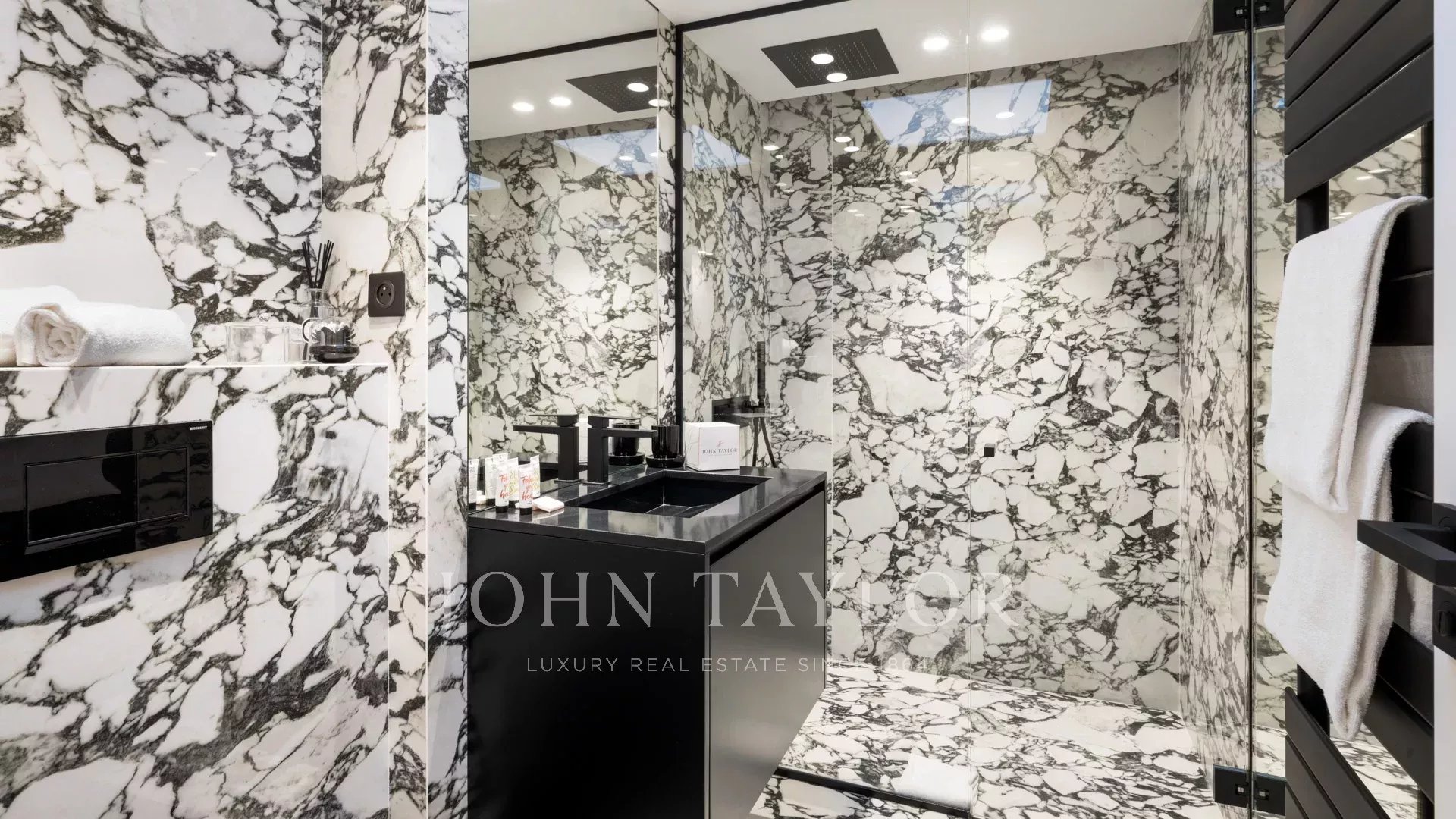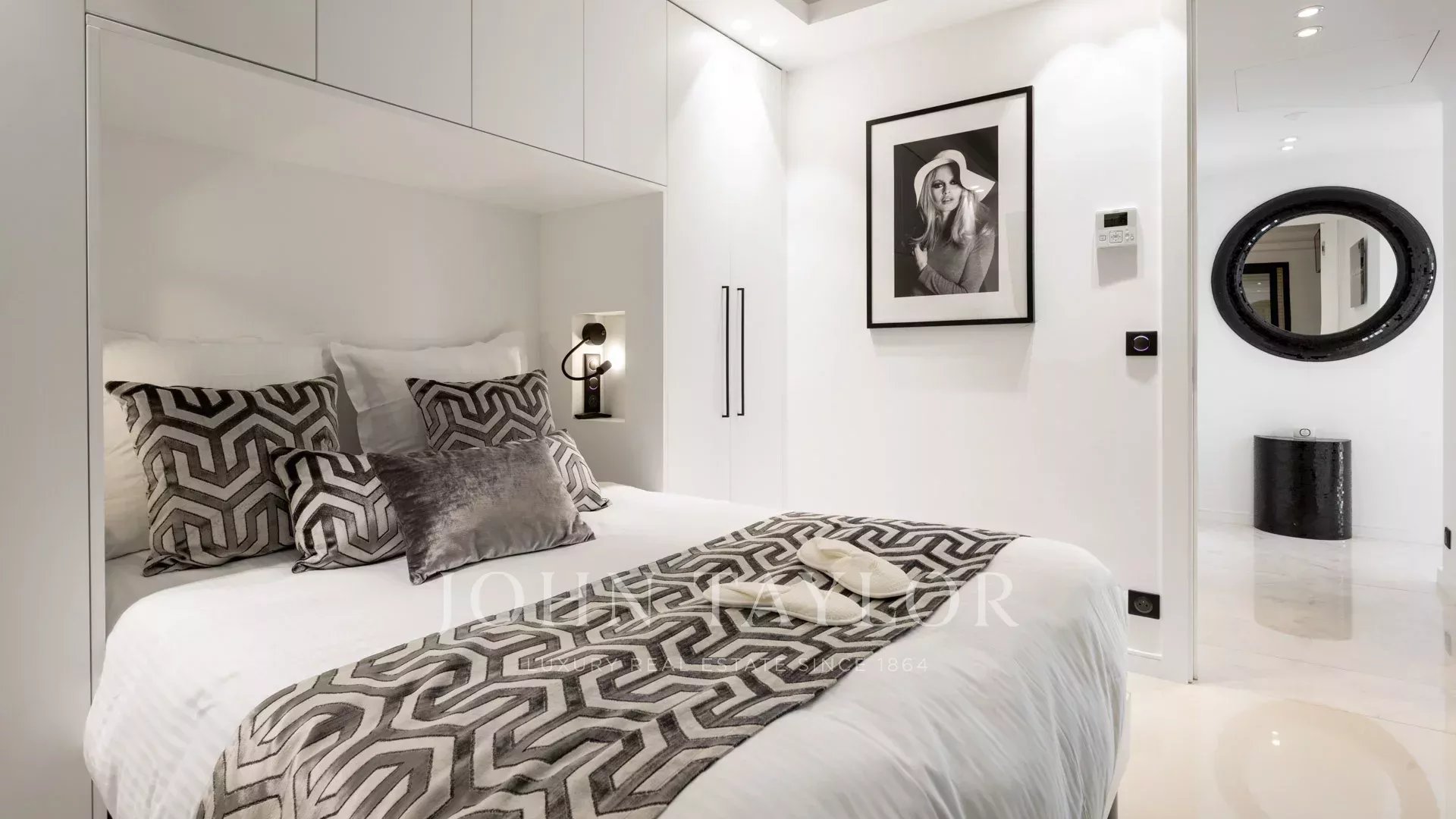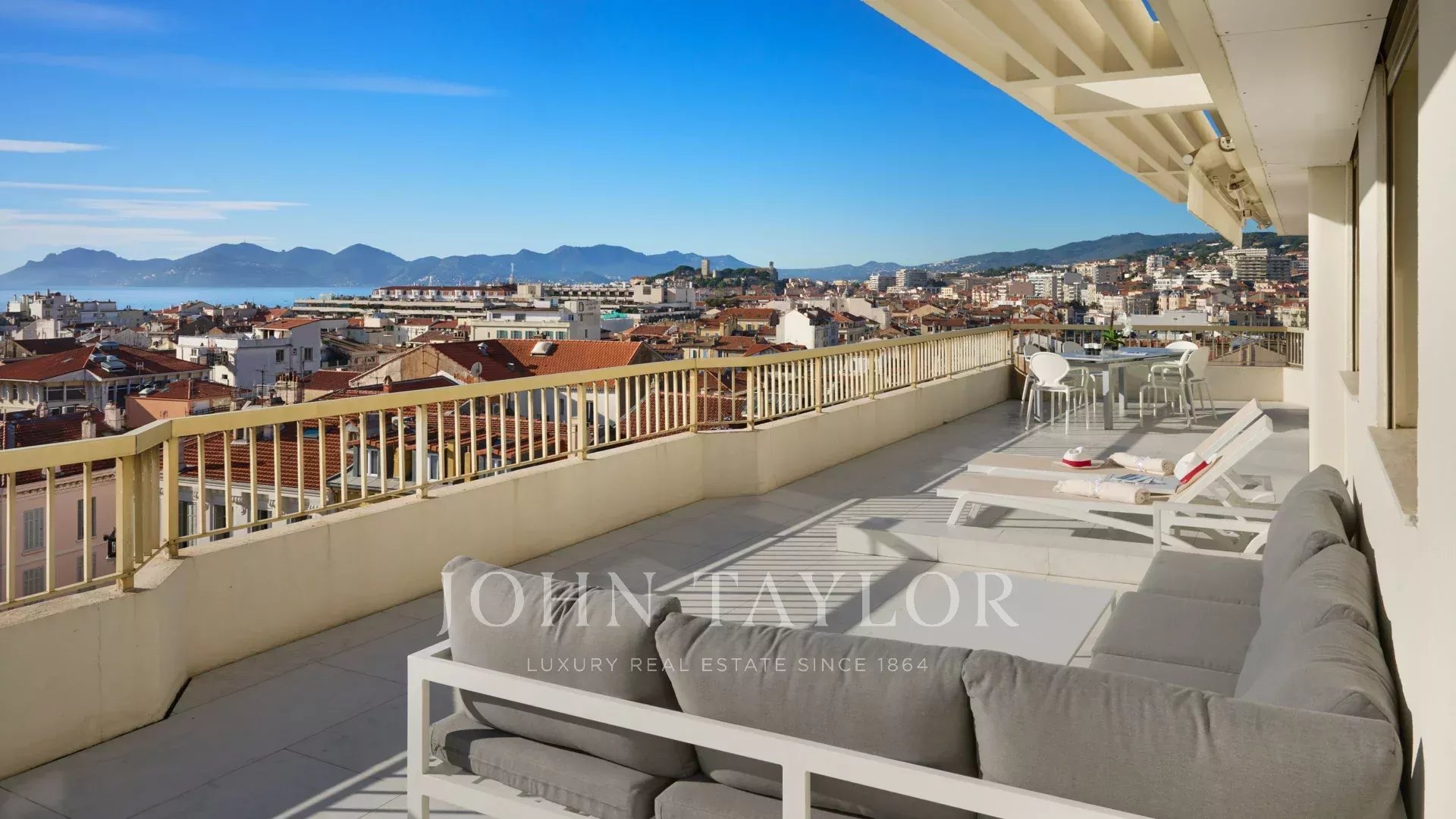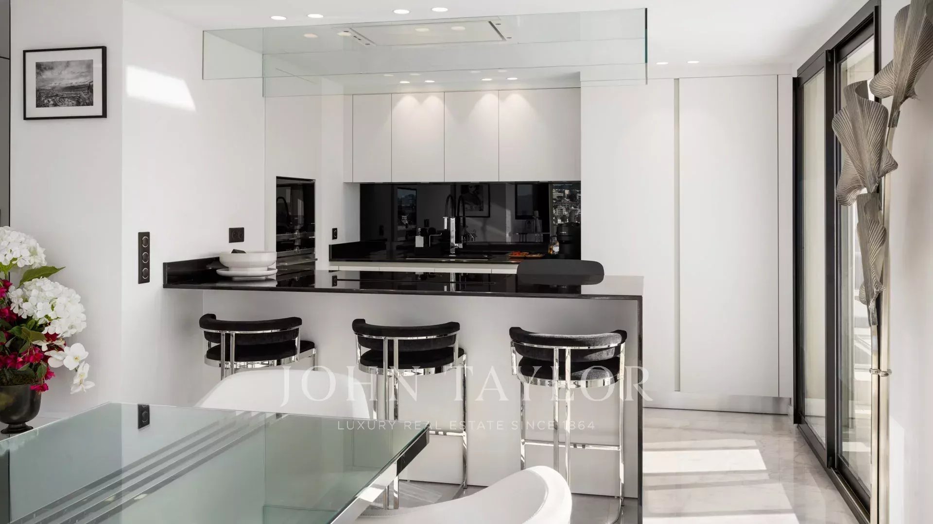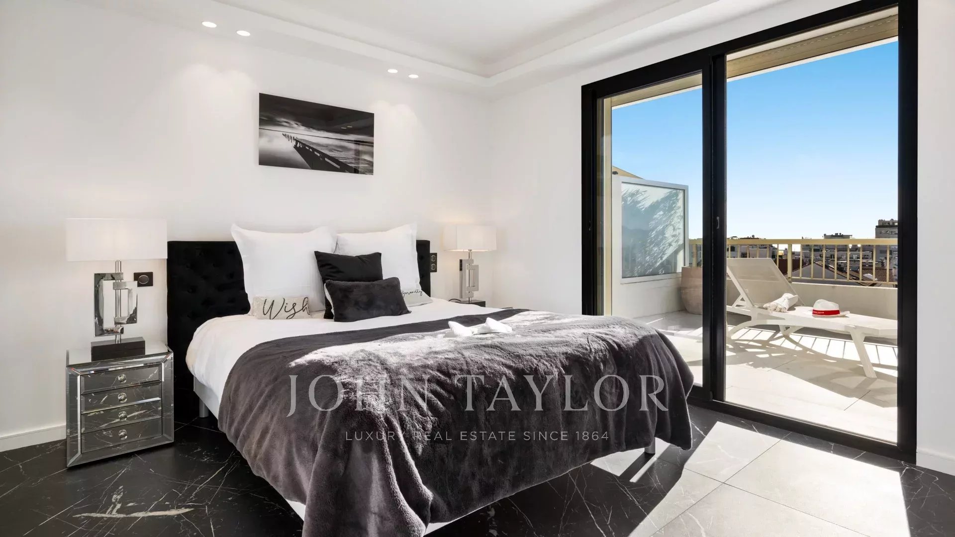 En una residencia del centro de Cannes, a pocos minutos a pie de las playas y del Palais des Festivals, este magnífico piso le conquistará por su decoración, sus prestaciones y su terraza panorámica de 180 m2 con vistas al mar.