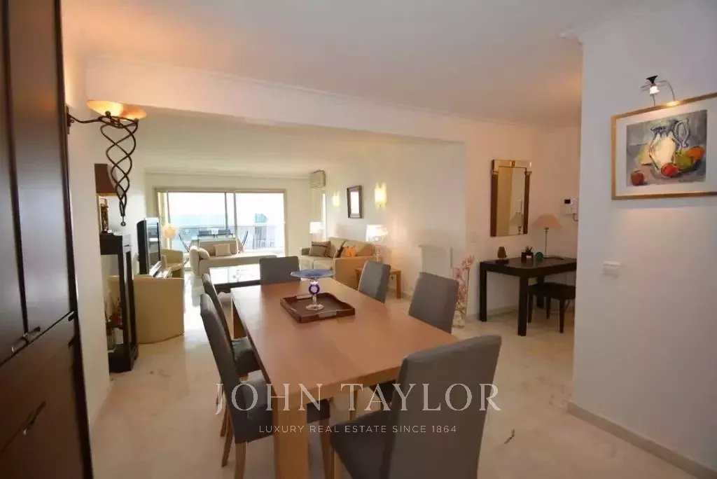 Gran salón/comedor con salida a la terraza, vistas al mar, al Palais des Festivals y al Suquet