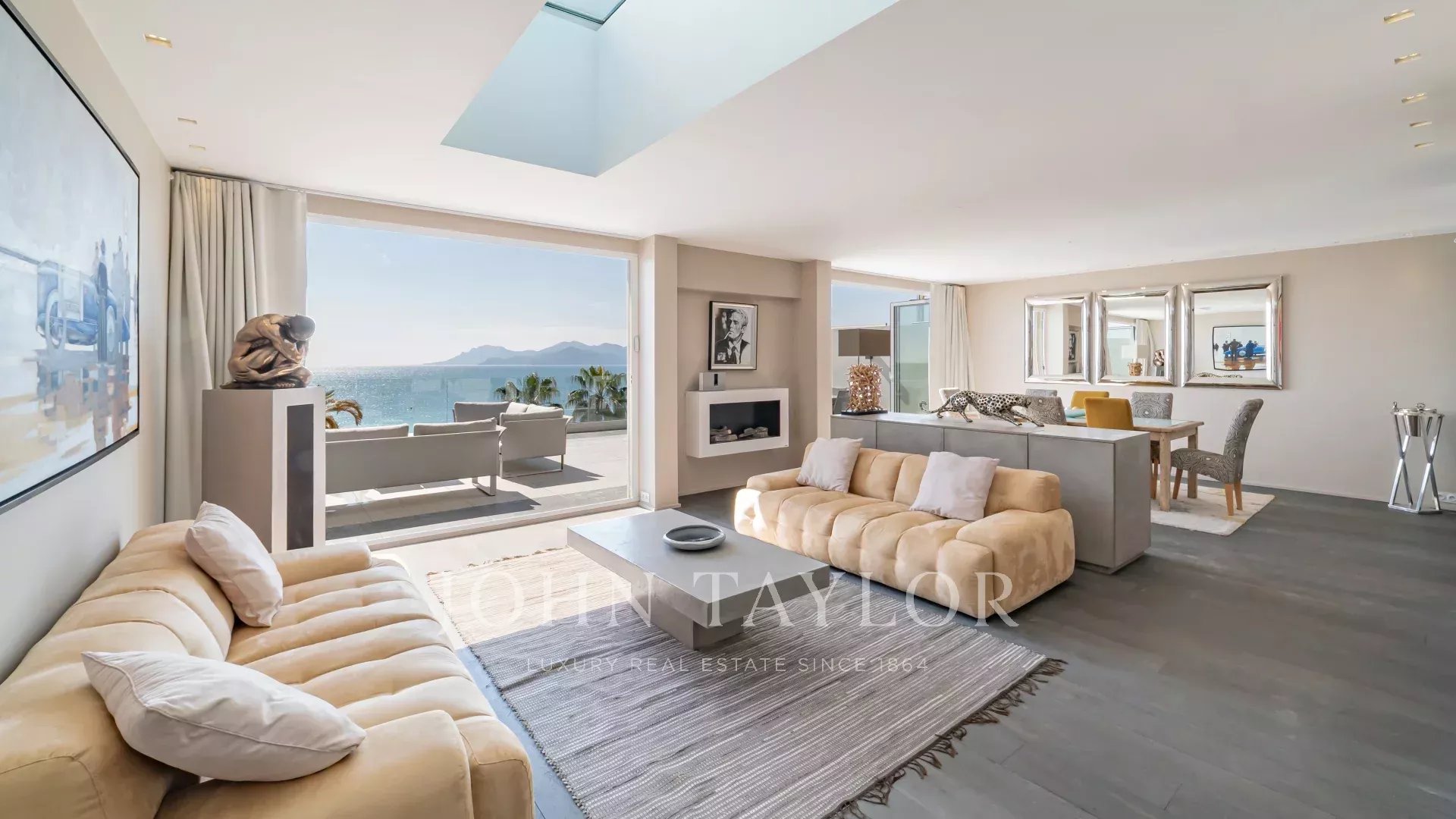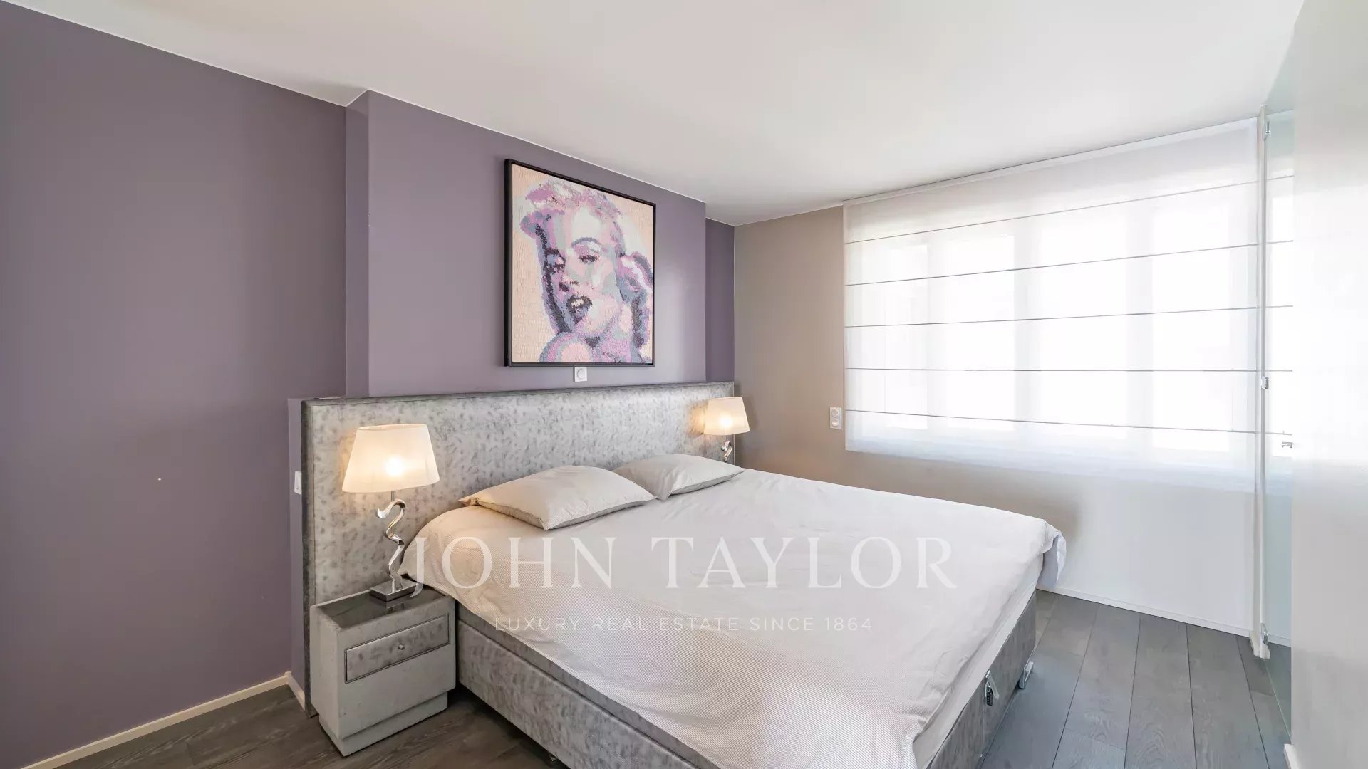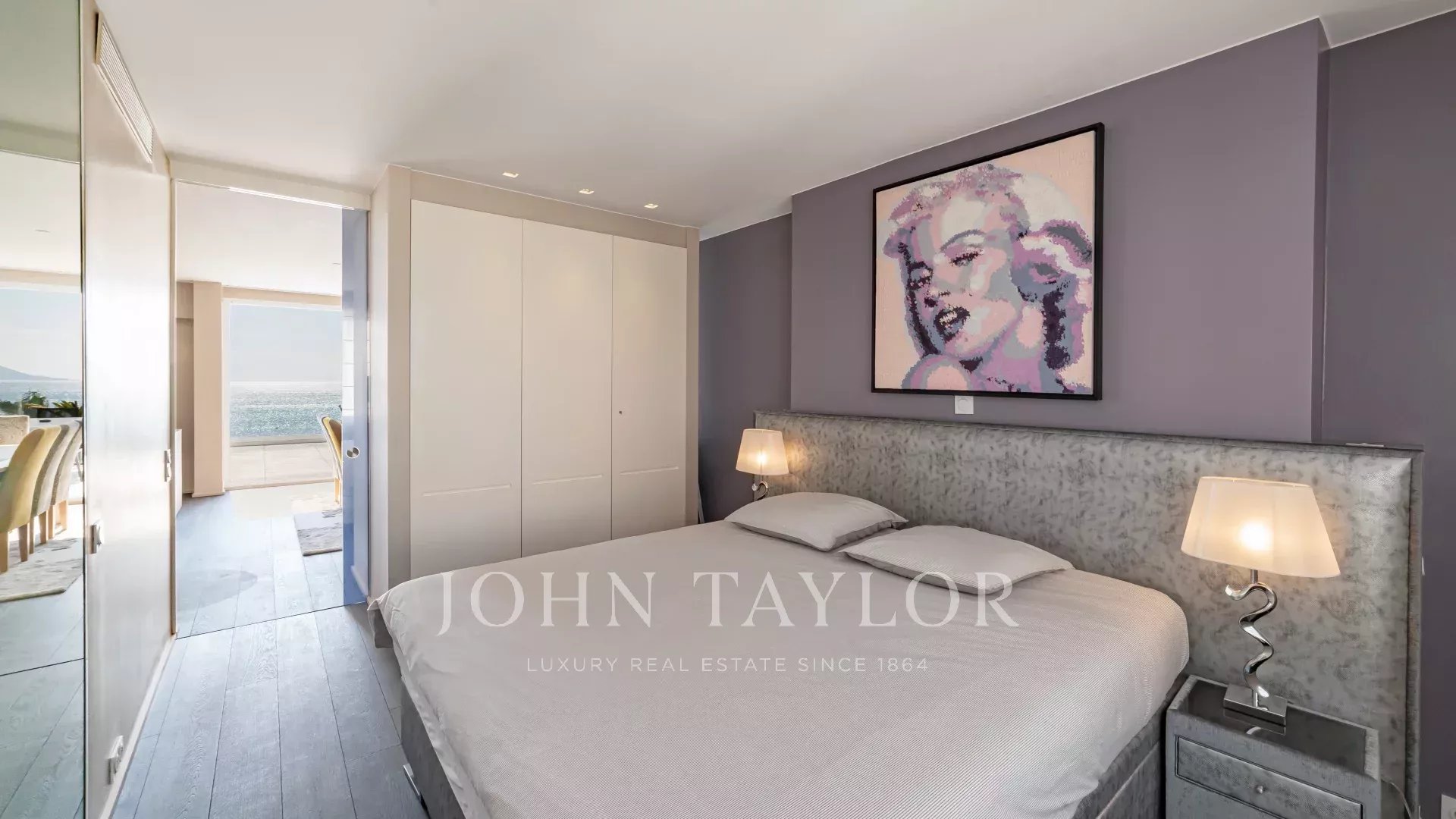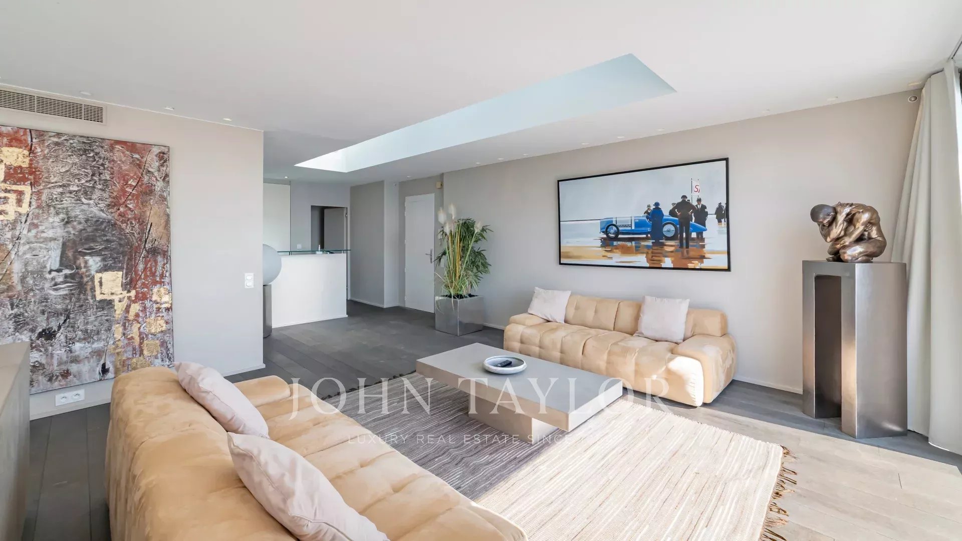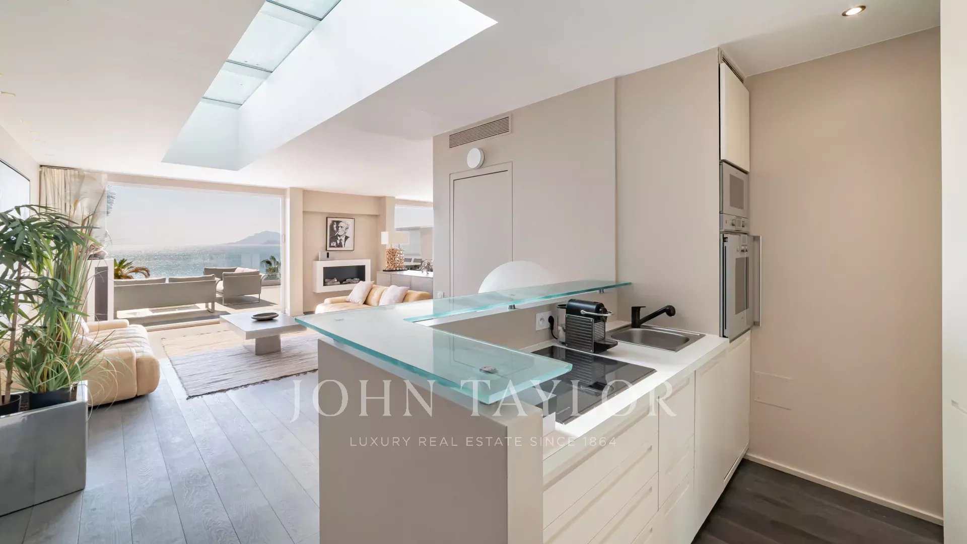 Bonito piso de 95 m2, totalmente renovado, con aire acondicionado, en la 5ª y última planta de una residencia en la Croisette, entre el Hotel Carlton y el Palais Miramar, vista al mar.