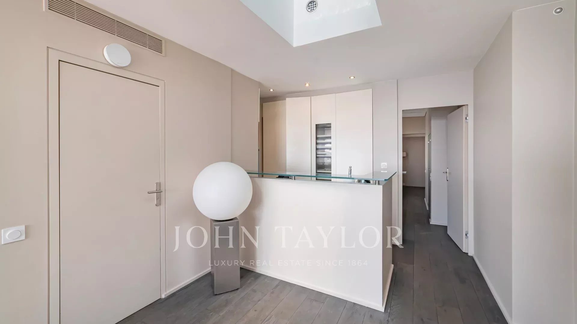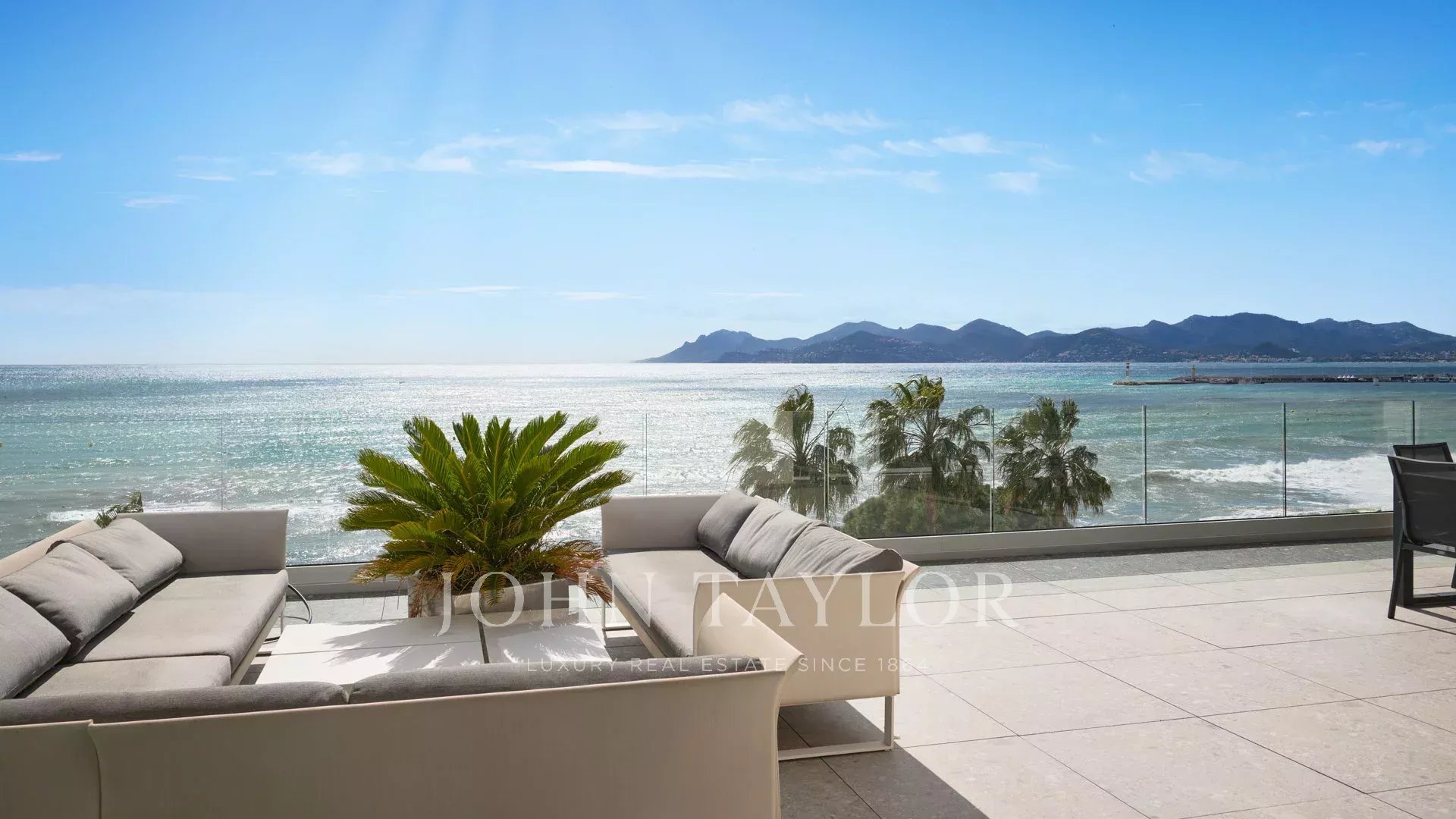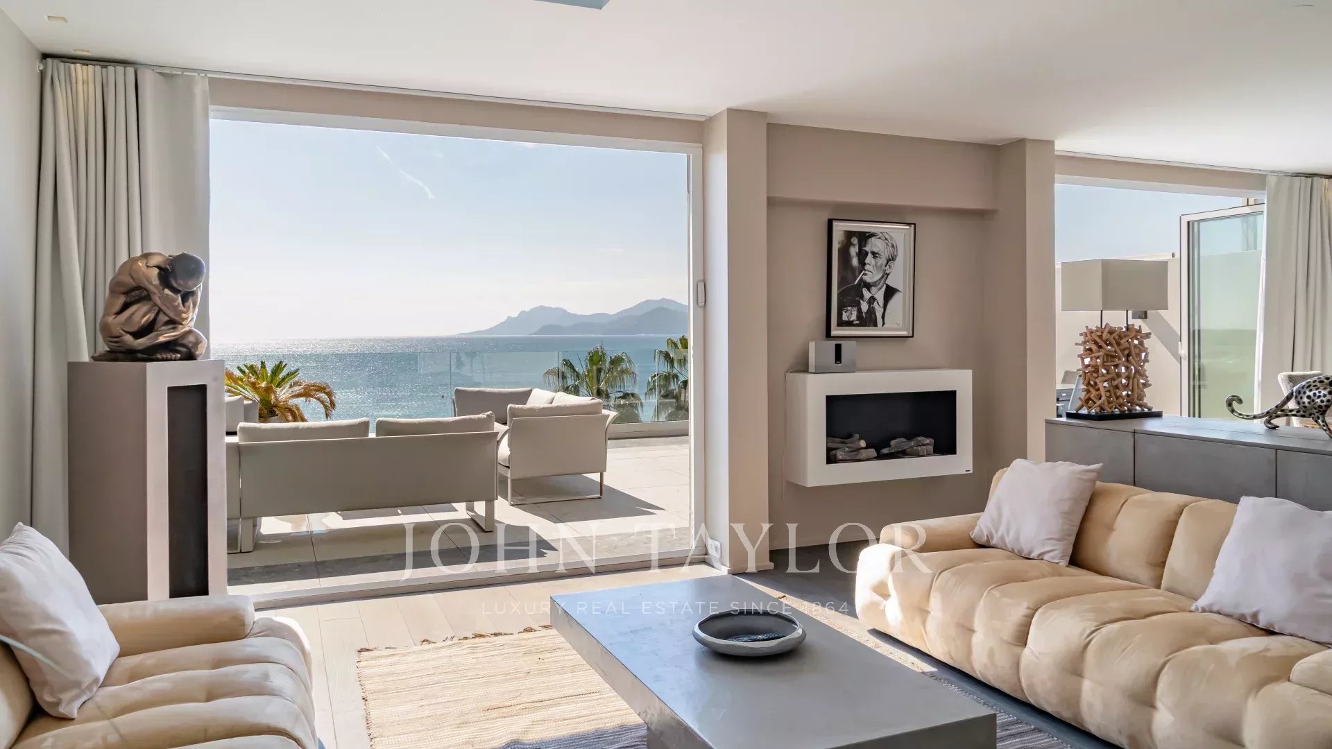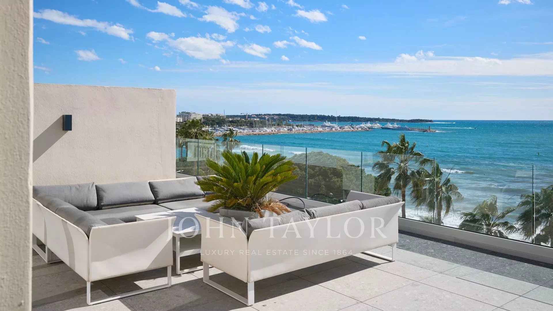 Bonito piso de 95 m2, totalmente renovado, con aire acondicionado, en la 5ª y última planta de una residencia en la Croisette, entre el Hotel Carlton y el Palais Miramar, vista al mar.