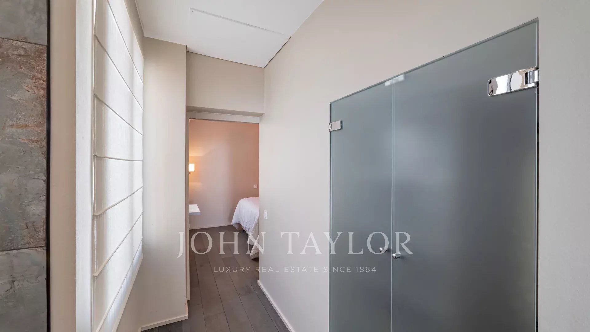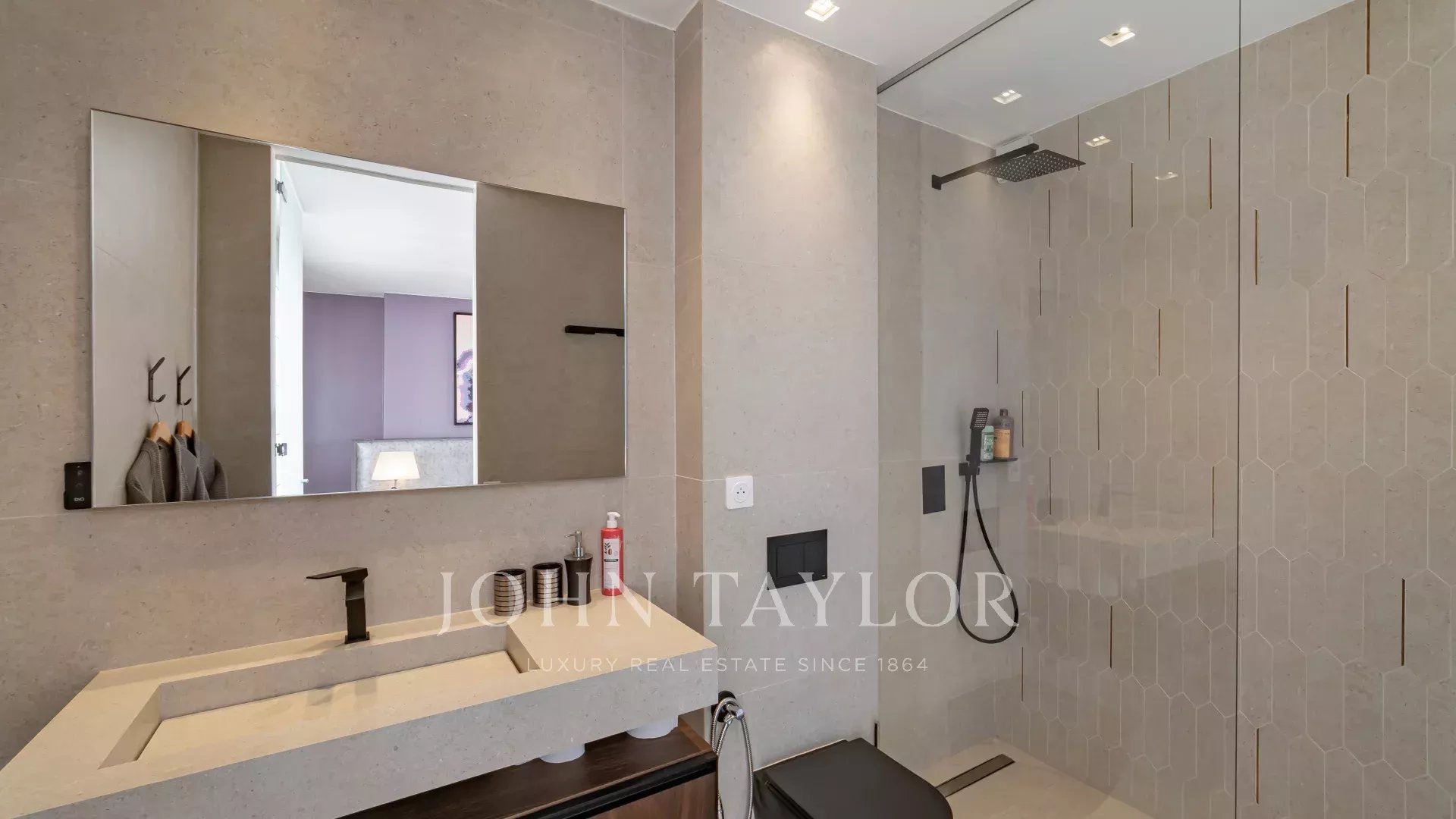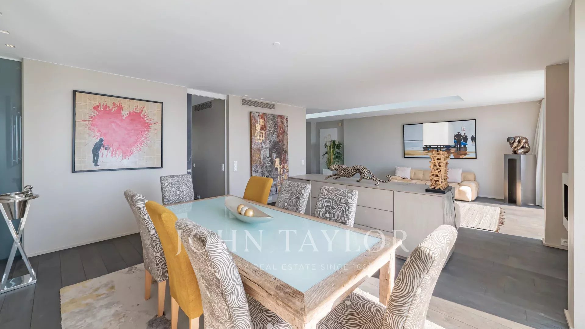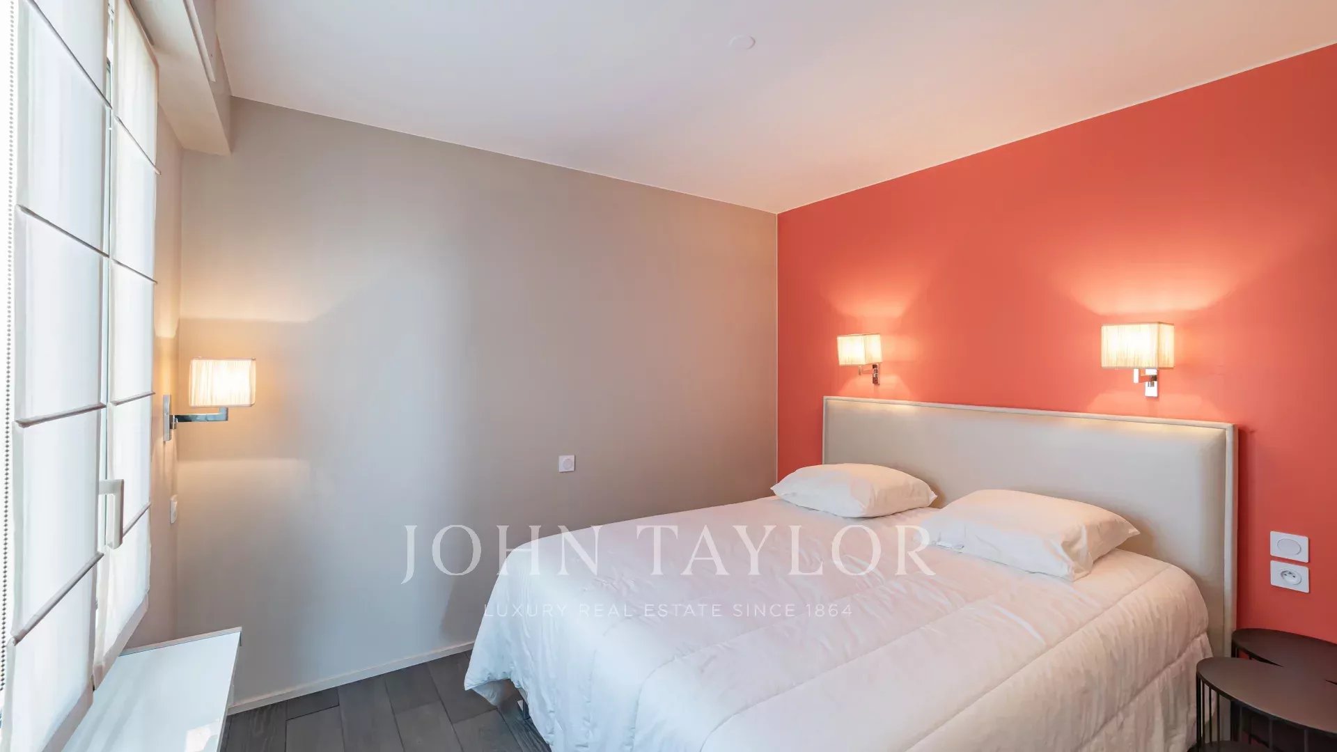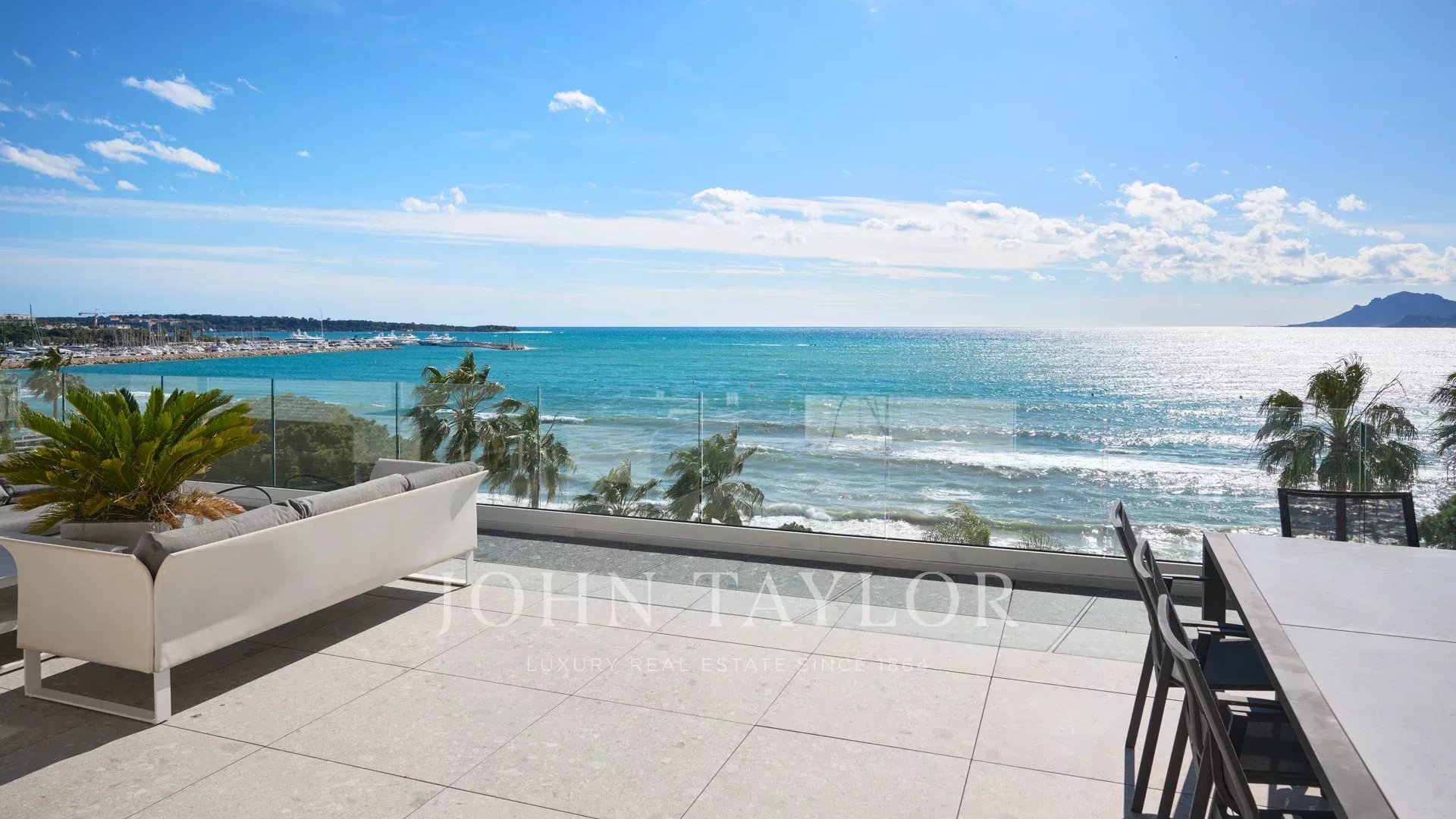 Bonito piso de 95 m2, totalmente renovado, con aire acondicionado, en la 5ª y última planta de una residencia en la Croisette, entre el Hotel Carlton y el Palais Miramar, vista al mar.