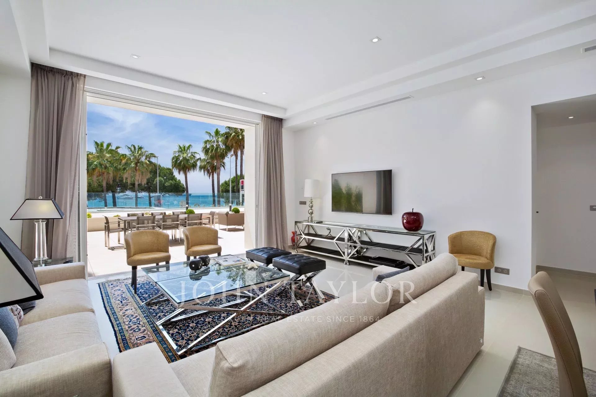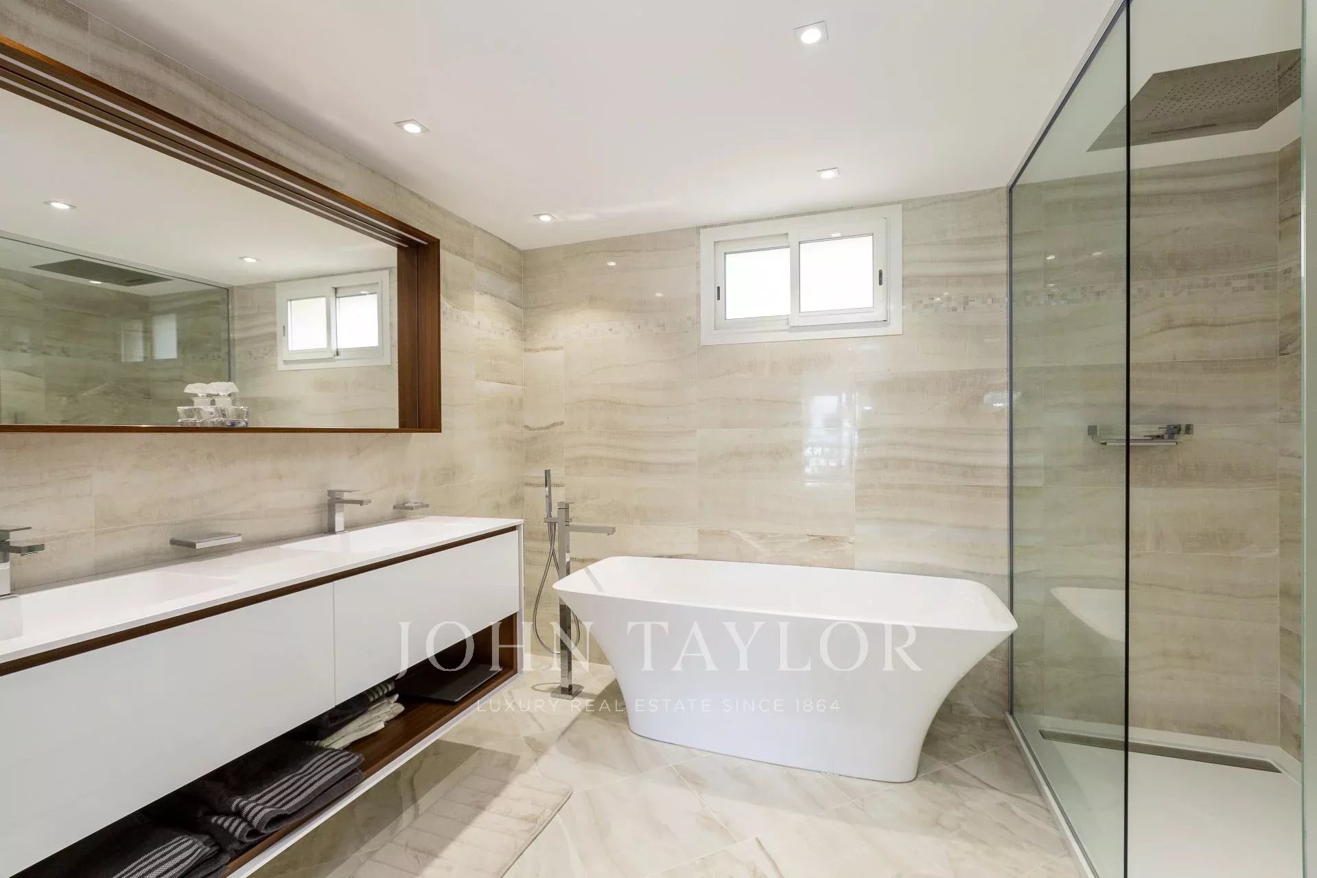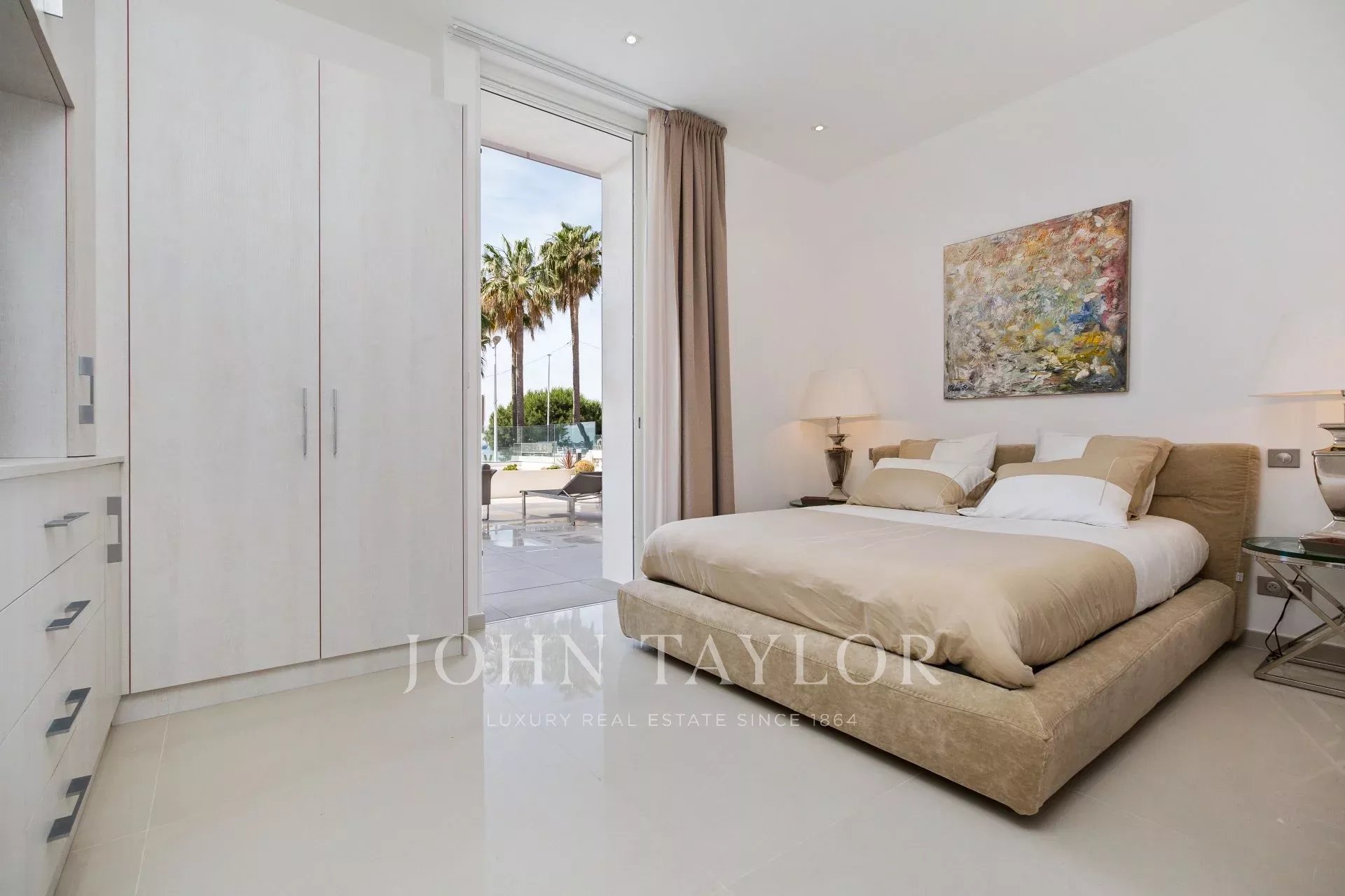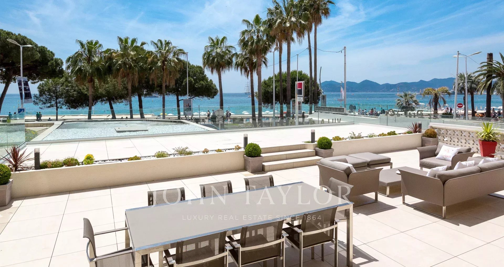 En la Croisette, junto al Hotel Carlton, en una pequeña residencia catalogada, magnífico piso contemporáneo de unos 215 m2 de superficie habitable.