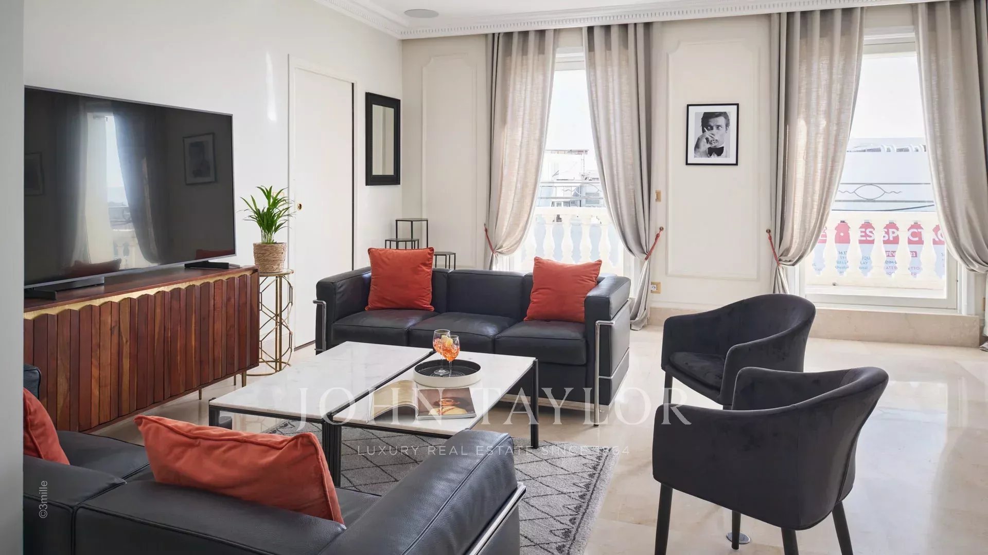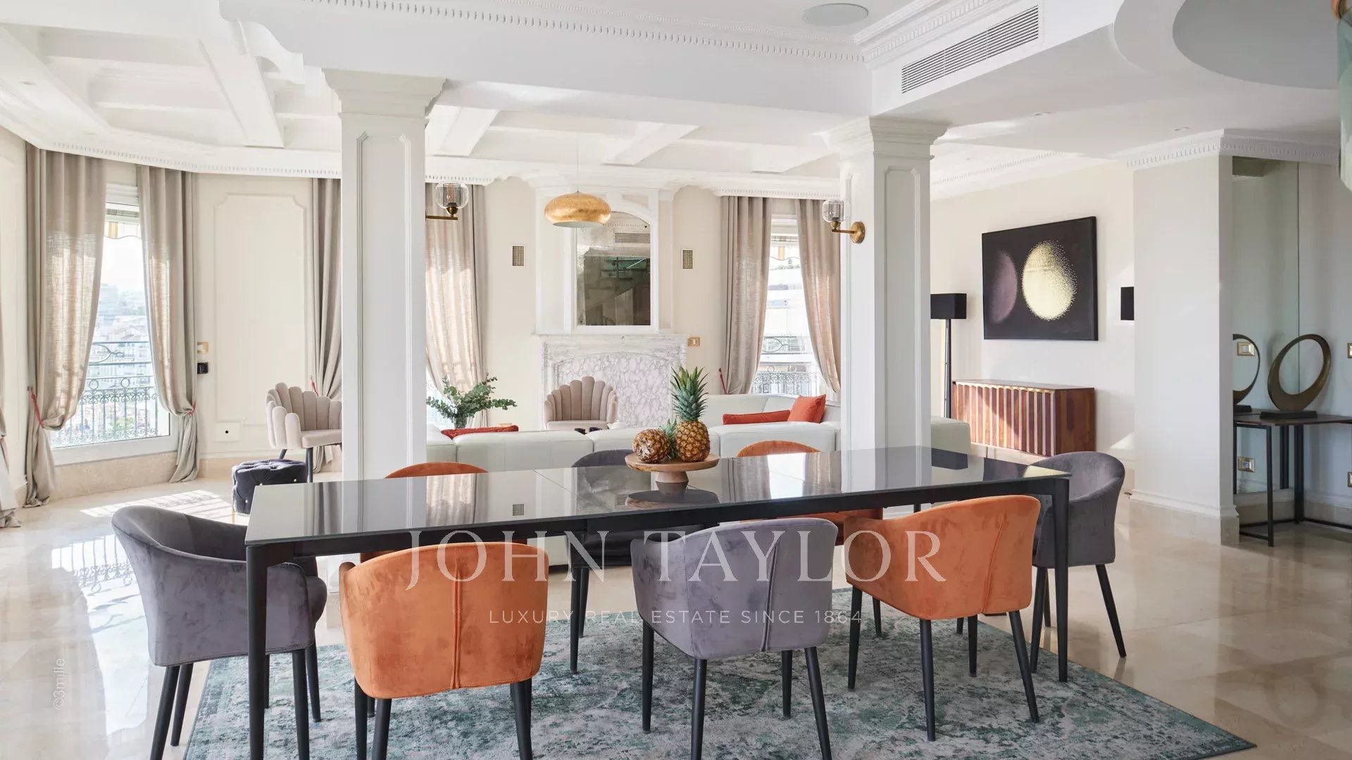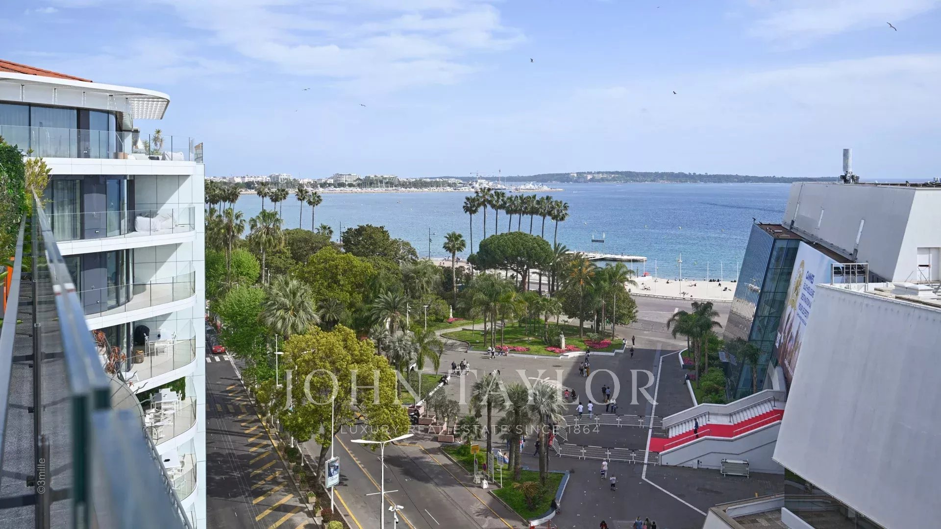 Situado frente al Palais des Festivals, este espléndido ático de 240 m2 ofrece una oportunidad única de alquiler de temporada.
