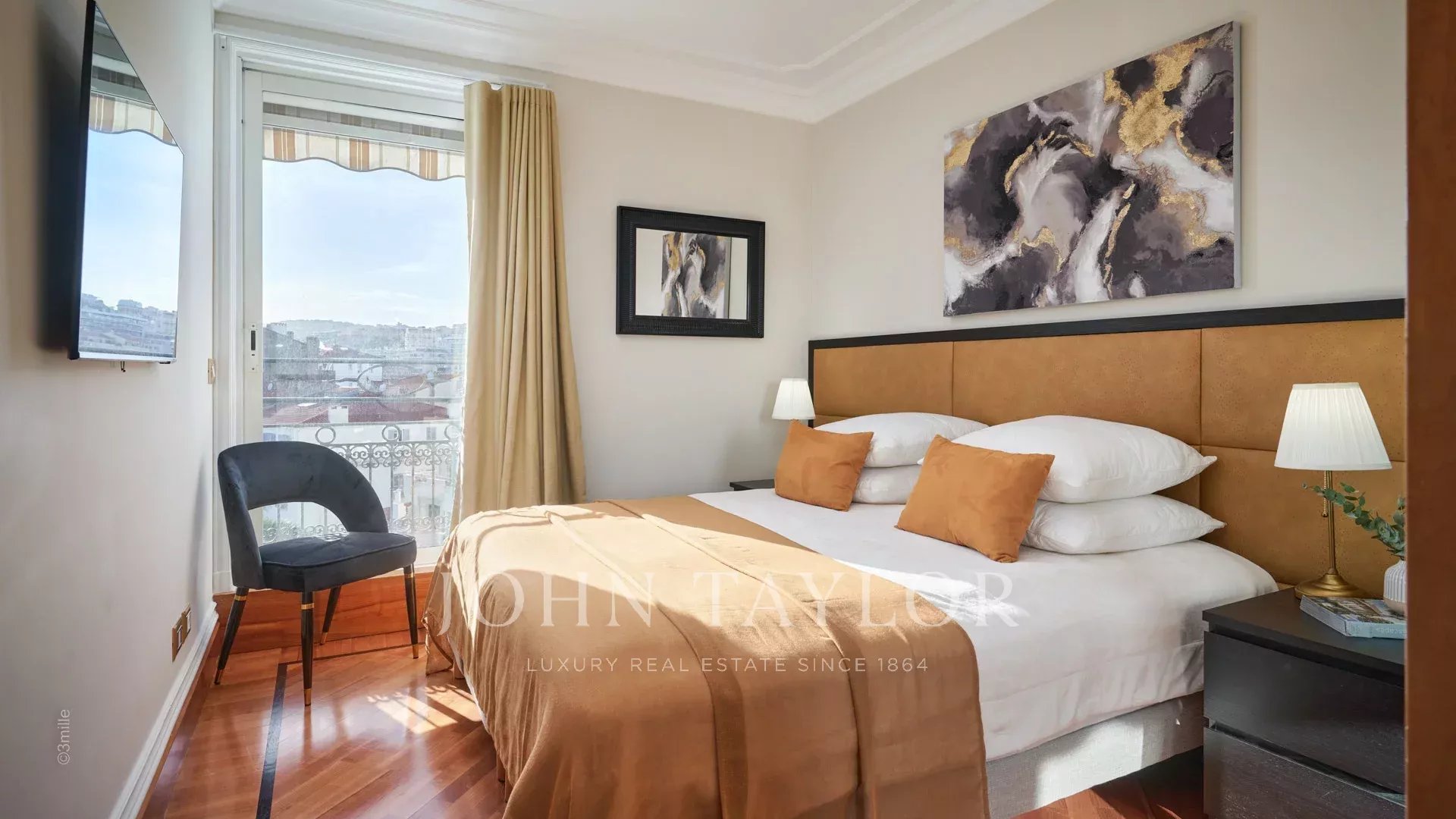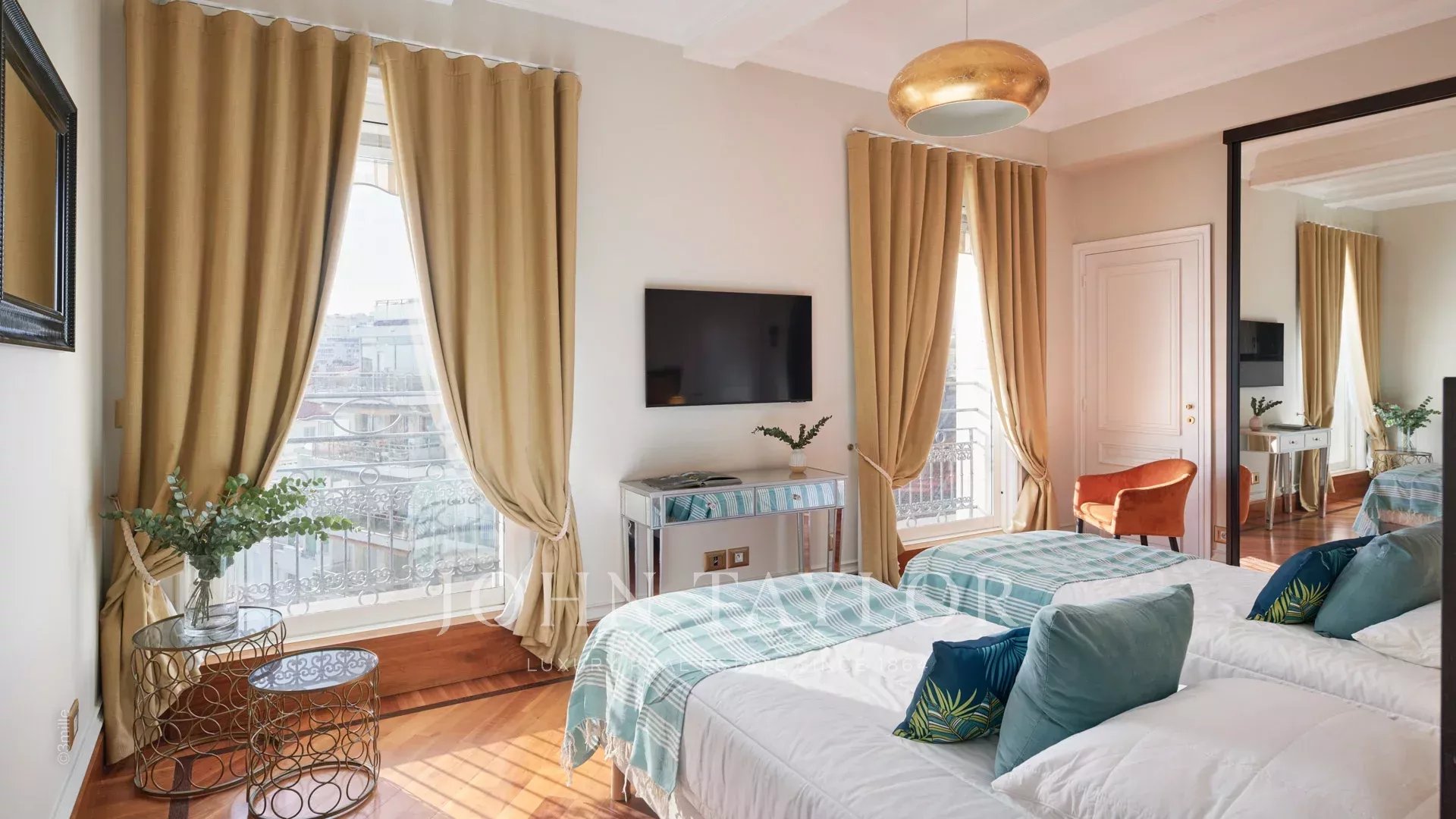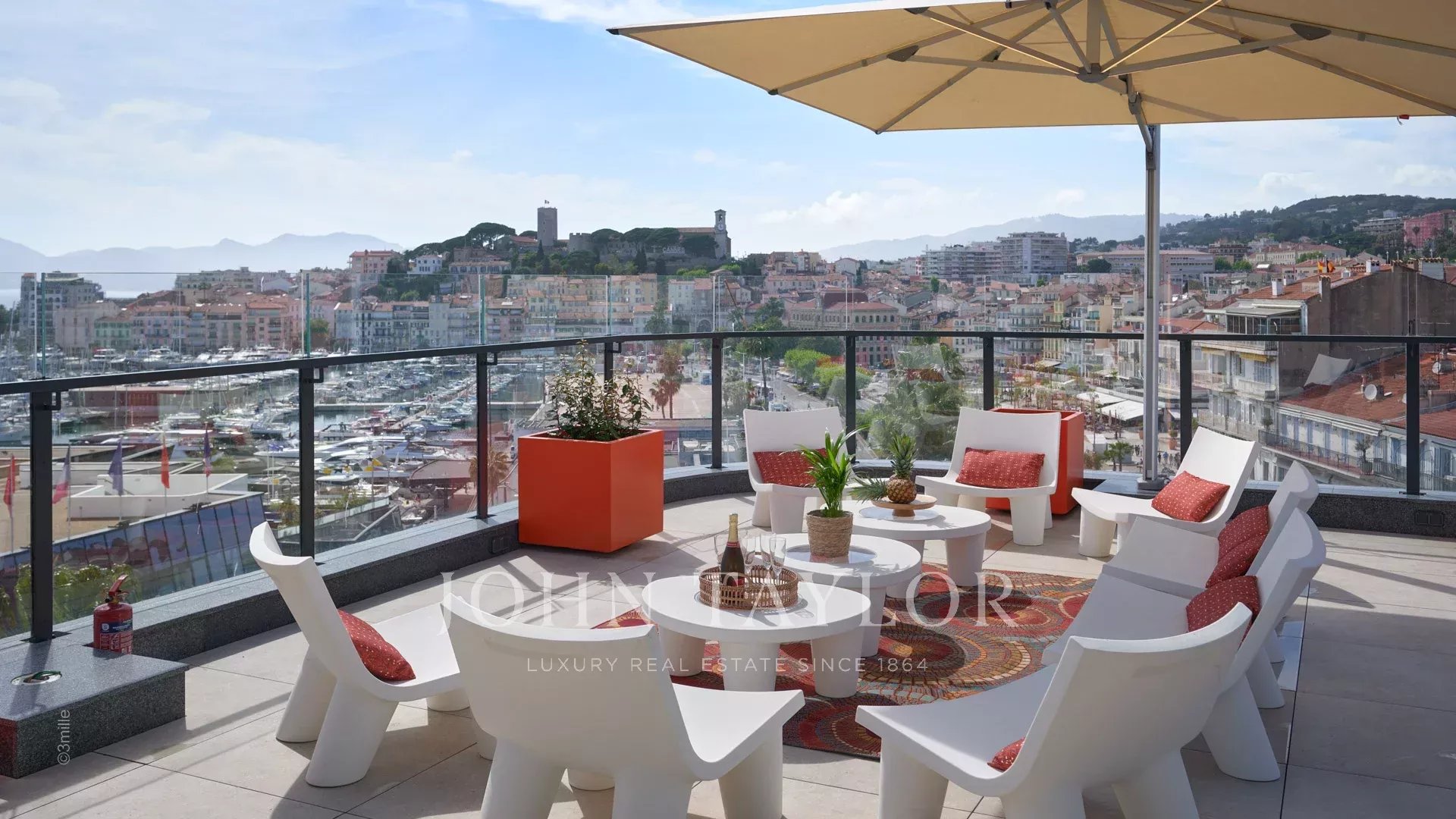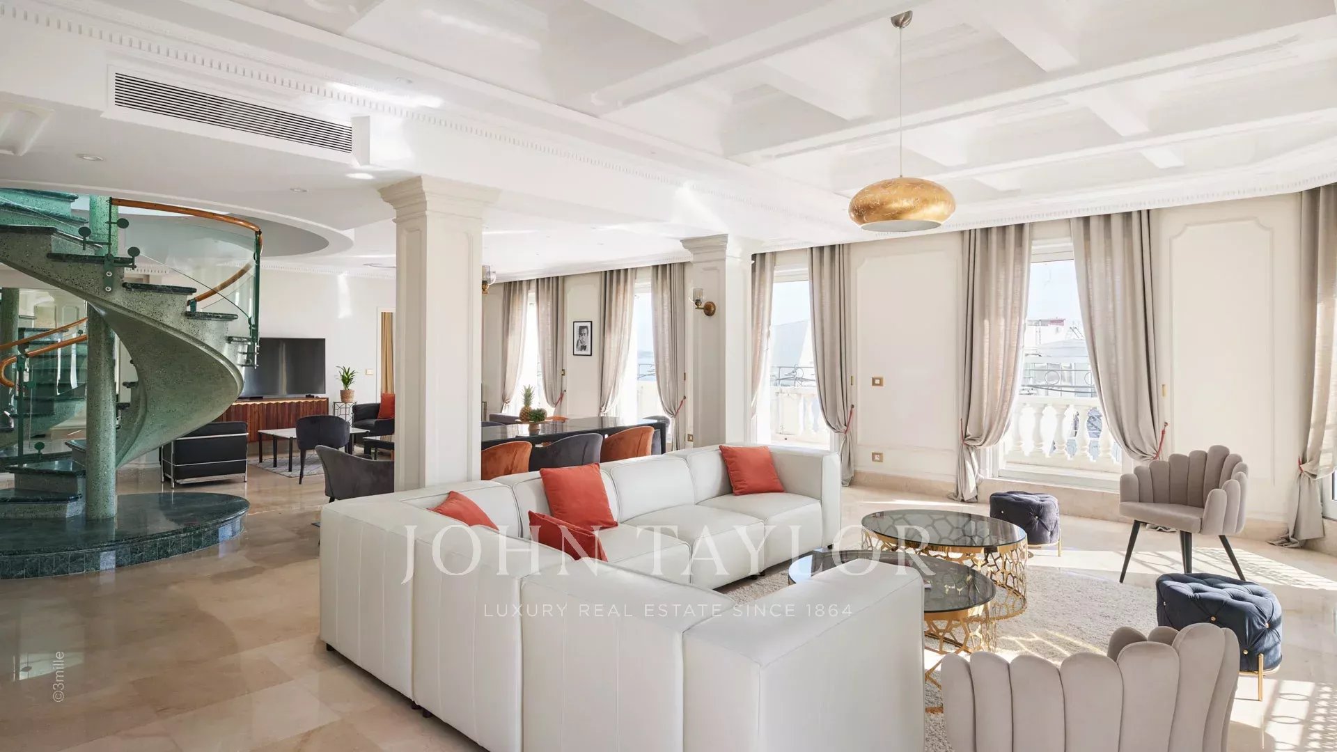 Situado frente al Palais des Festivals, este espléndido ático de 240 m2 ofrece una oportunidad única de alquiler de temporada.