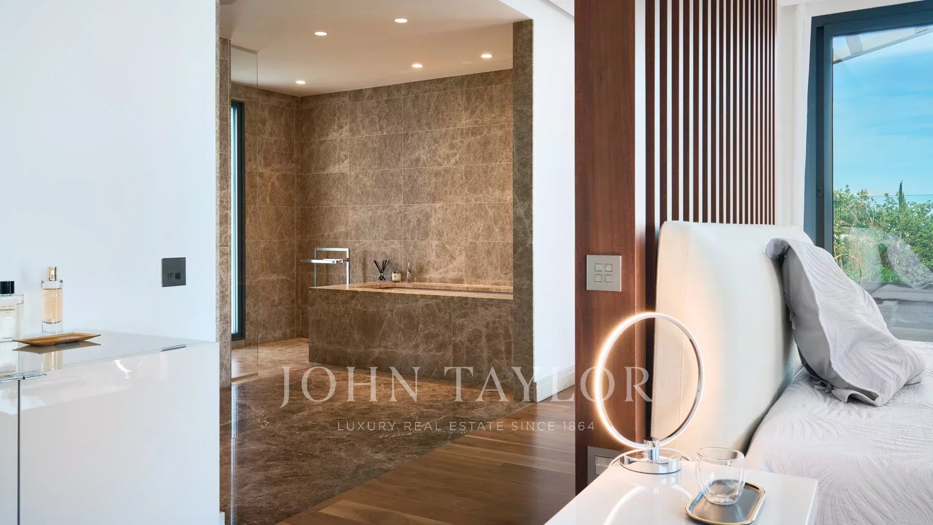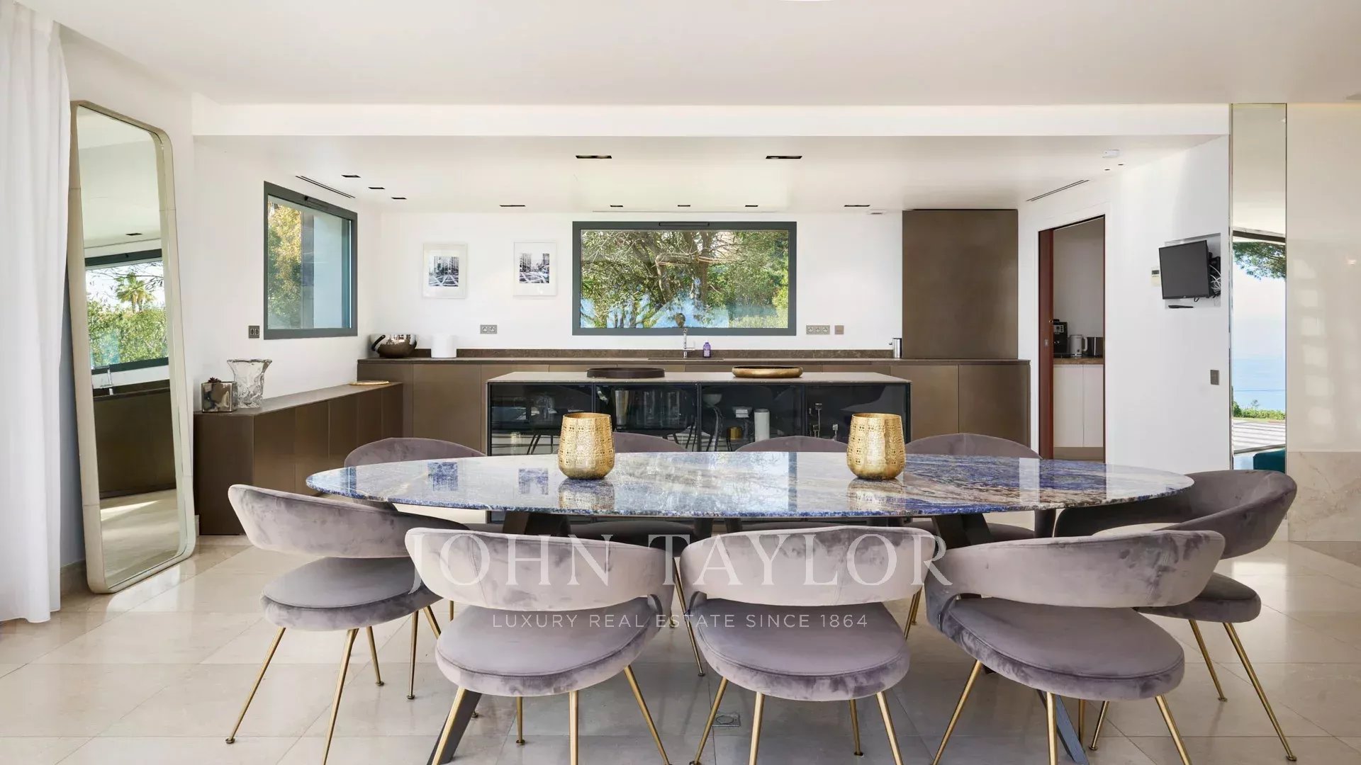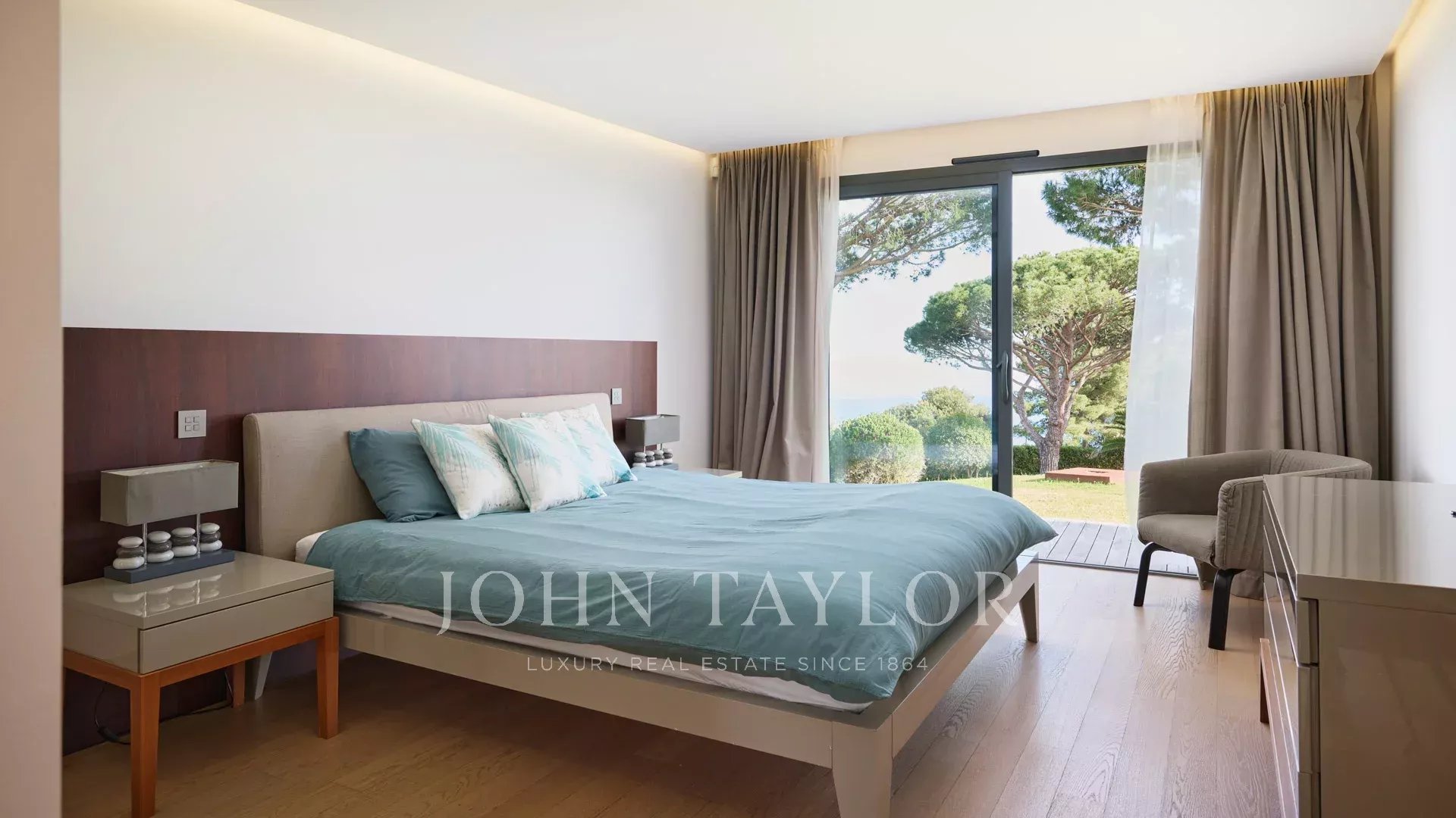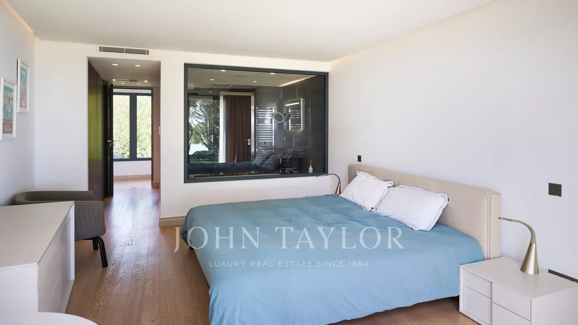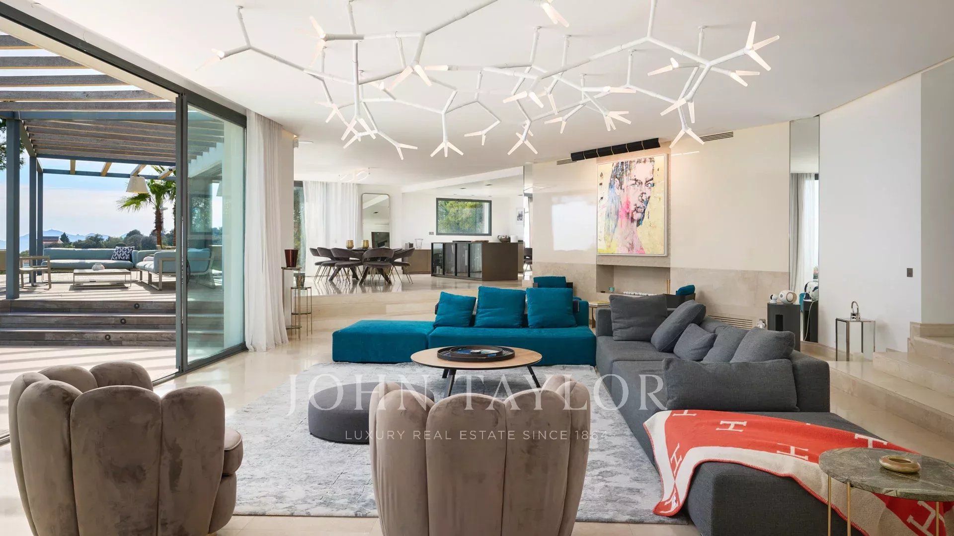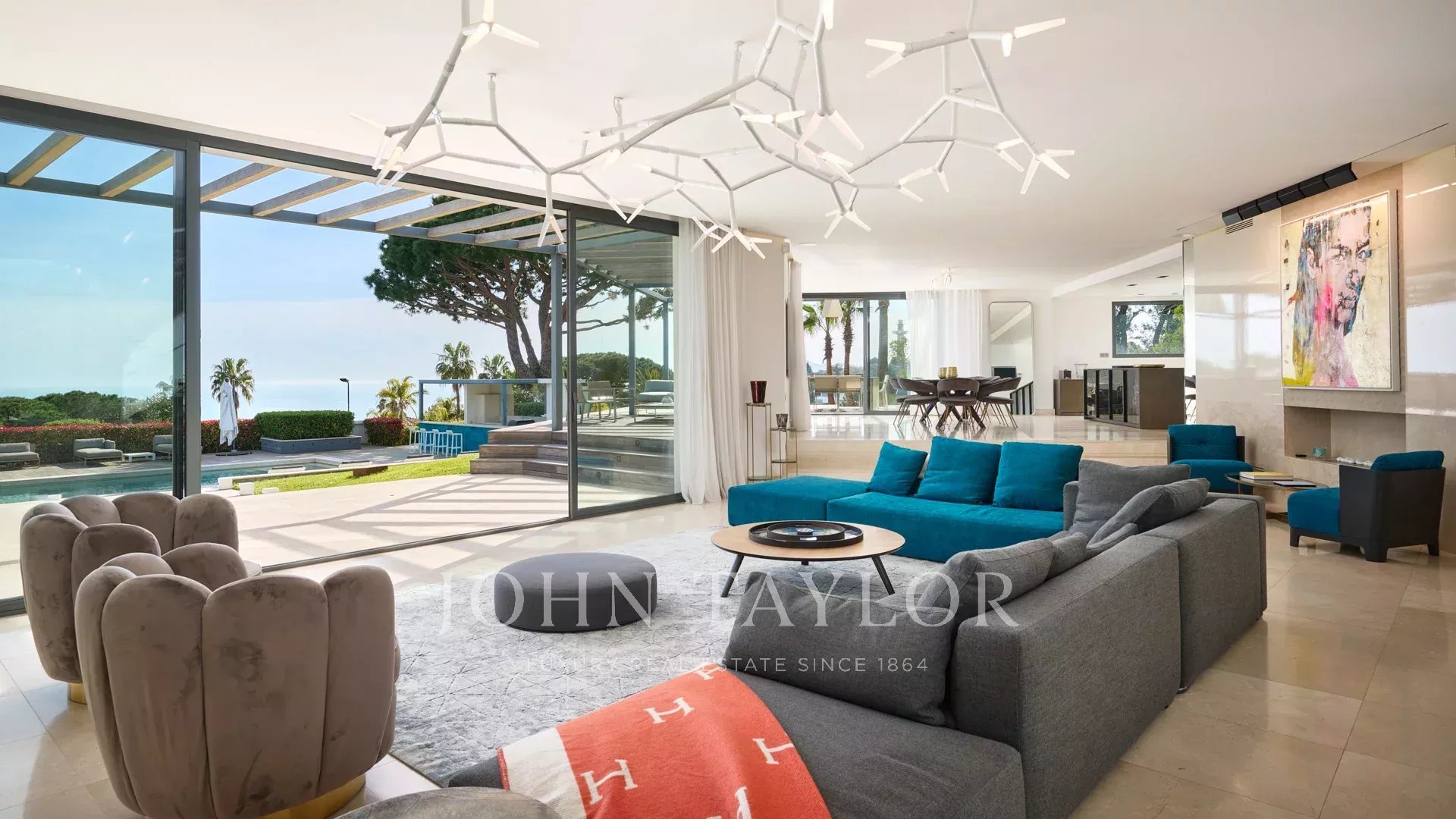 En las colinas de Cannes, con una vista panorámica única de las islas Lérins, esta magnífica villa contemporánea combina madera y hormigón en el corazón de 6.200 m2 de parque. Completamente renovada, la villa cuenta con volúmenes generosos, equipamientos de alta gama y tres grandes terrazas.