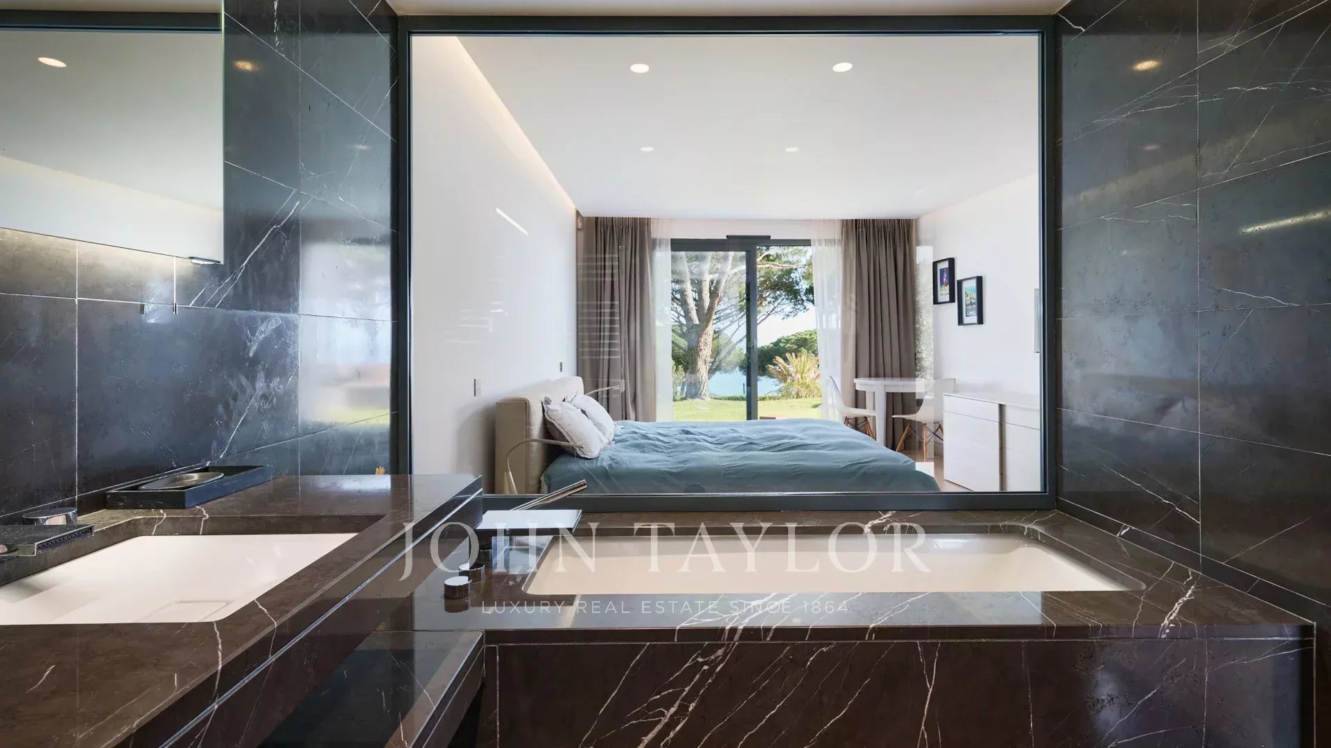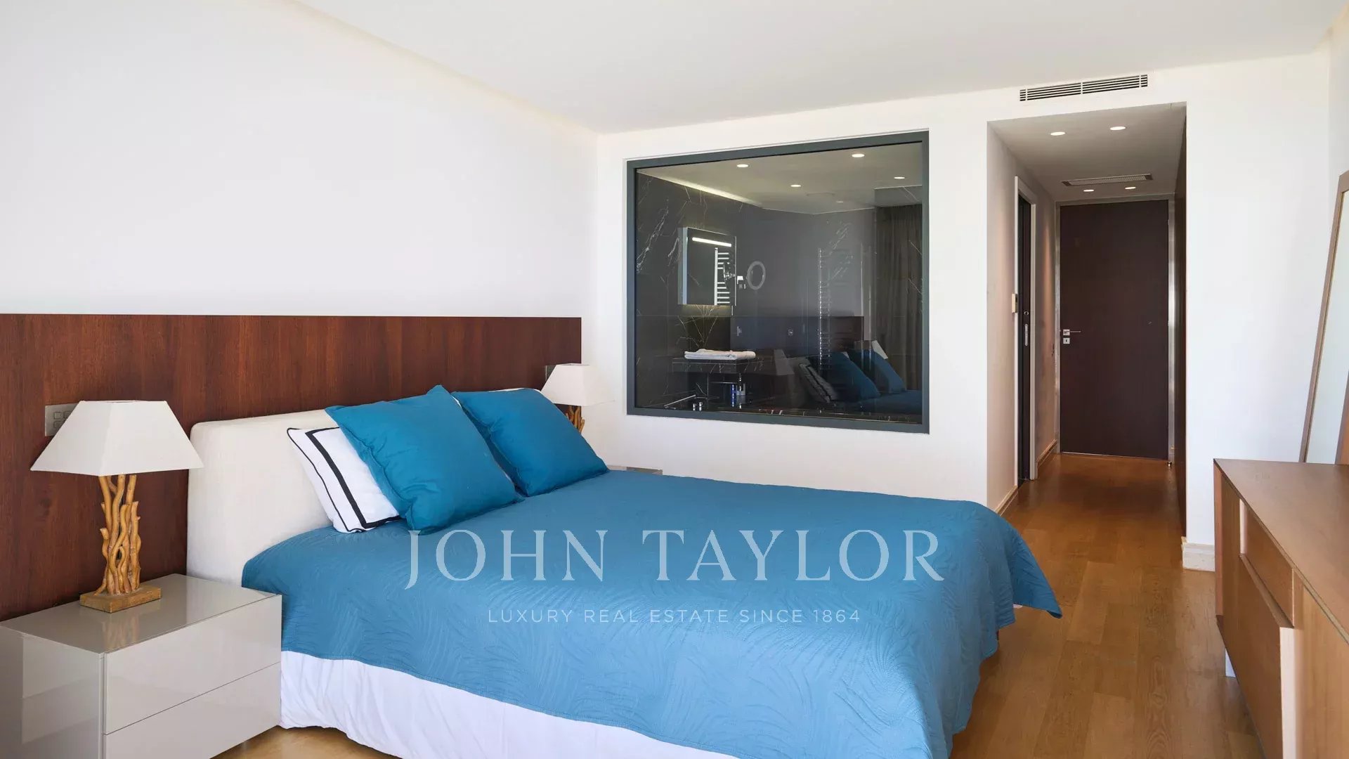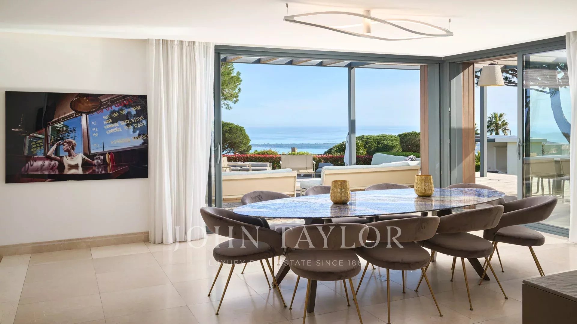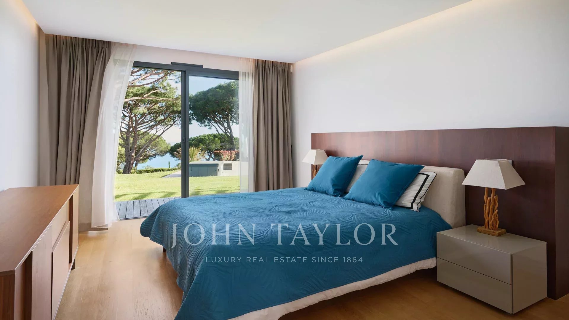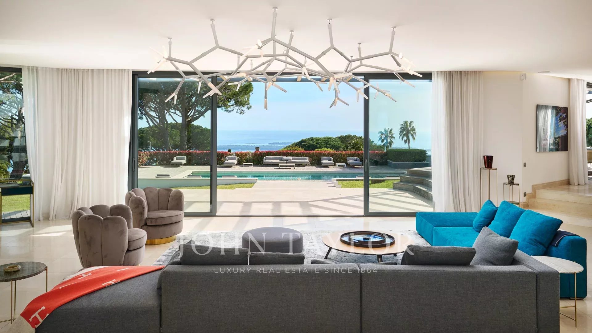 En las colinas de Cannes, con una vista panorámica única de las islas Lérins, esta magnífica villa contemporánea combina madera y hormigón en el corazón de 6.200 m2 de parque. Completamente renovada, la villa cuenta con volúmenes generosos, equipamientos de alta gama y tres grandes terrazas.