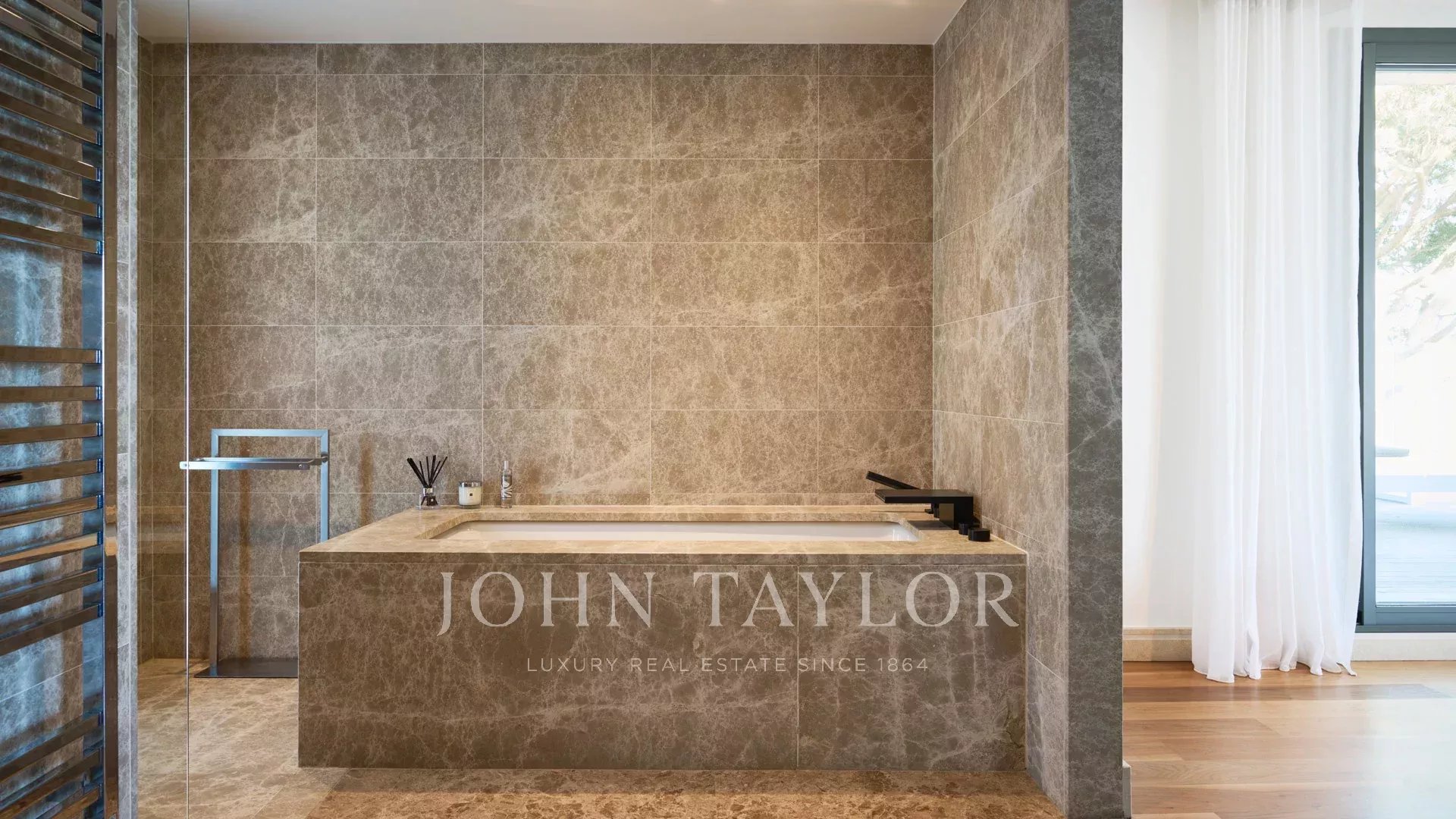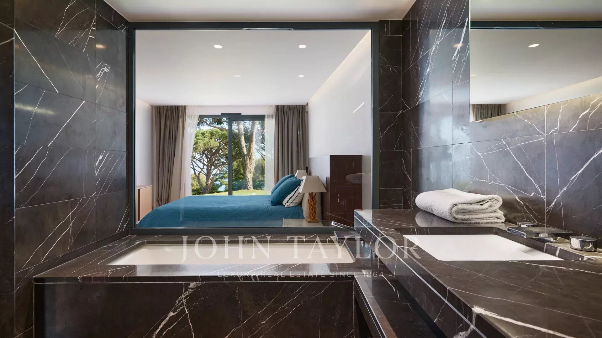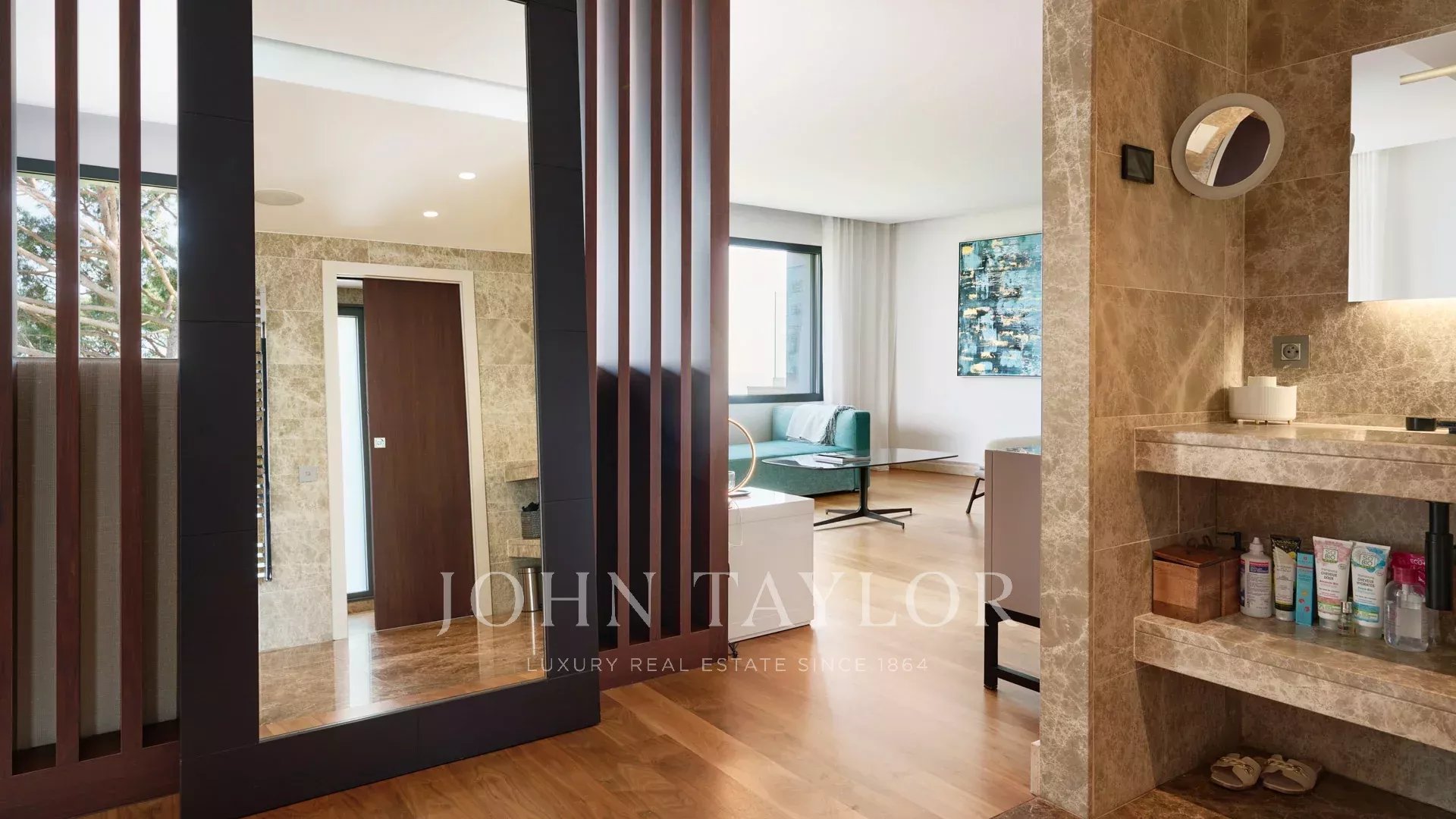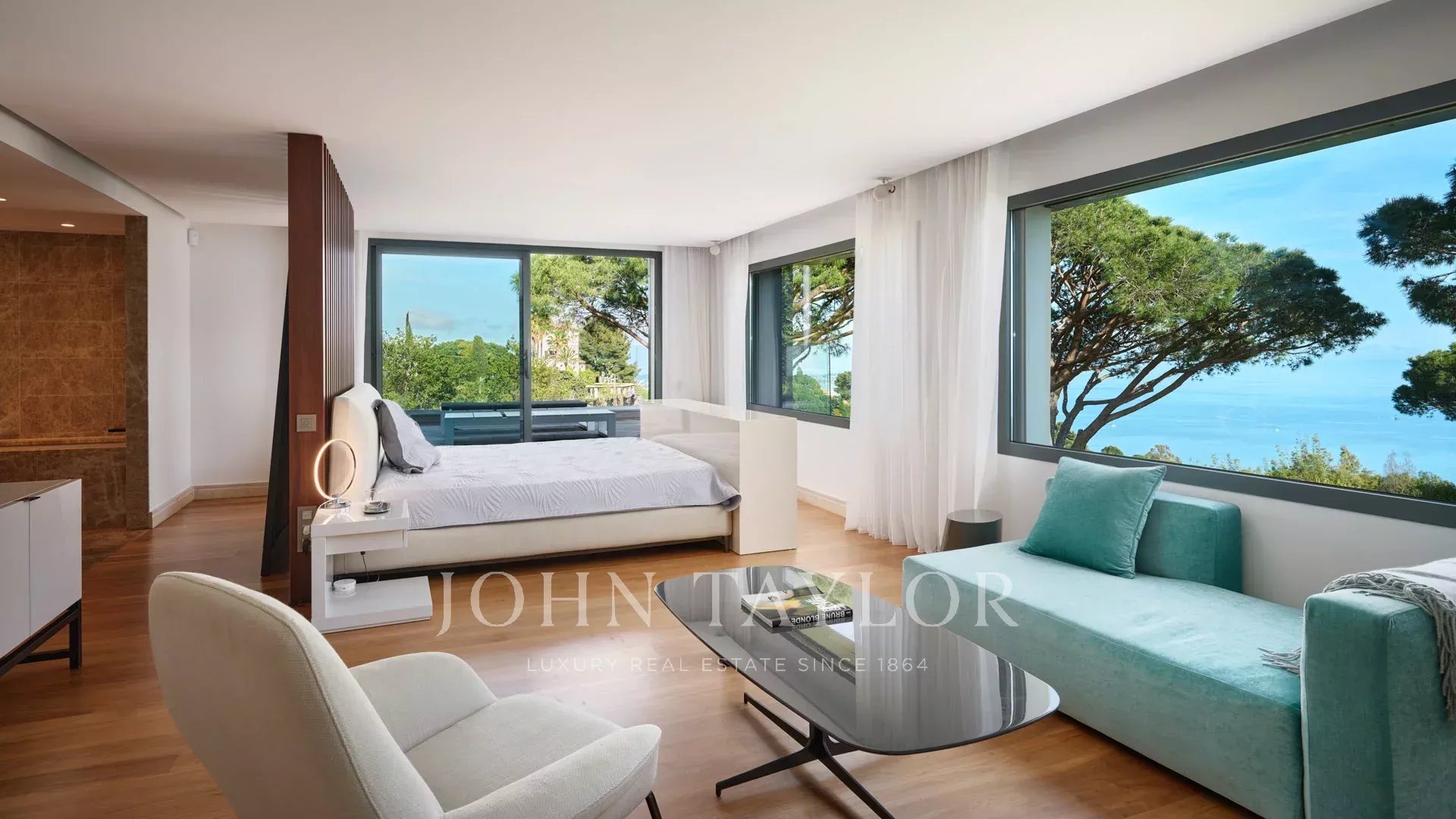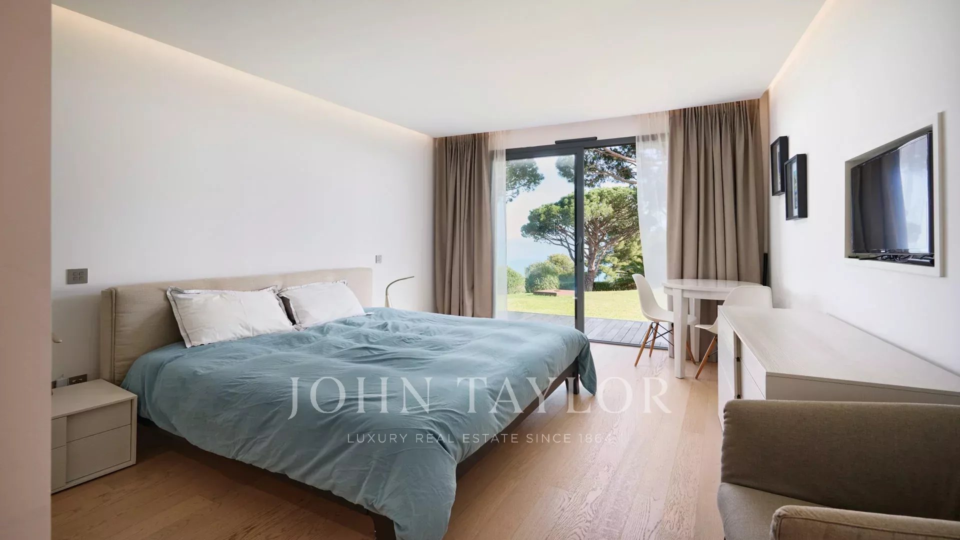 En las colinas de Cannes, con una vista panorámica única de las islas Lérins, esta magnífica villa contemporánea combina madera y hormigón en el corazón de 6.200 m2 de parque. Completamente renovada, la villa cuenta con volúmenes generosos, equipamientos de alta gama y tres grandes terrazas.