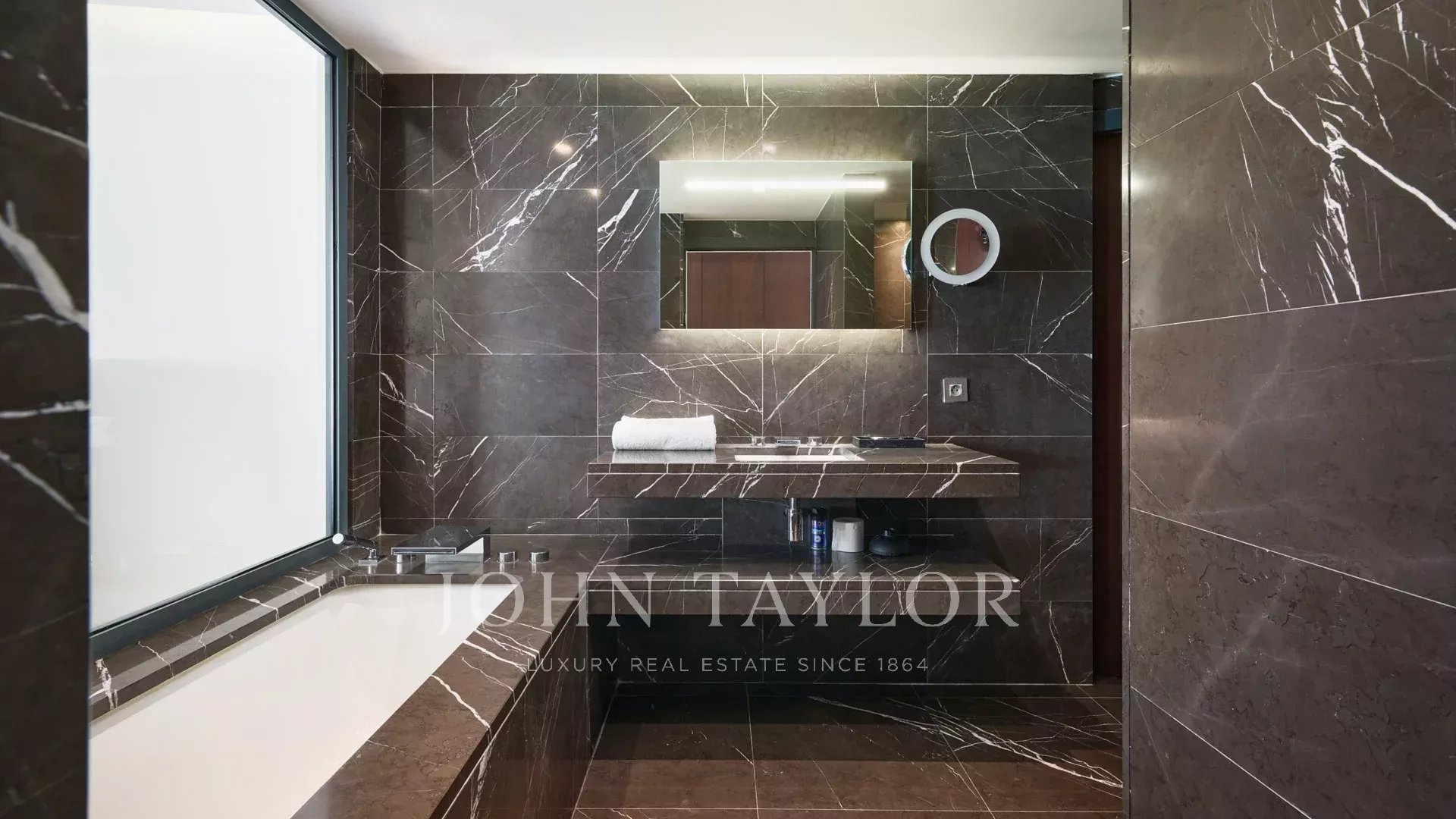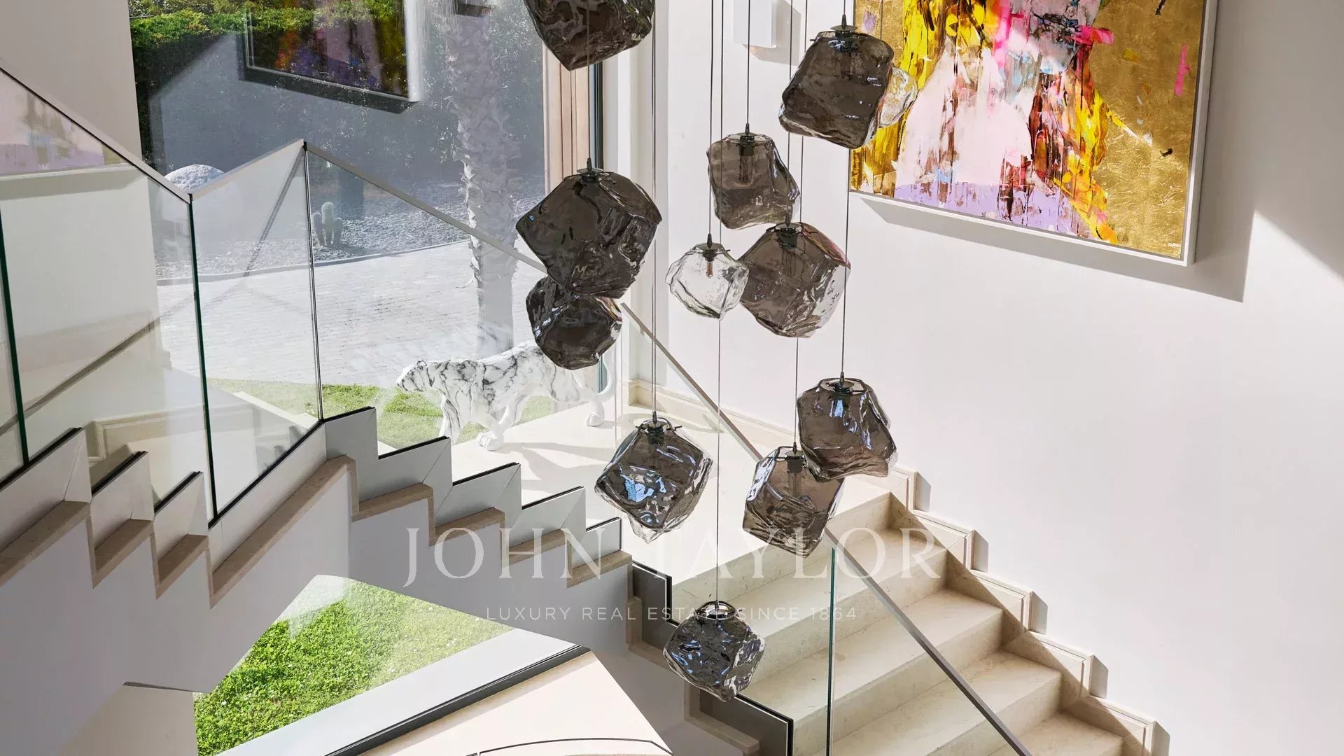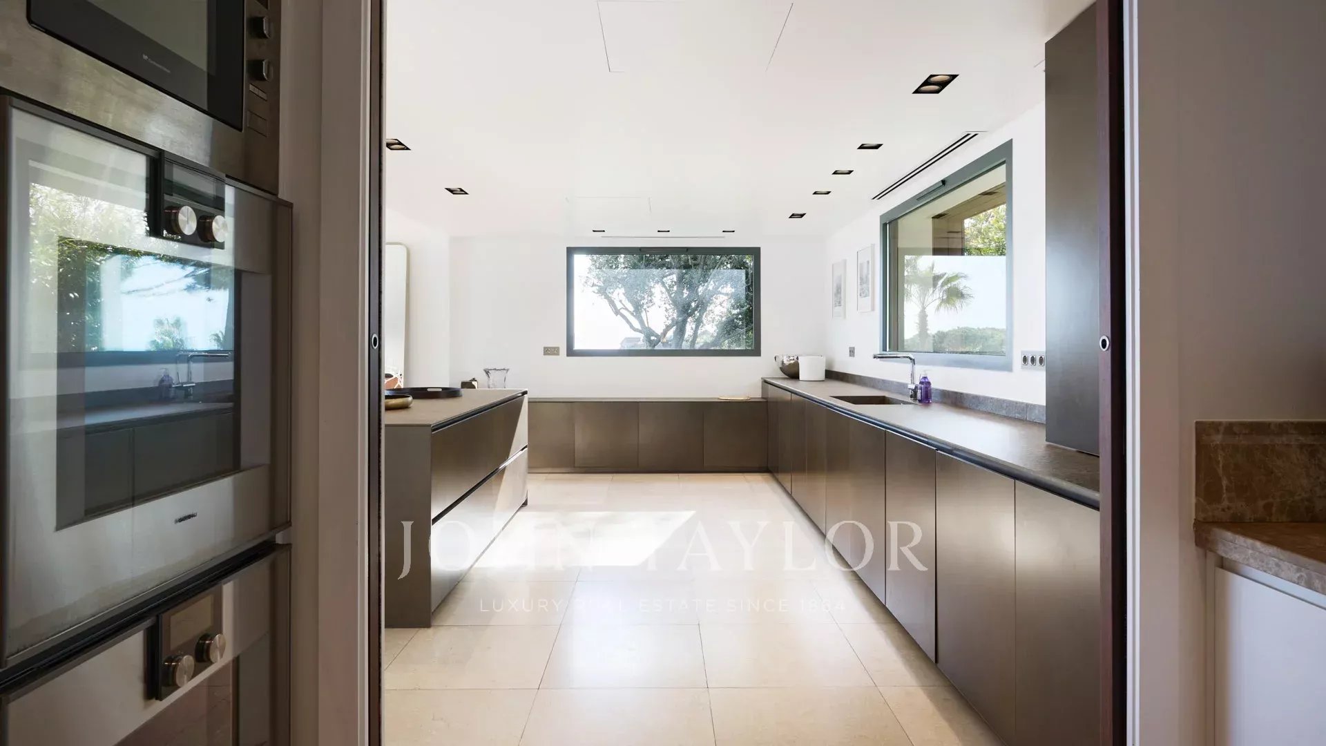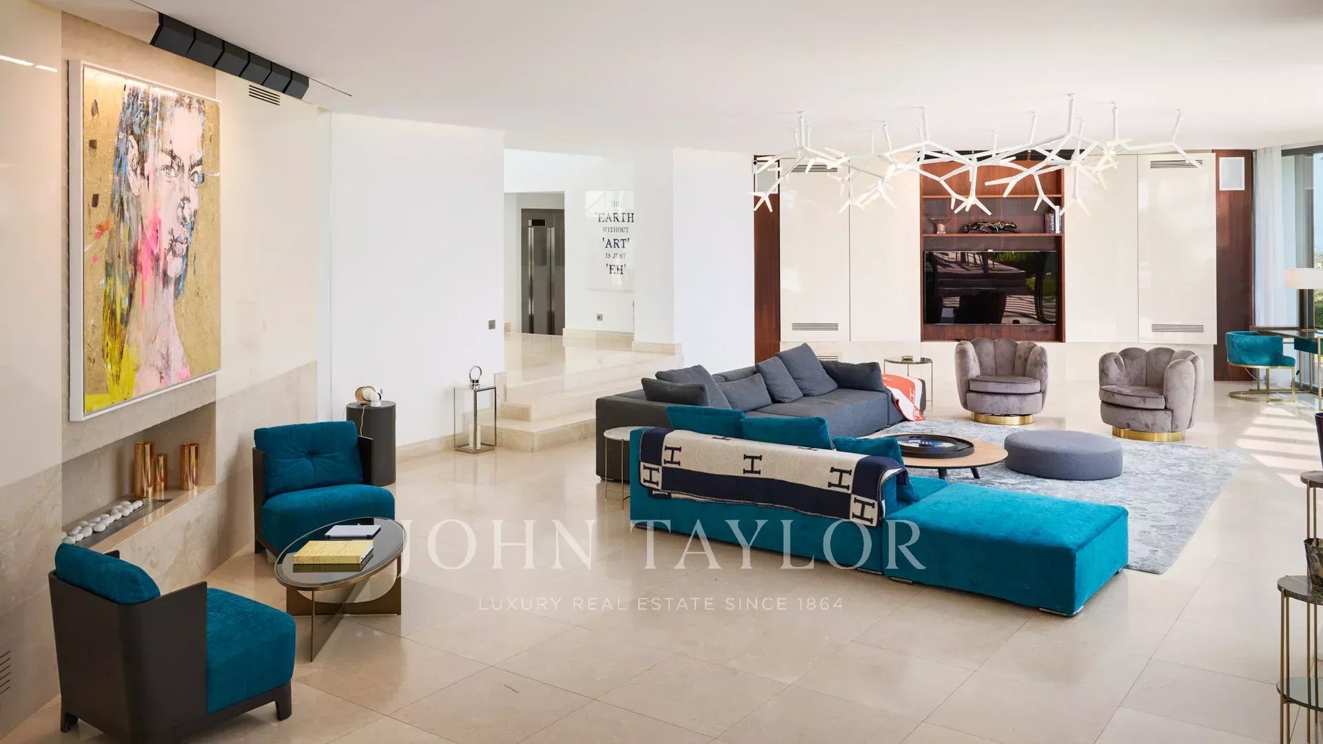 La villa, orientada al sur, está totalmente climatizada y dispone de una superficie habitable de unos 550 m2: