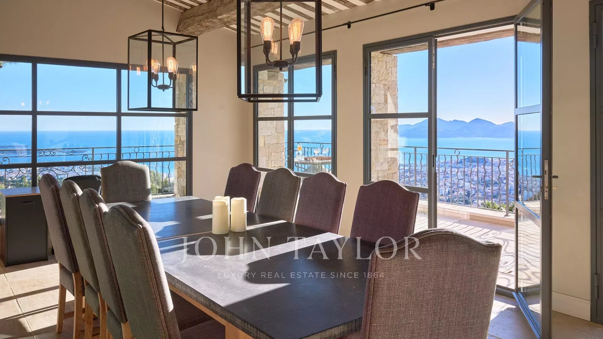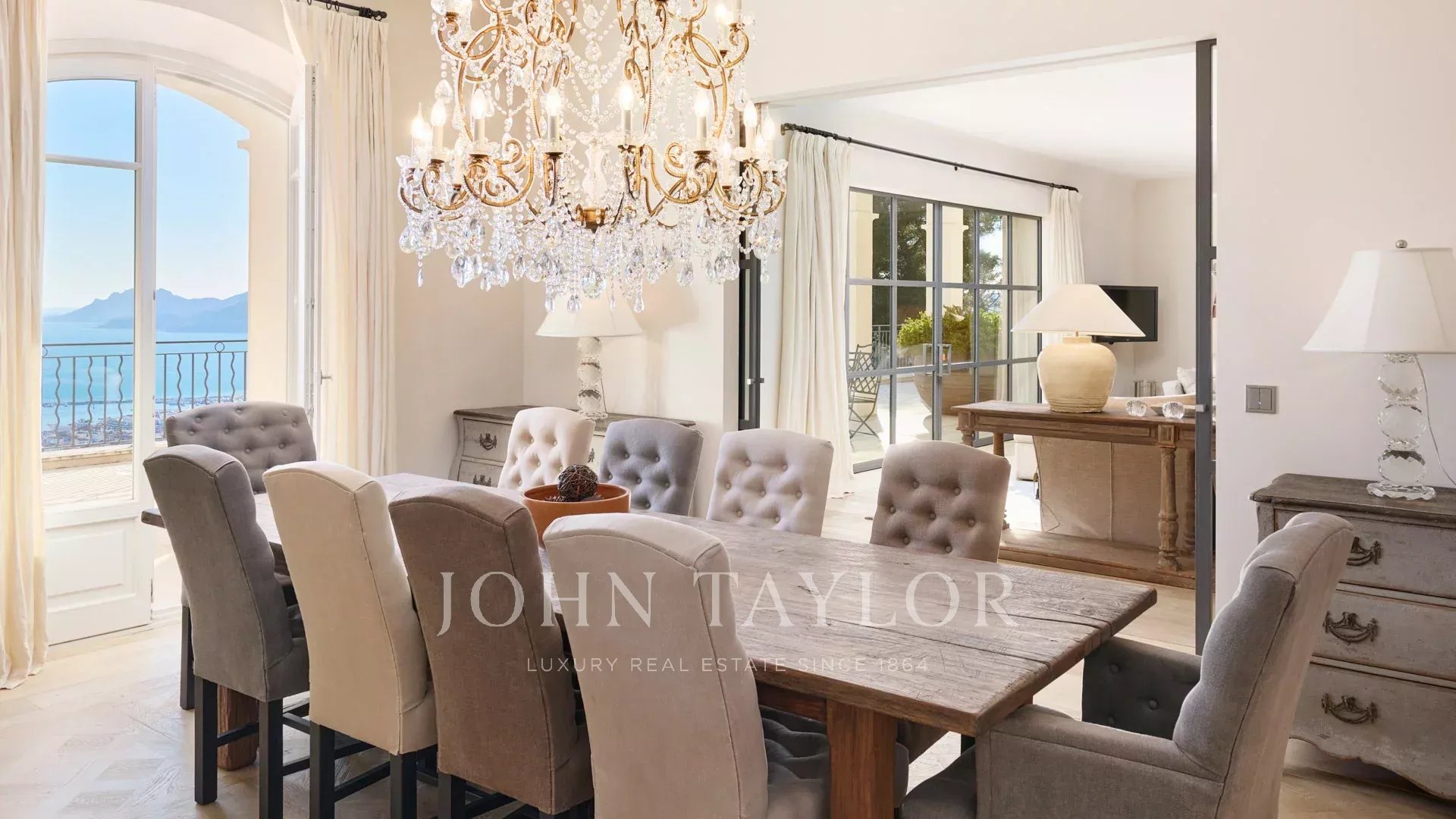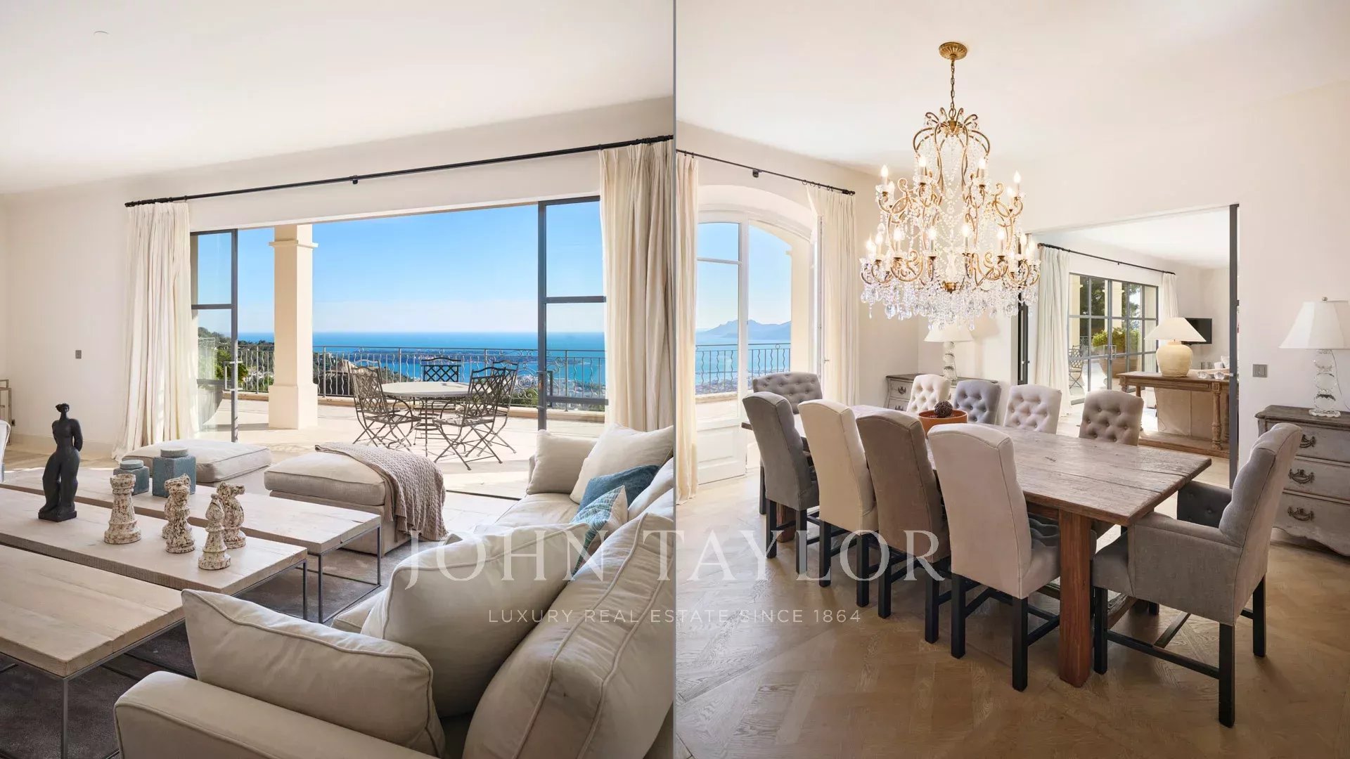 En las alturas de Cannes, con vistas panorámicas al mar y a toda la bahía de Cannes, esta magnífica villa ha sido completamente renovada en un estilo contemporáneo y está situada en unos 7.700 m2 de parque. Esta villa de 500 m2 totalmente climatizada dispone de amplias habitaciones, equipamientos de alta gama y atractivas terrazas.