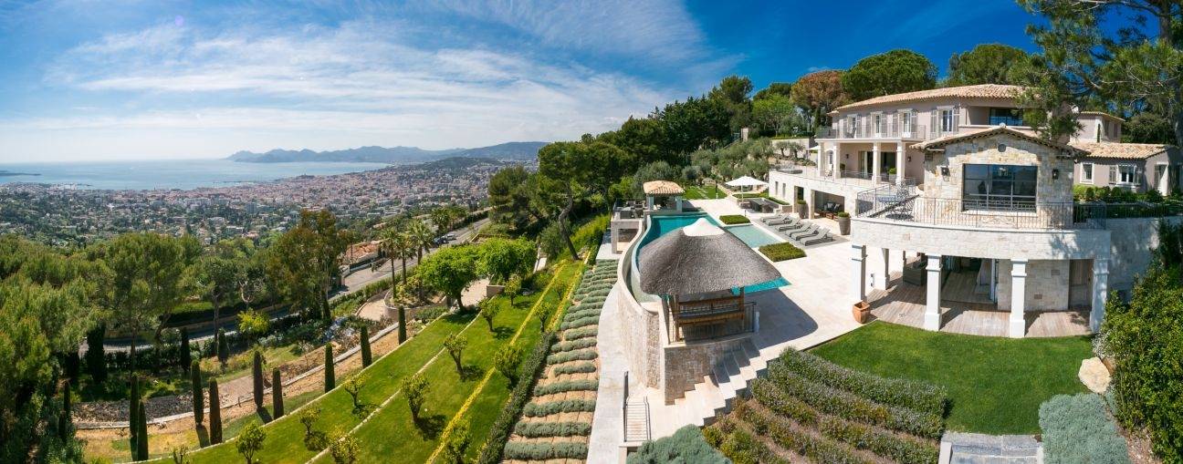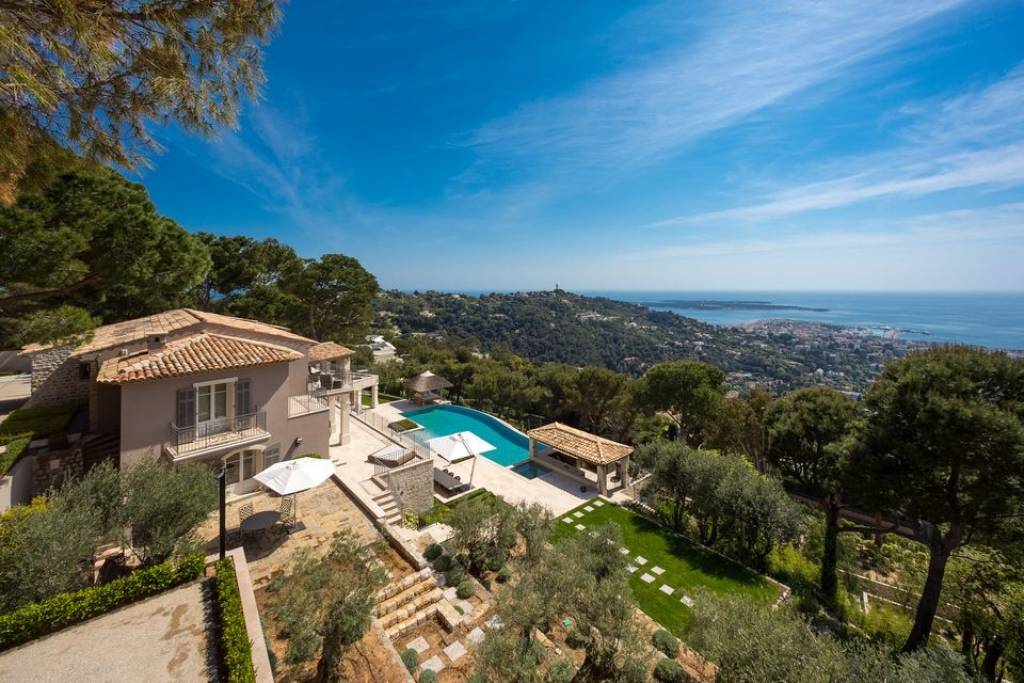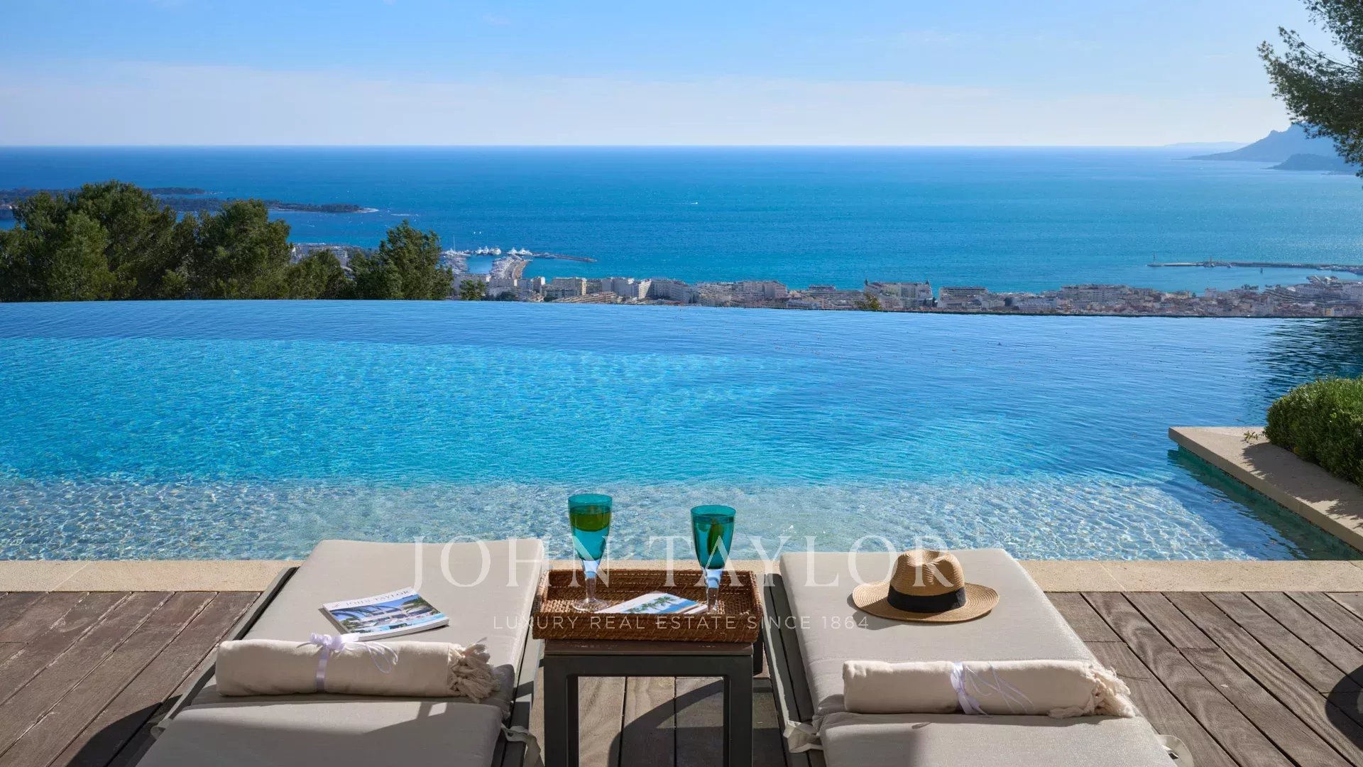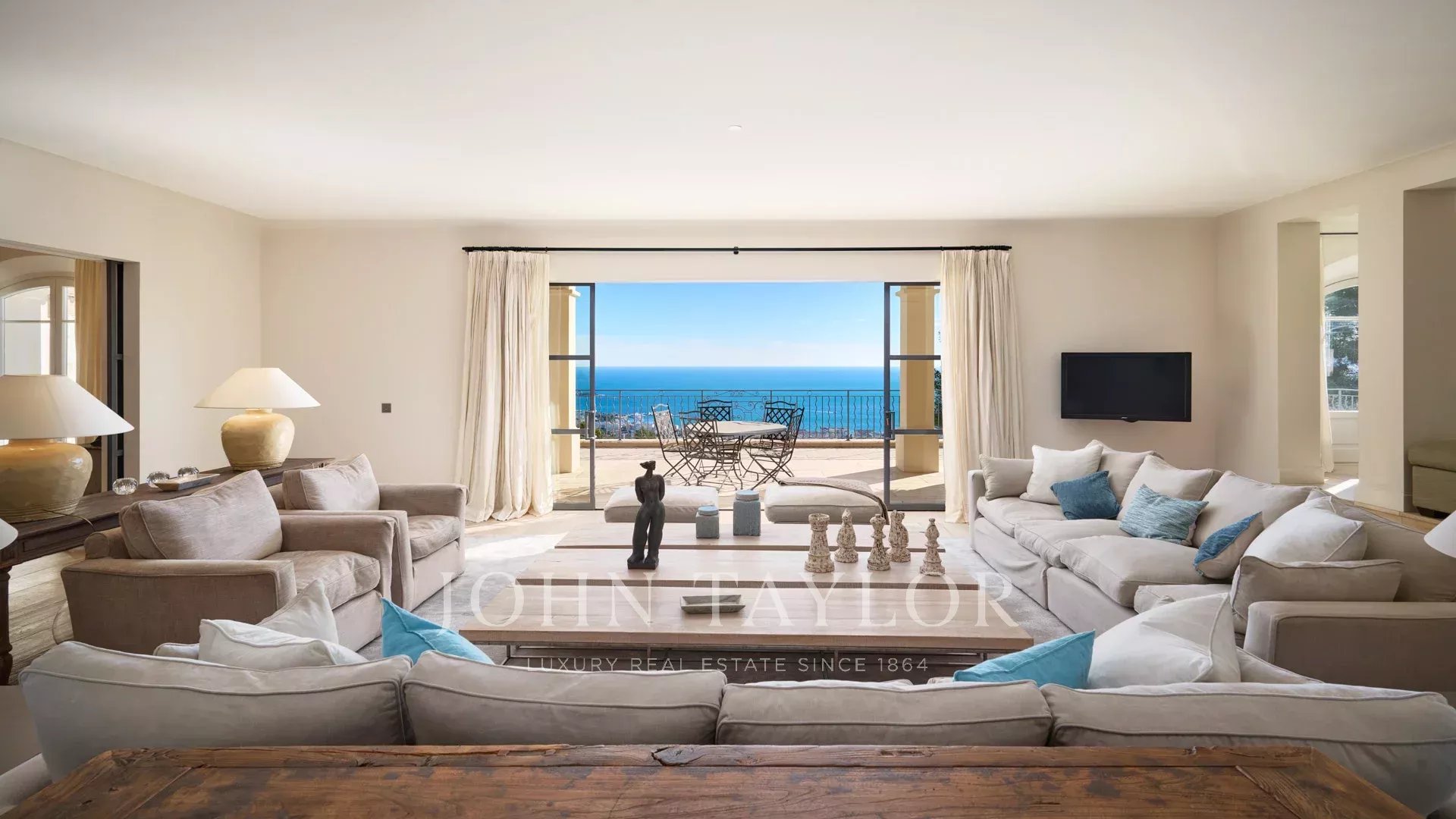 En las alturas de Cannes, con vistas panorámicas al mar y a toda la bahía de Cannes, esta magnífica villa ha sido completamente renovada en un estilo contemporáneo y está situada en unos 7.700 m2 de parque. Esta villa de 500 m2 totalmente climatizada dispone de amplias habitaciones, equipamientos de alta gama y atractivas terrazas.