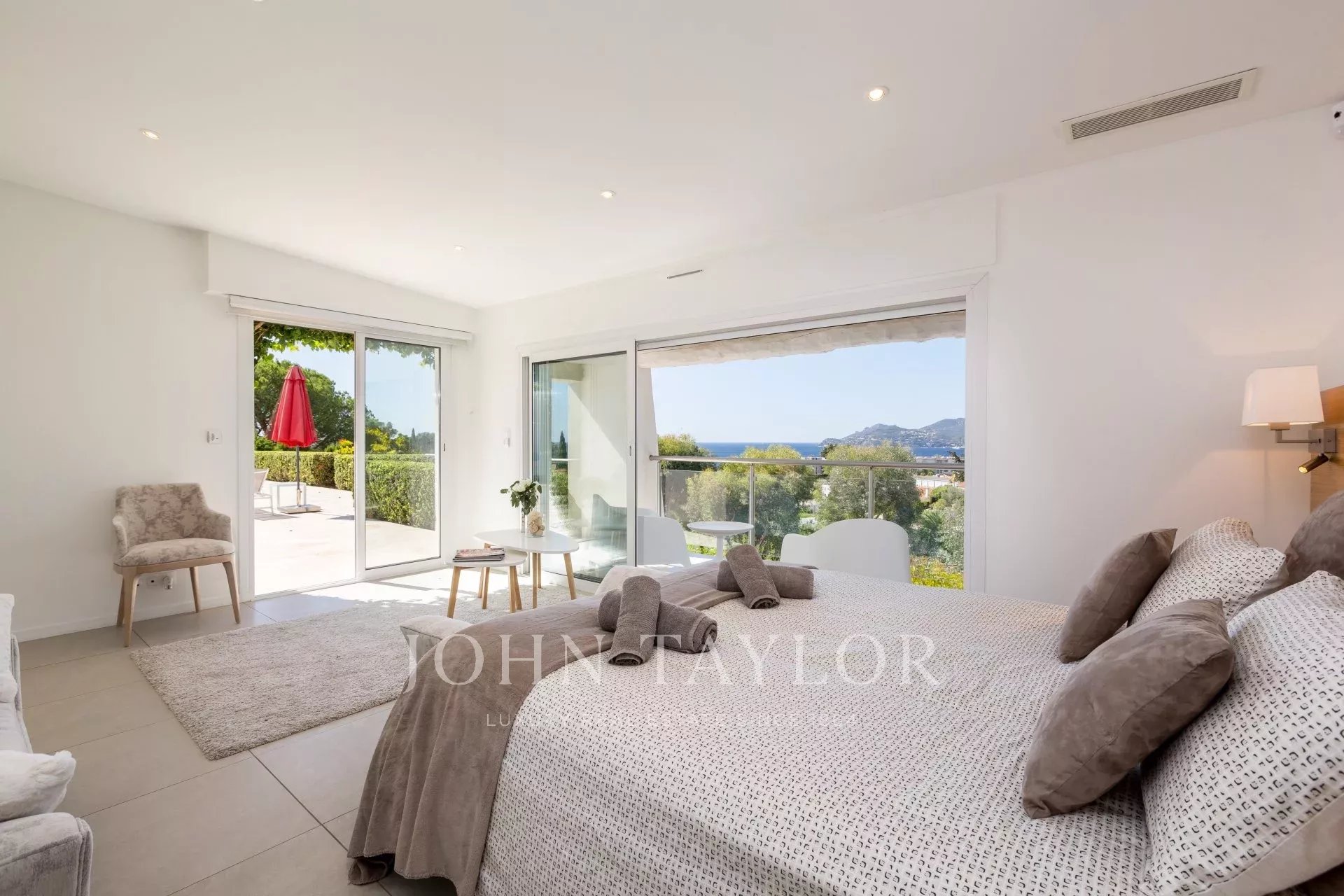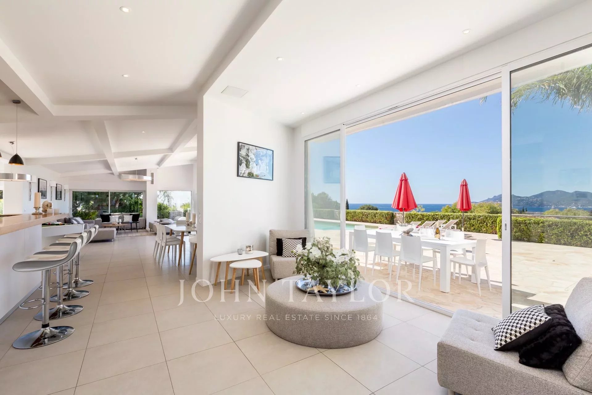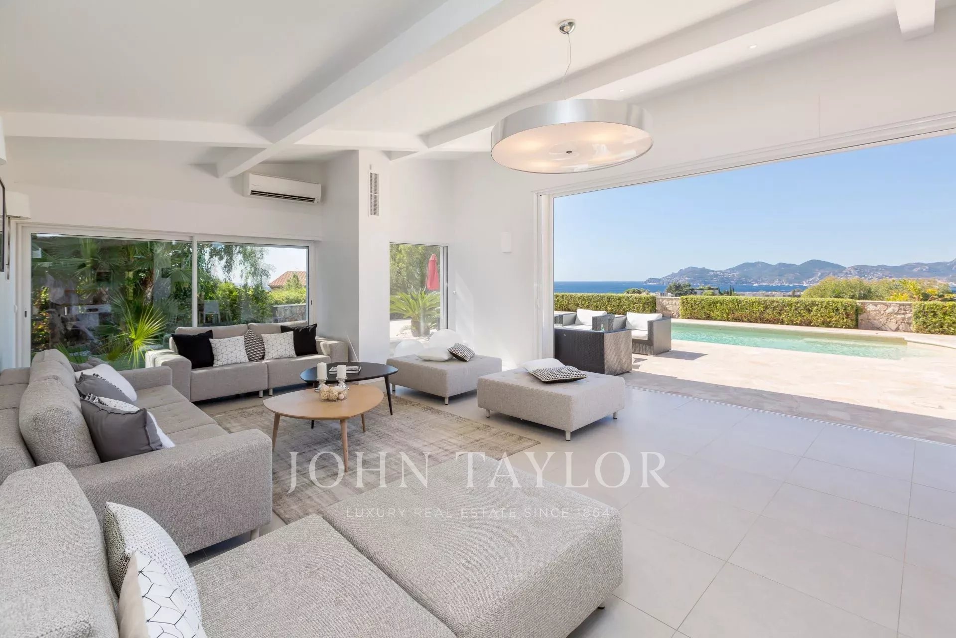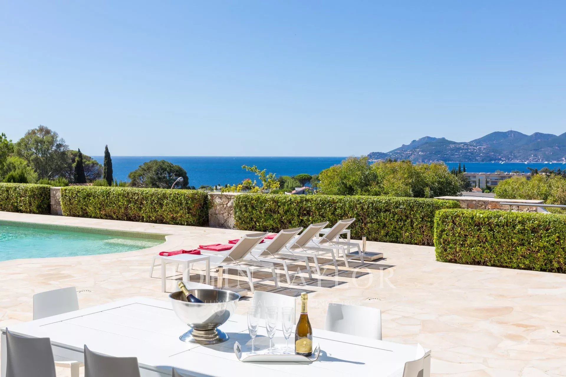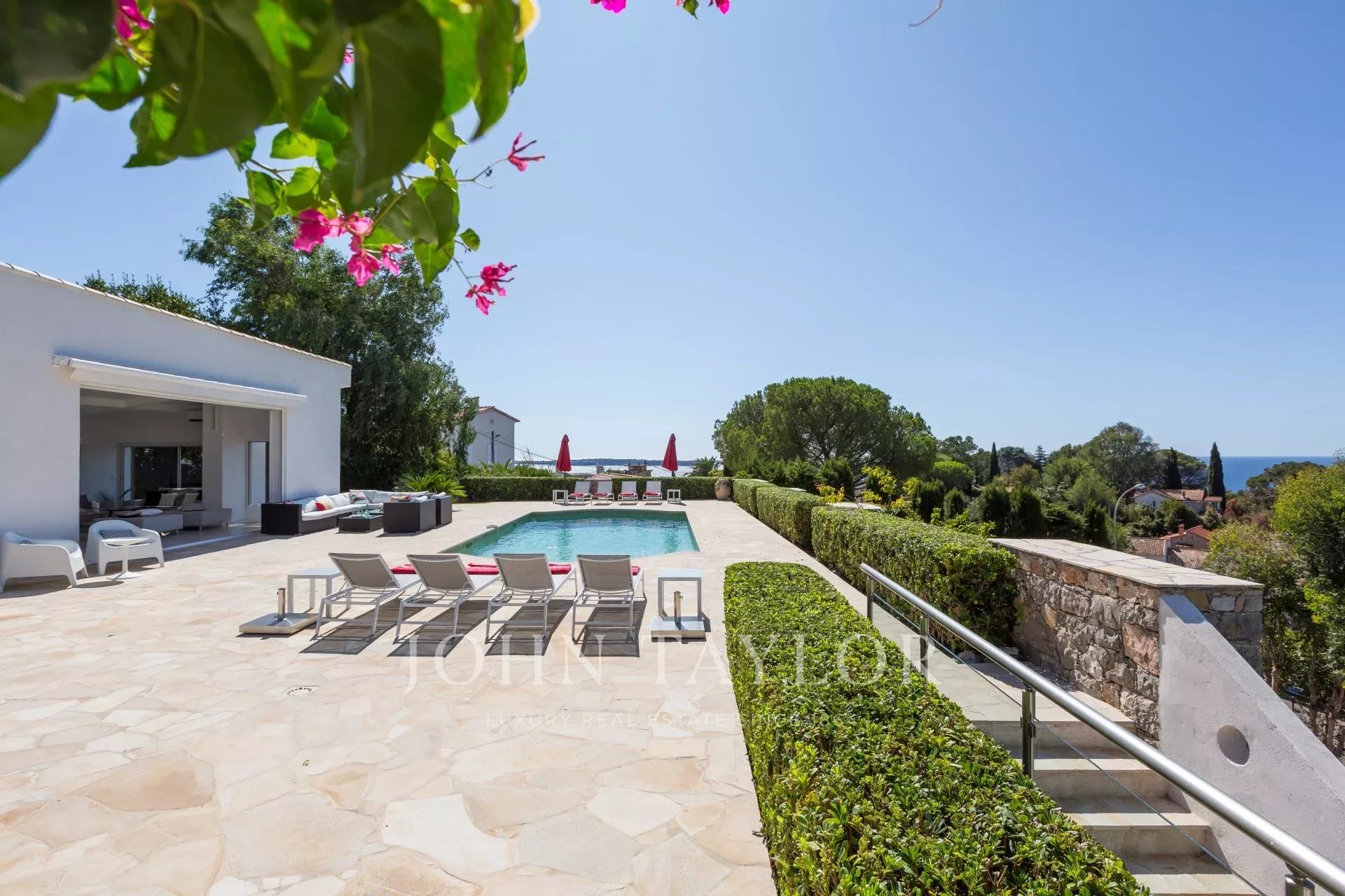 En el barrio de la Croix des Gardes, a pocos minutos del centro de la ciudad y de sus playas, esta propiedad moderna y totalmente renovada ofrece 300 m² de espacio habitable en 2.000 m² de terreno con preciosas vistas al mar.