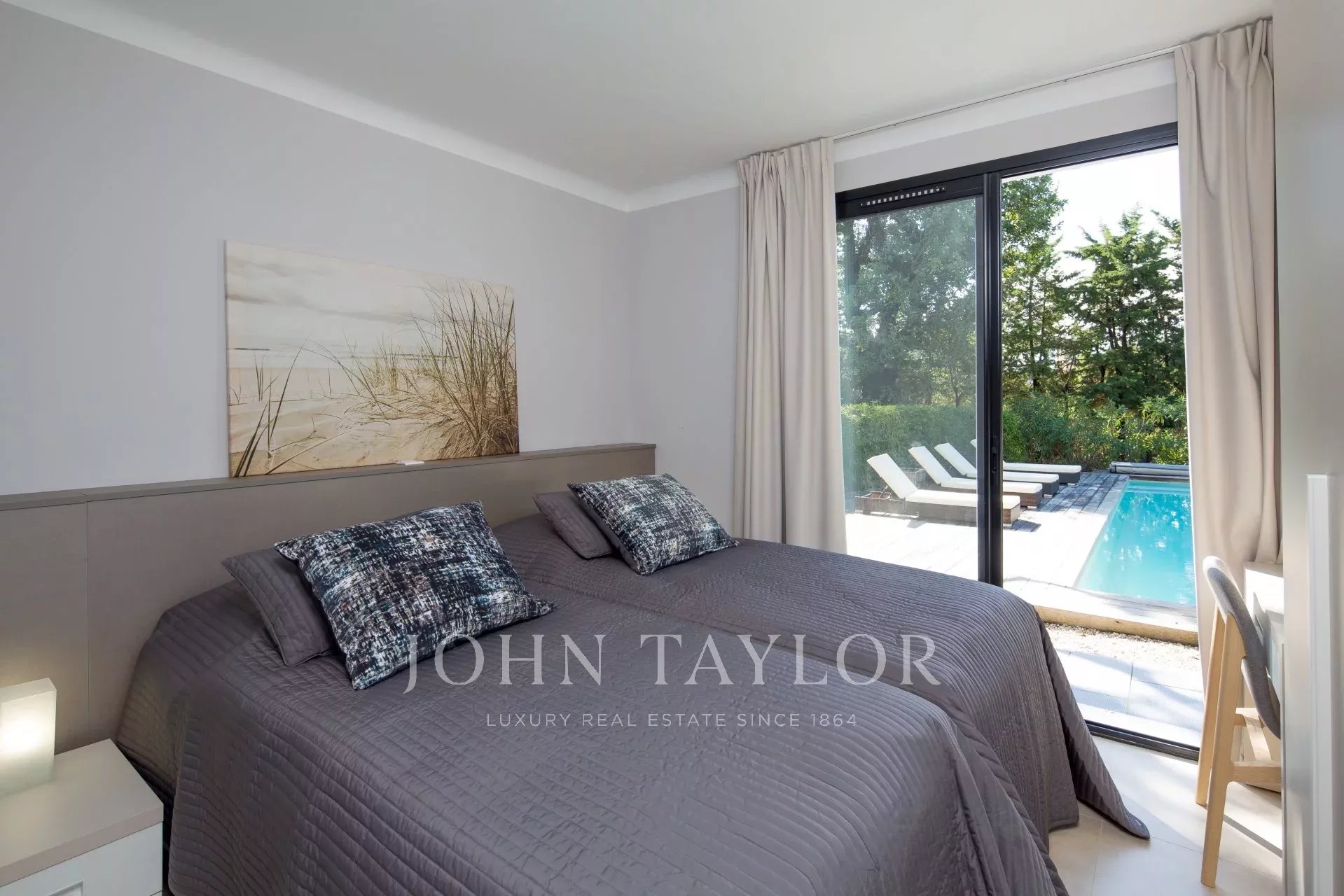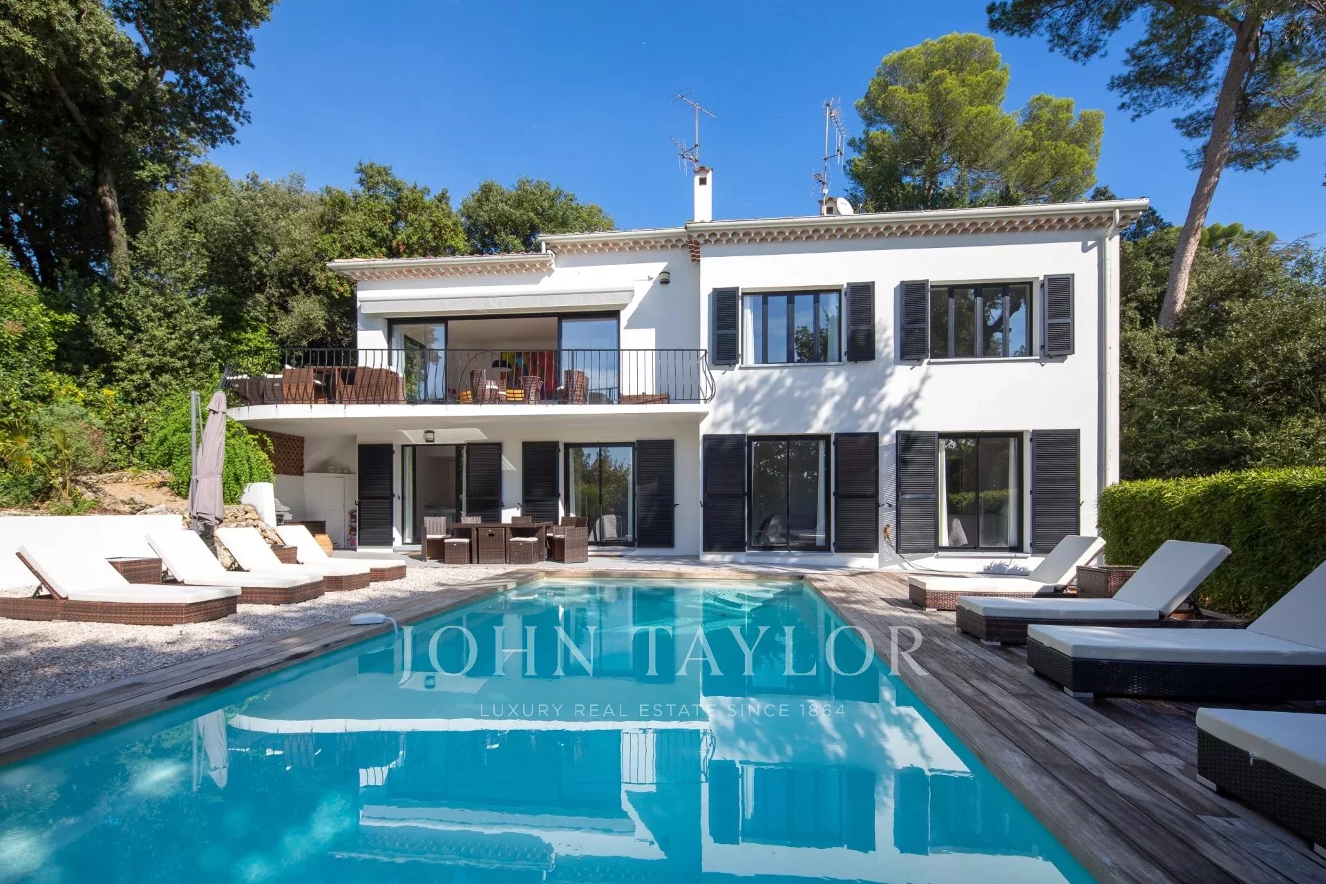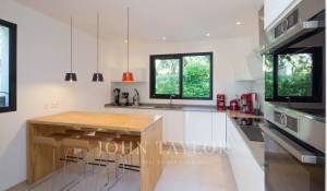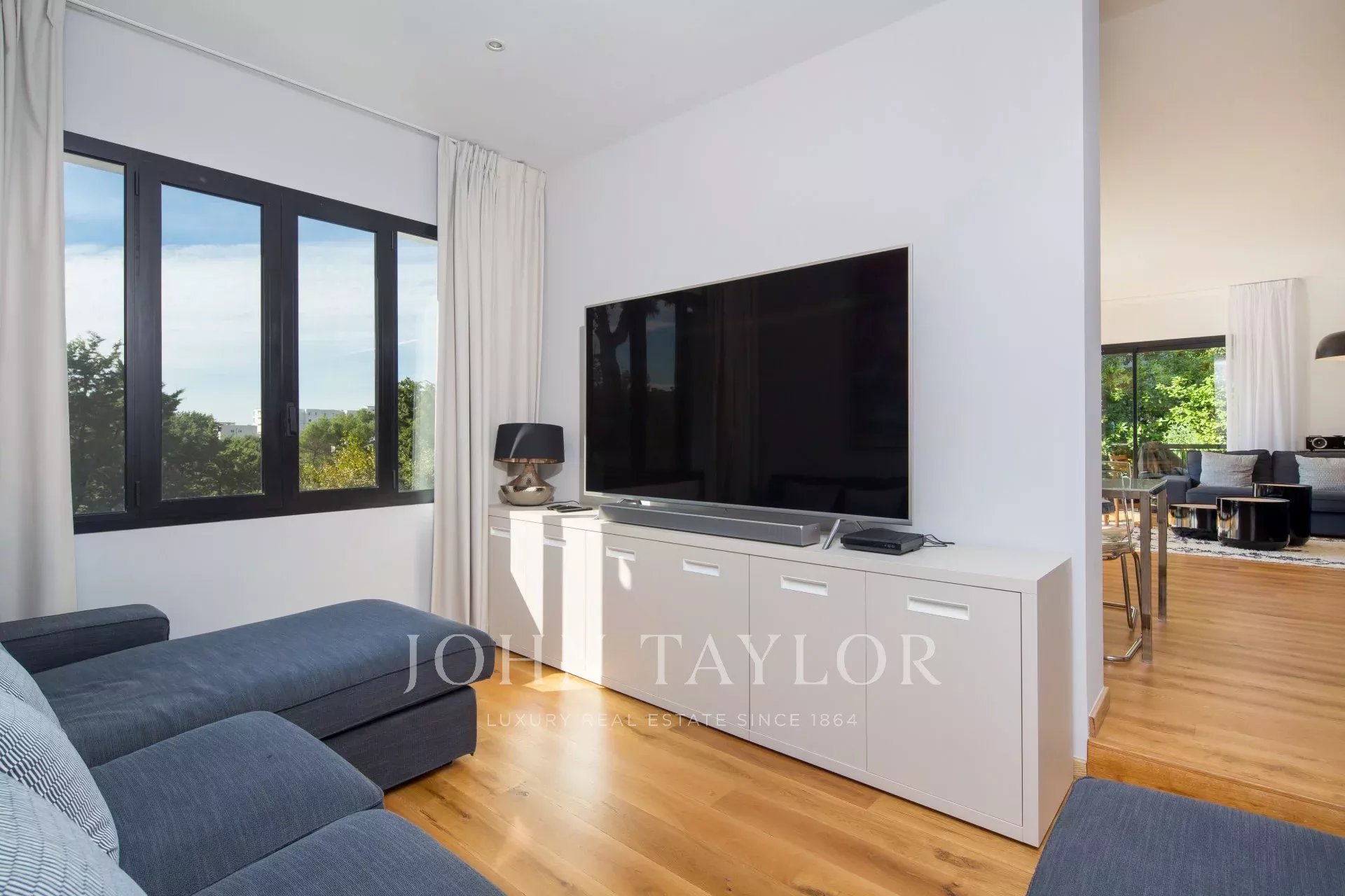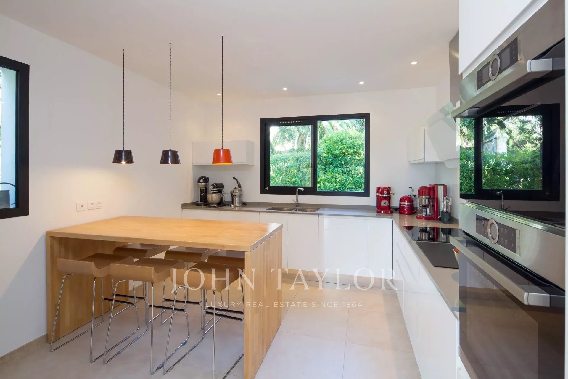 Cerca del centro de Cannes, en una urbanización privada, villa contemporánea climatizada con orientación sur y 255 m2 de superficie habitable situada en 1.300 m2 de jardines.