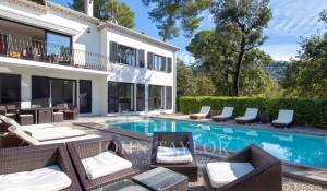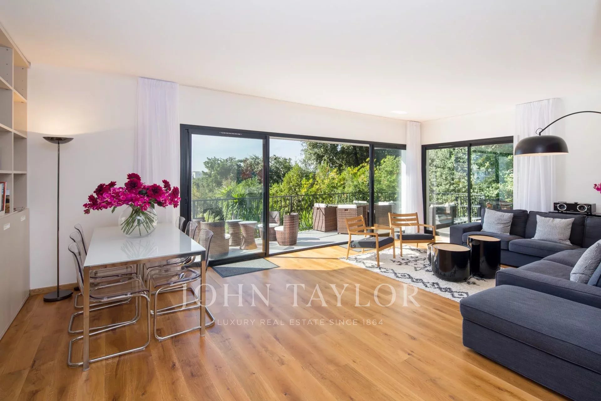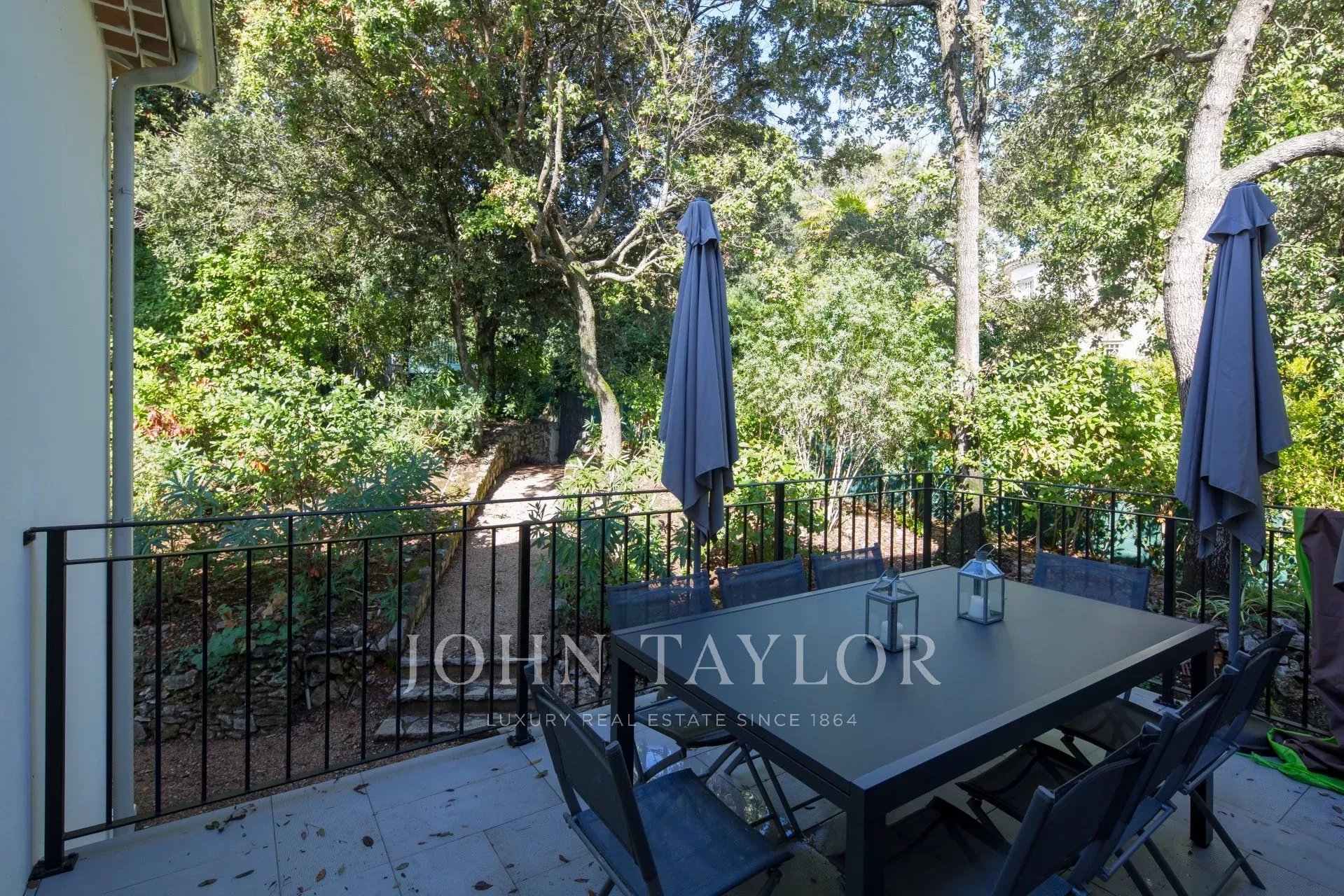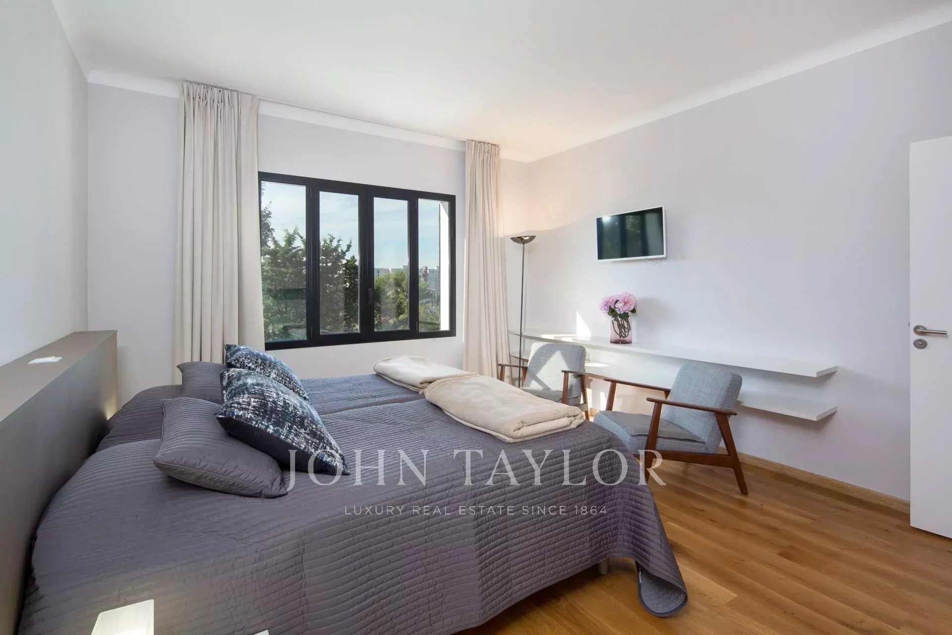 Cerca del centro de Cannes, en una urbanización privada, villa contemporánea climatizada con orientación sur y 255 m2 de superficie habitable situada en 1.300 m2 de jardines.