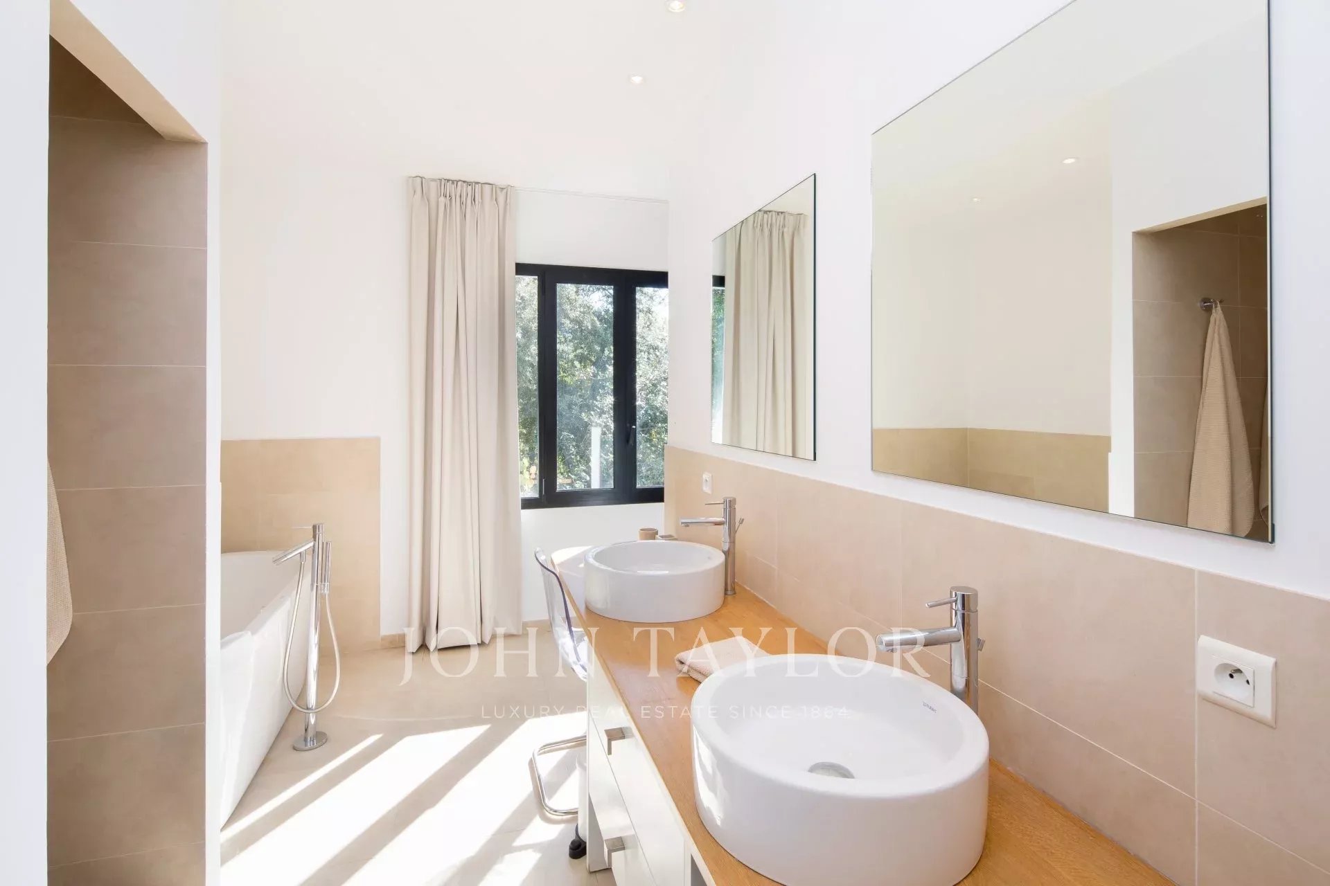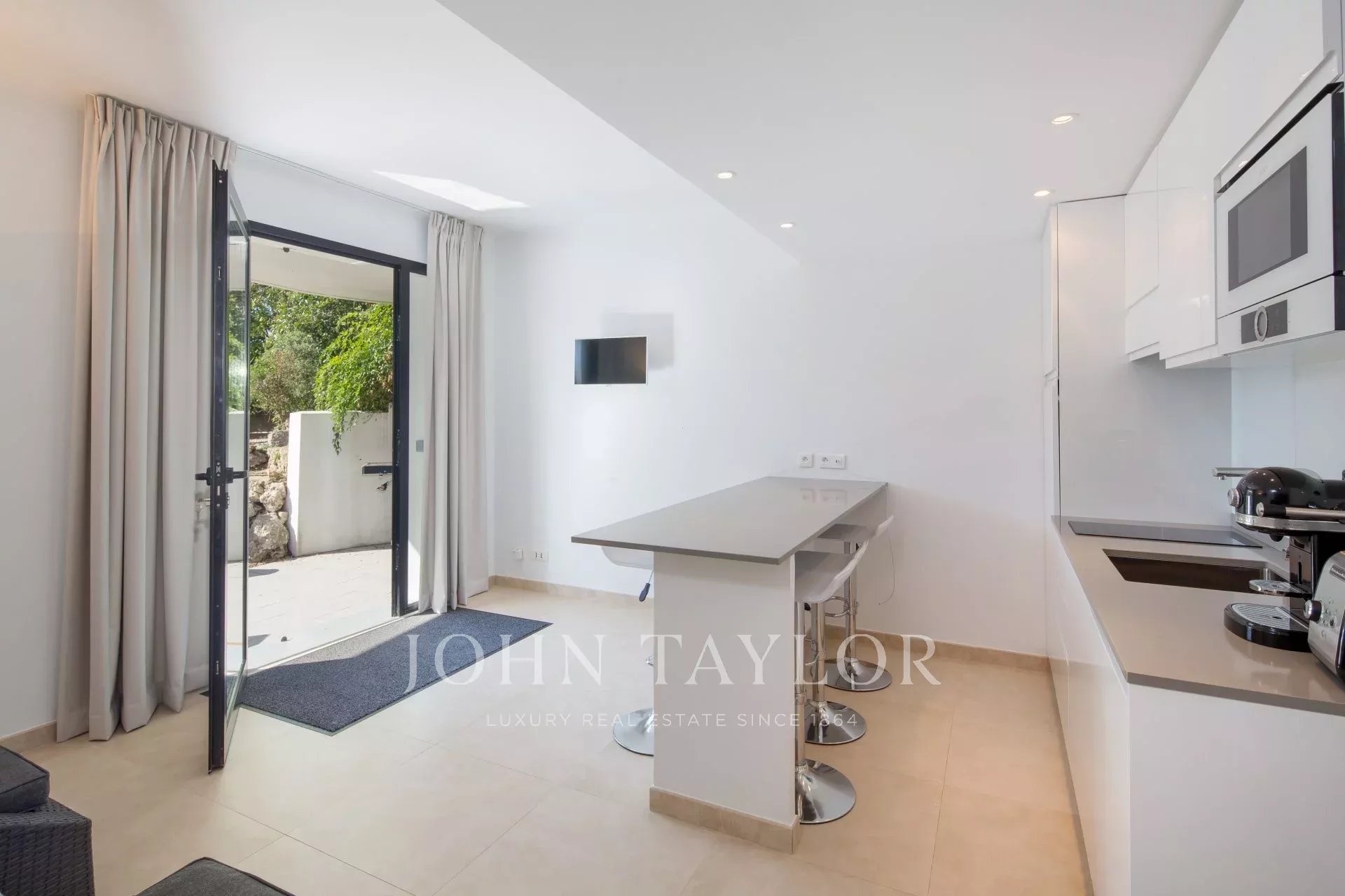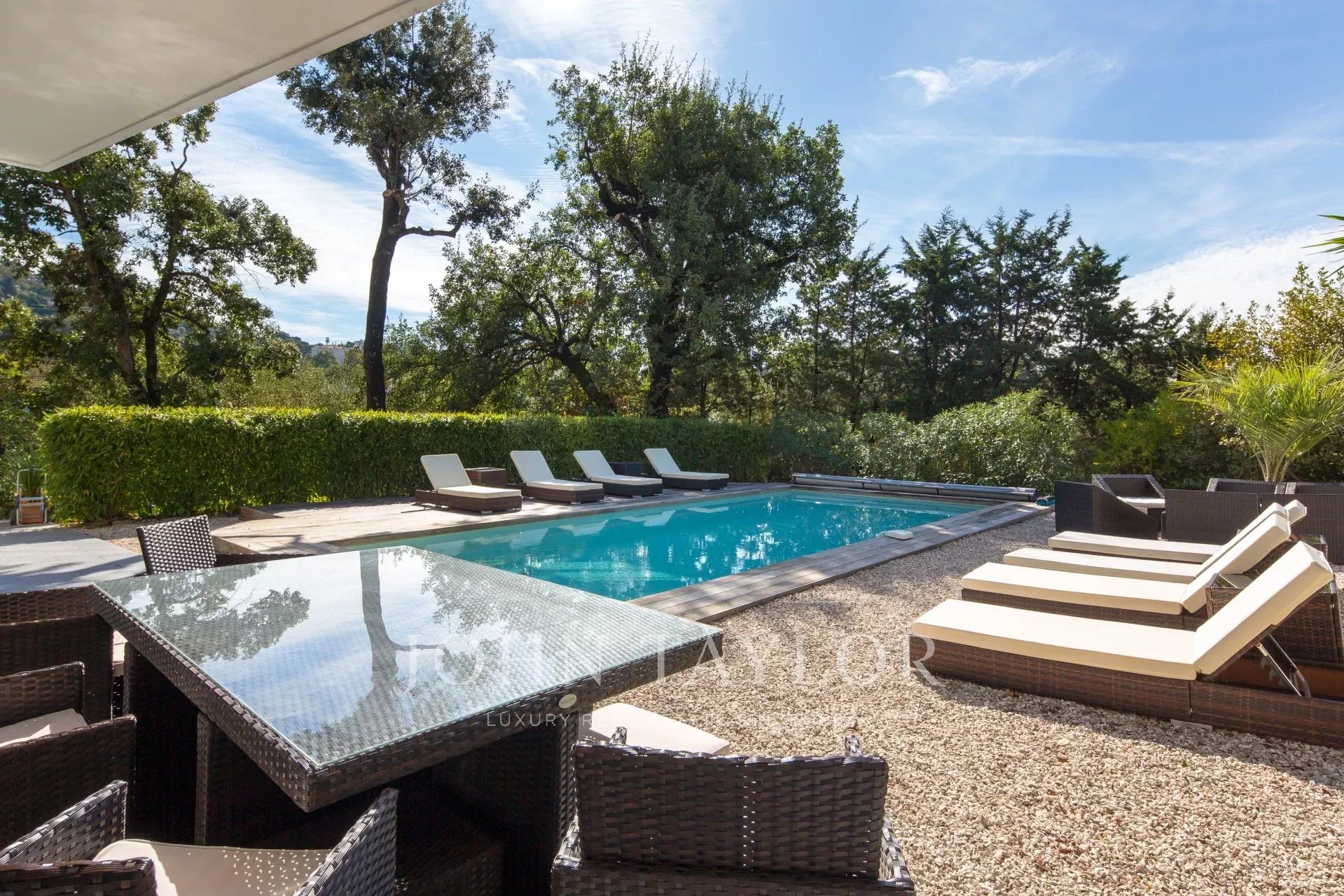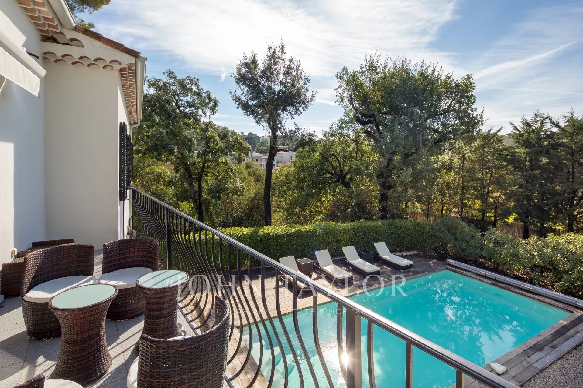 Cerca del centro de Cannes, en una urbanización privada, villa contemporánea climatizada con orientación sur y 255 m2 de superficie habitable situada en 1.300 m2 de jardines.