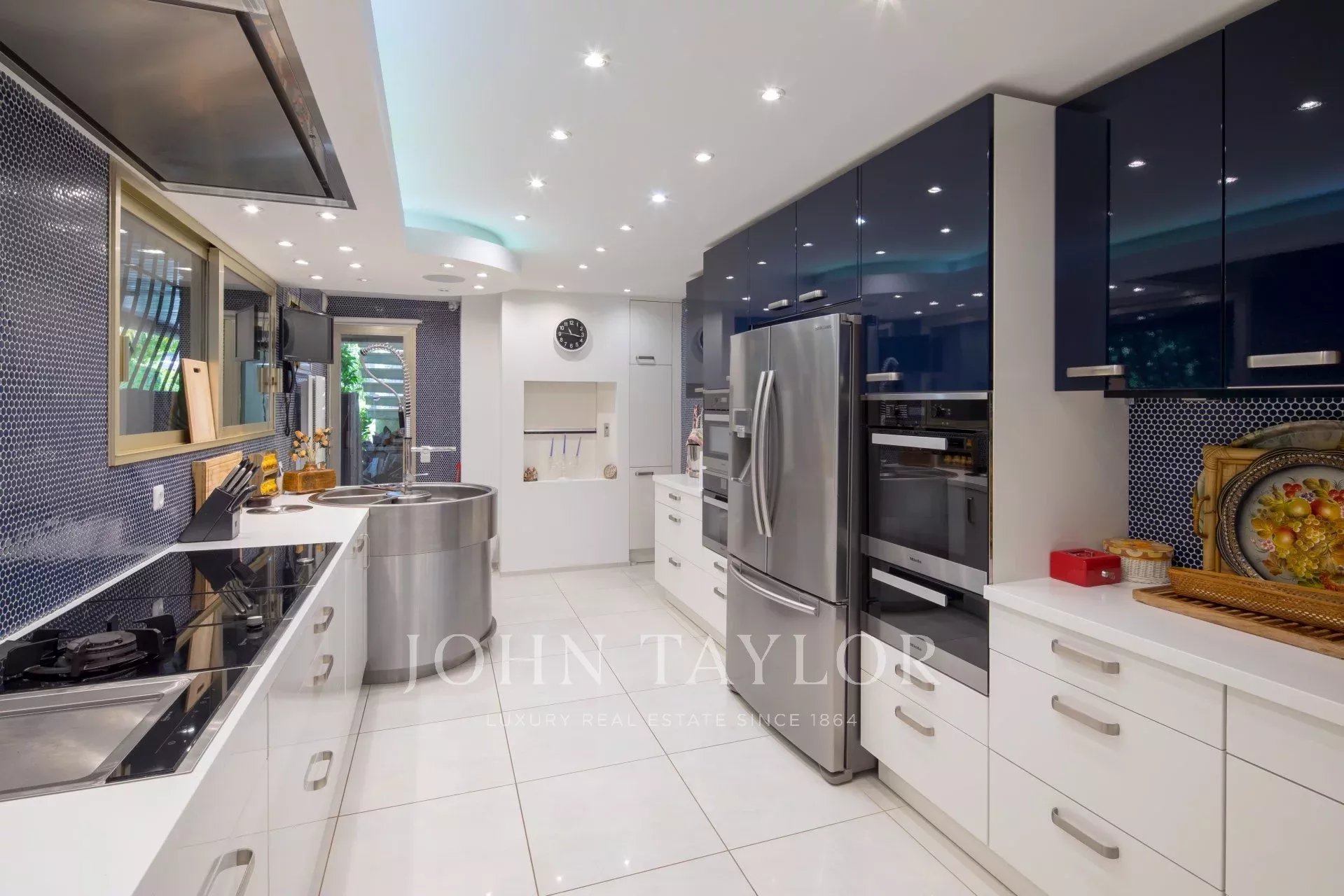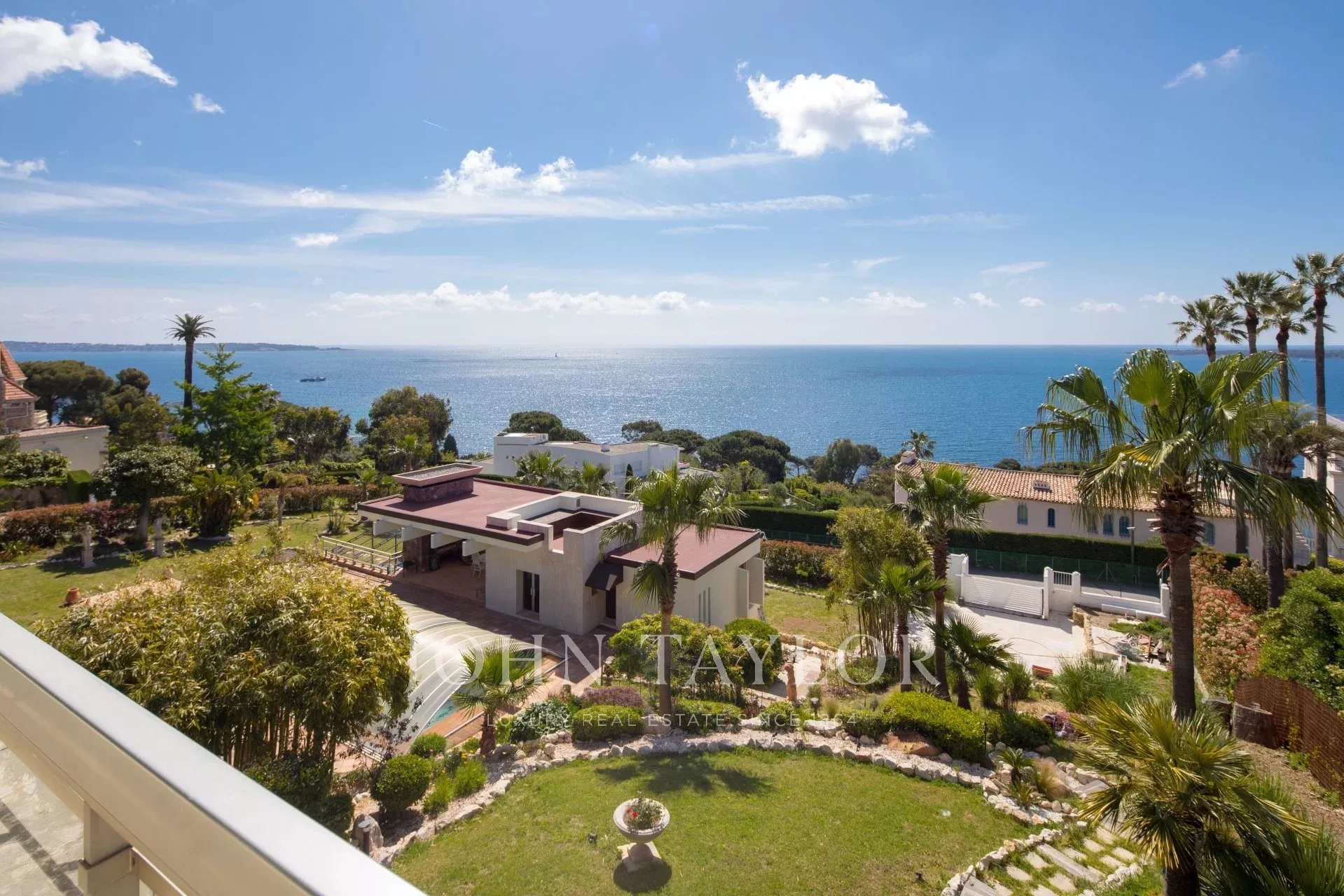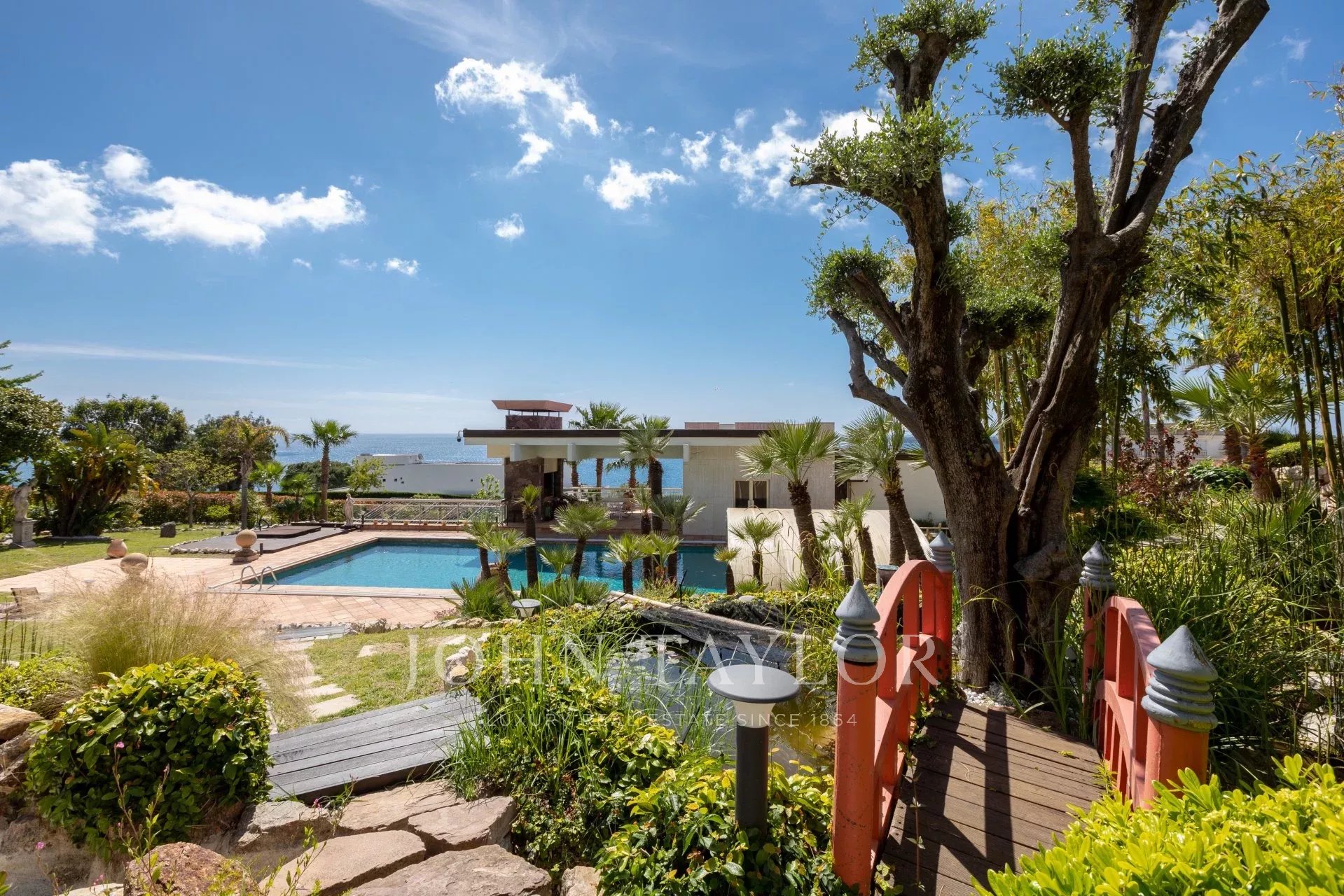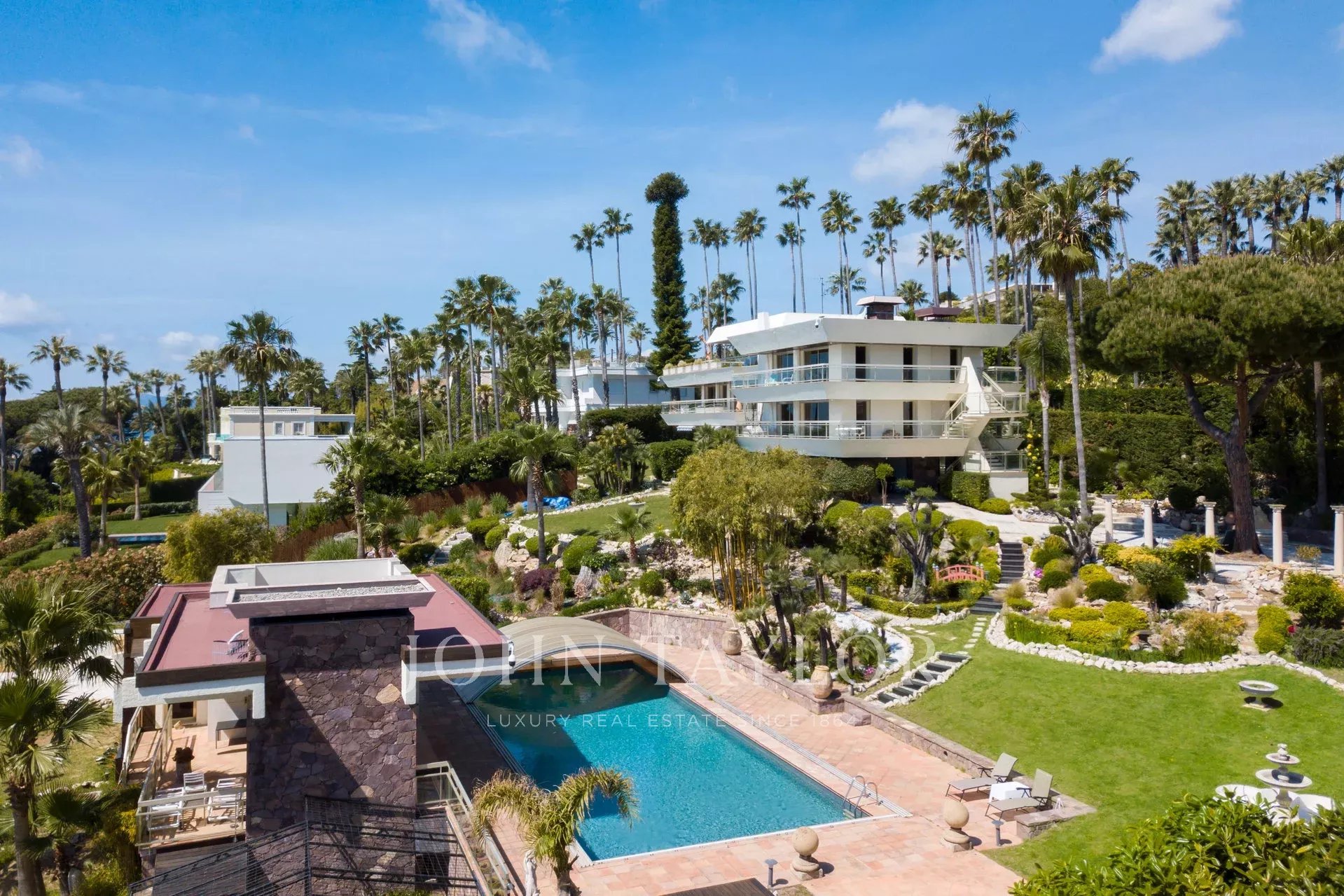 En una urbanización segura, gran chalet de 700 m2 situado en un terreno de unos 3.000 m2 con vistas panorámicas al mar y a las islas de Lérins.