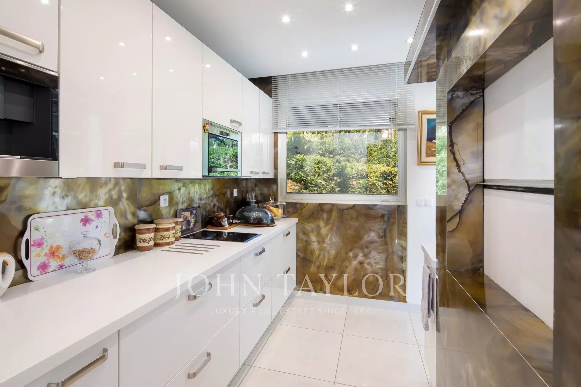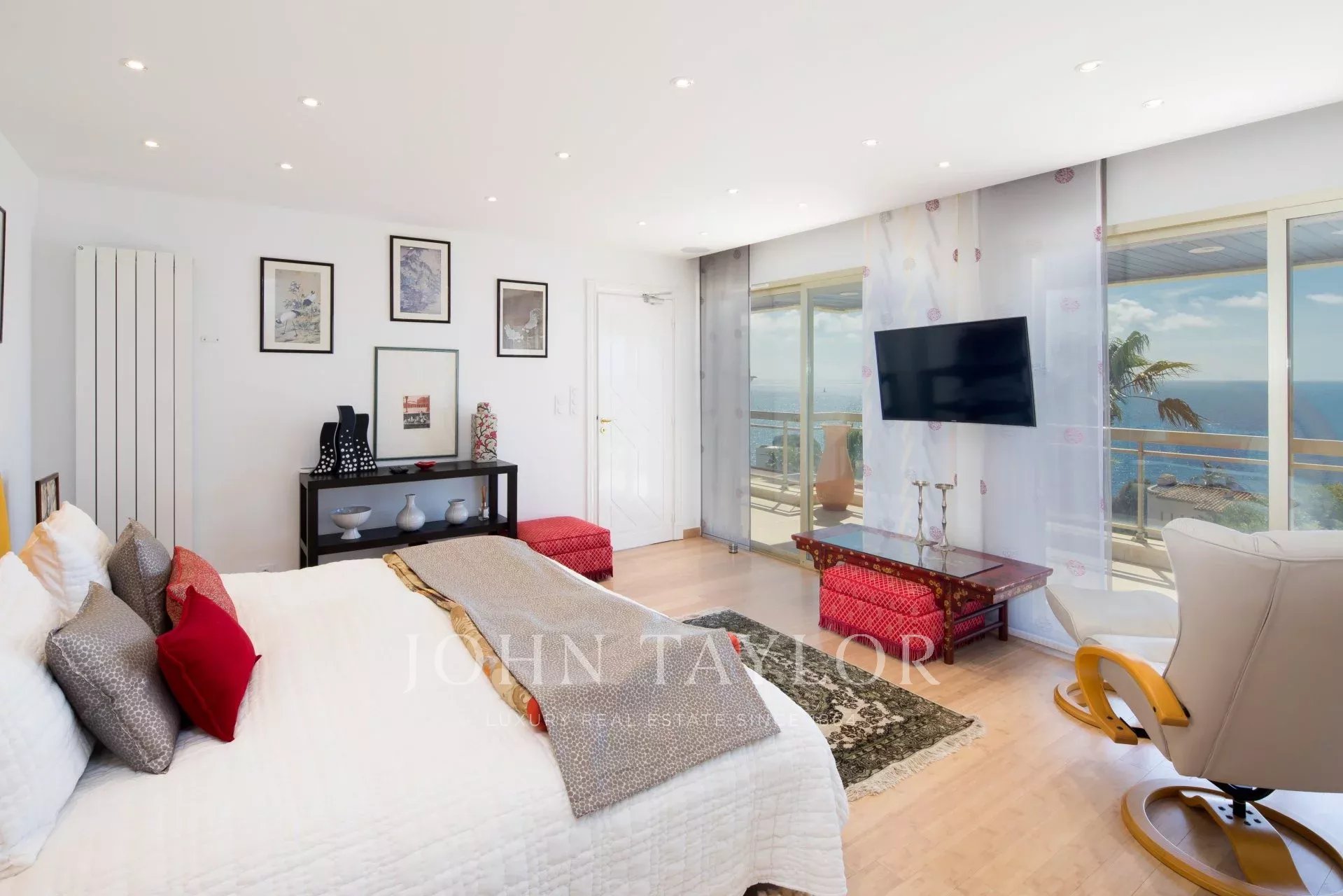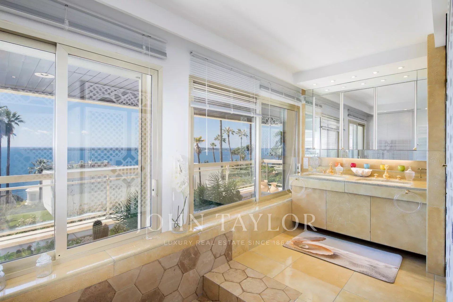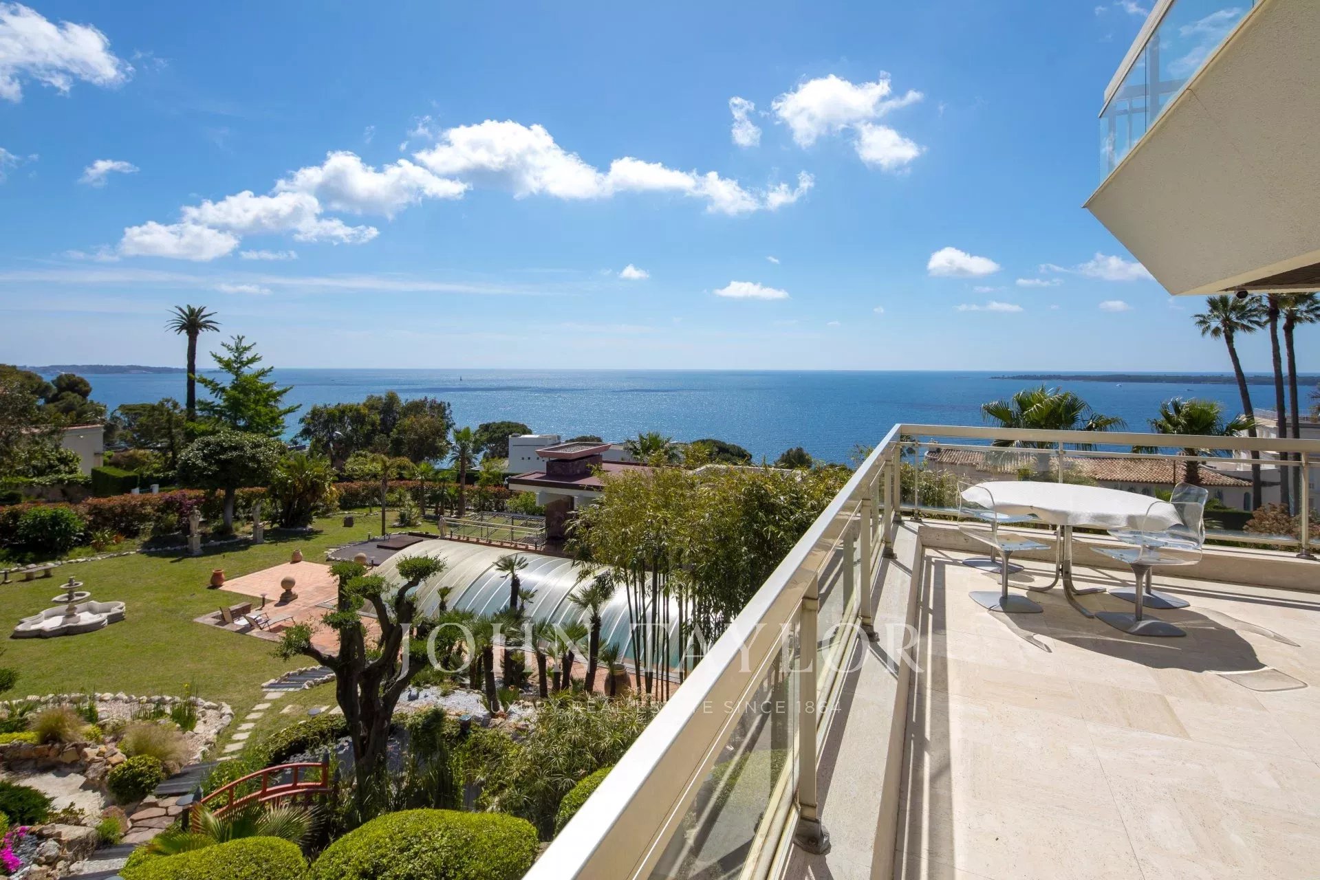 En una urbanización segura, gran chalet de 700 m2 situado en un terreno de unos 3.000 m2 con vistas panorámicas al mar y a las islas de Lérins.