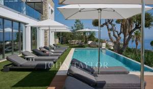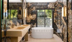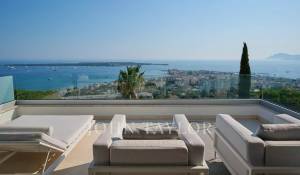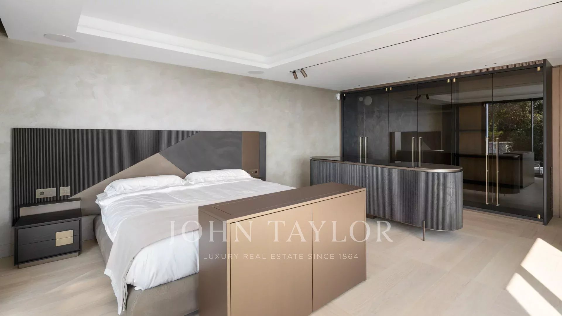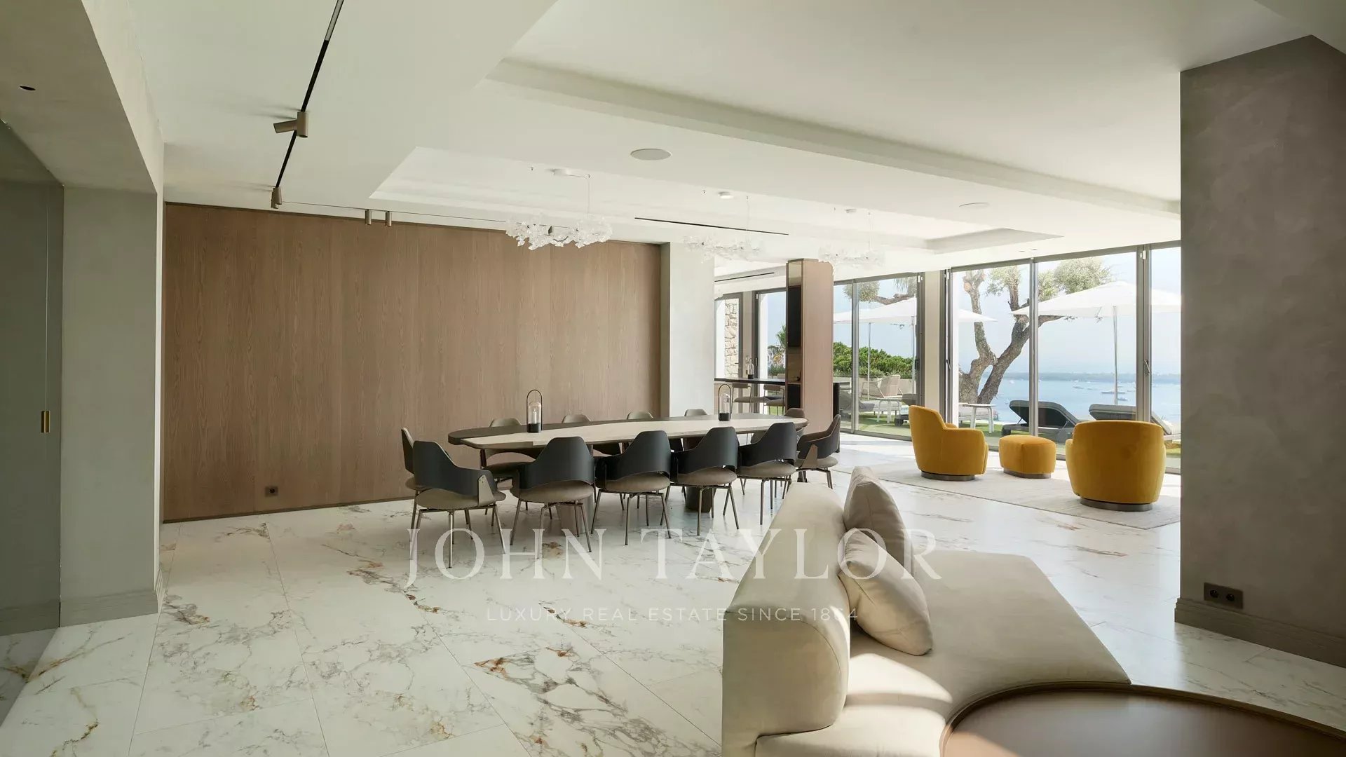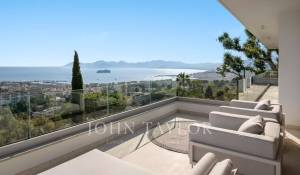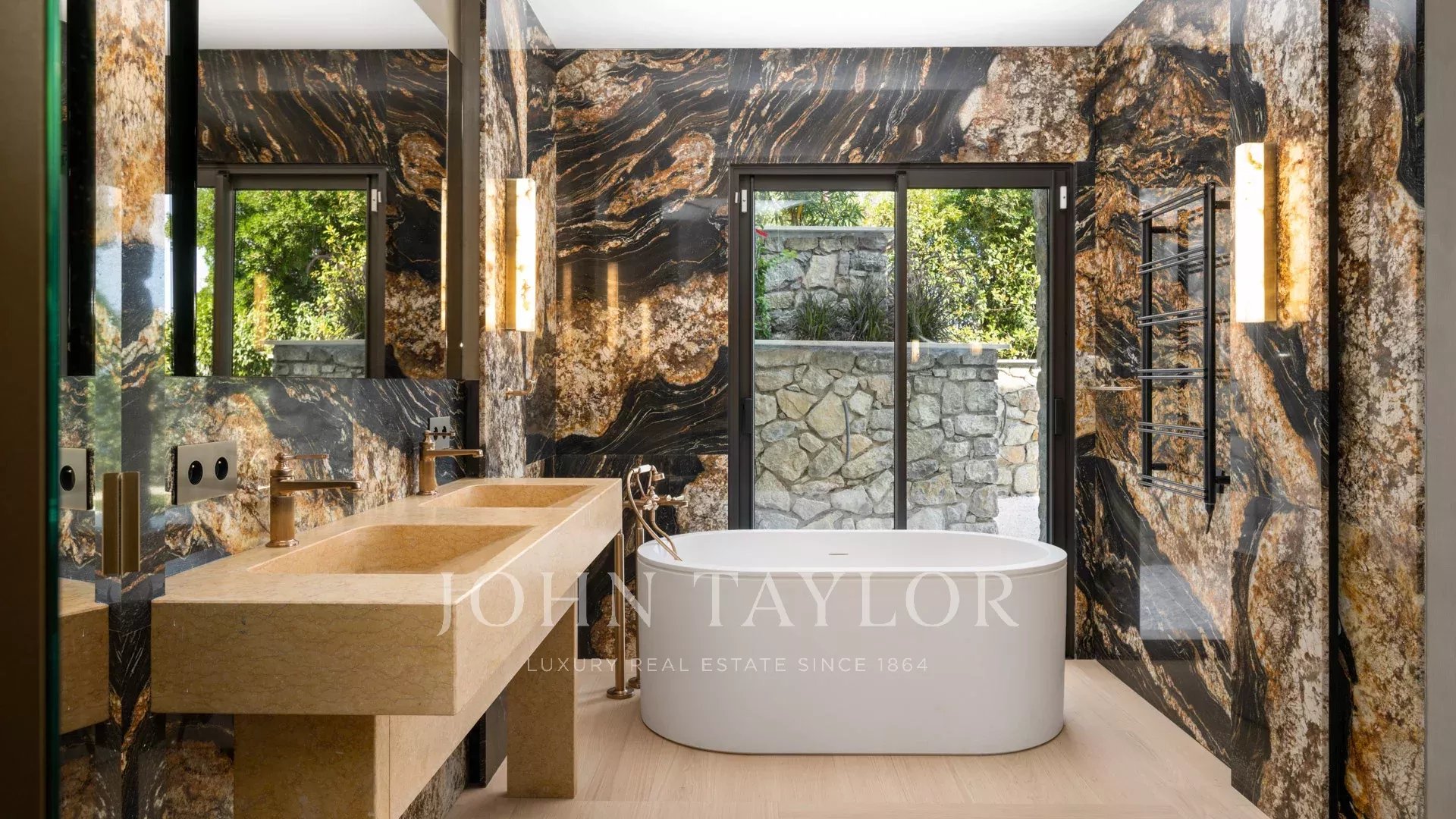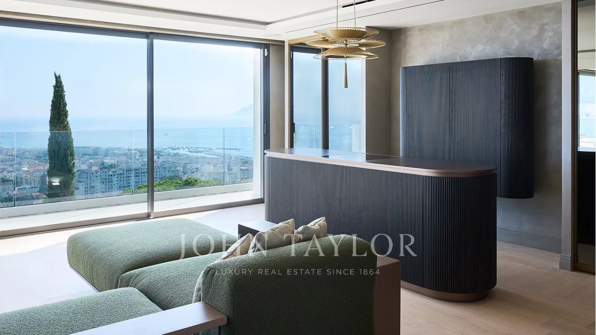 Con 550 m² de espacio habitable, la villa cuenta con una decoración sofisticada y vistas ininterrumpidas sobre la bahía de Cannes y las islas Lérins, lo que garantiza unas panorámicas impresionantes.