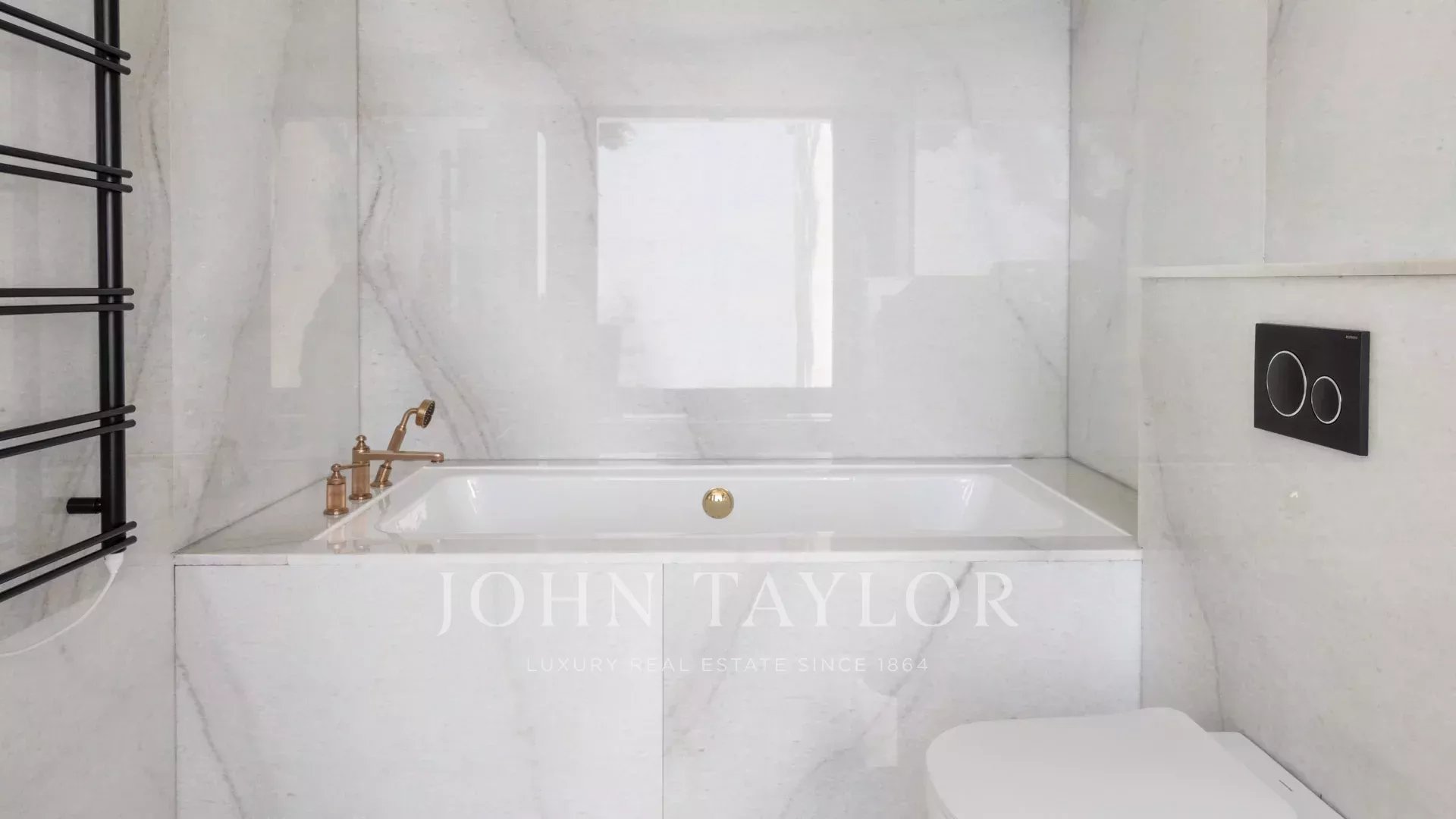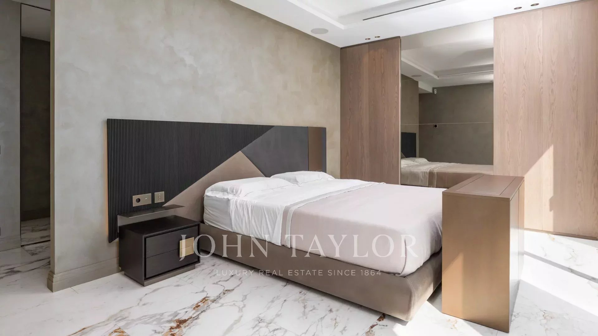 Una suite principal de unos 85m² (cama de matrimonio de 200cm) compuesta por un salón, un bar, con salida a una terraza, vestidor y cuarto de ducha.
