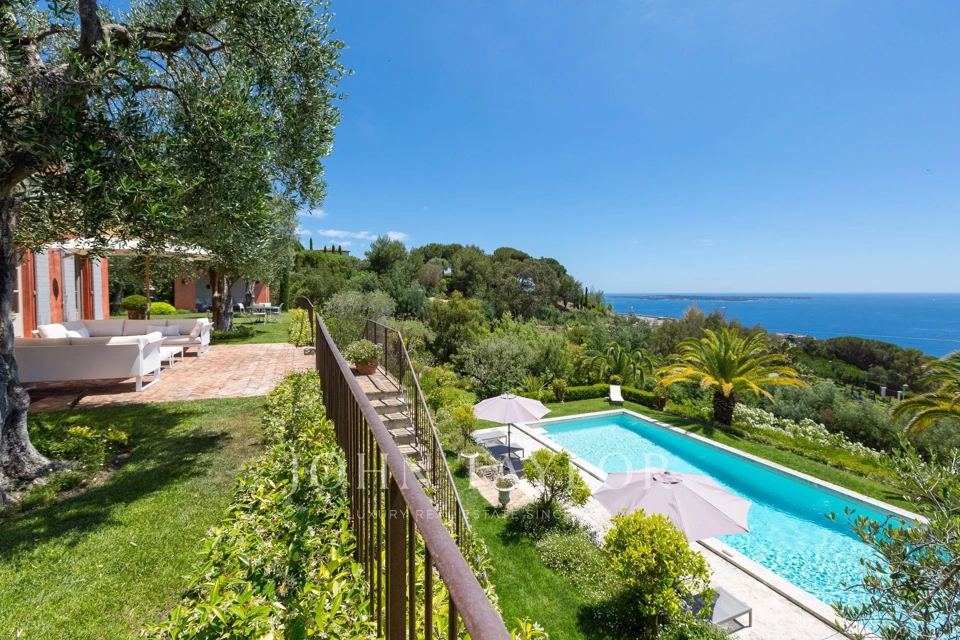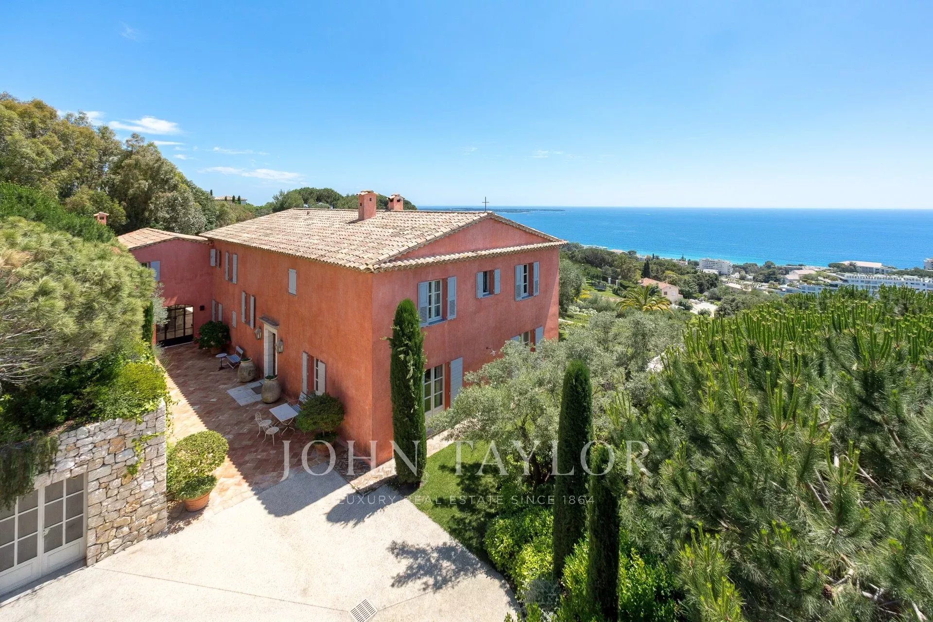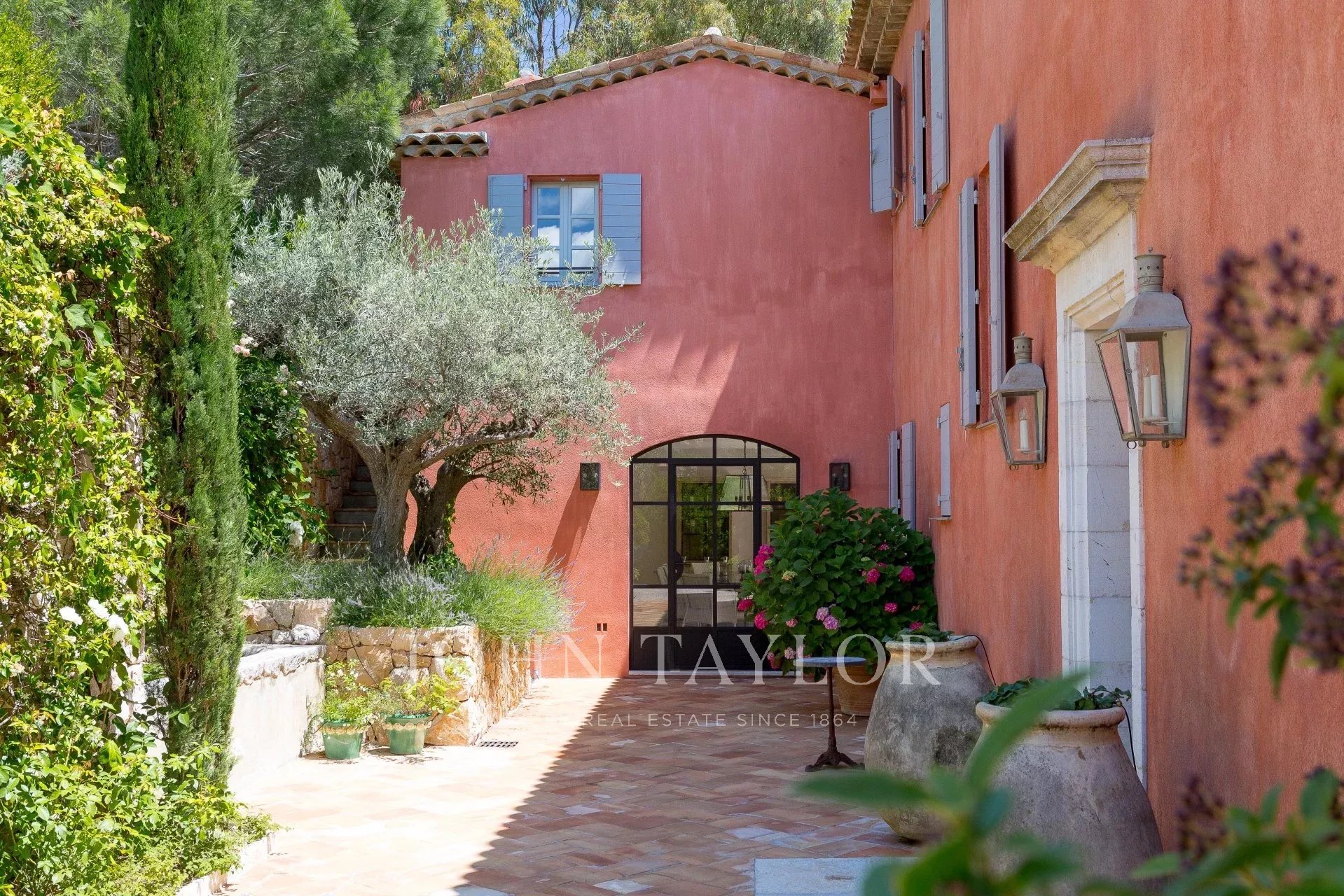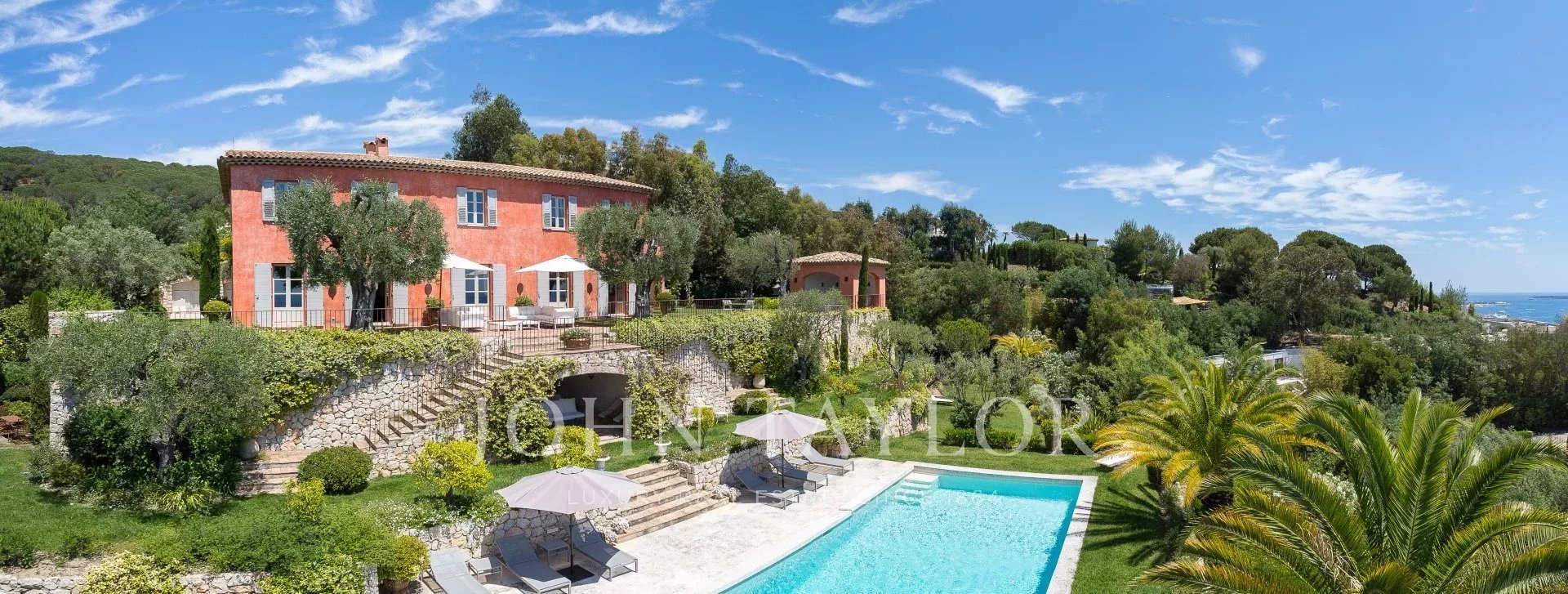En el barrio de la Croix des Gardes, a pocos minutos del centro de Cannes, esta gran casa Bastide (500 m2) goza de preciosas vistas al mar, a la bahía de Cannes y a los montes Esterel, en un terreno de 4.400 m2.
