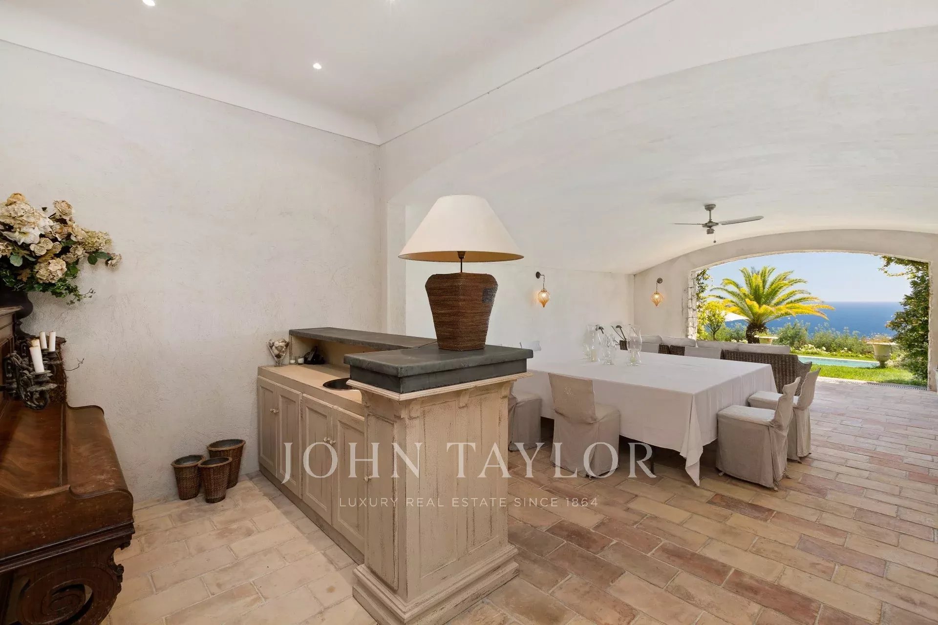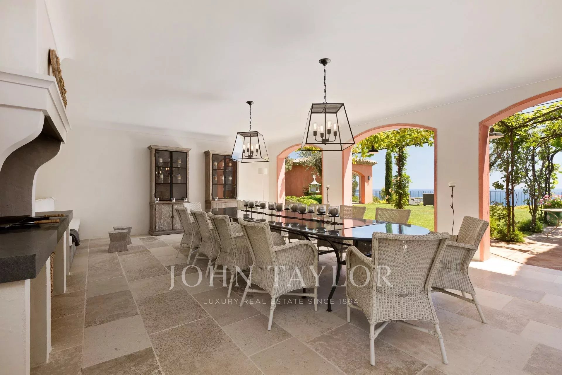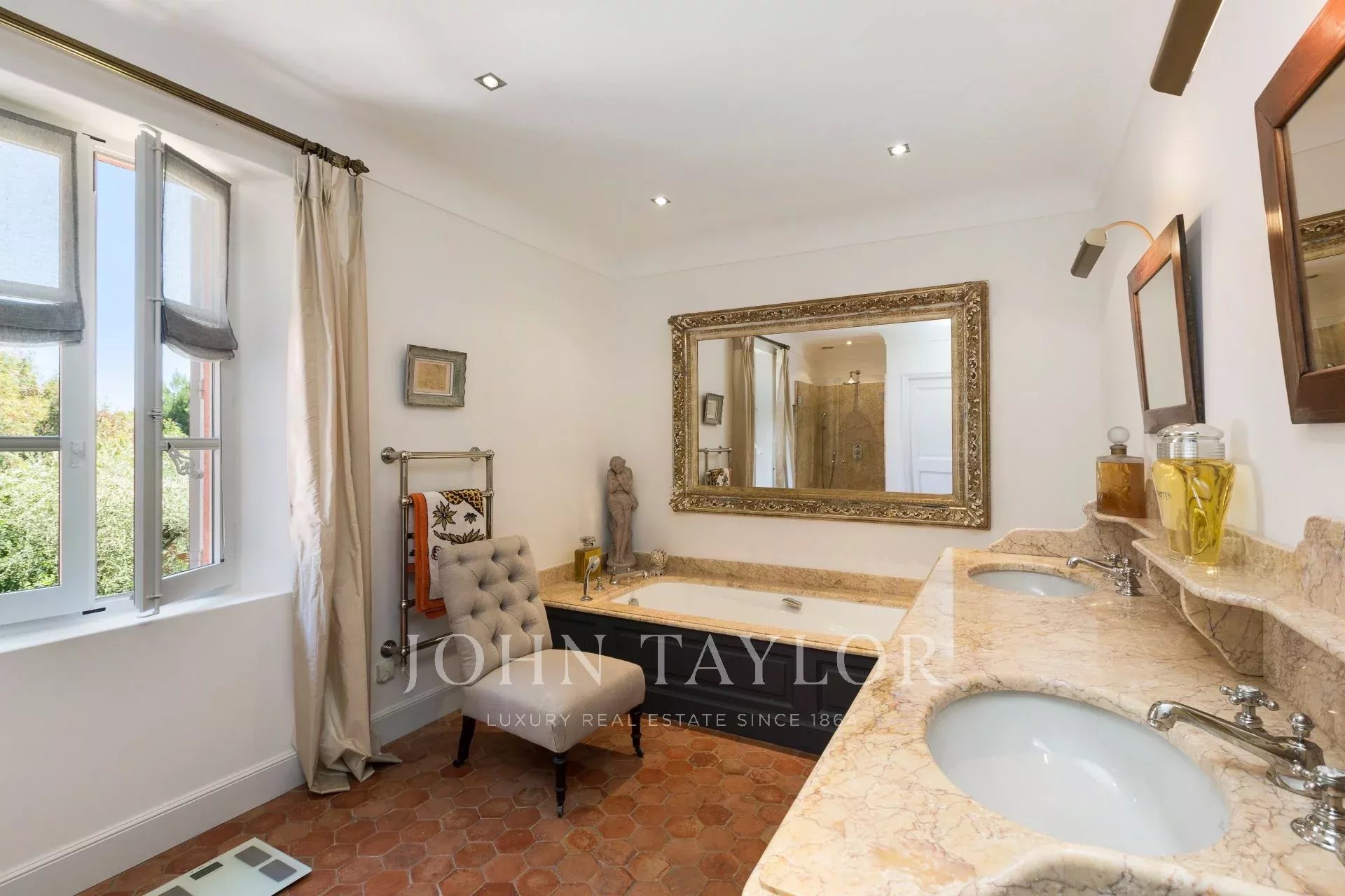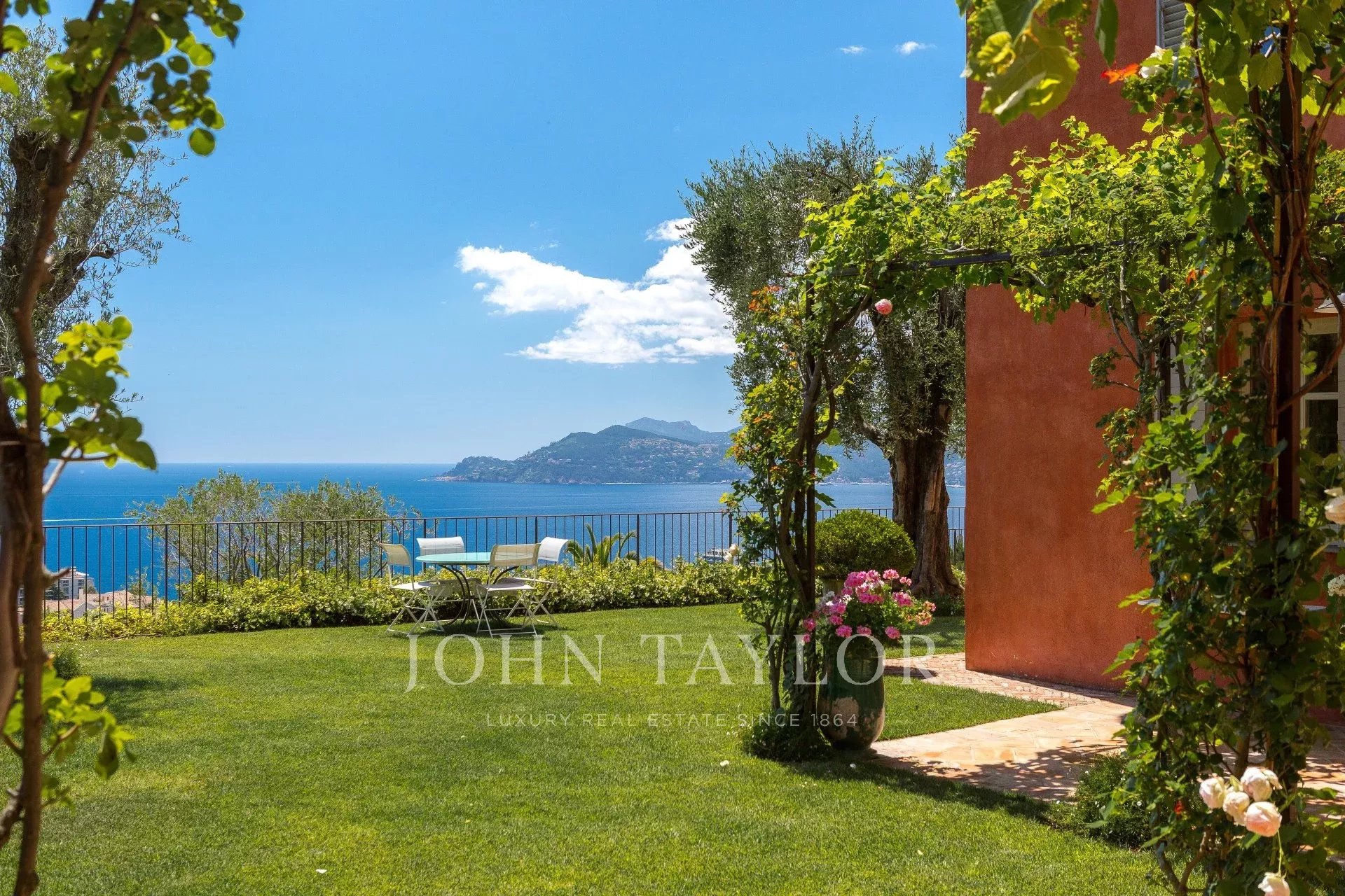 En el barrio de la Croix des Gardes, a pocos minutos del centro de Cannes, esta gran casa Bastide (500 m2) goza de preciosas vistas al mar, a la bahía de Cannes y a los montes Esterel, en un terreno de 4.400 m2.