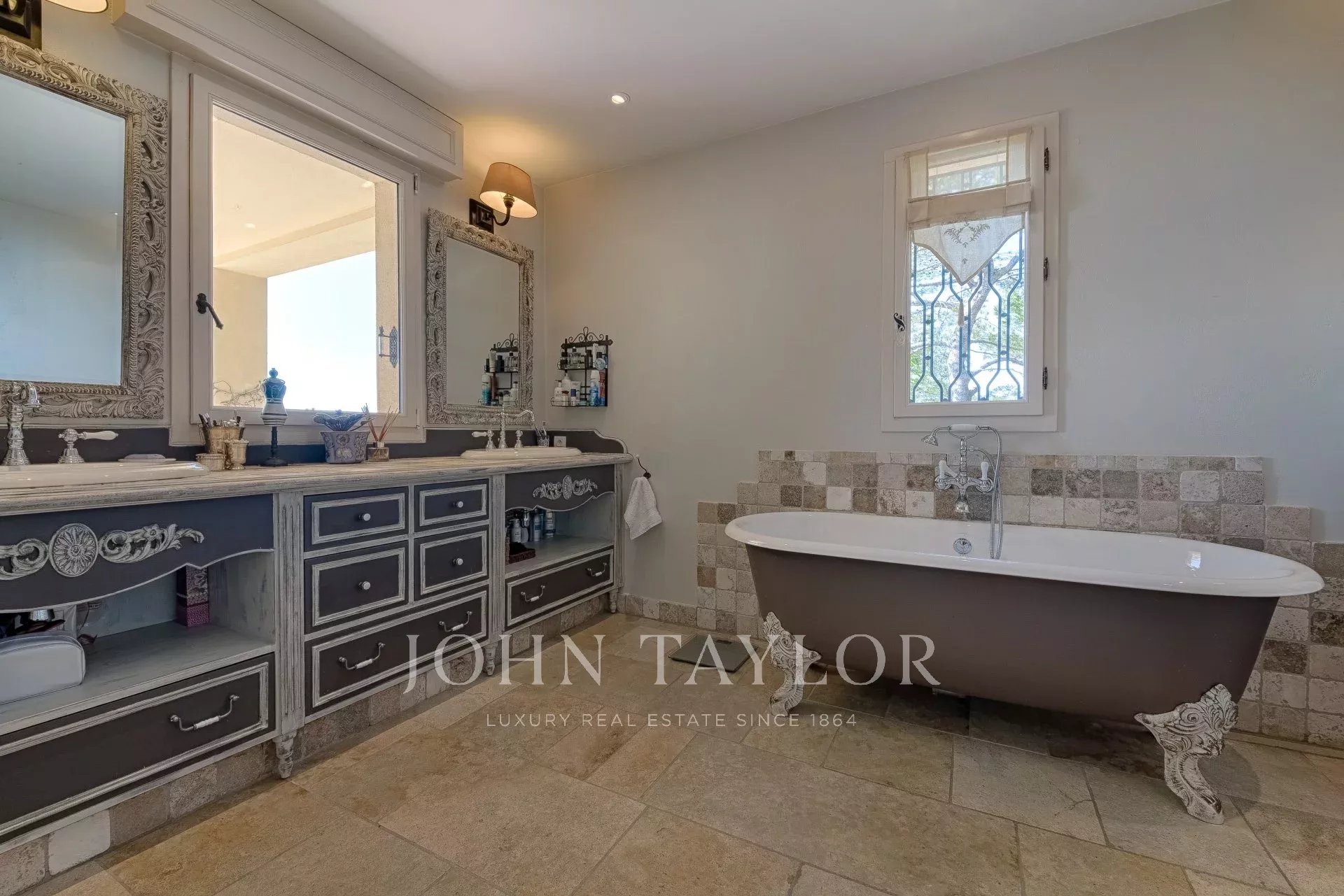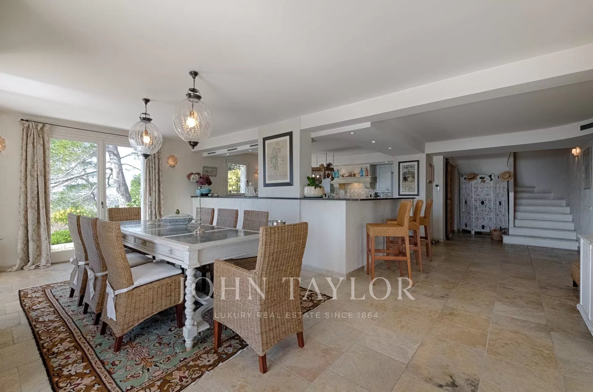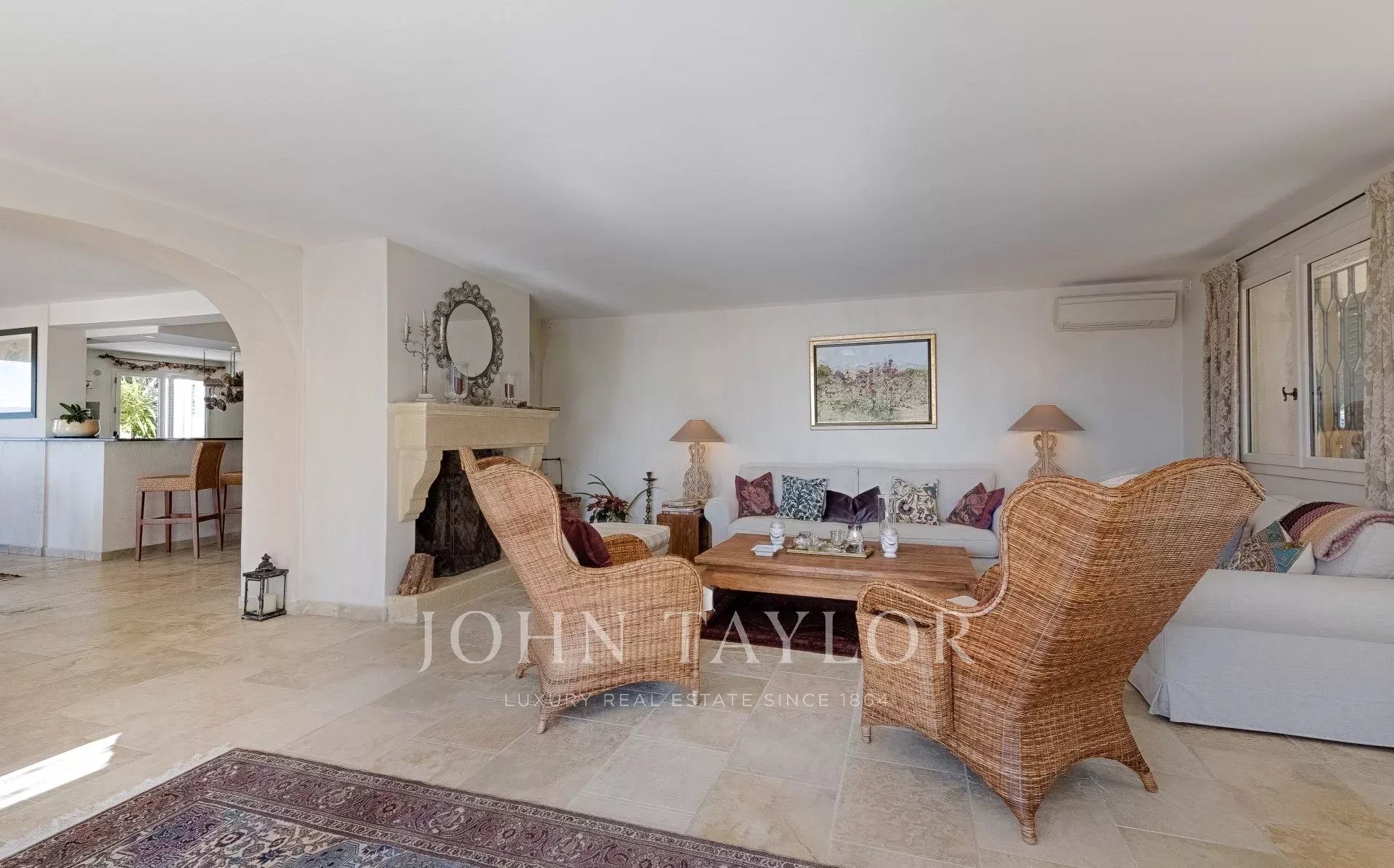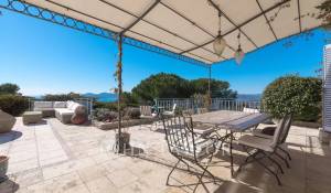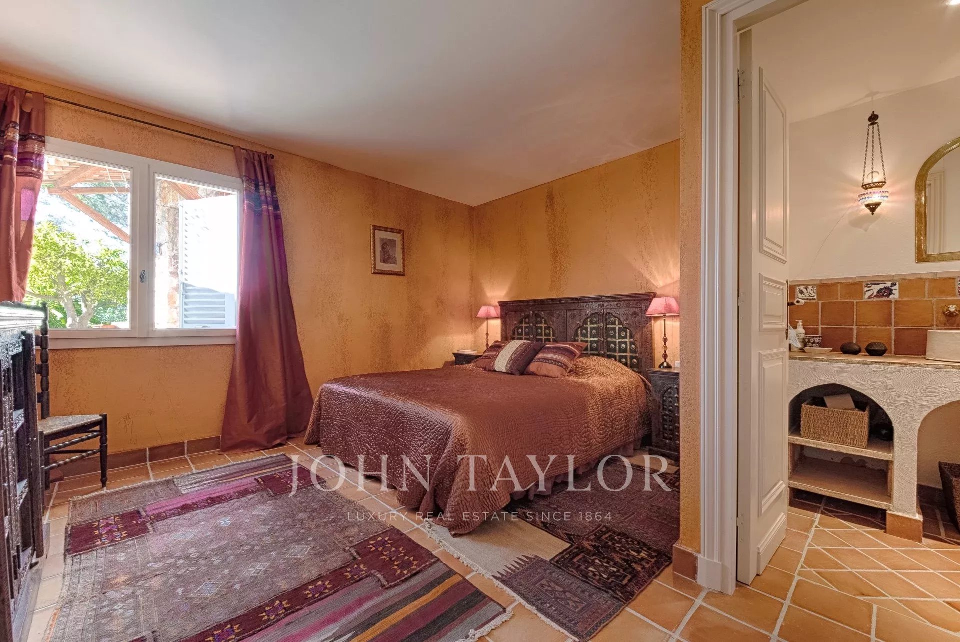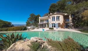 En las alturas de Cannes, hermosa y amplia villa climatizada de 350 m2 de superficie habitable sobre un terreno de 2.000 m2 que goza de vistas panorámicas sobre la bahía de Cannes y el macizo del Esterel.