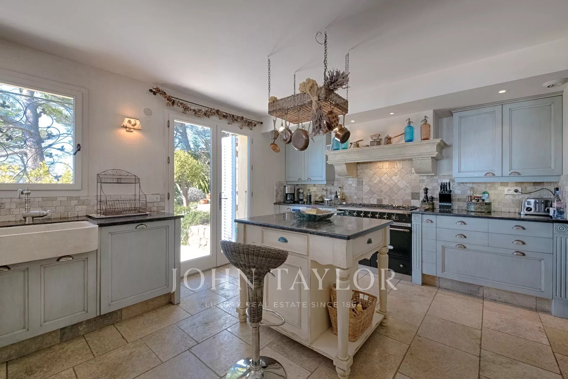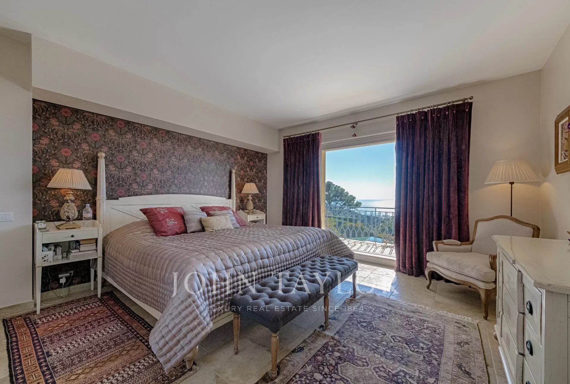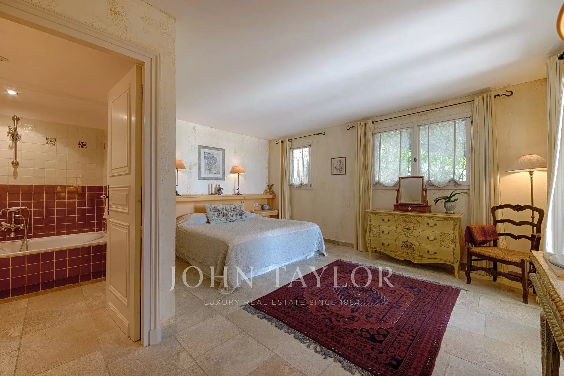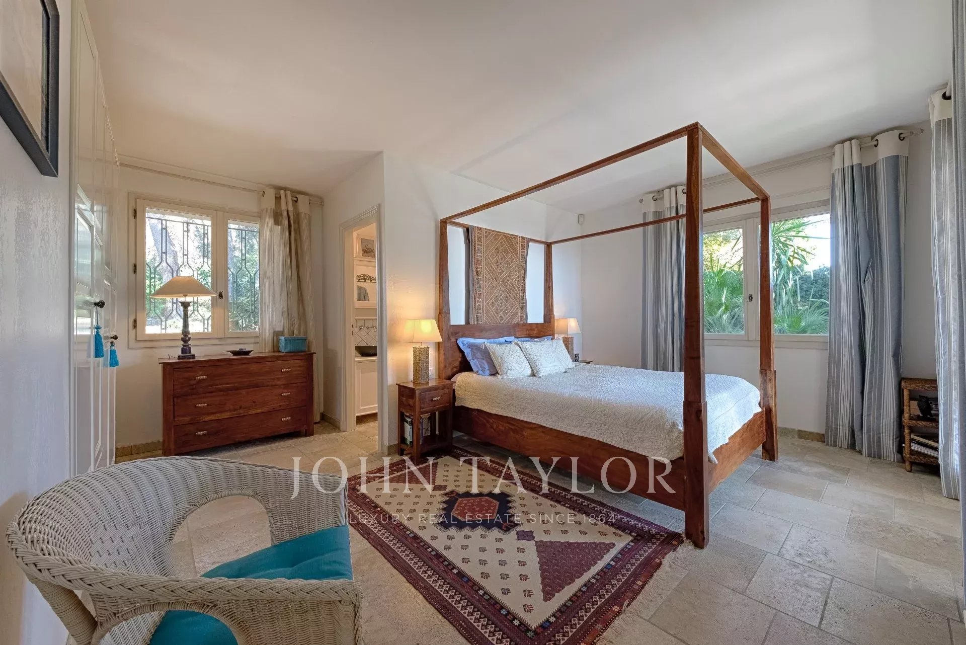 En las alturas de Cannes, hermosa y amplia villa climatizada de 350 m2 de superficie habitable sobre un terreno de 2.000 m2 que goza de vistas panorámicas sobre la bahía de Cannes y el macizo del Esterel.