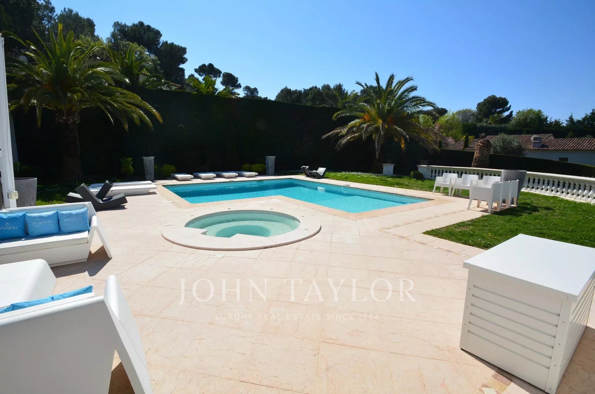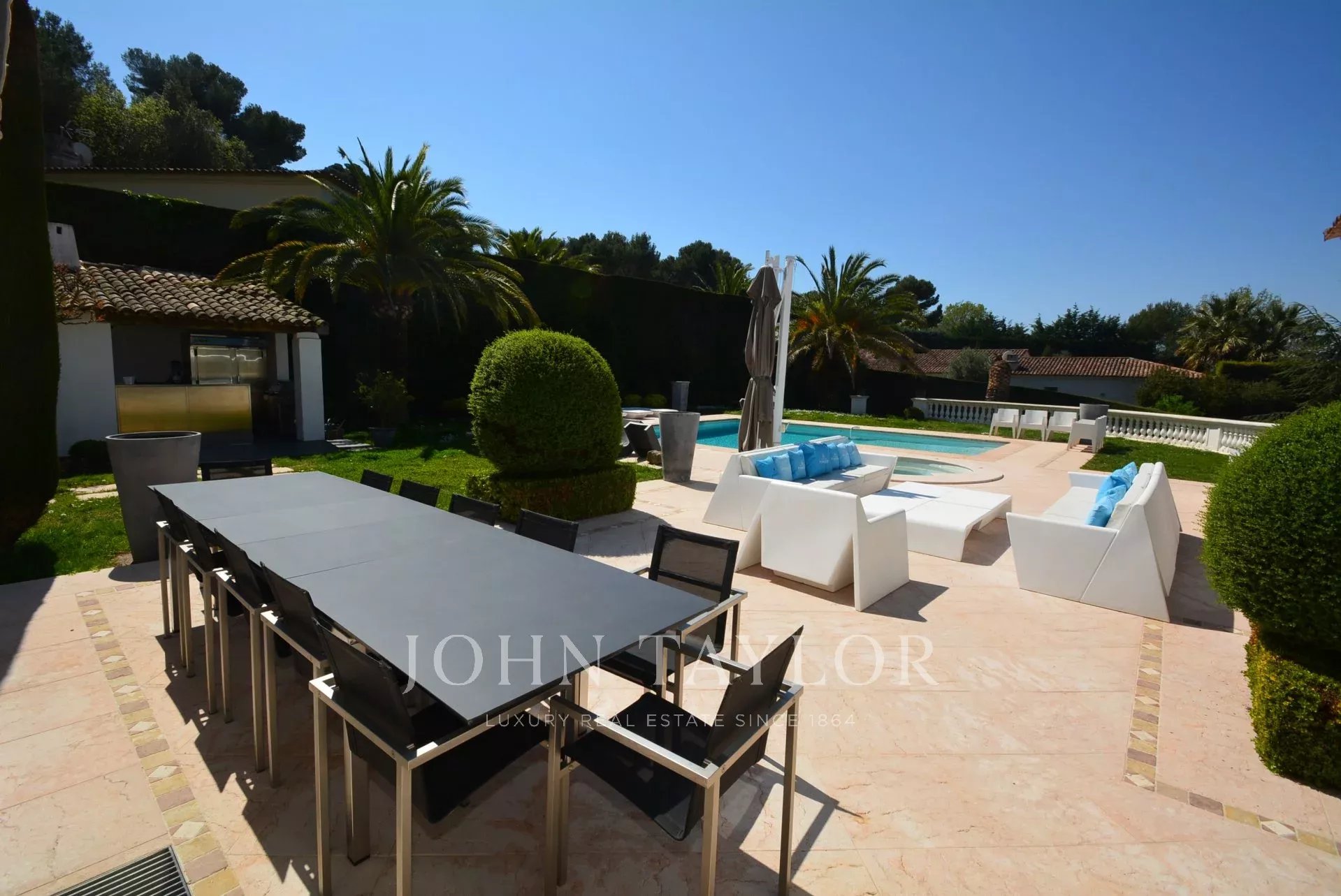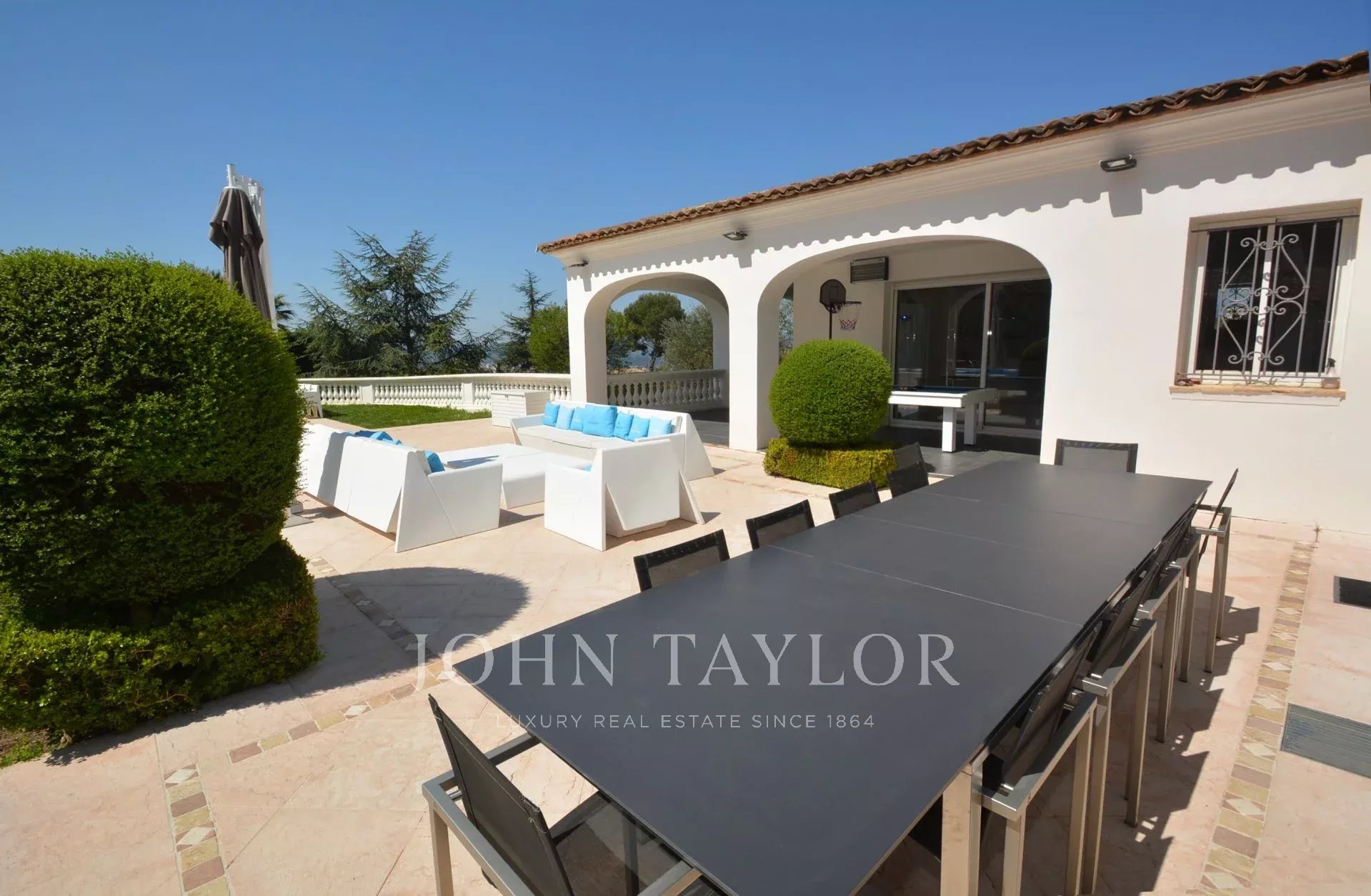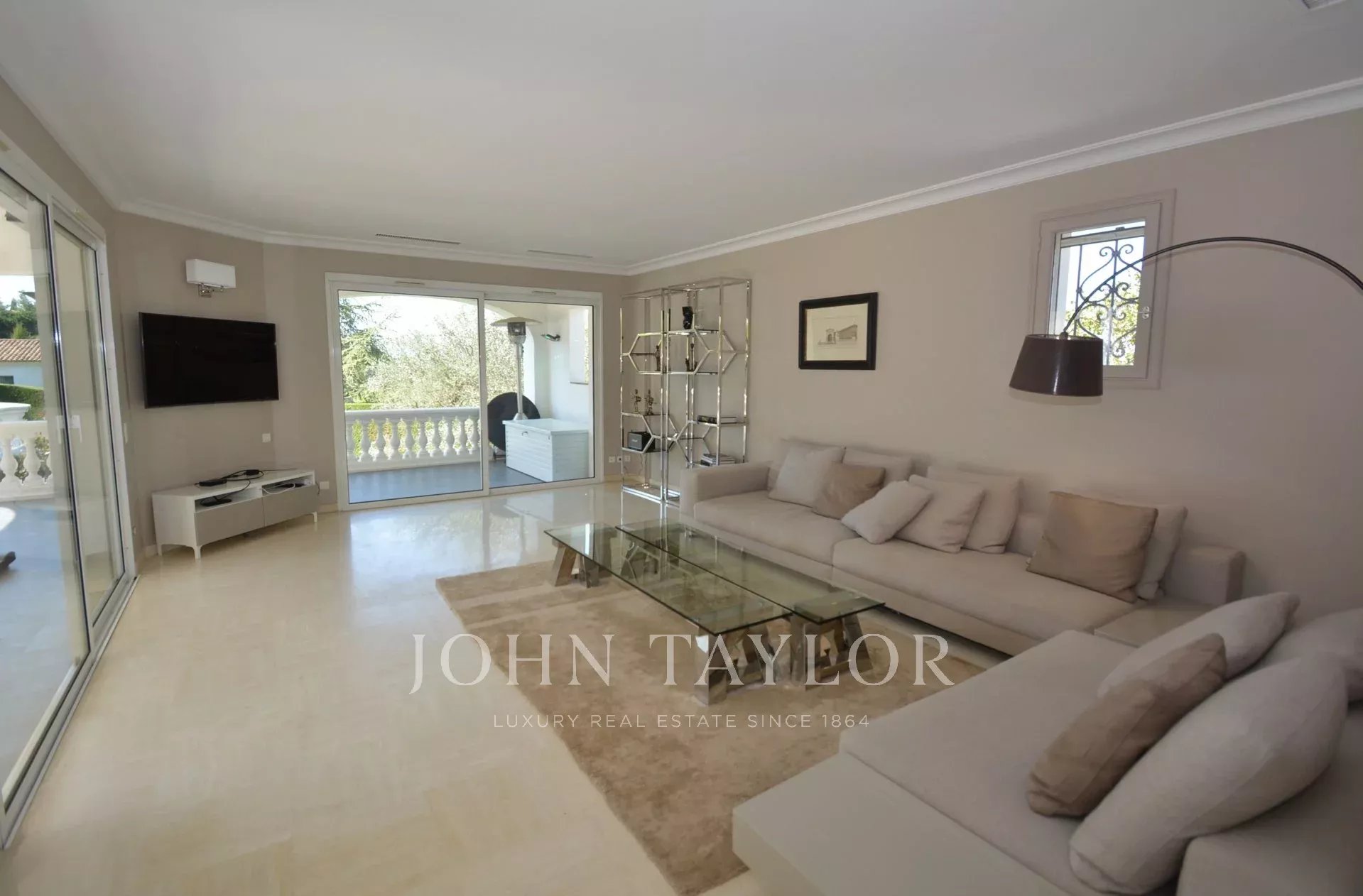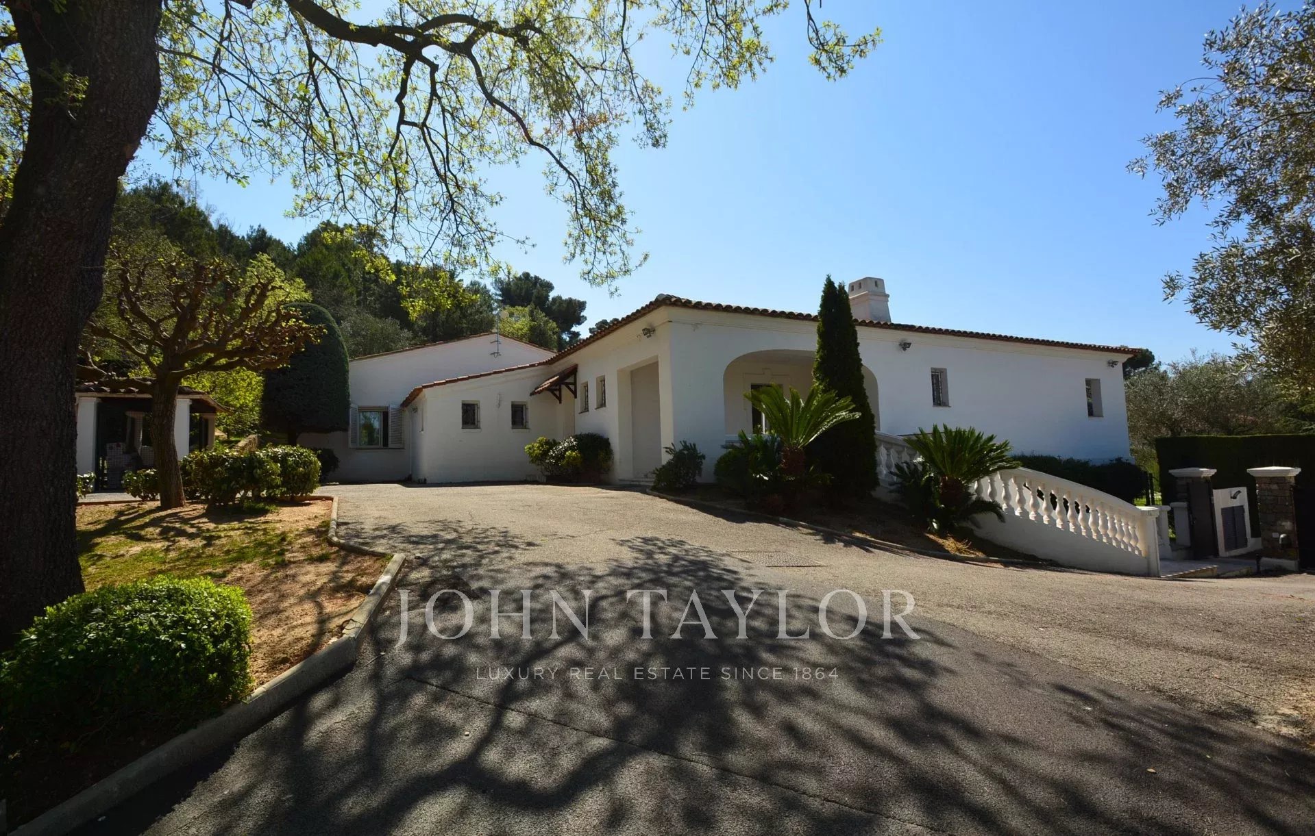 En las alturas de Cannes, en una urbanización tranquila y segura, propiedad de 400 m2 con aire acondicionado en el corazón de 3.000 m2 de terreno ajardinado.
