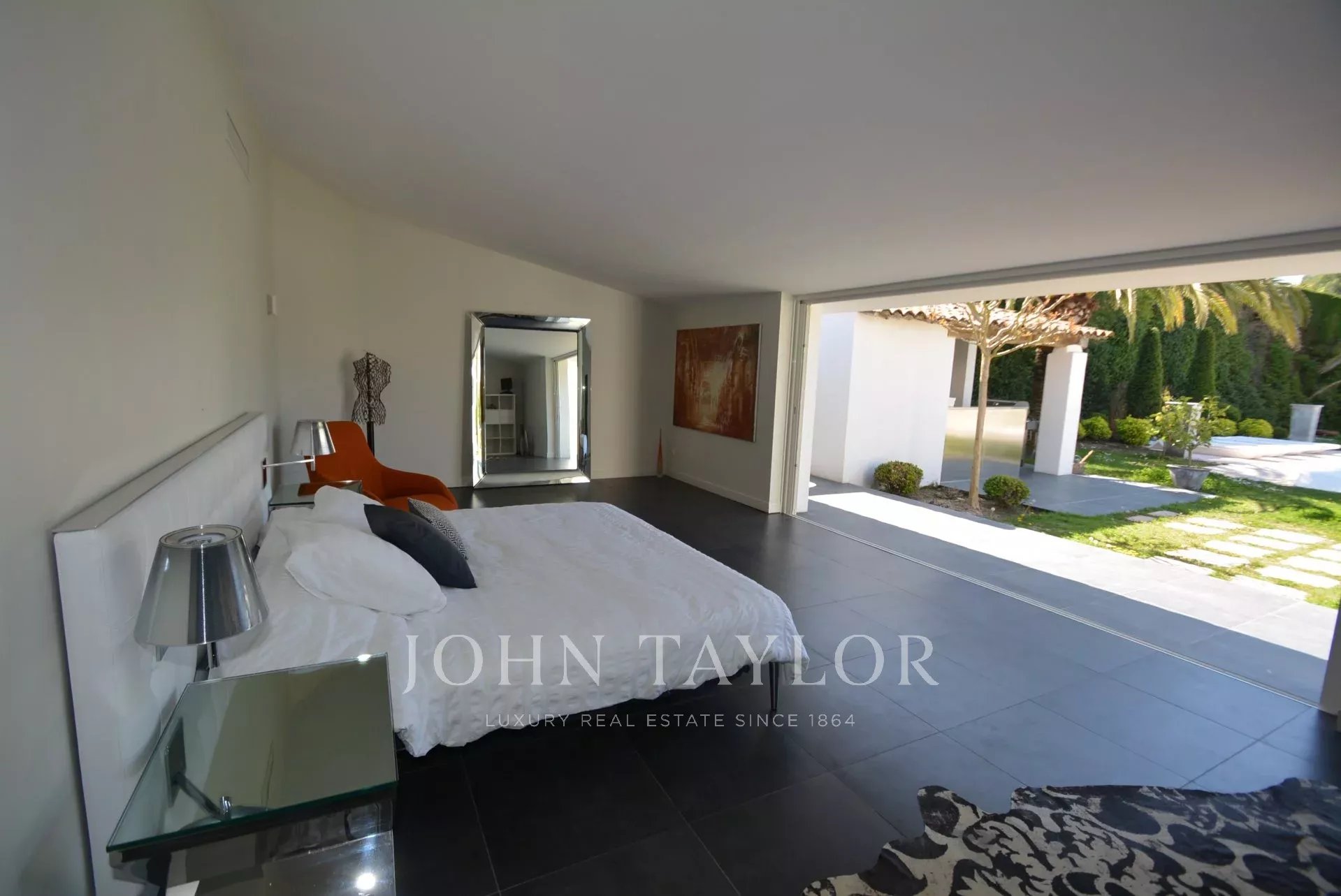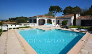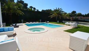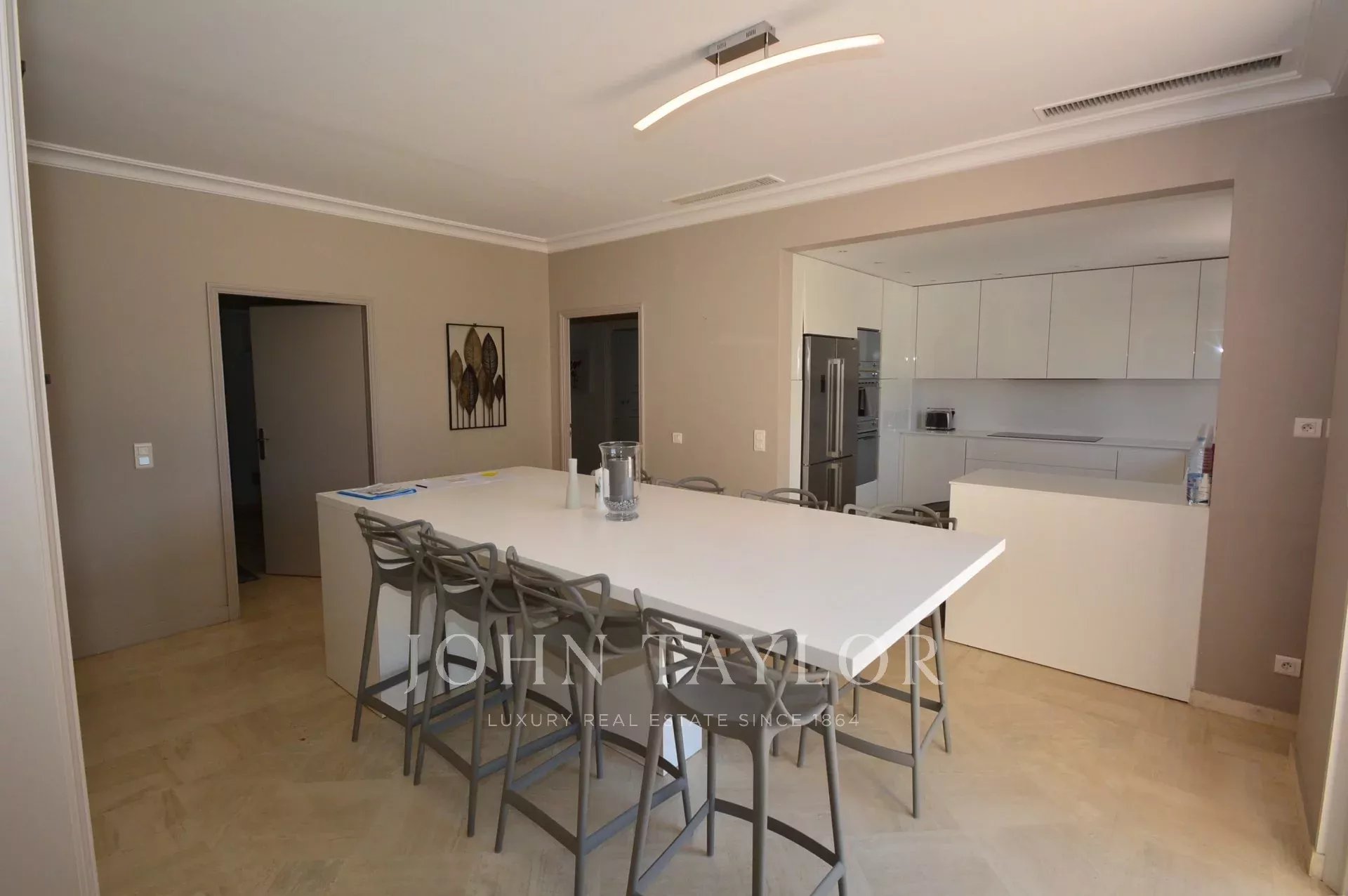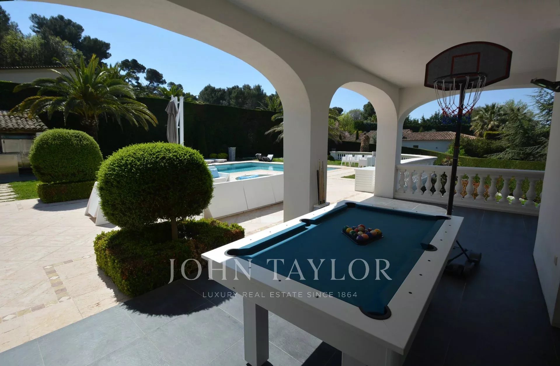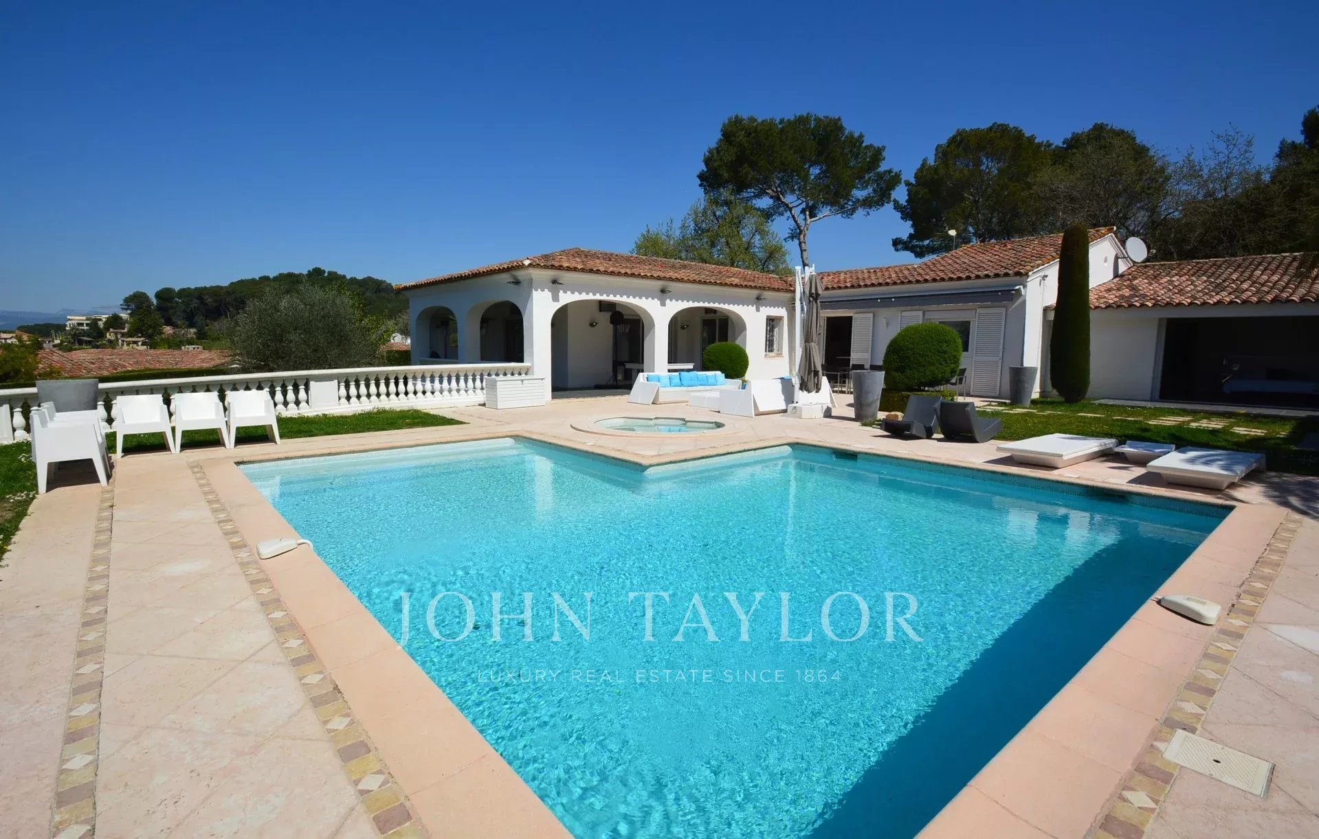En las alturas de Cannes, en una urbanización tranquila y segura, propiedad de 400 m2 con aire acondicionado en el corazón de 3.000 m2 de terreno ajardinado.
