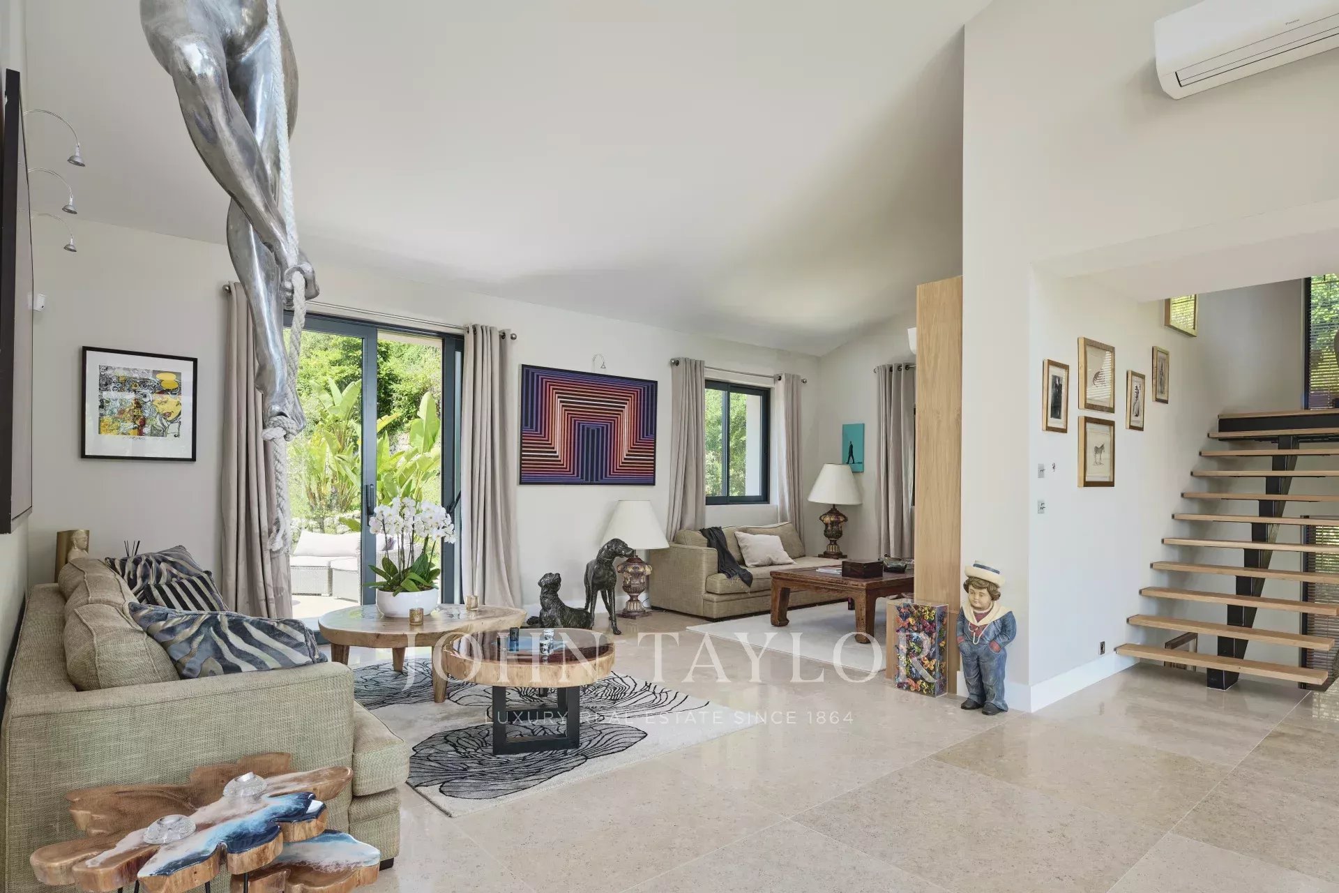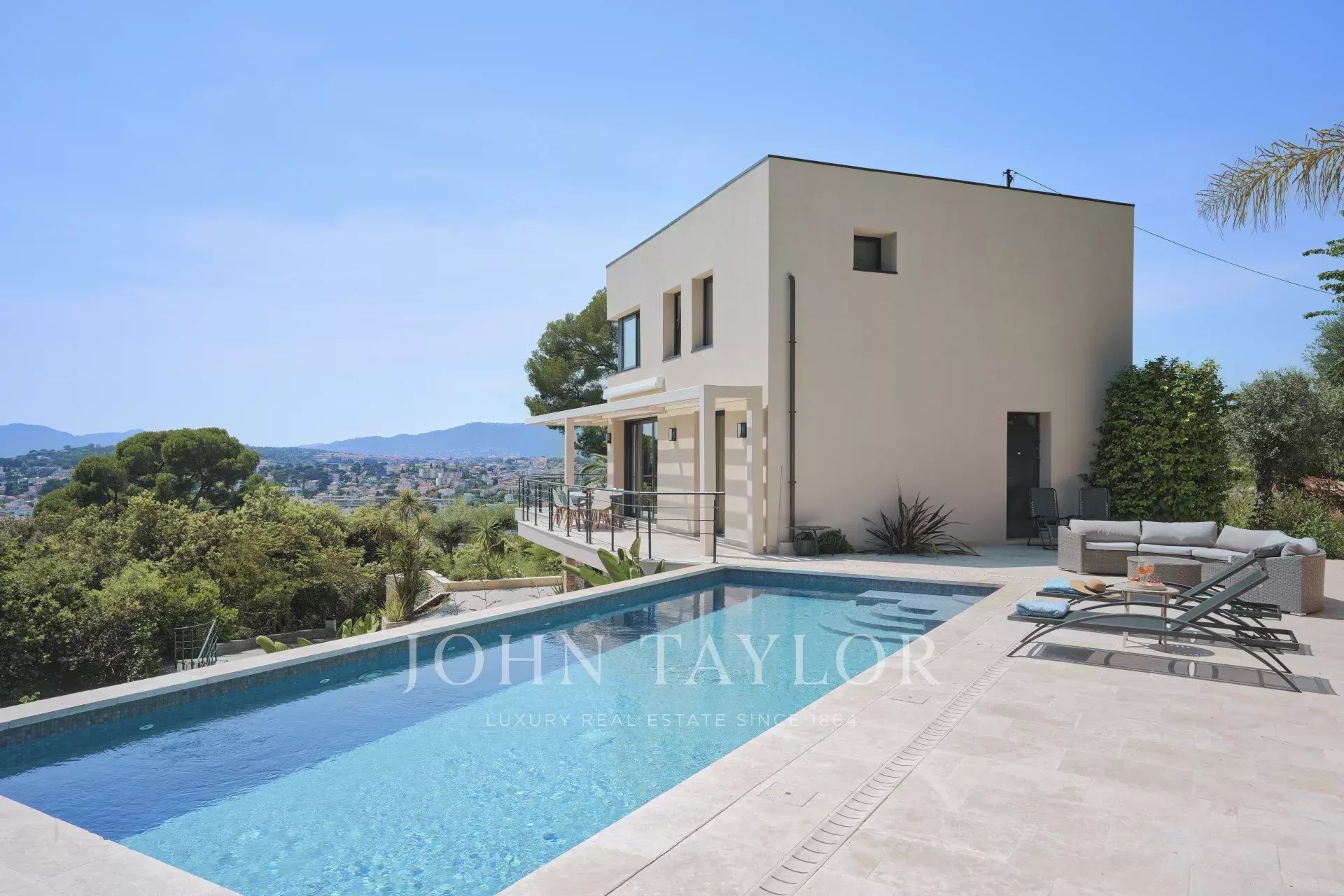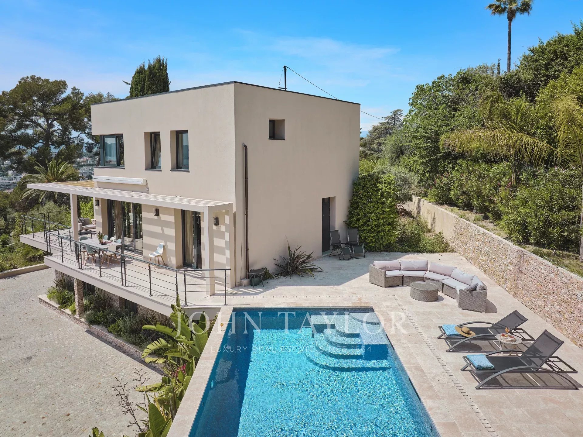 Situado en las colinas de Cannes en una tranquila zona residencial a sólo 10 minutos del centro de Cannes, esta hermosa villa contemporánea de unos 300 m2 ha sido completamente renovado a un nivel muy alto.