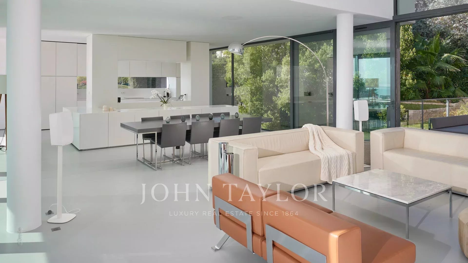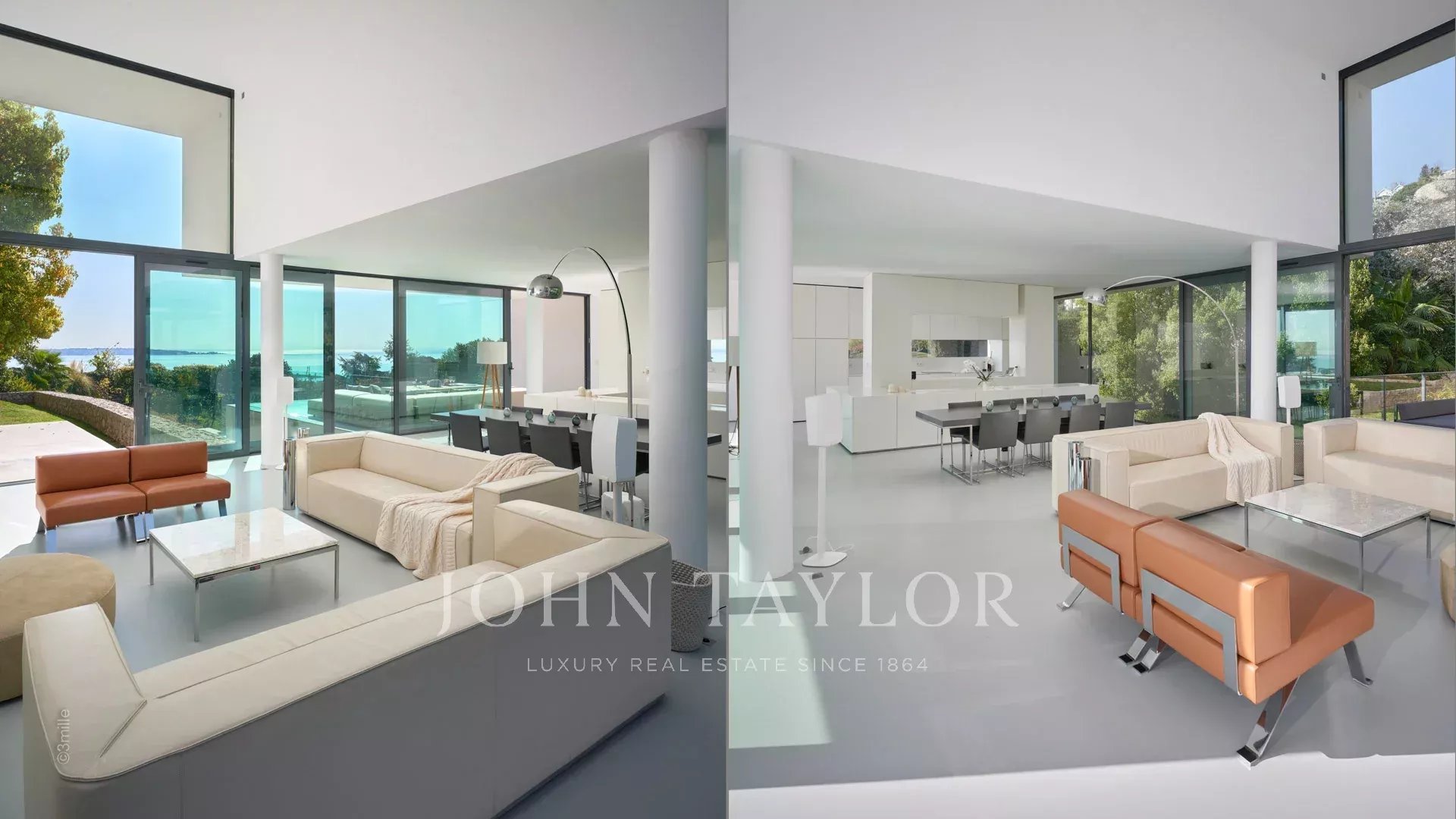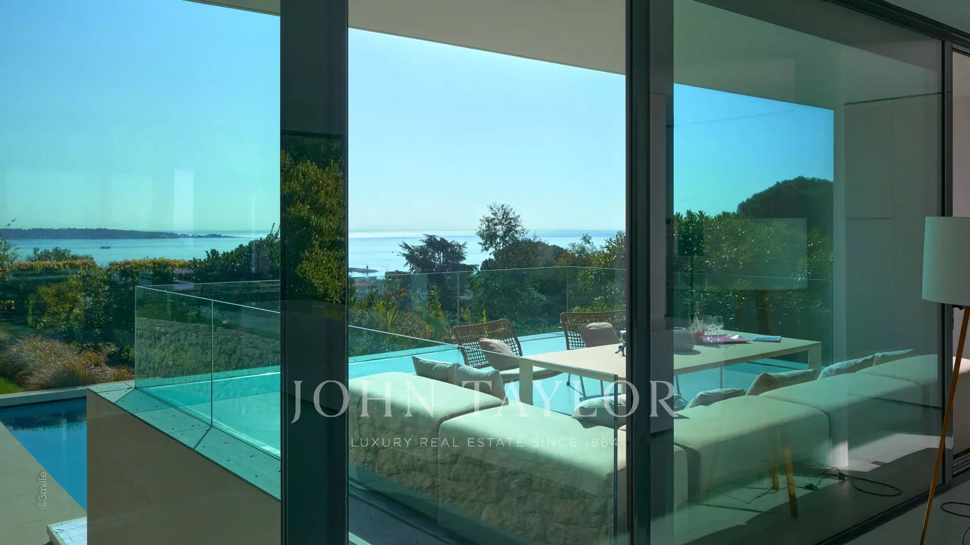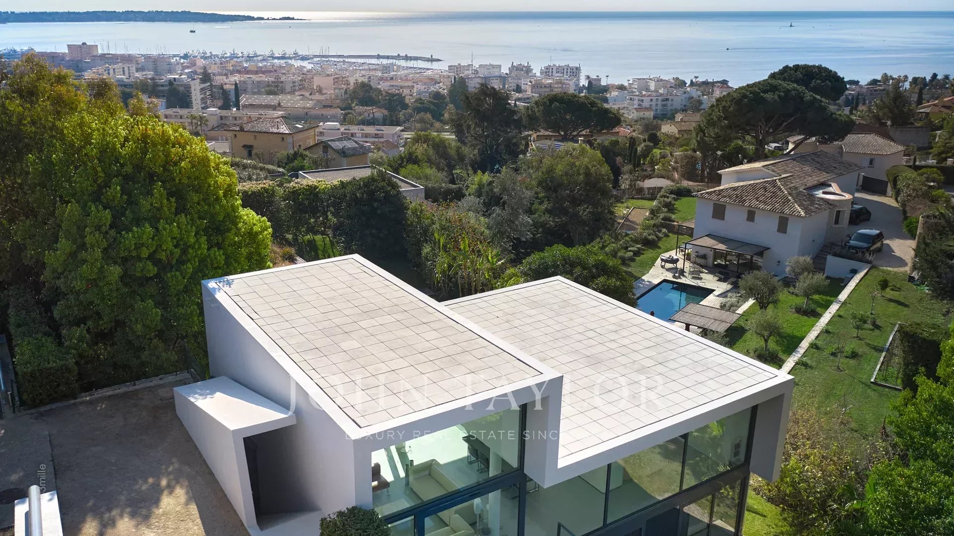 En las alturas de Golfe-Juan y totalmente climatizada, esta hermosa propiedad de arquitectura moderna construida en 2 niveles se compone de la siguiente manera: