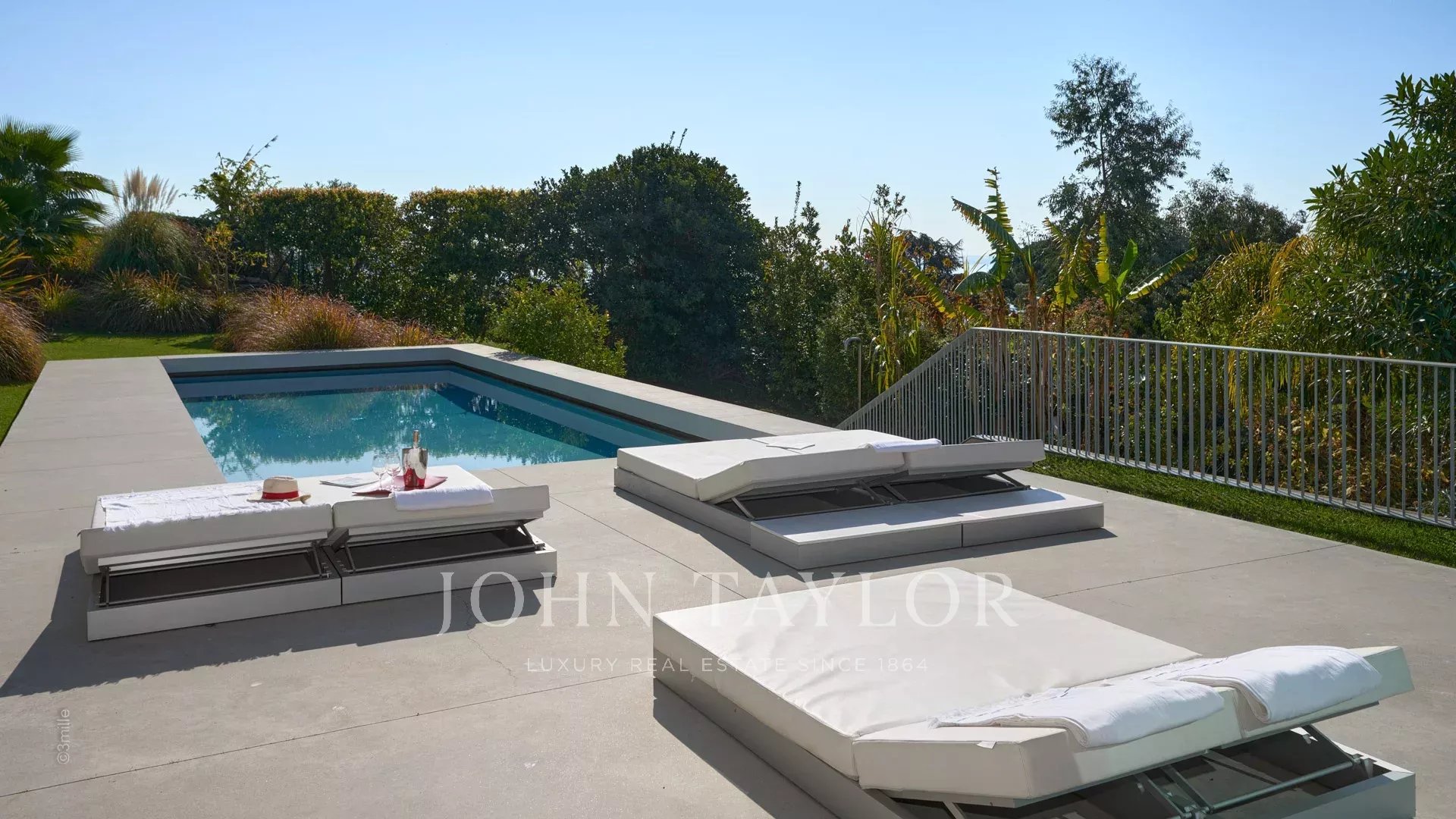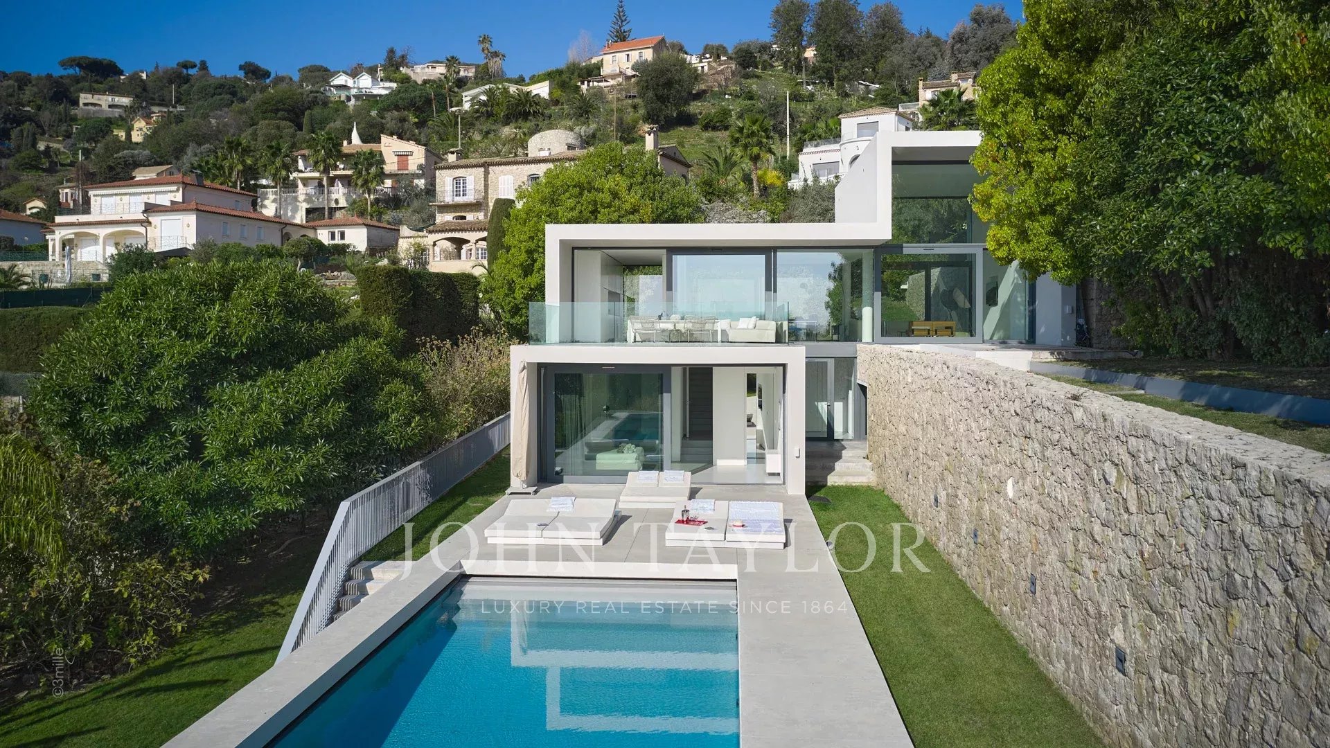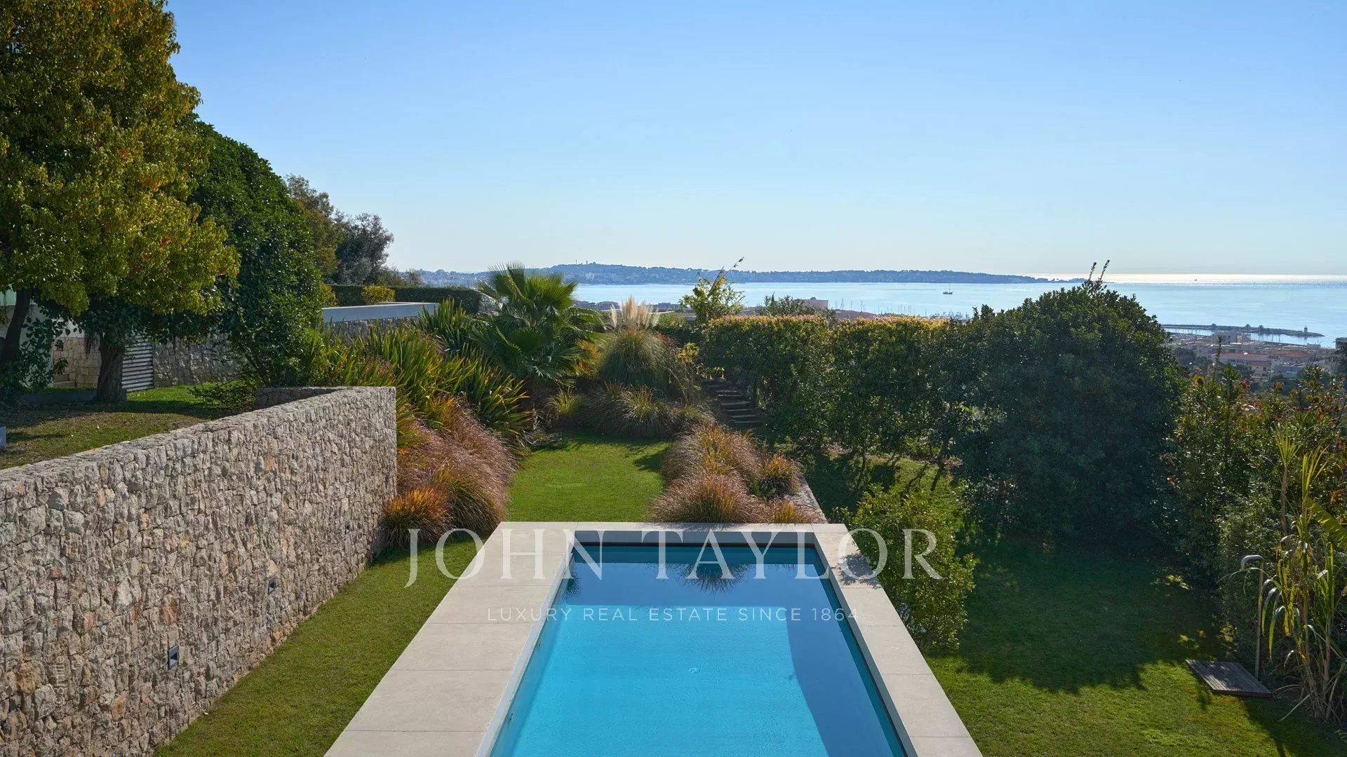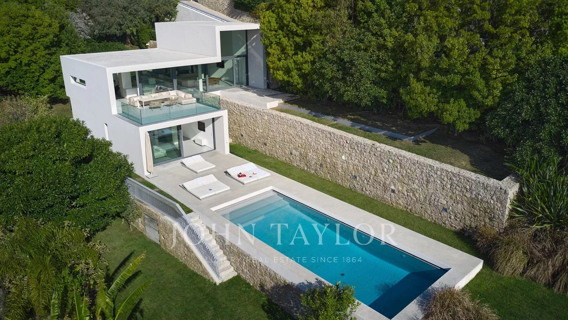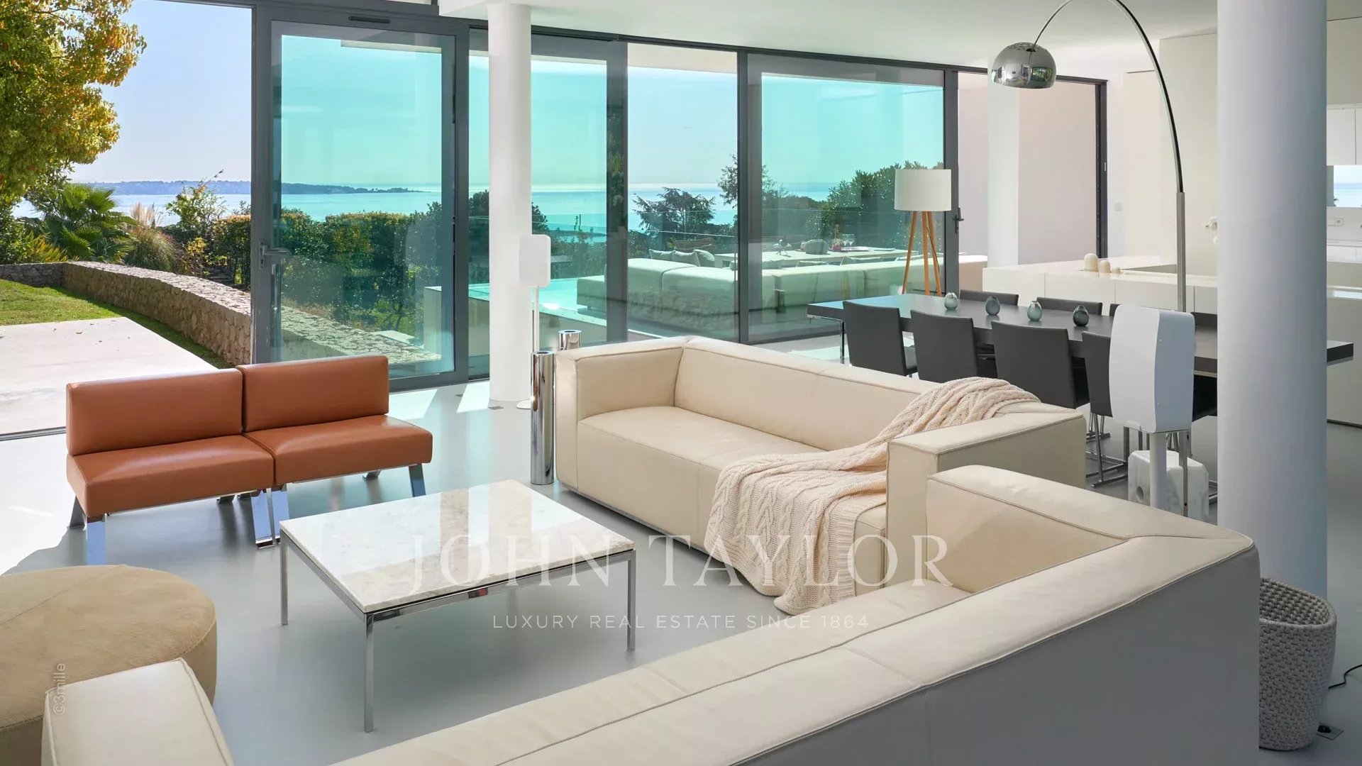 En las alturas de Golfe-Juan y totalmente climatizada, esta hermosa propiedad de arquitectura moderna construida en 2 niveles se compone de la siguiente manera: