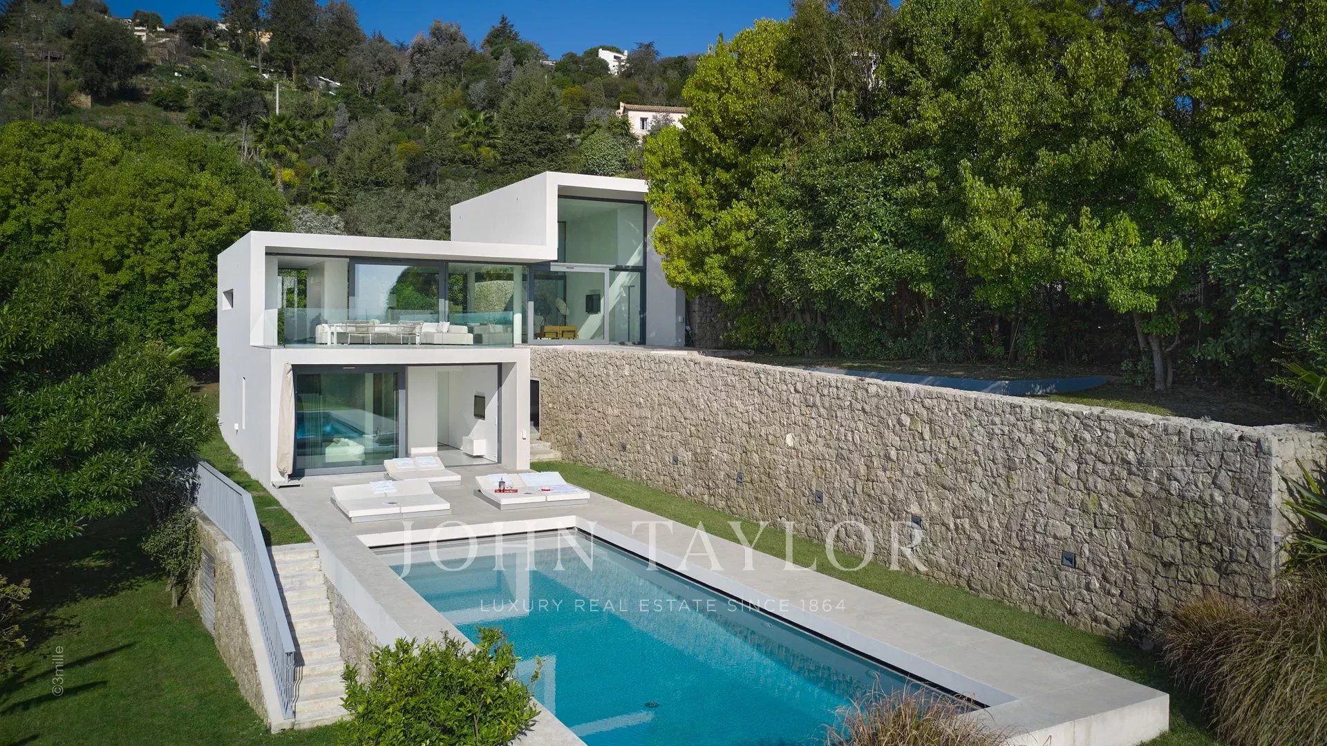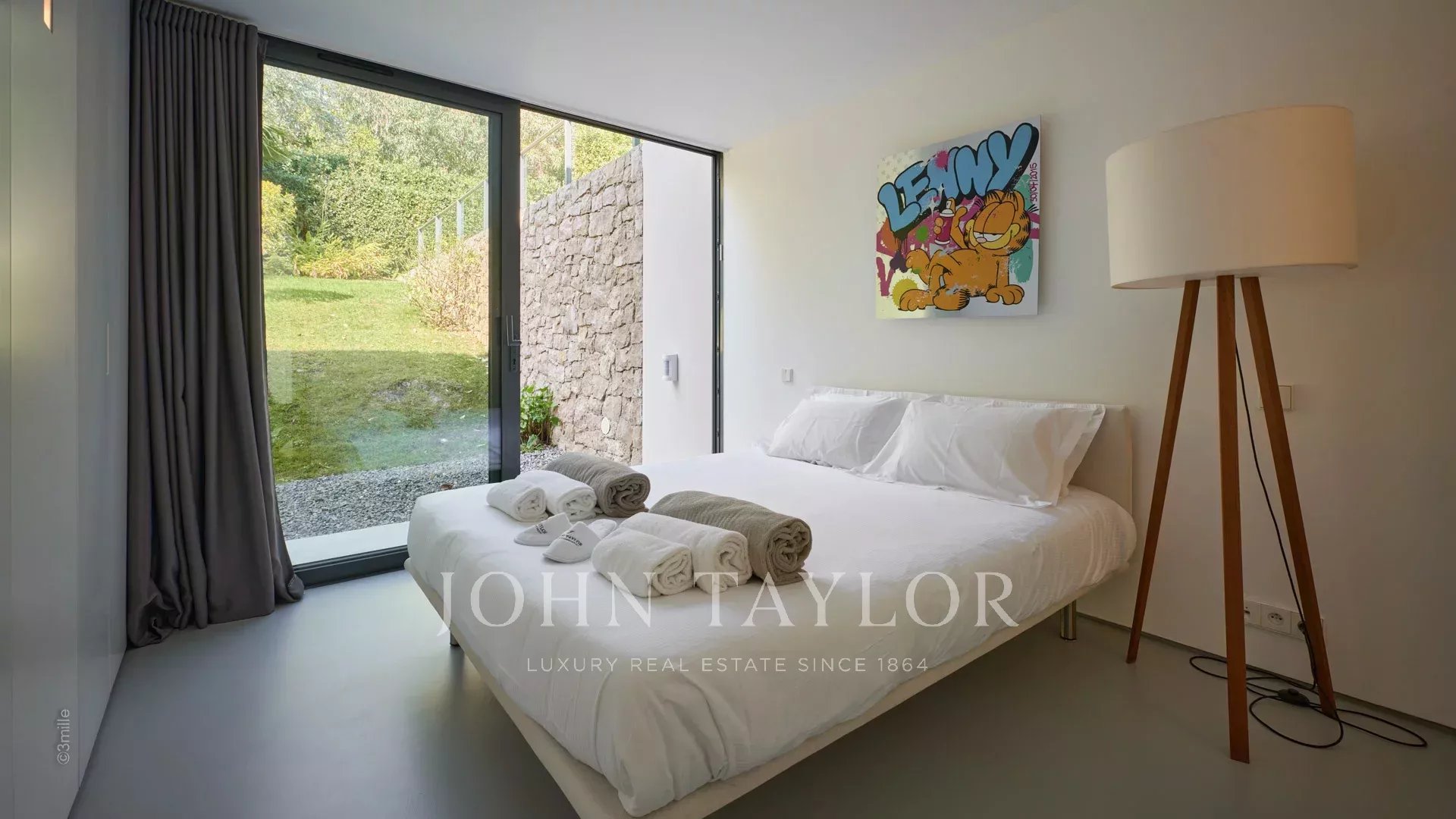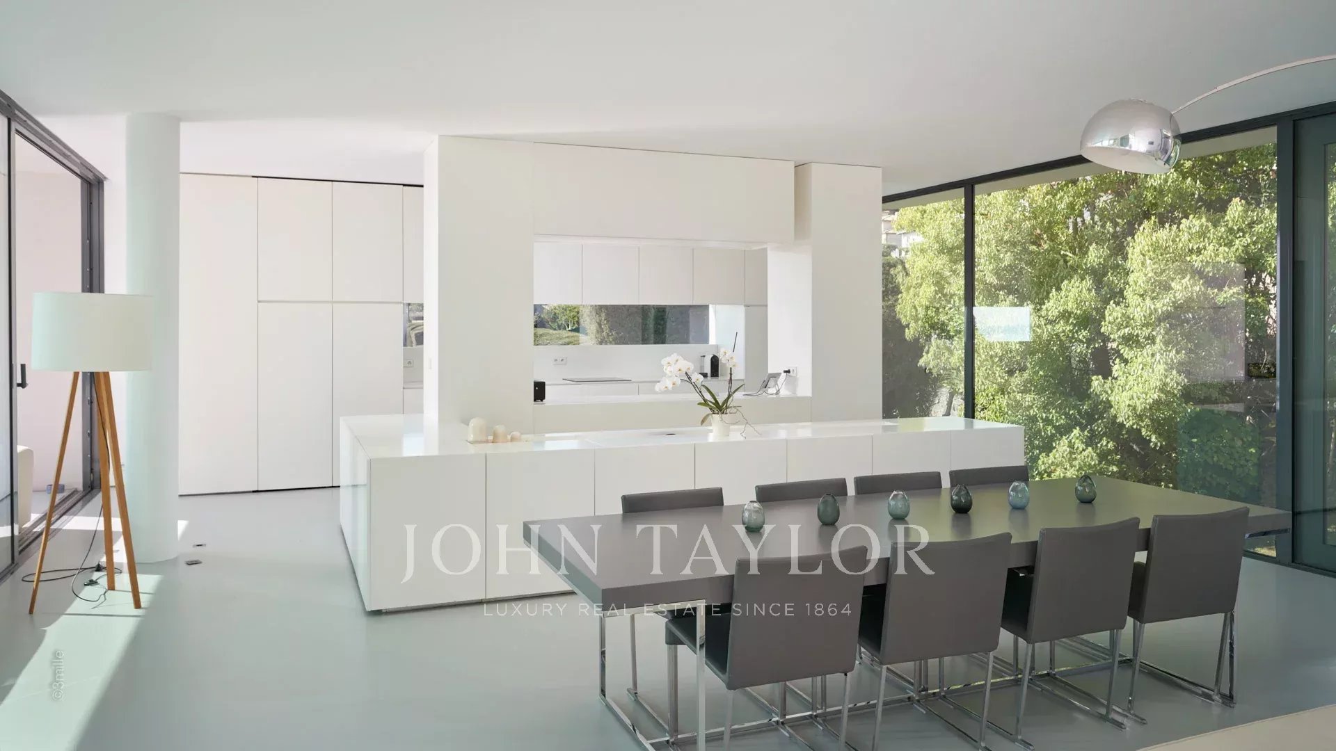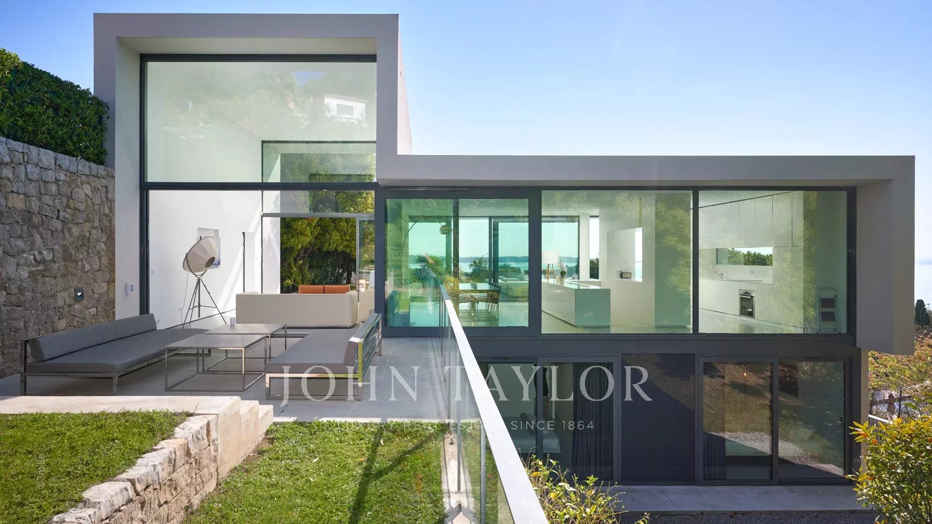 En las alturas de Golfe-Juan y totalmente climatizada, esta hermosa propiedad de arquitectura moderna construida en 2 niveles se compone de la siguiente manera: