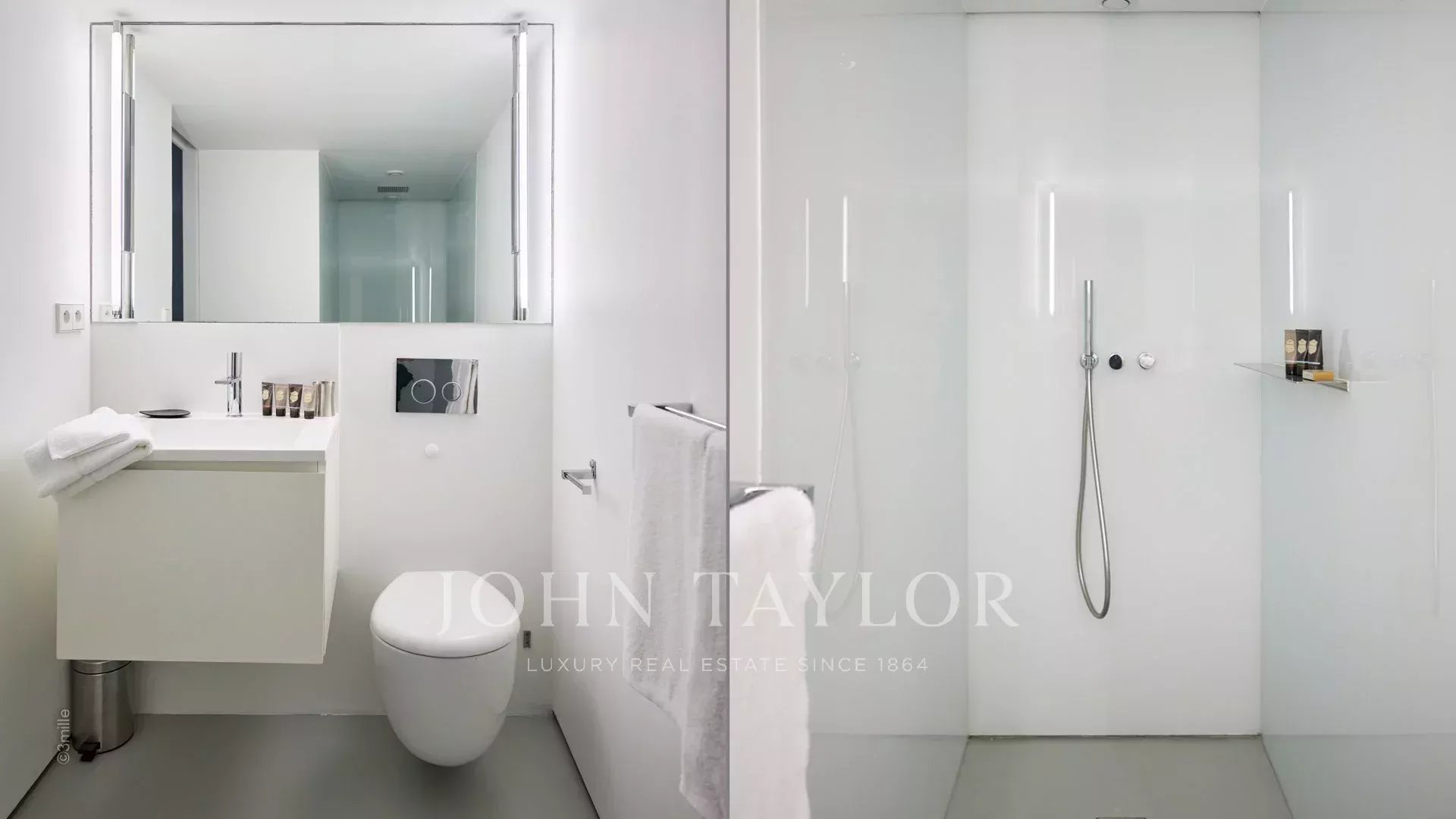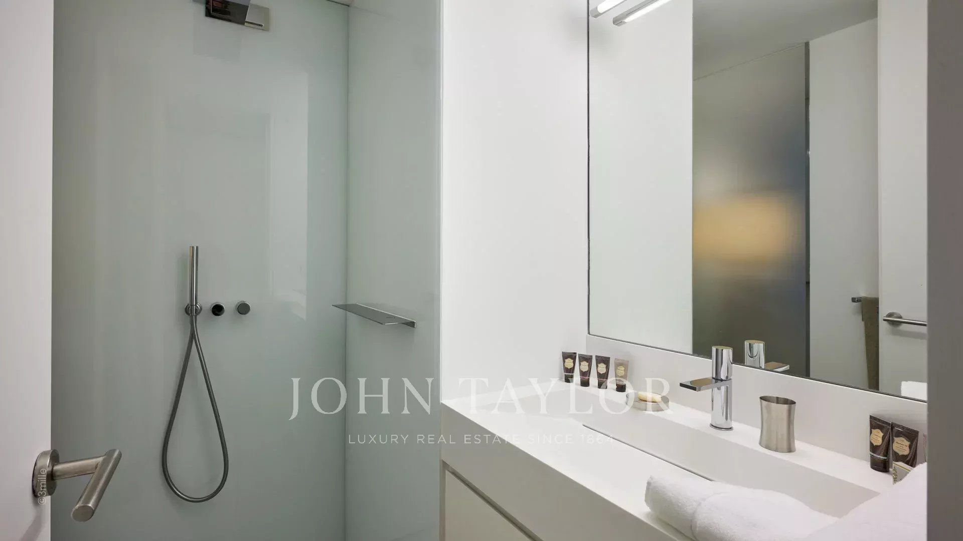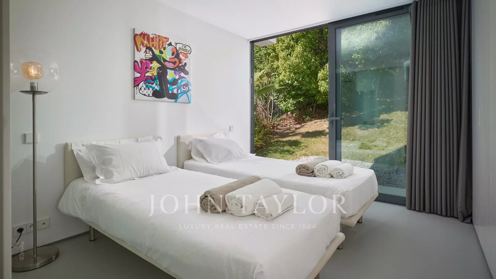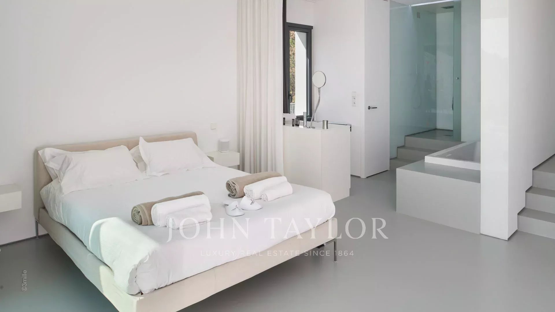 En las alturas de Golfe-Juan y totalmente climatizada, esta hermosa propiedad de arquitectura moderna construida en 2 niveles se compone de la siguiente manera: