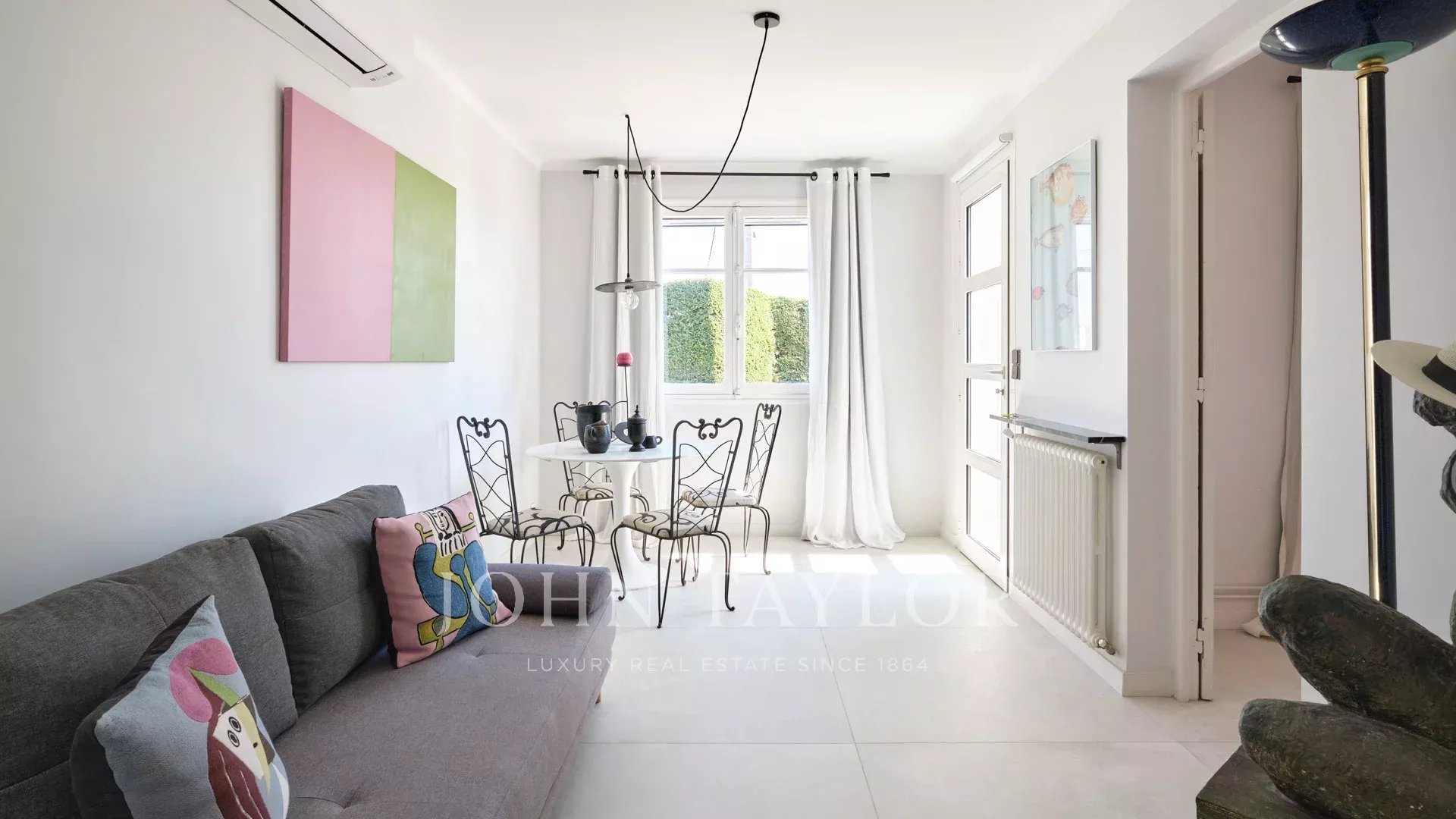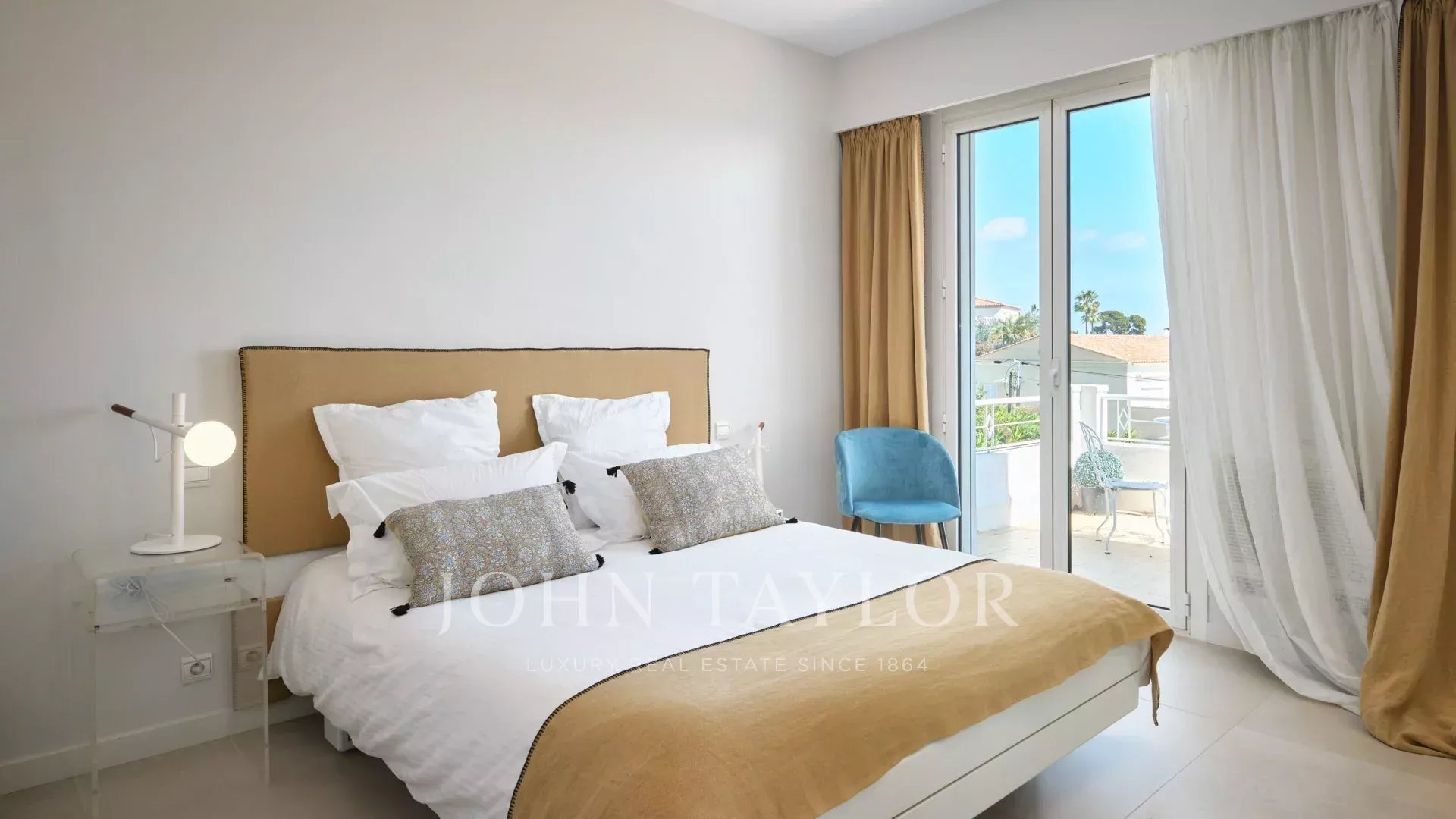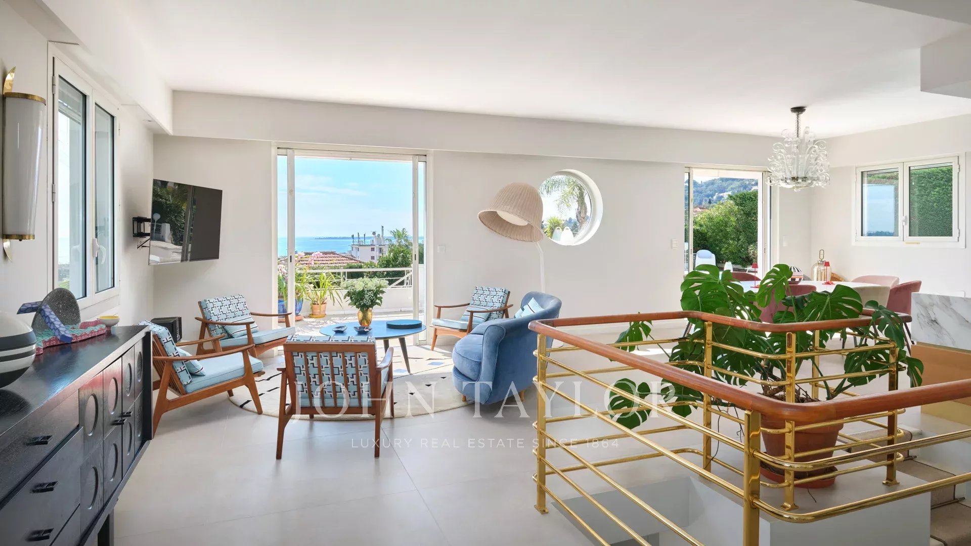 En las alturas de Golfe-Juan y a 800 m de las playas, en el corazón de un jardín de 1.000 m2, villa moderna que ofrece unos 180 m2 de superficie habitable y preciosas vistas al mar.