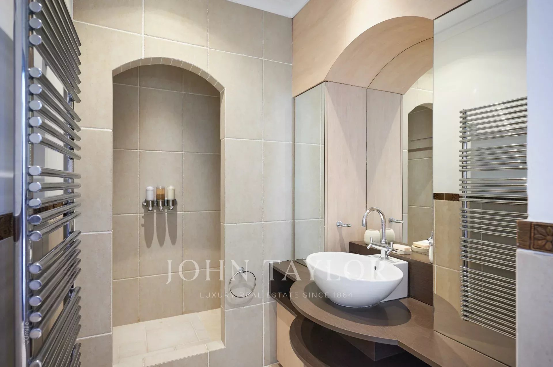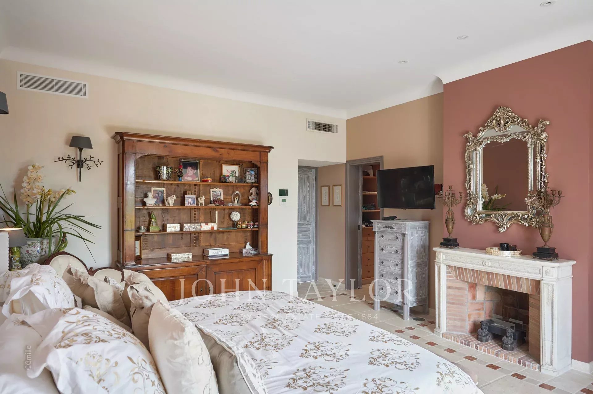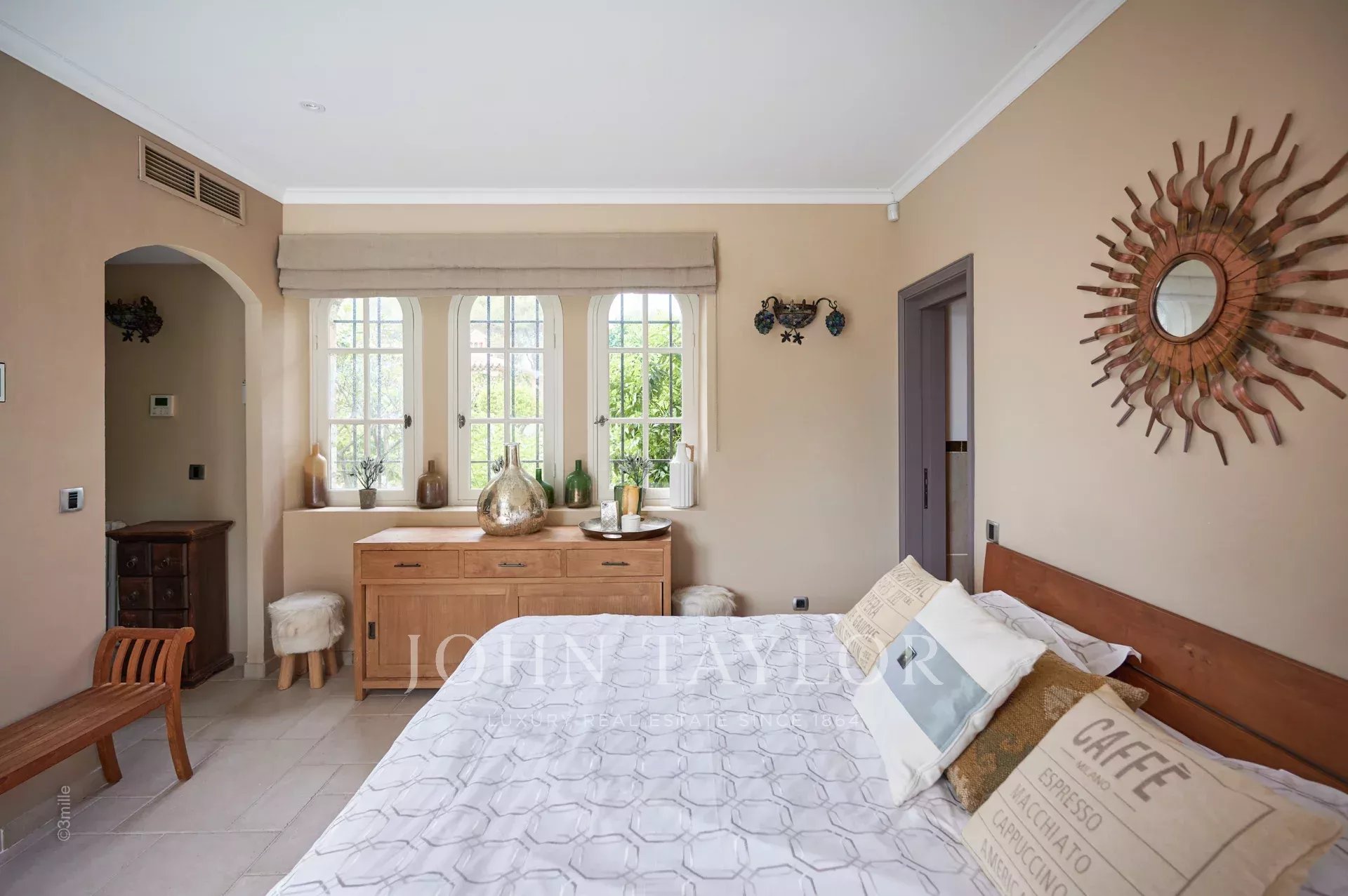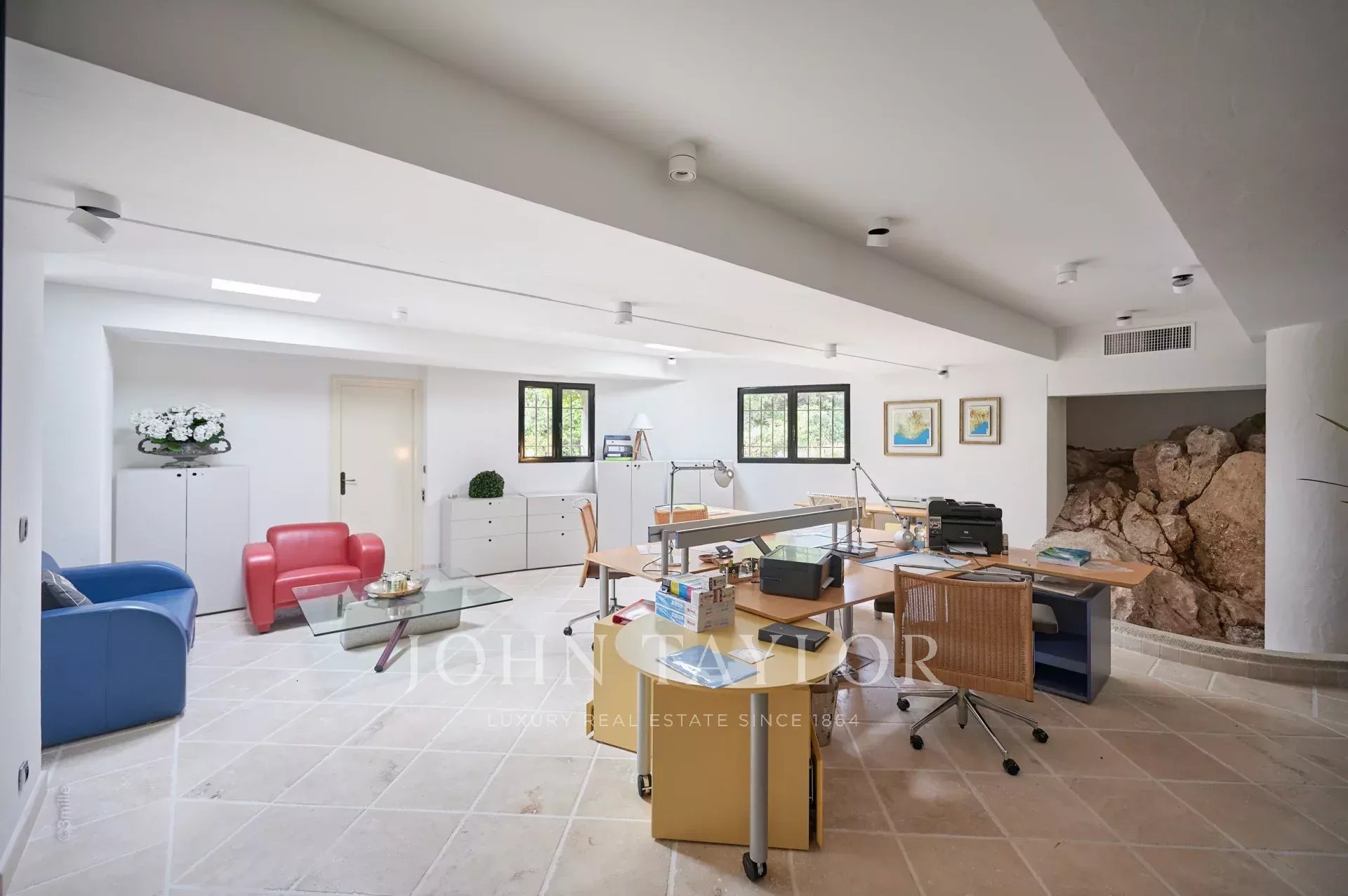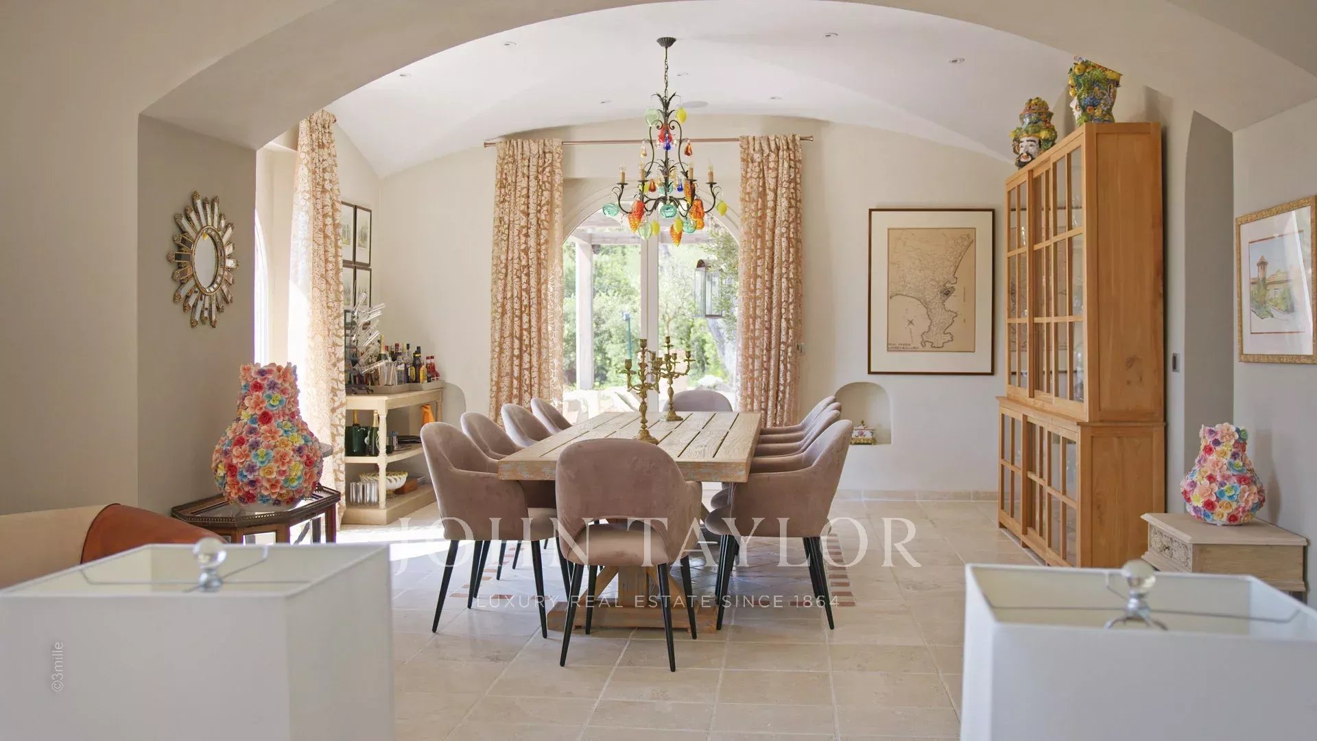 Magnífica Bastide de 720 m2 situada en una de las zonas más solicitadas de Cap d'Antibes, cerca del faro de la Garoupe y a pocos minutos en coche de las playas de Salis y del Port de la Gallice. Un remanso de paz en el corazón de un magnífico parque de 8.800 m2, esta propiedad totalmente climatizada y decorada al más alto nivel es ideal para unas vacaciones íntimas en la Costa Azul. Especialmente luminosas, todas las habitaciones se abren a las terrazas que rodean la villa.