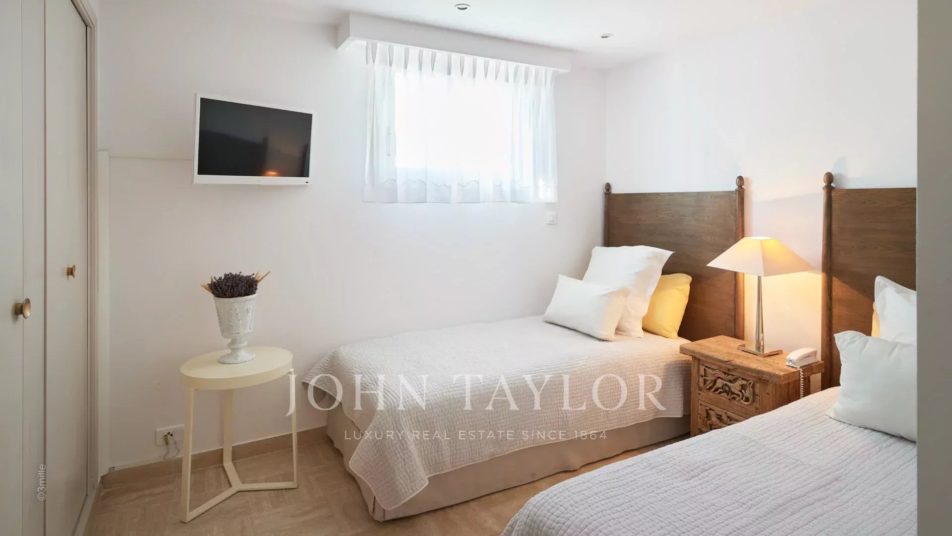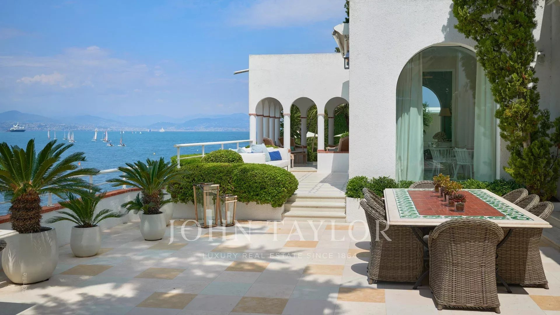 Descubra esta suntuosa villa frente al mar, que ofrece acceso privado al mar y se encuentra a pocos minutos a pie del centro de Antibes, o de sus famosos restaurantes como "Le Bacon".