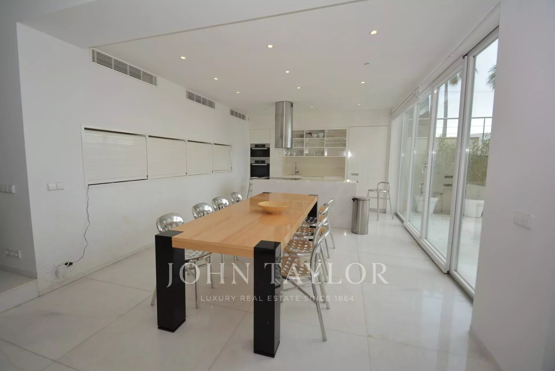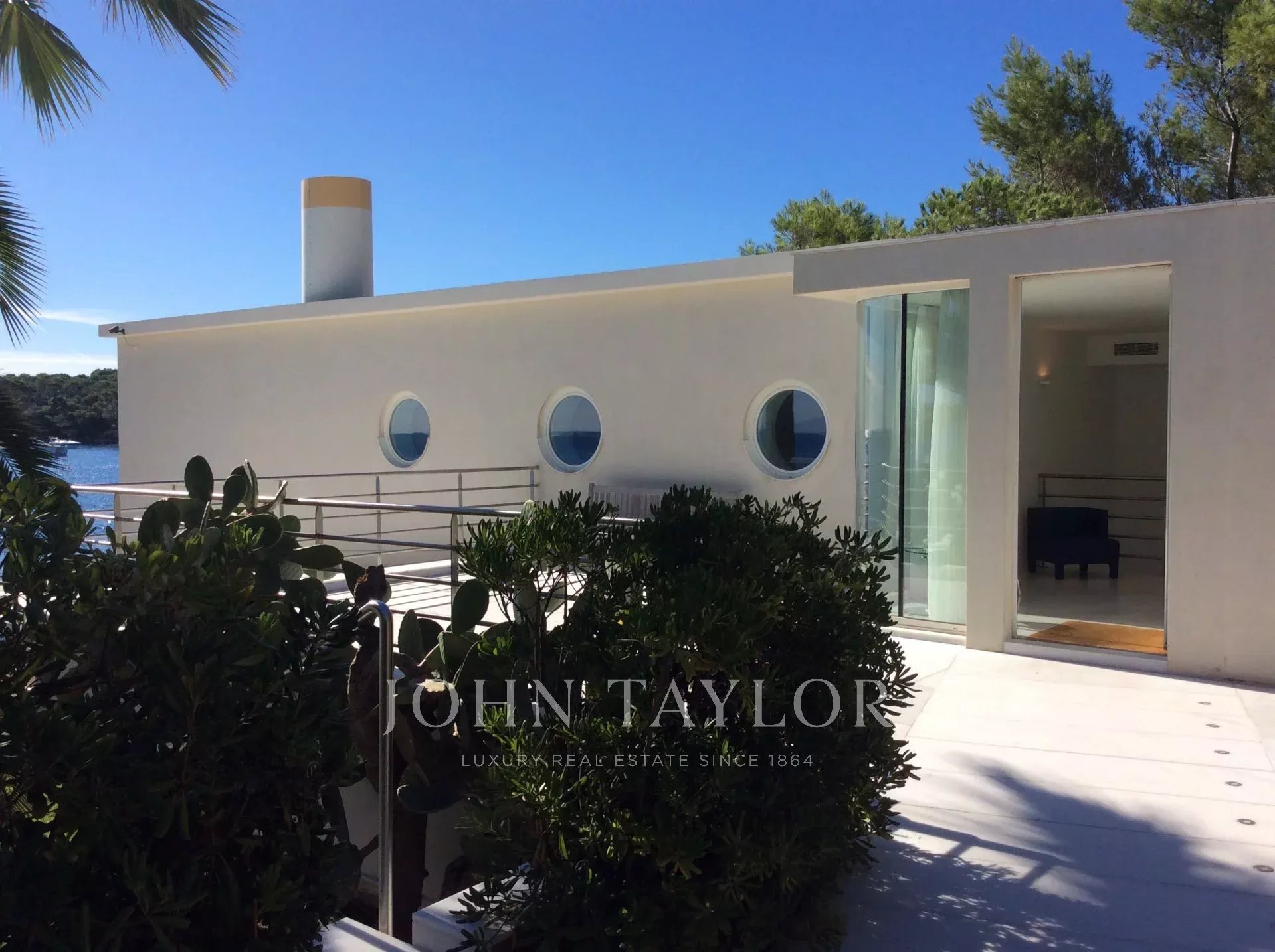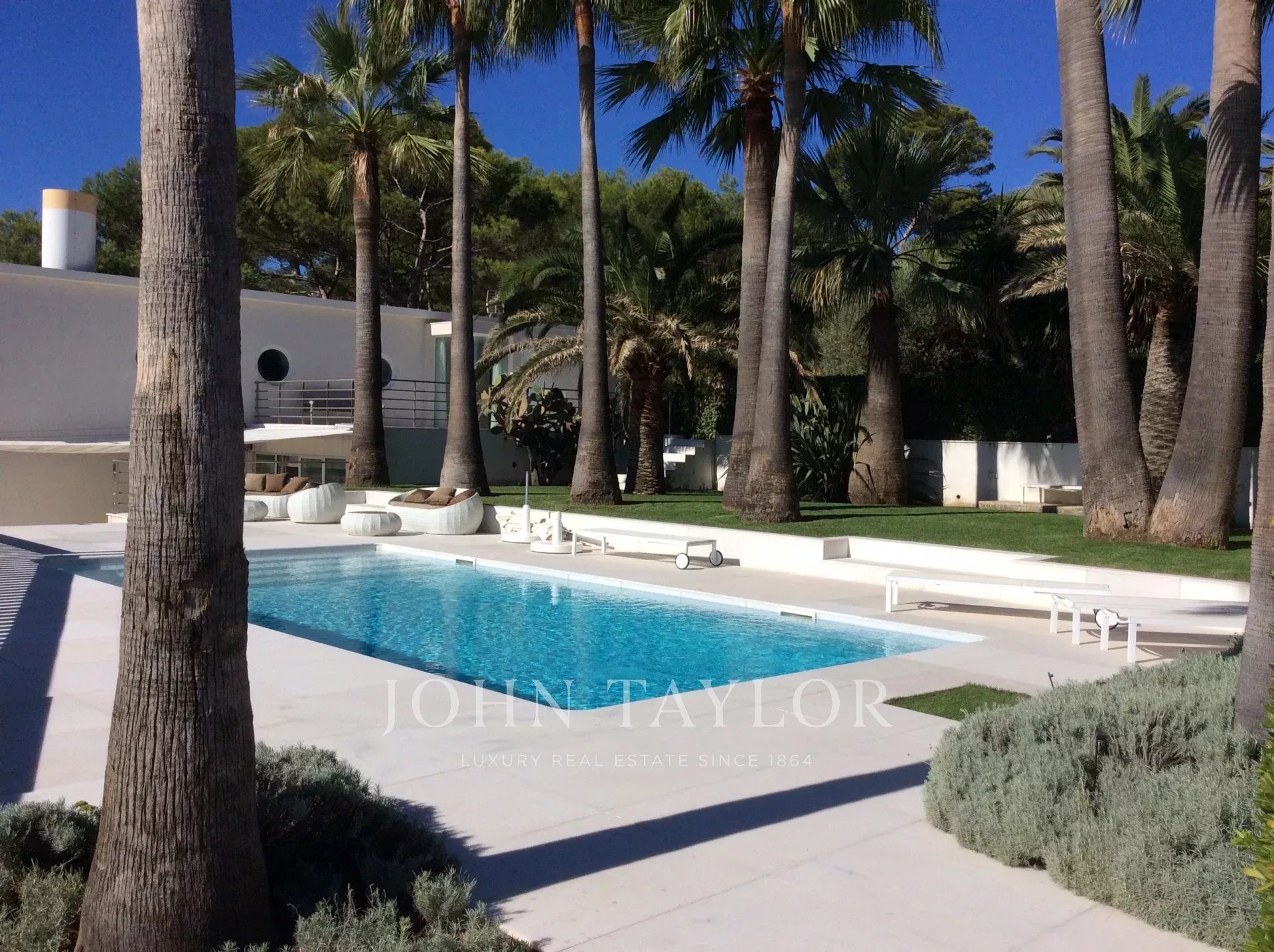 En Cap d'Antibes, un "pied dans l'eau" de estilo contemporáneo que ofrece 300 m2 de espacio habitable totalmente climatizado en el corazón de una parcela de 900 m2, justo al lado de las playas de Garoupe.