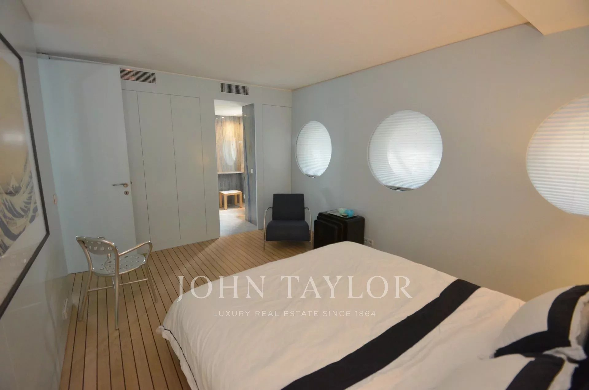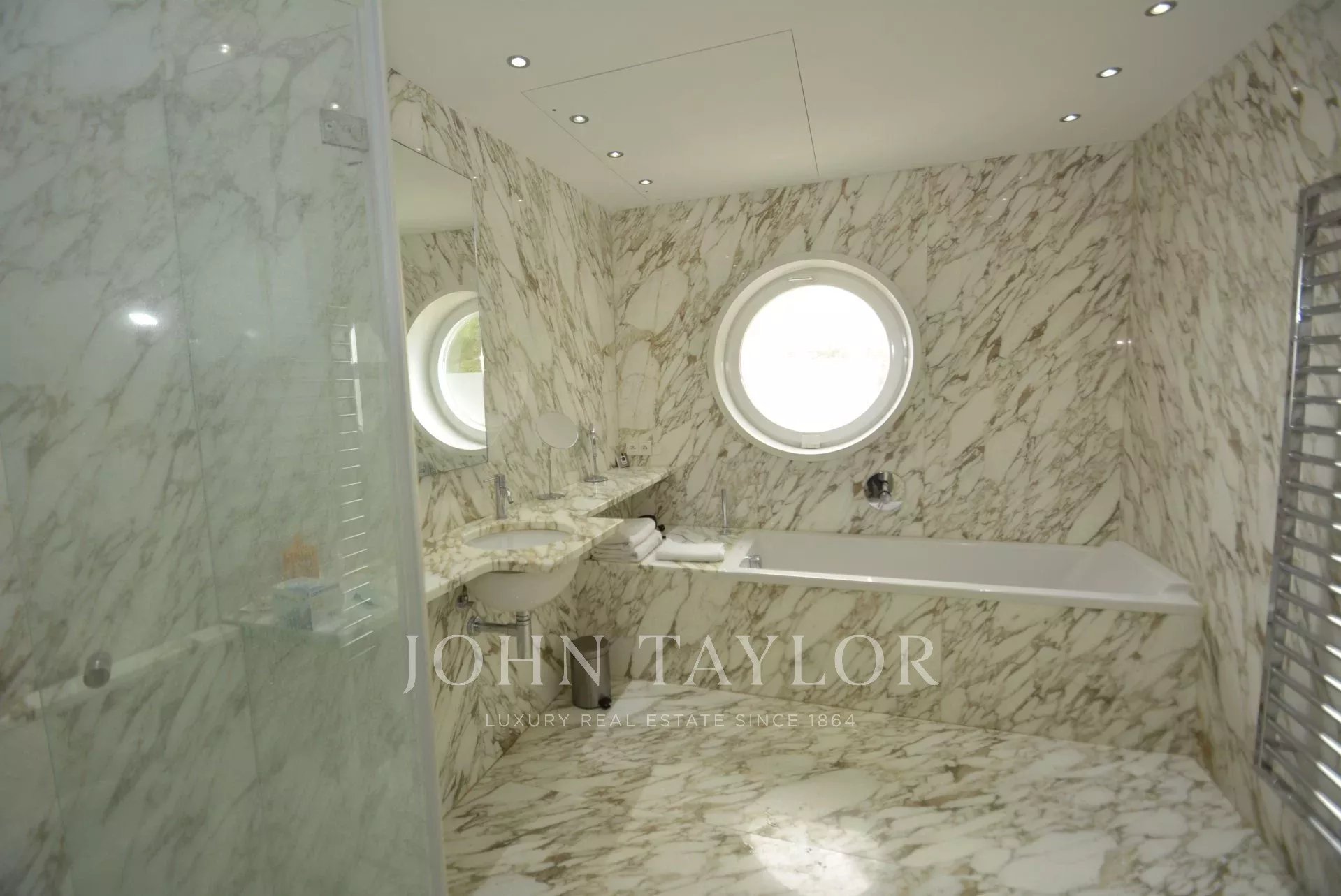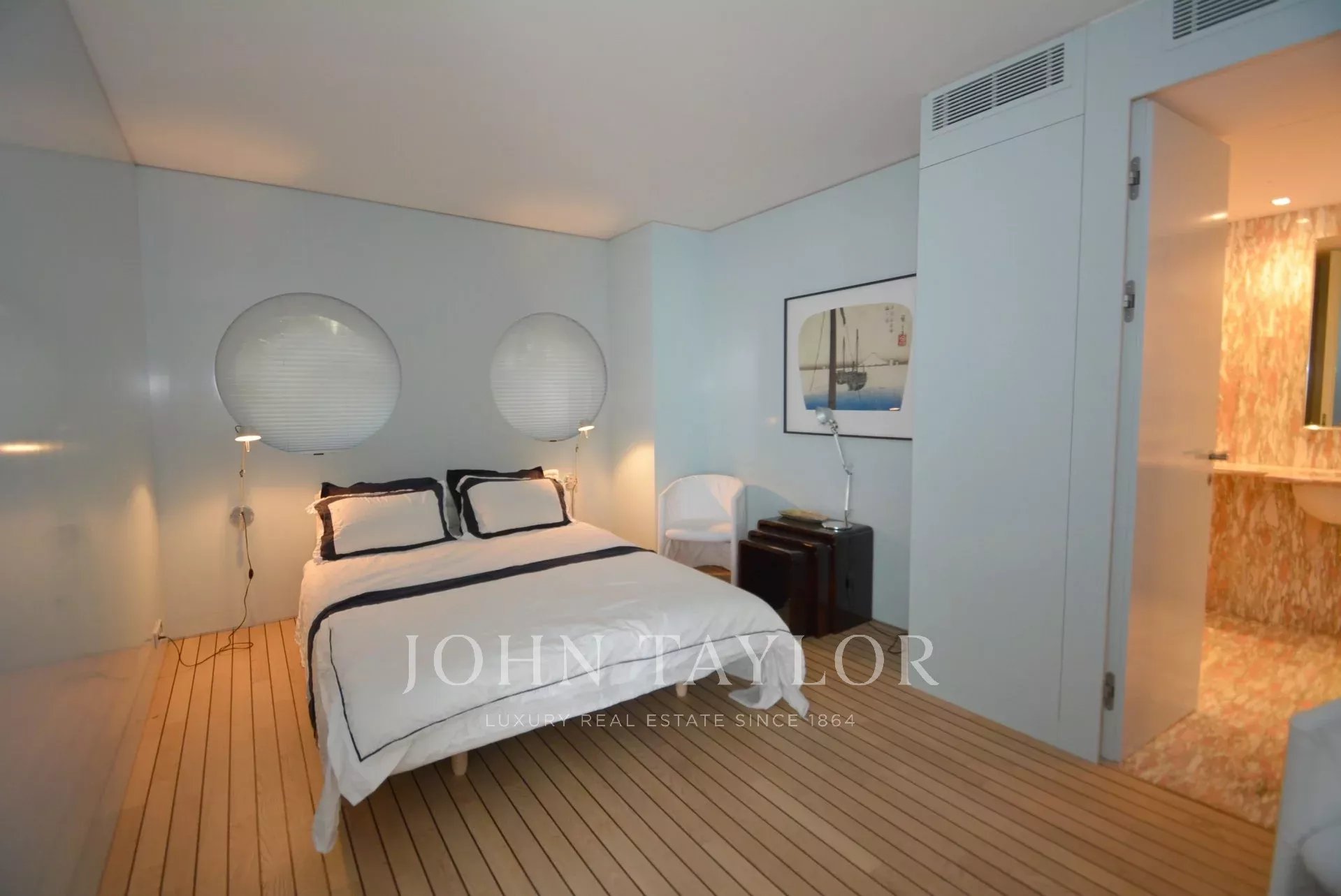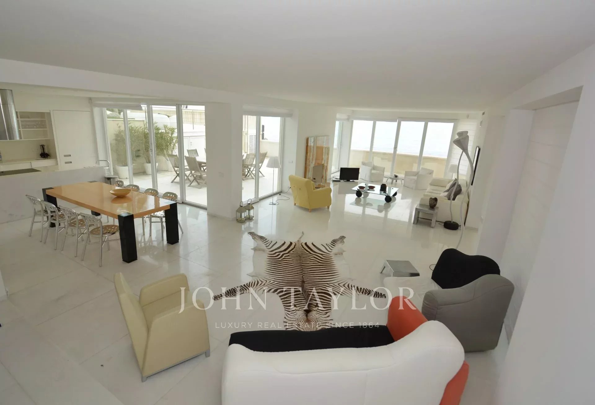En Cap d'Antibes, un "pied dans l'eau" de estilo contemporáneo que ofrece 300 m2 de espacio habitable totalmente climatizado en el corazón de una parcela de 900 m2, justo al lado de las playas de Garoupe.